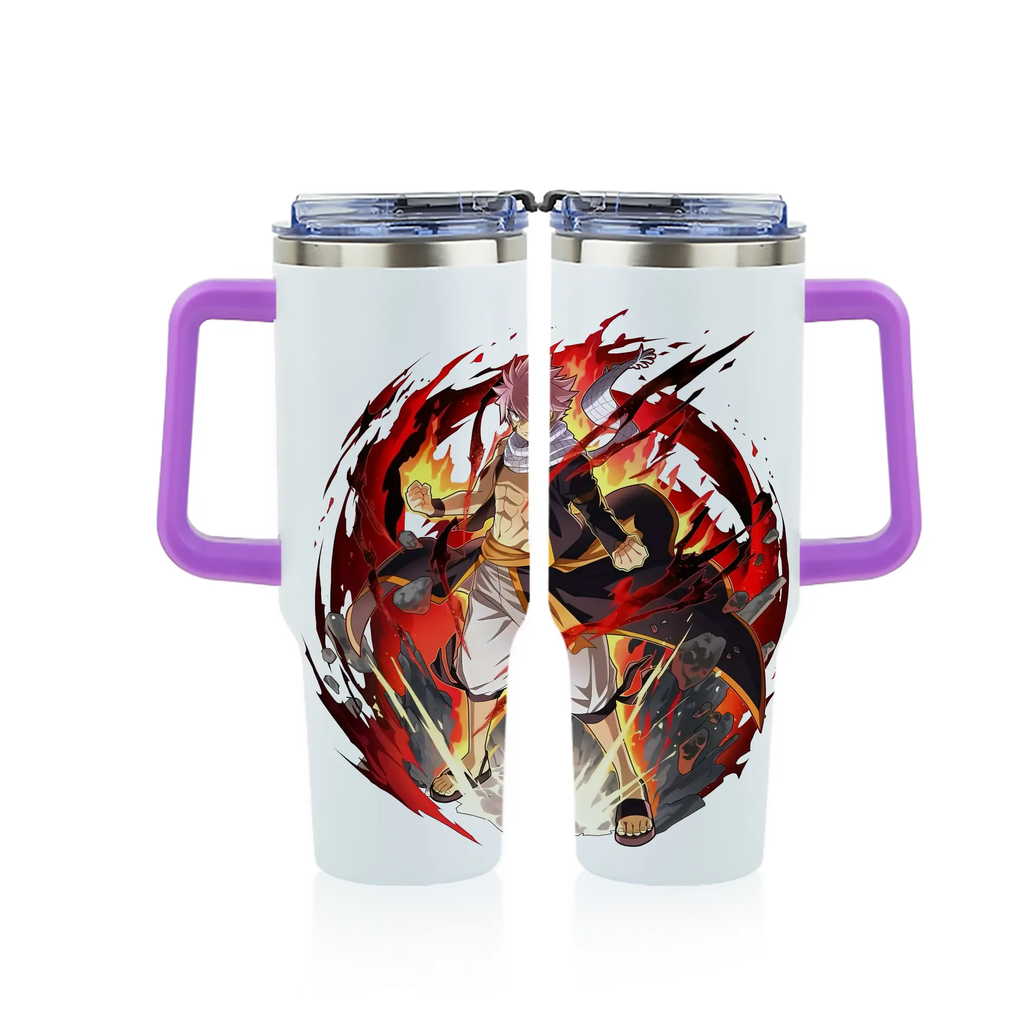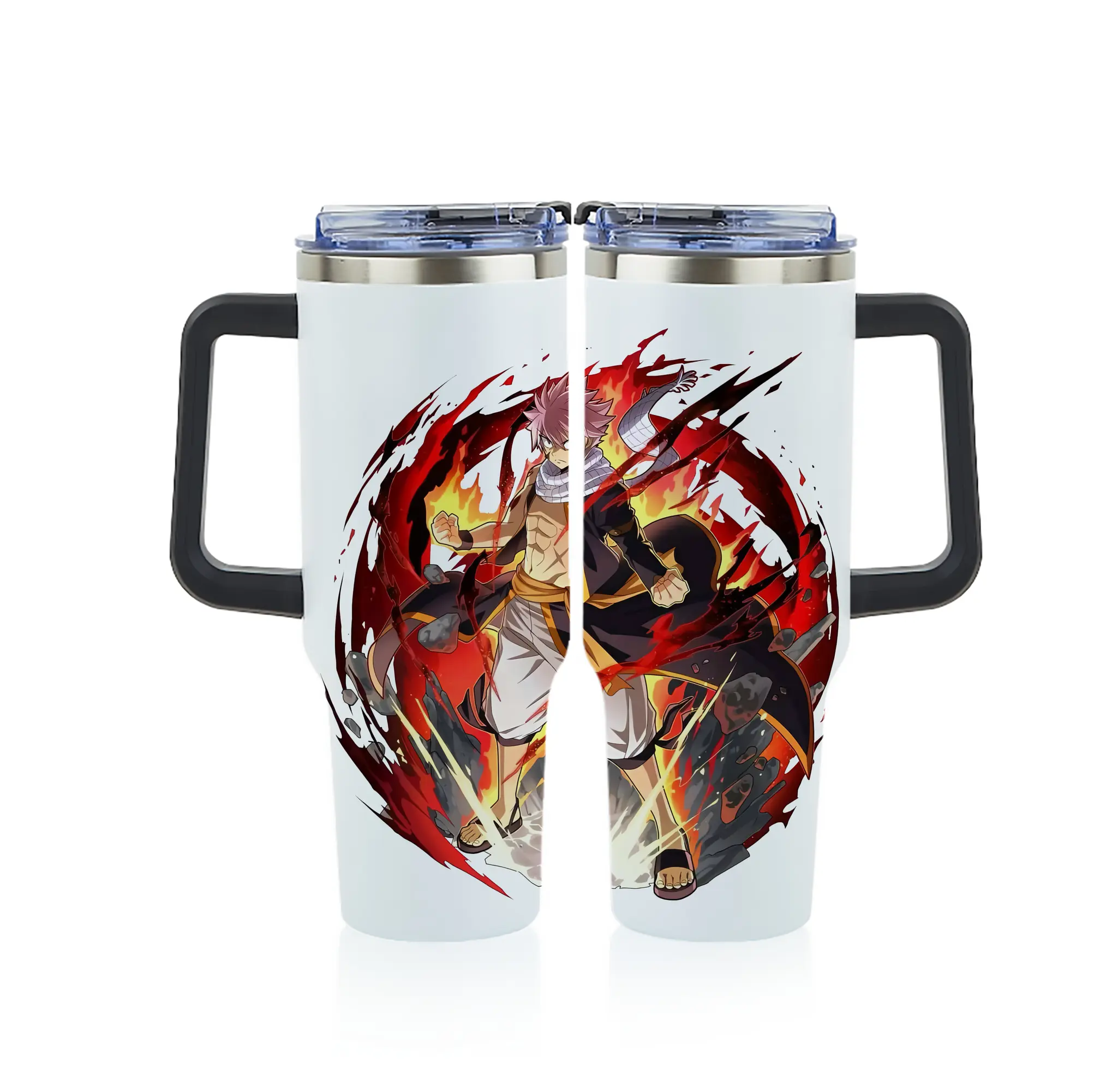 フェアリーテイル グッズ ナツ・ドラグニル - 1200mL フルプリント車用タンブラー ・ 304ステンレス 内側 ・ 201ステンレス 外側 ・ 保温 保冷 ・ 通勤 ドライブ アウトドア用
