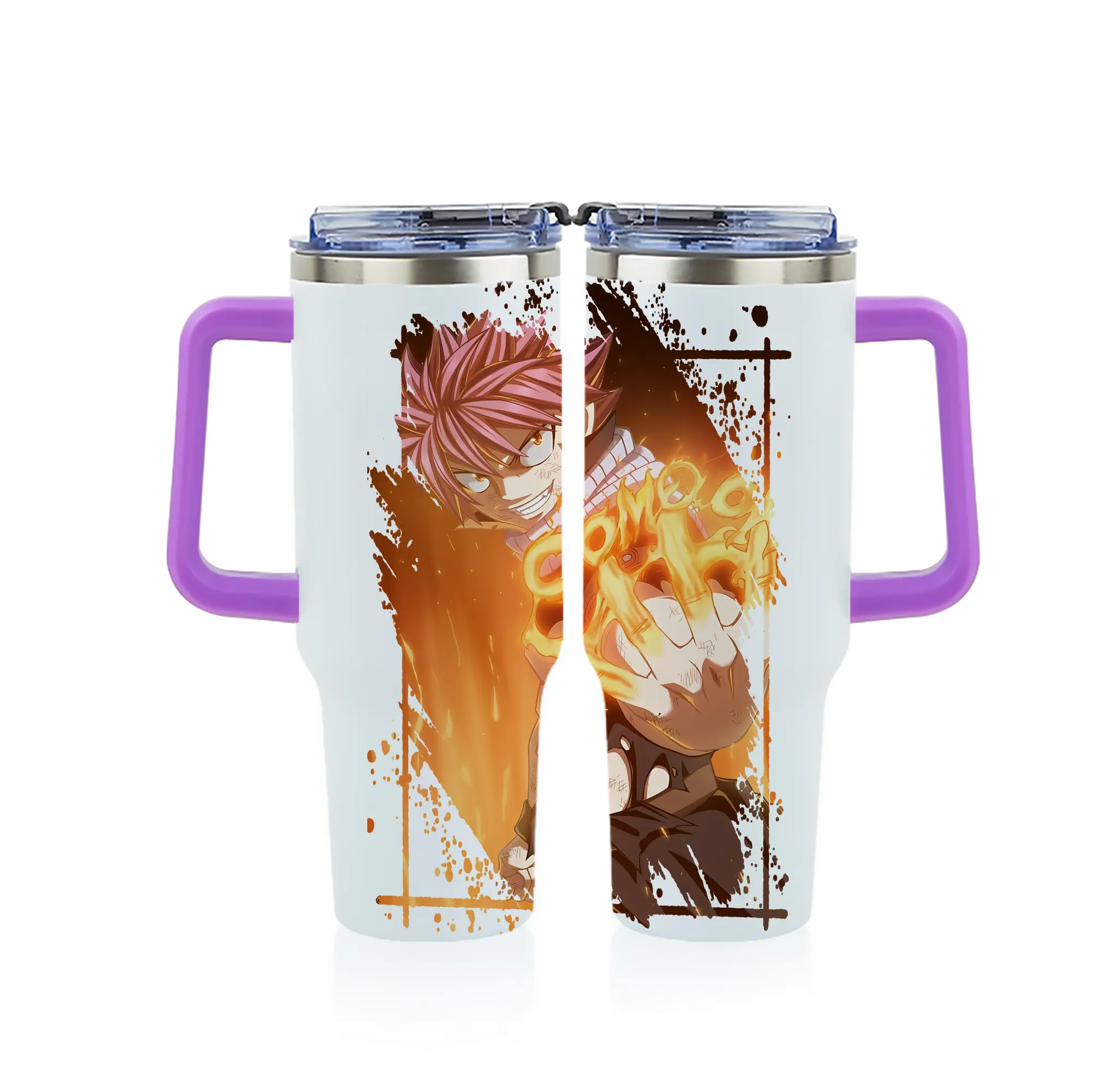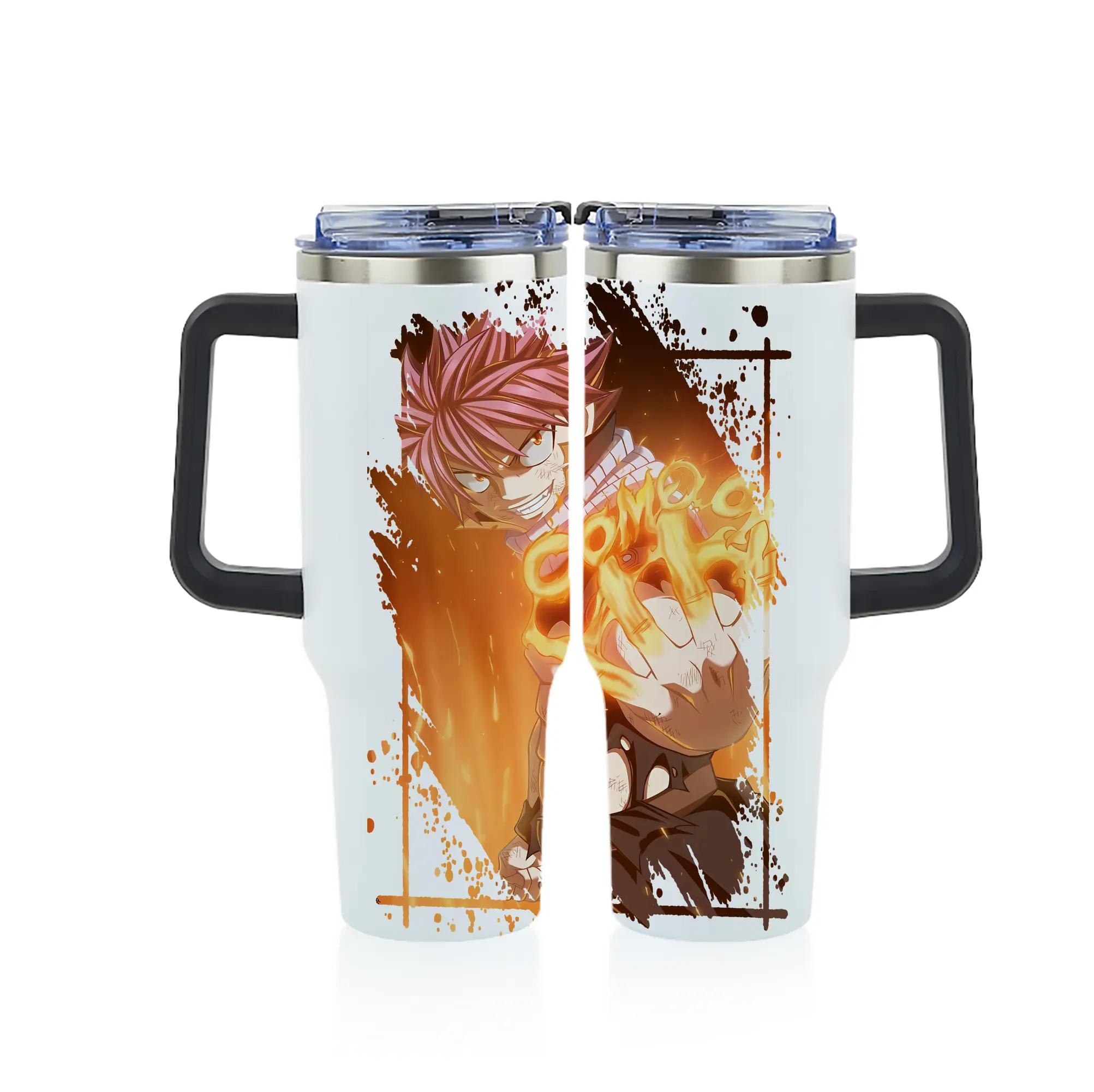 フェアリーテイル グッズ ナツ・ドラグニル - 1200mL フルプリント車用タンブラー ・ 304ステンレス 内側 ・ 201ステンレス 外側 ・ 保温 保冷 ・ 通勤 ドライブ アウトドア用