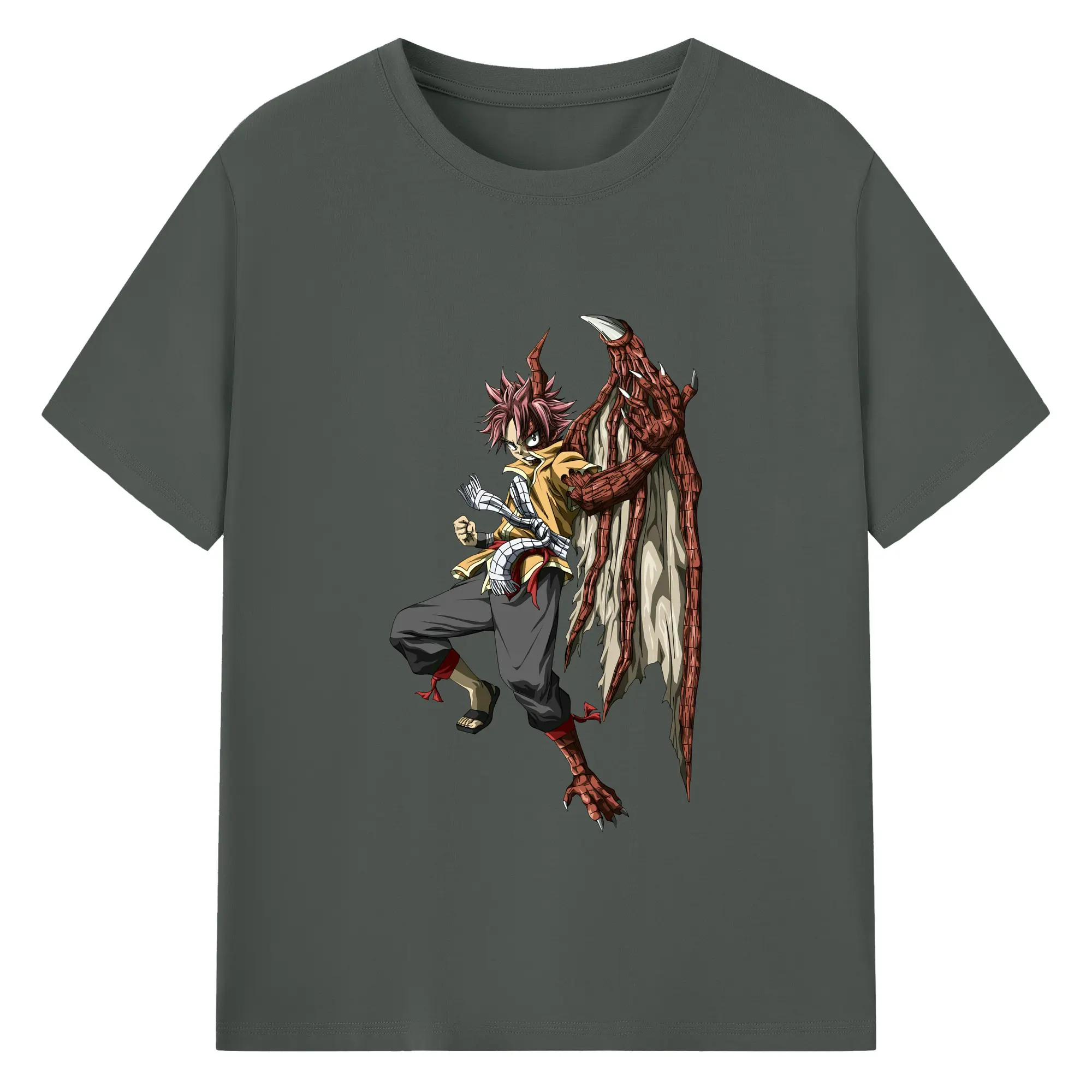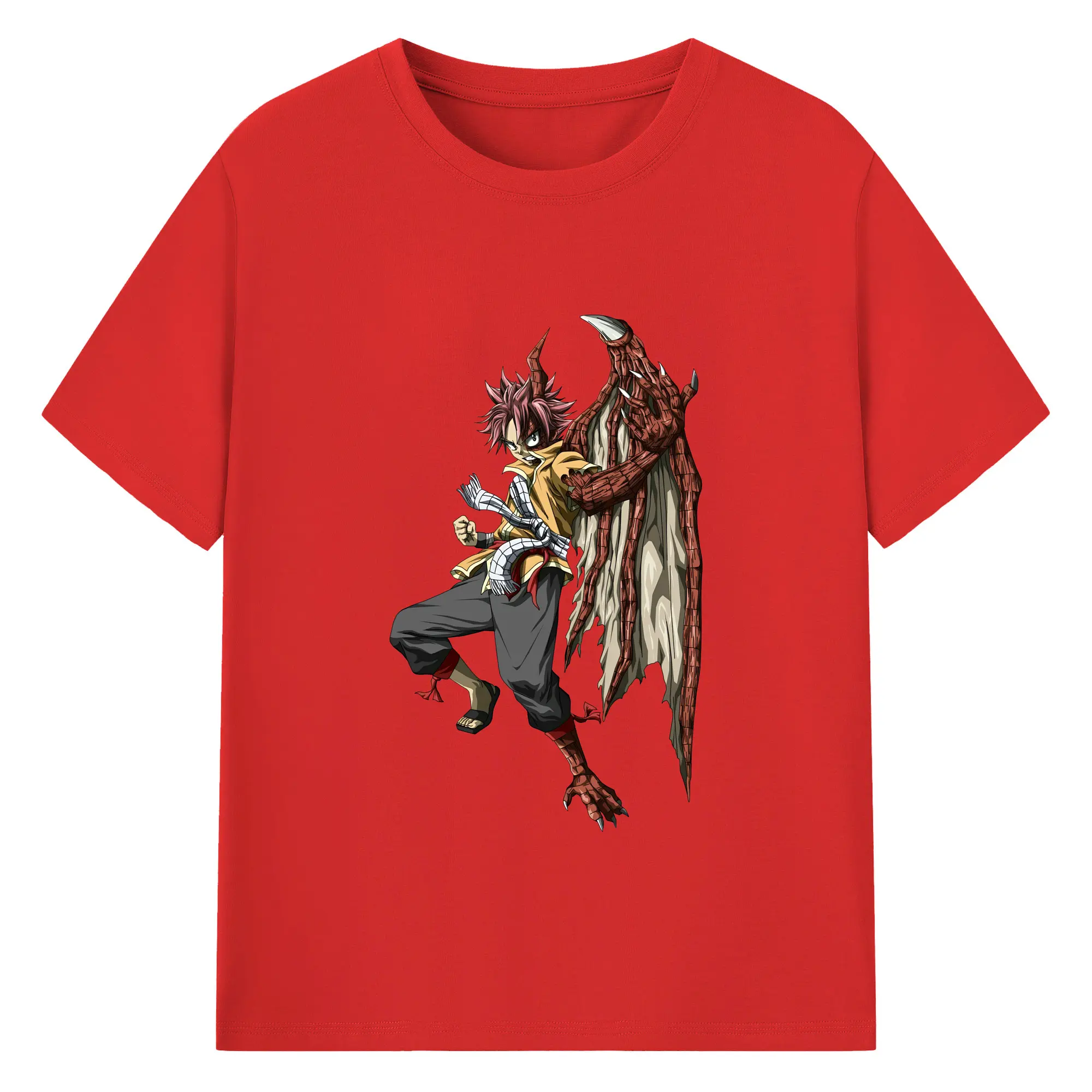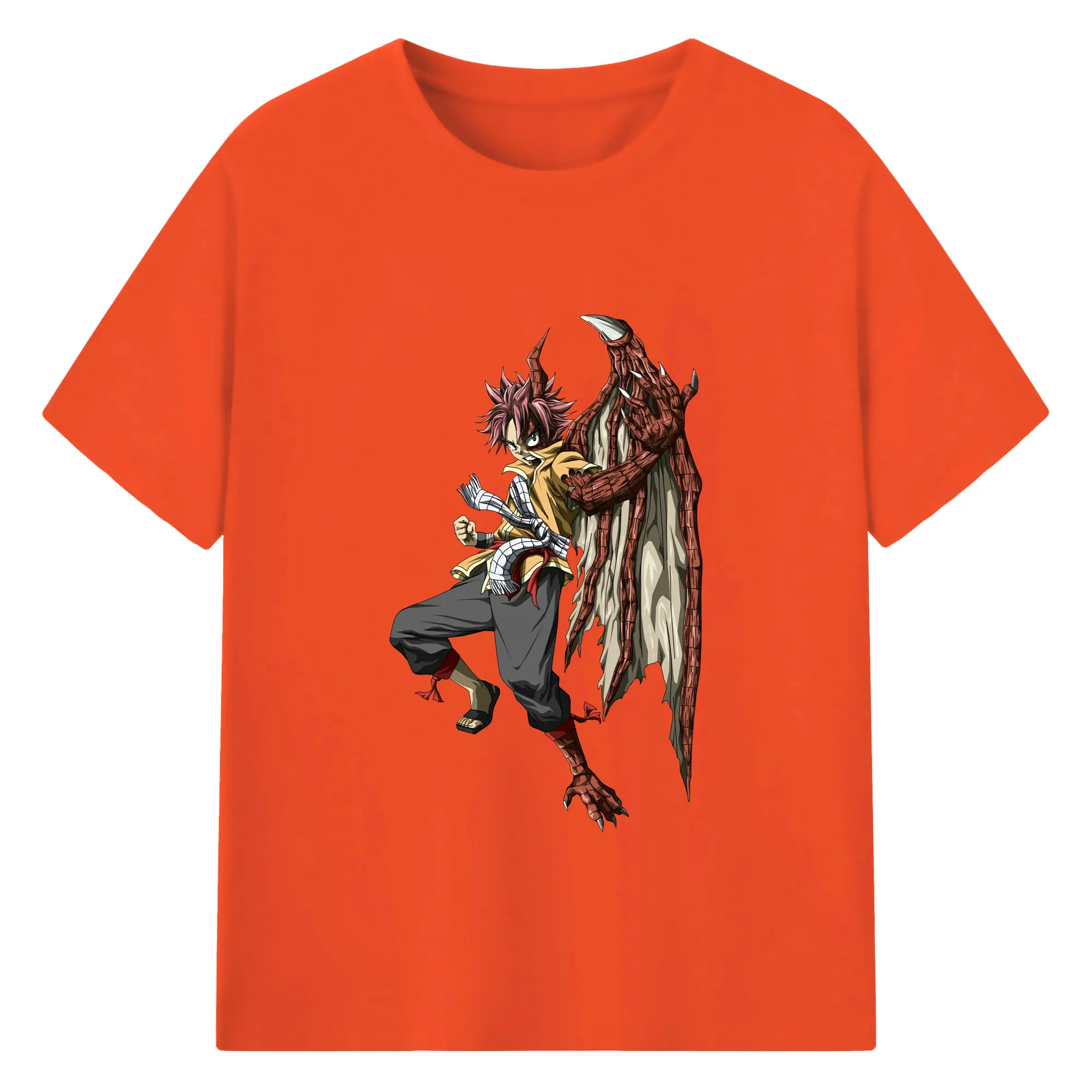 フェアリーテイル グッズ ナツ・ドラグニル - 綿100% 半袖Tシャツ ・ バックプリント ・ 快適 通気性 ・ 日常使い 散歩 スポーツ用