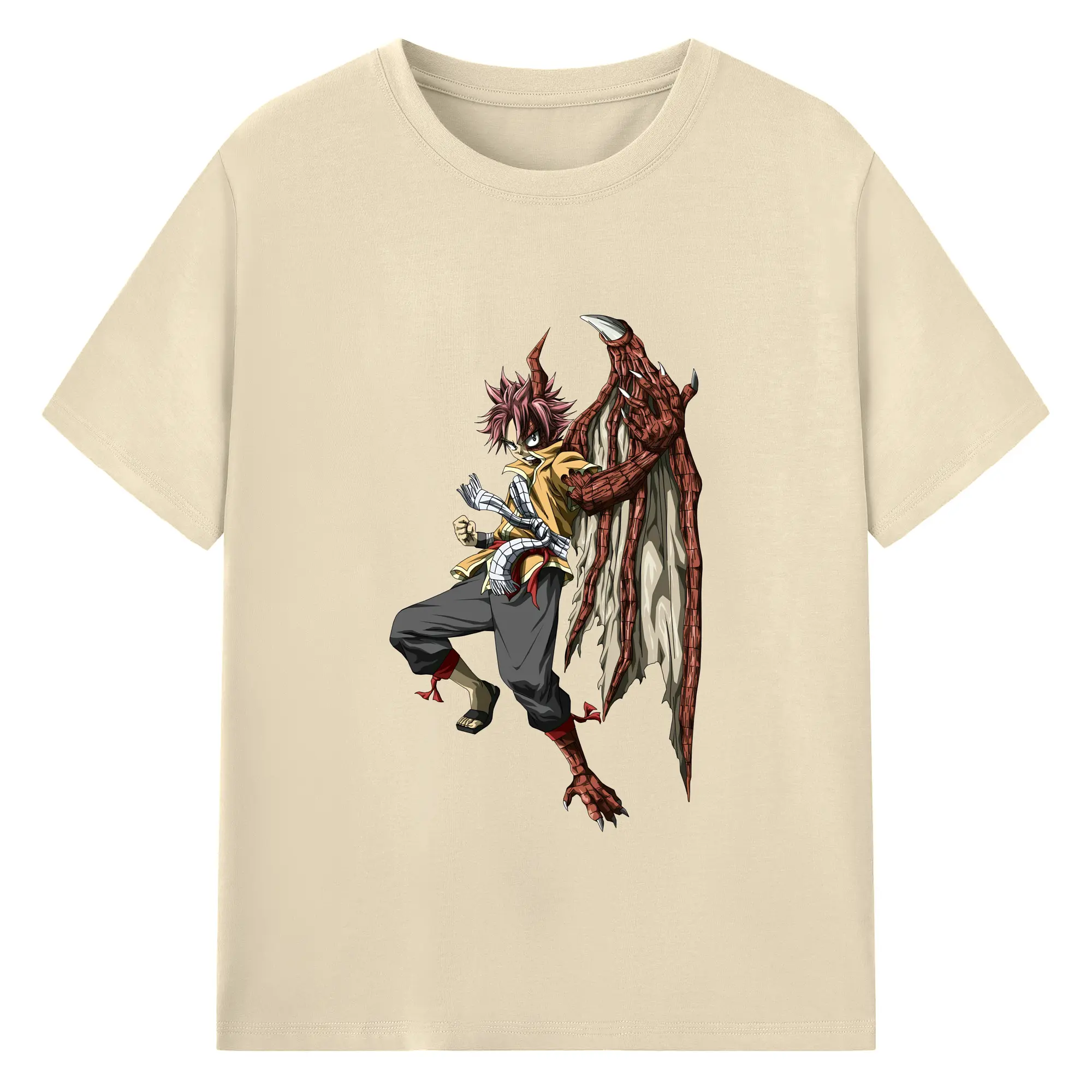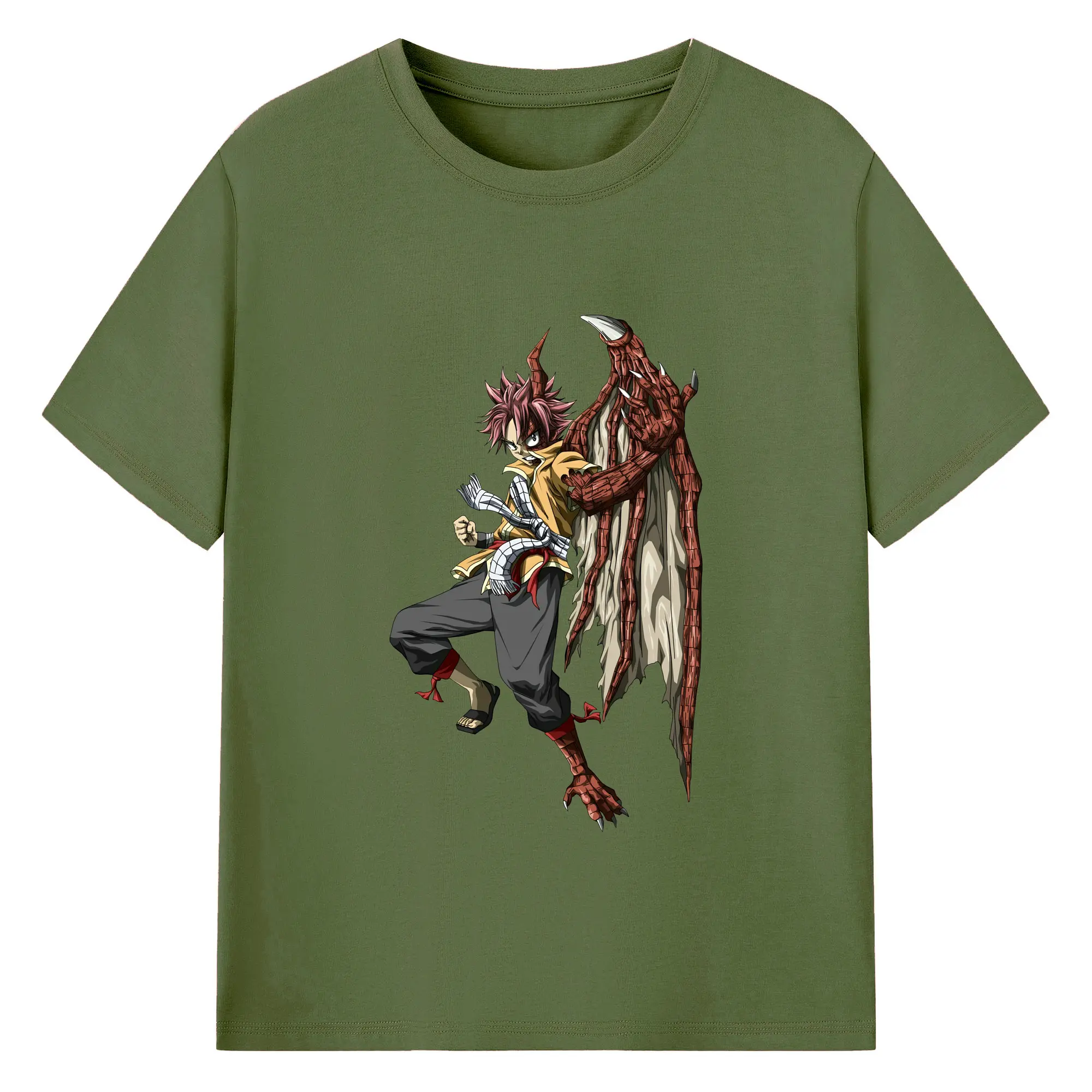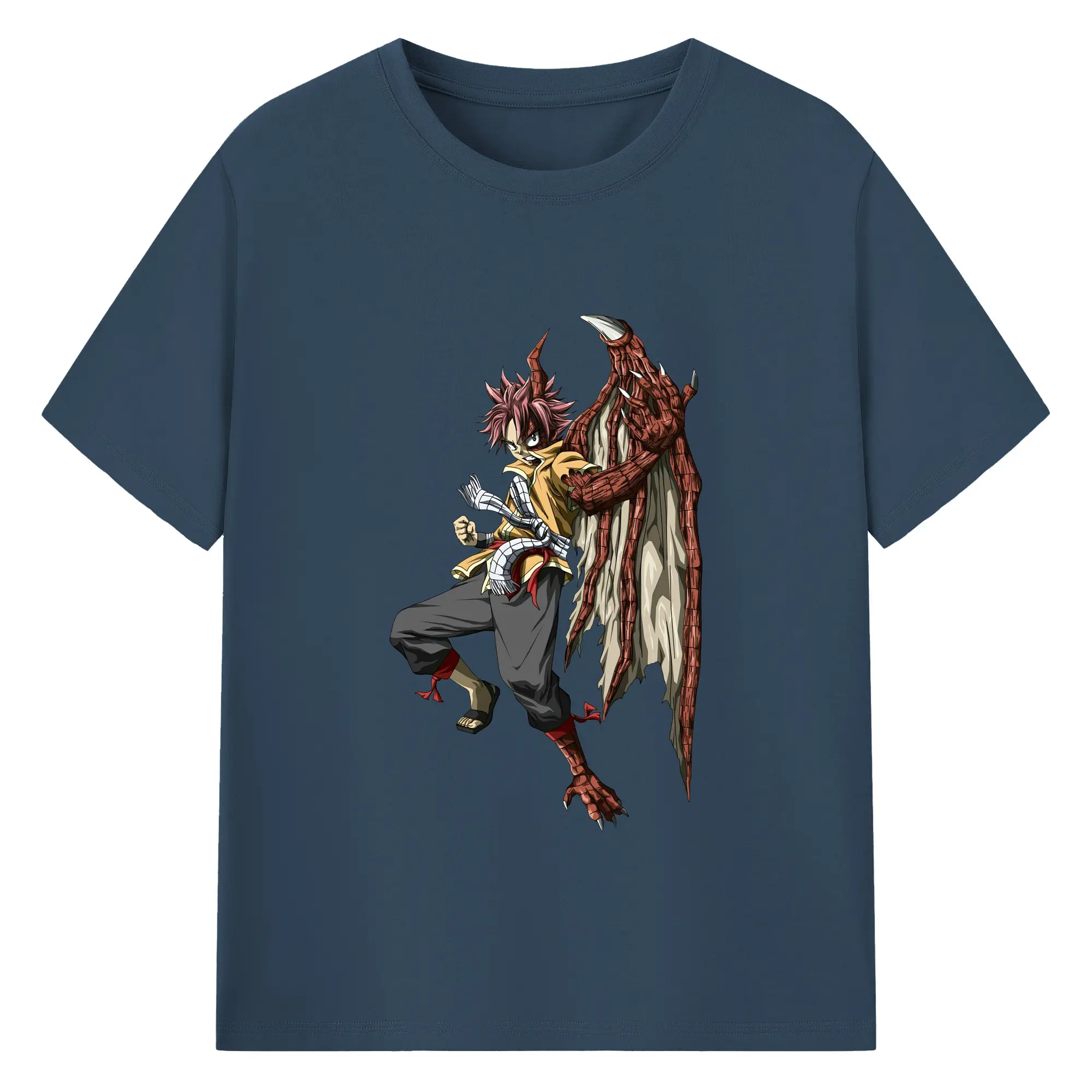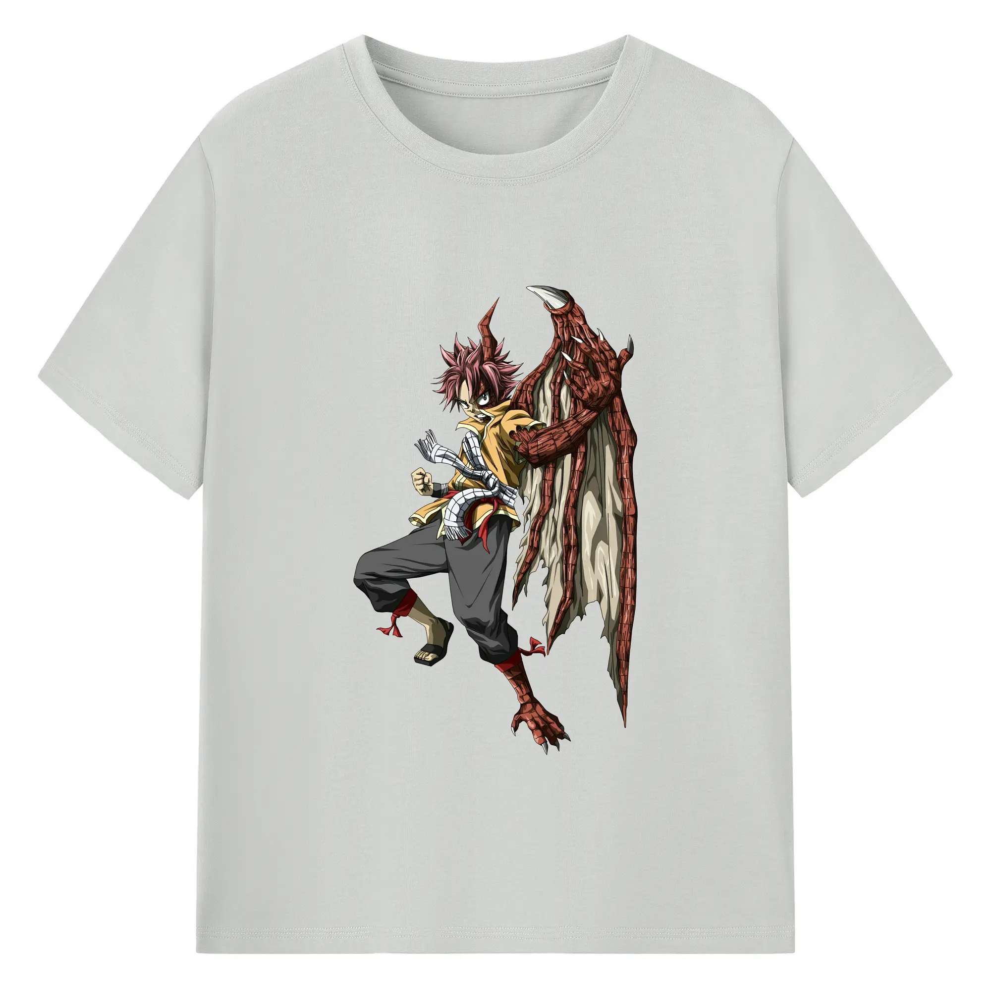フェアリーテイル グッズ ナツ・ドラグニル - 綿100% 半袖Tシャツ ・ バックプリント ・ 快適 通気性 ・ 日常使い 散歩 スポーツ用