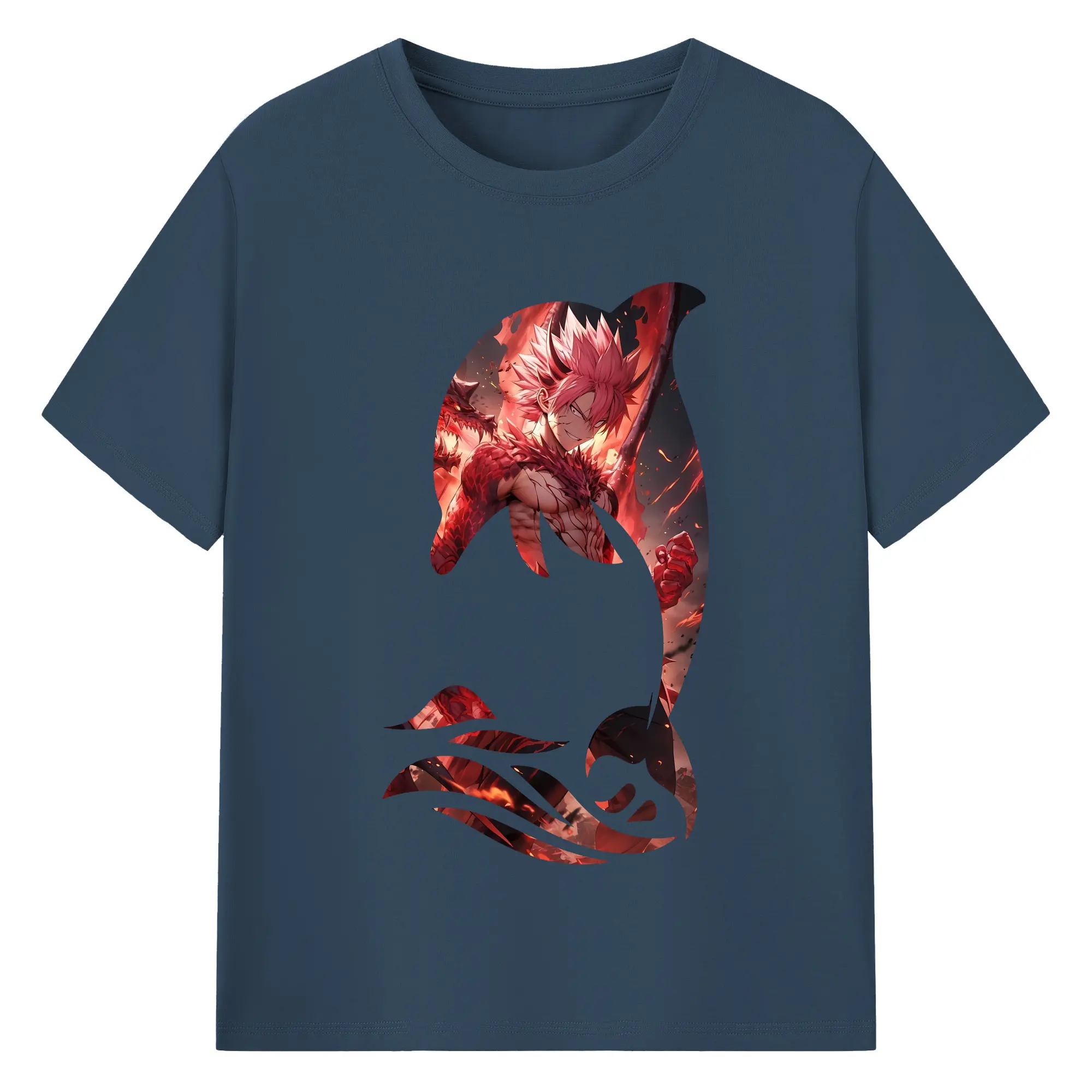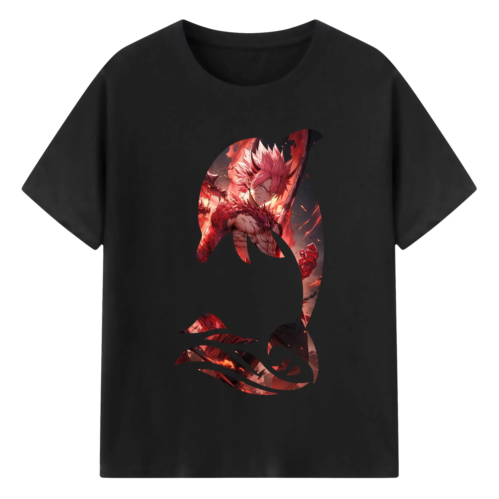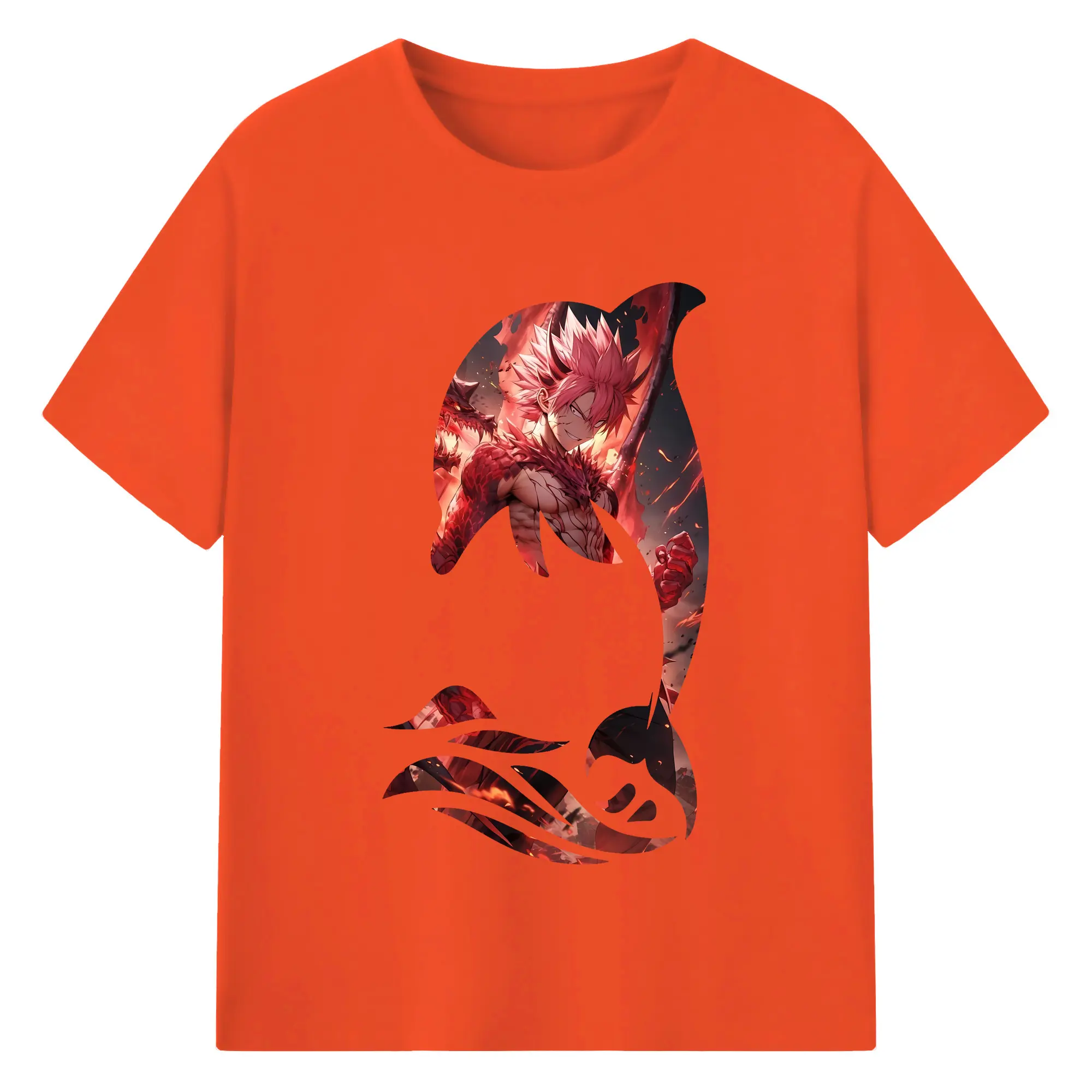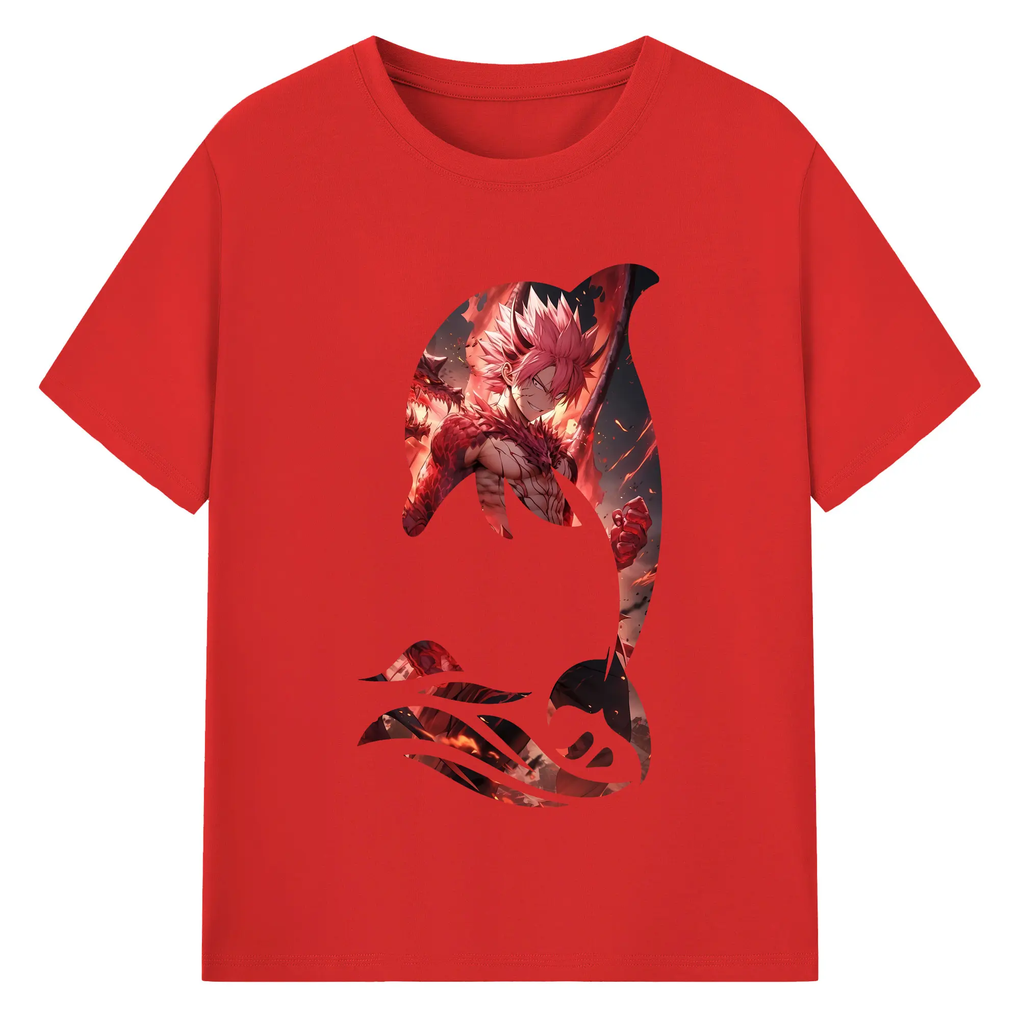 フェアリーテイル グッズ ナツ・ドラグニル - 綿100% 半袖Tシャツ ・ バックプリント ・ 快適 通気性 ・ 日常使い 散歩 スポーツ用