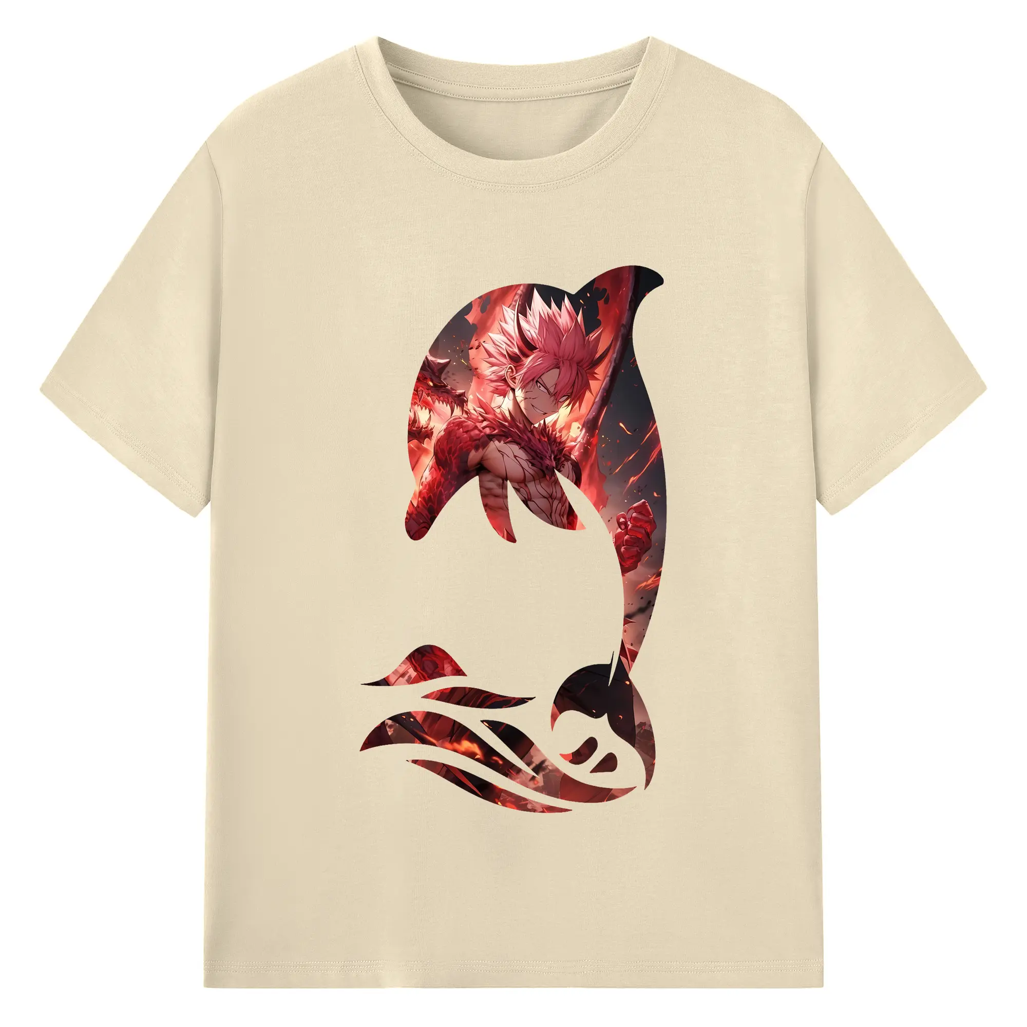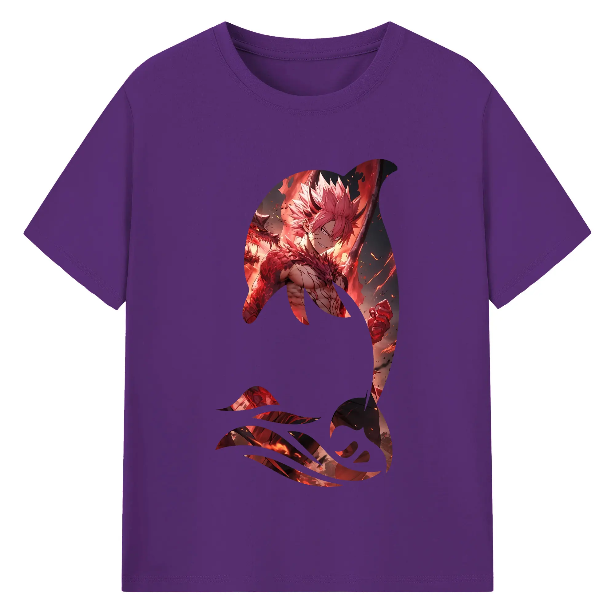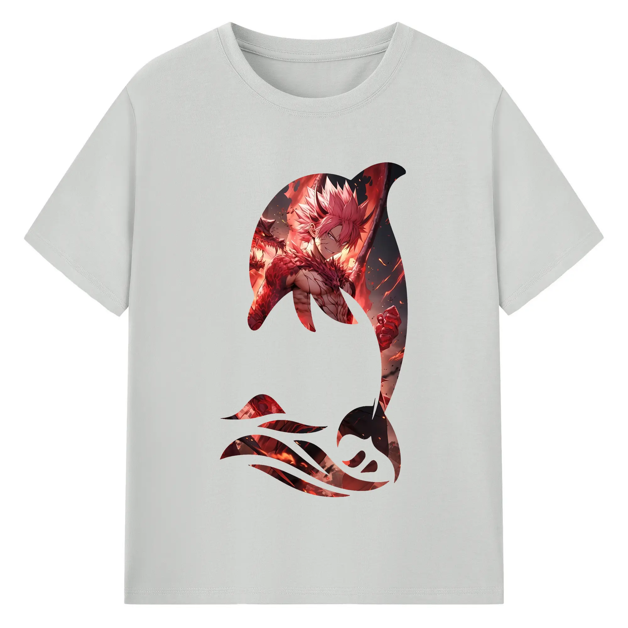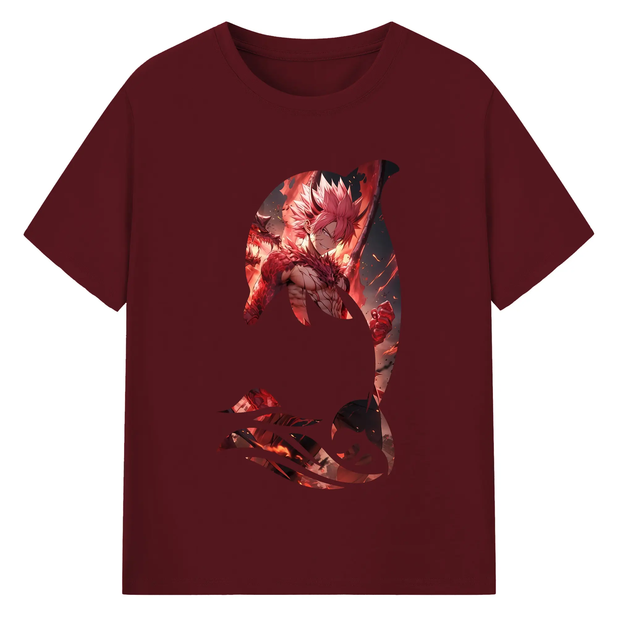 フェアリーテイル グッズ ナツ・ドラグニル - 綿100% 半袖Tシャツ ・ バックプリント ・ 快適 通気性 ・ 日常使い 散歩 スポーツ用