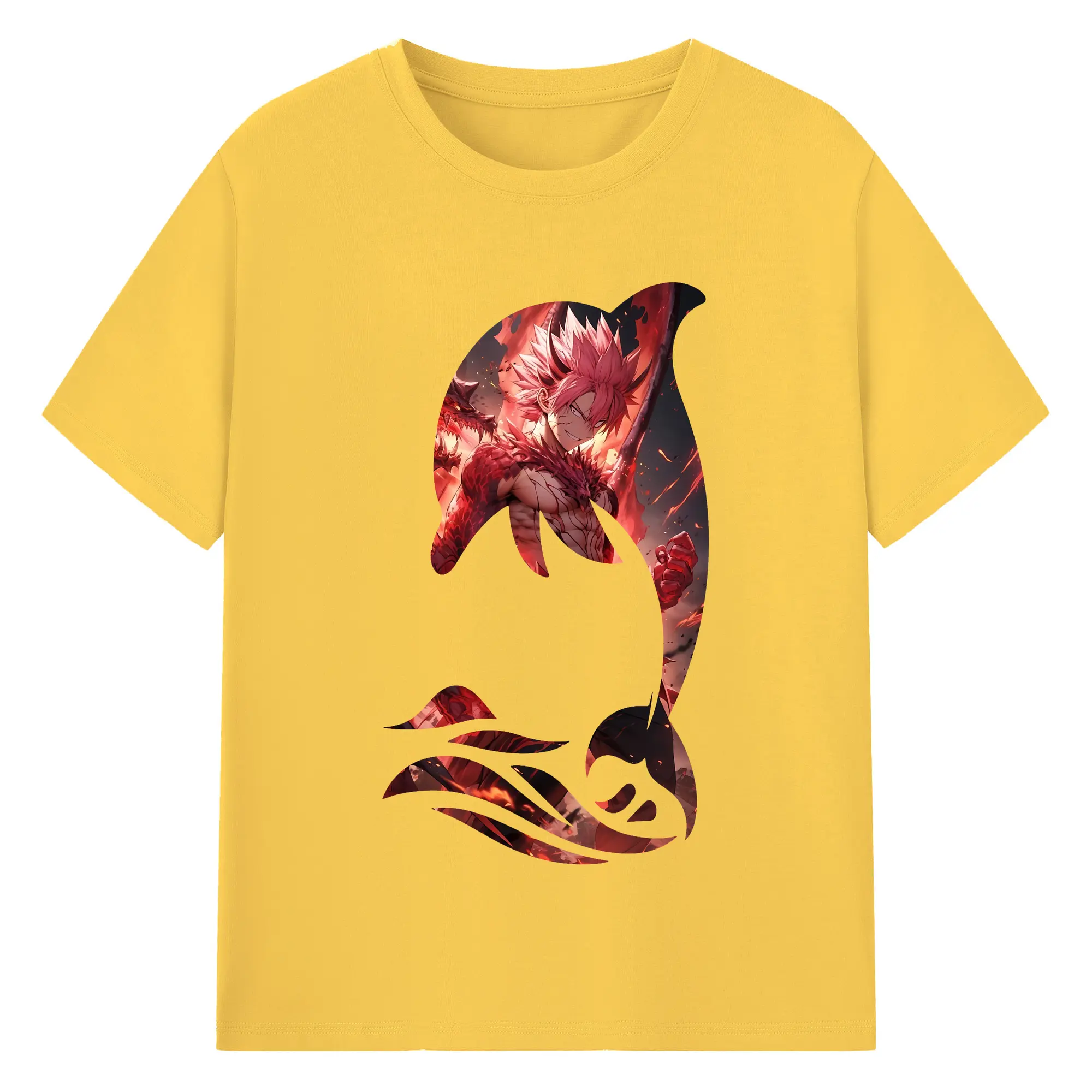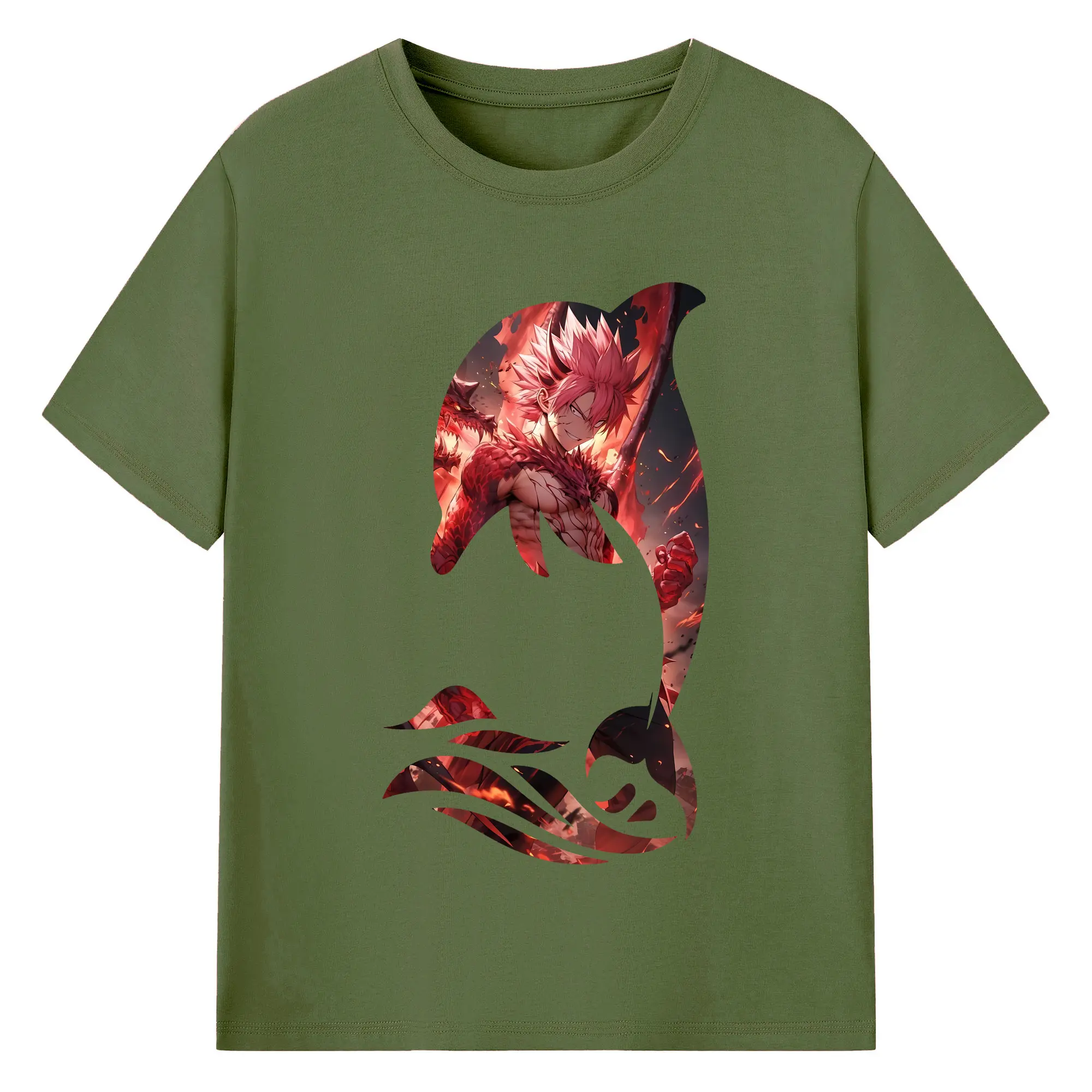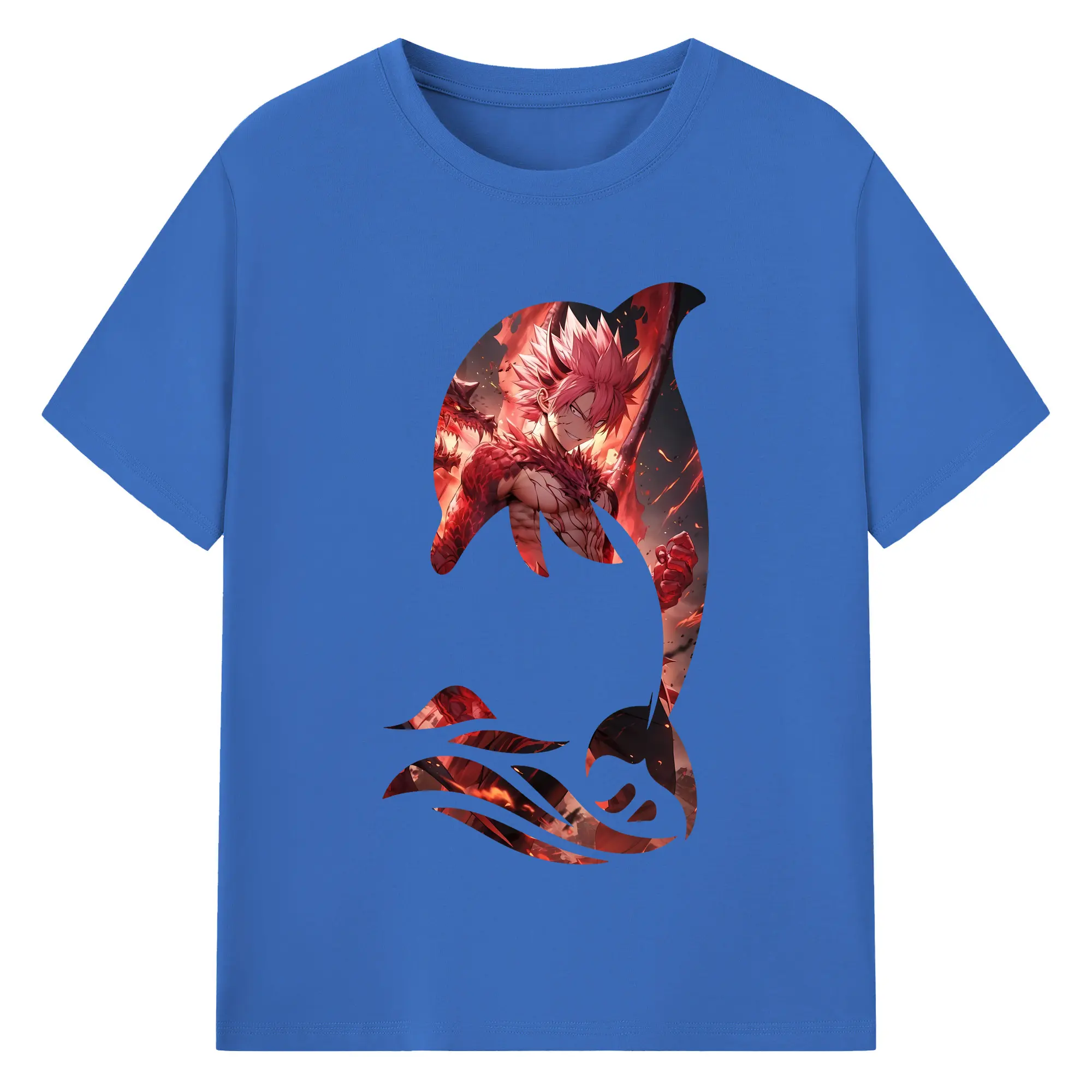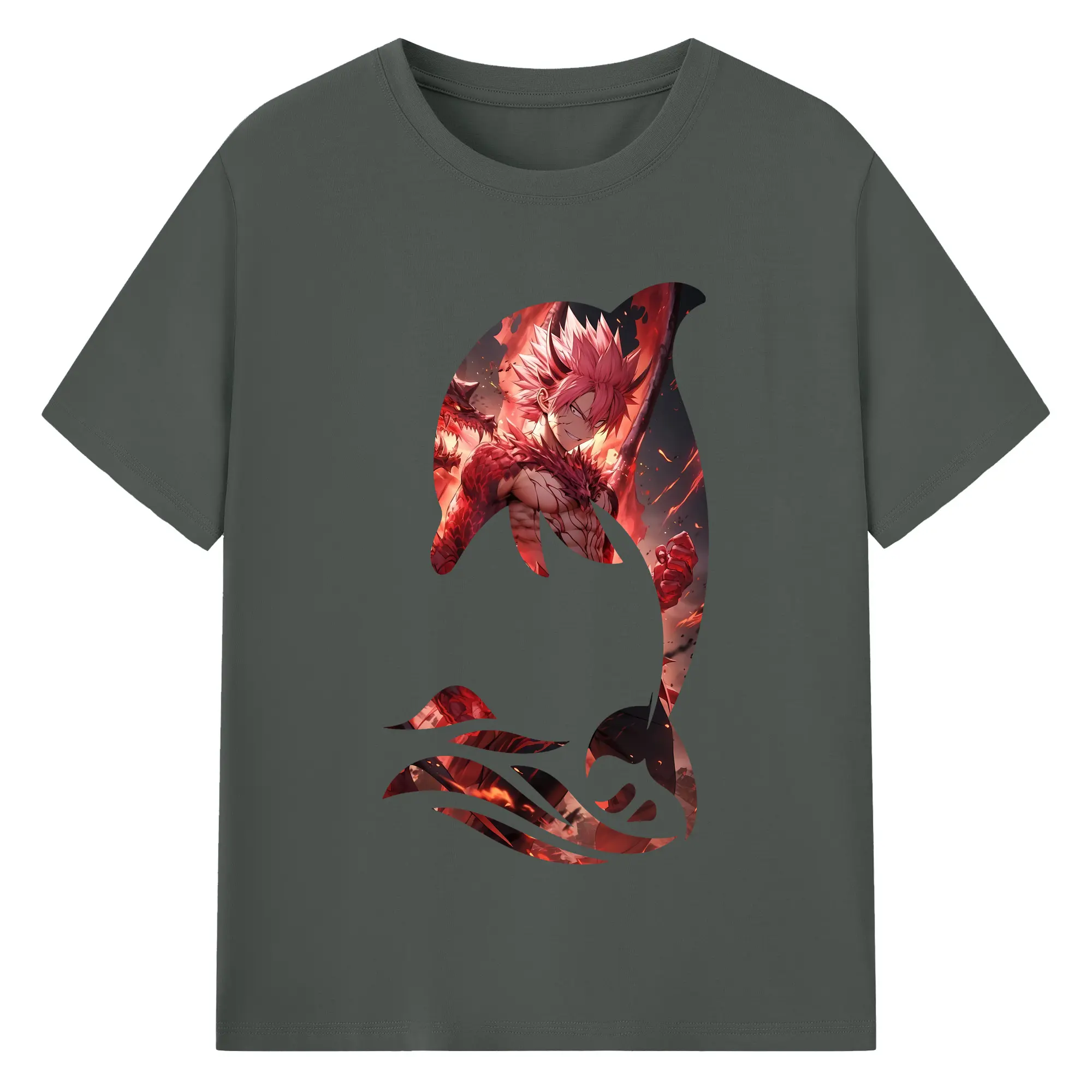フェアリーテイル グッズ ナツ・ドラグニル - 綿100% 半袖Tシャツ ・ バックプリント ・ 快適 通気性 ・ 日常使い 散歩 スポーツ用