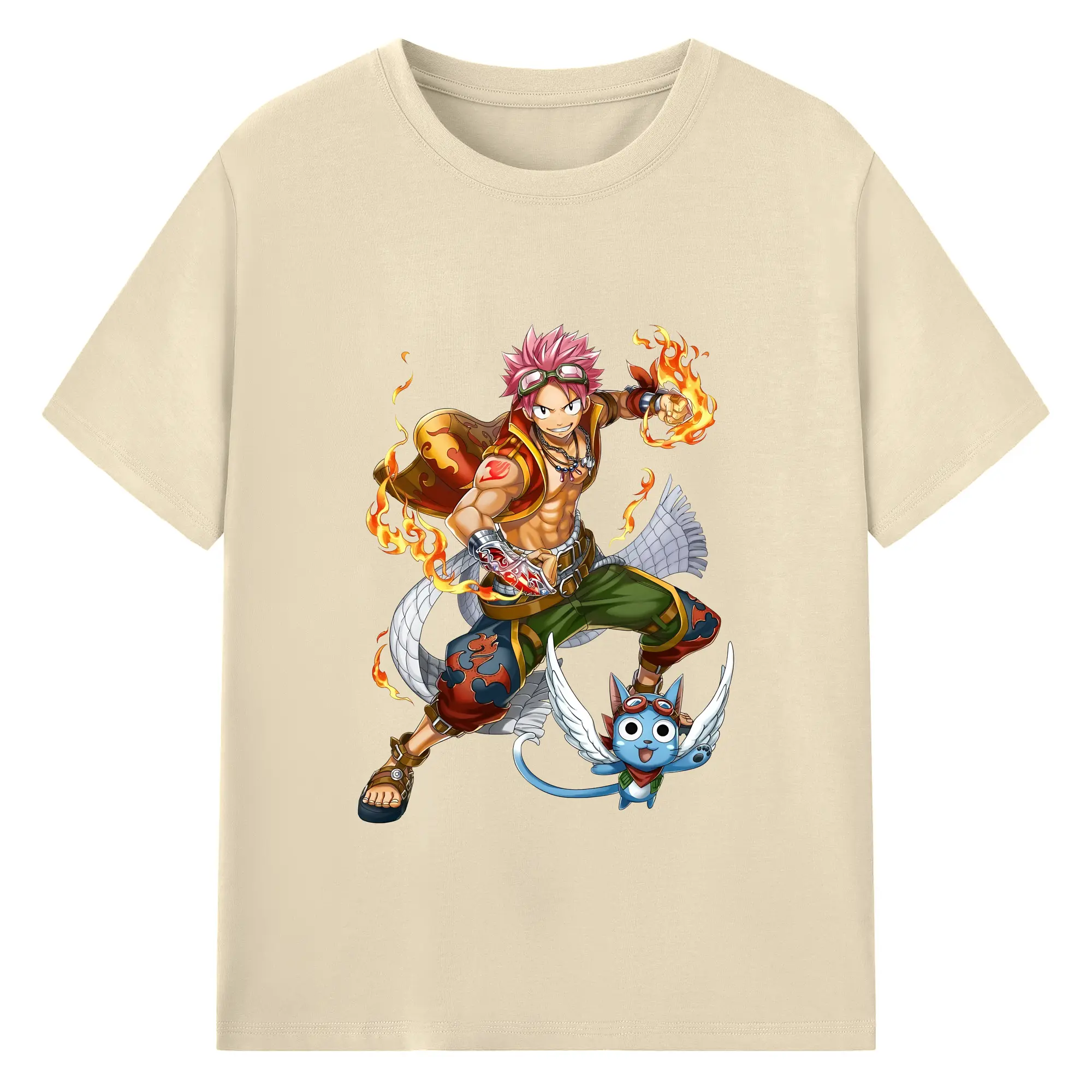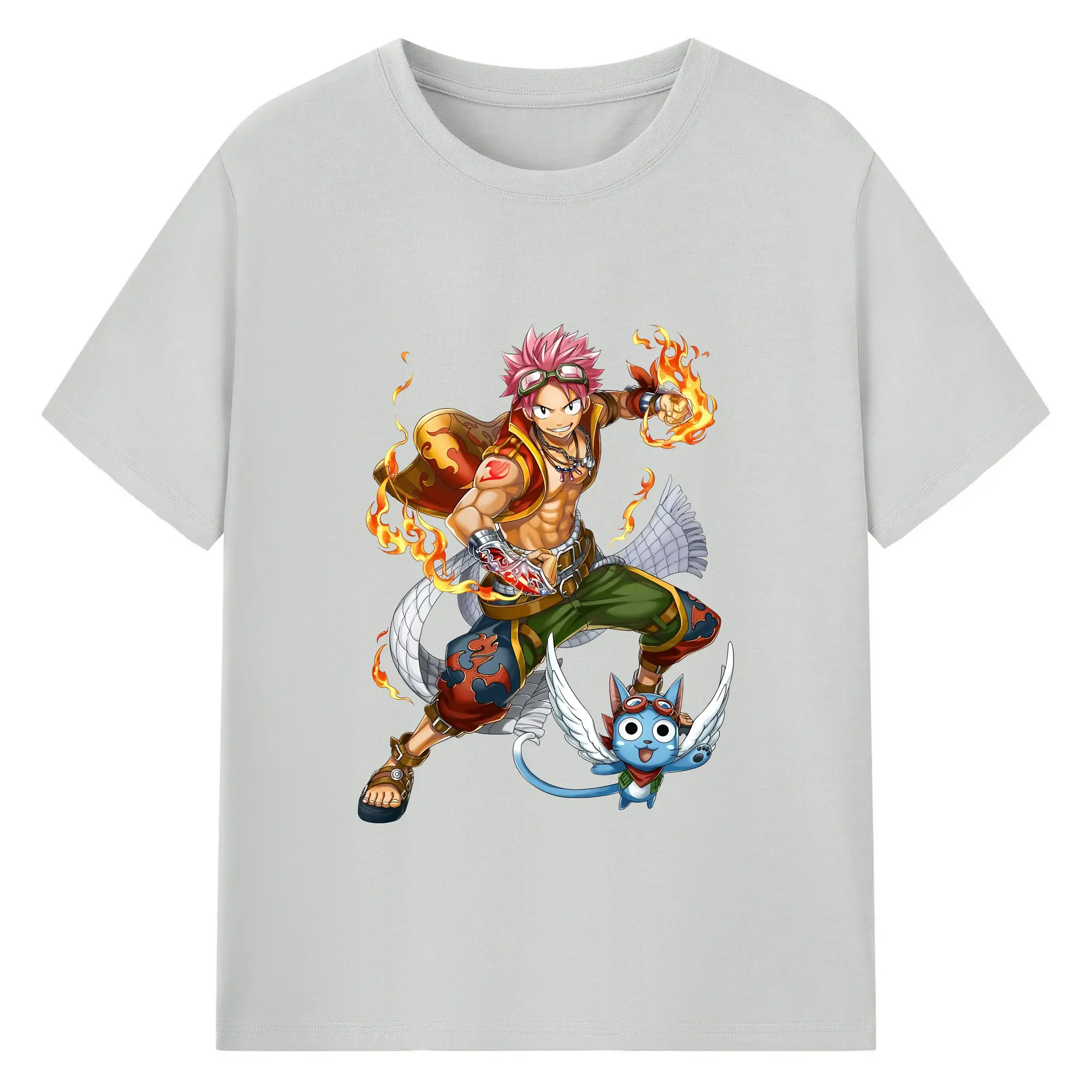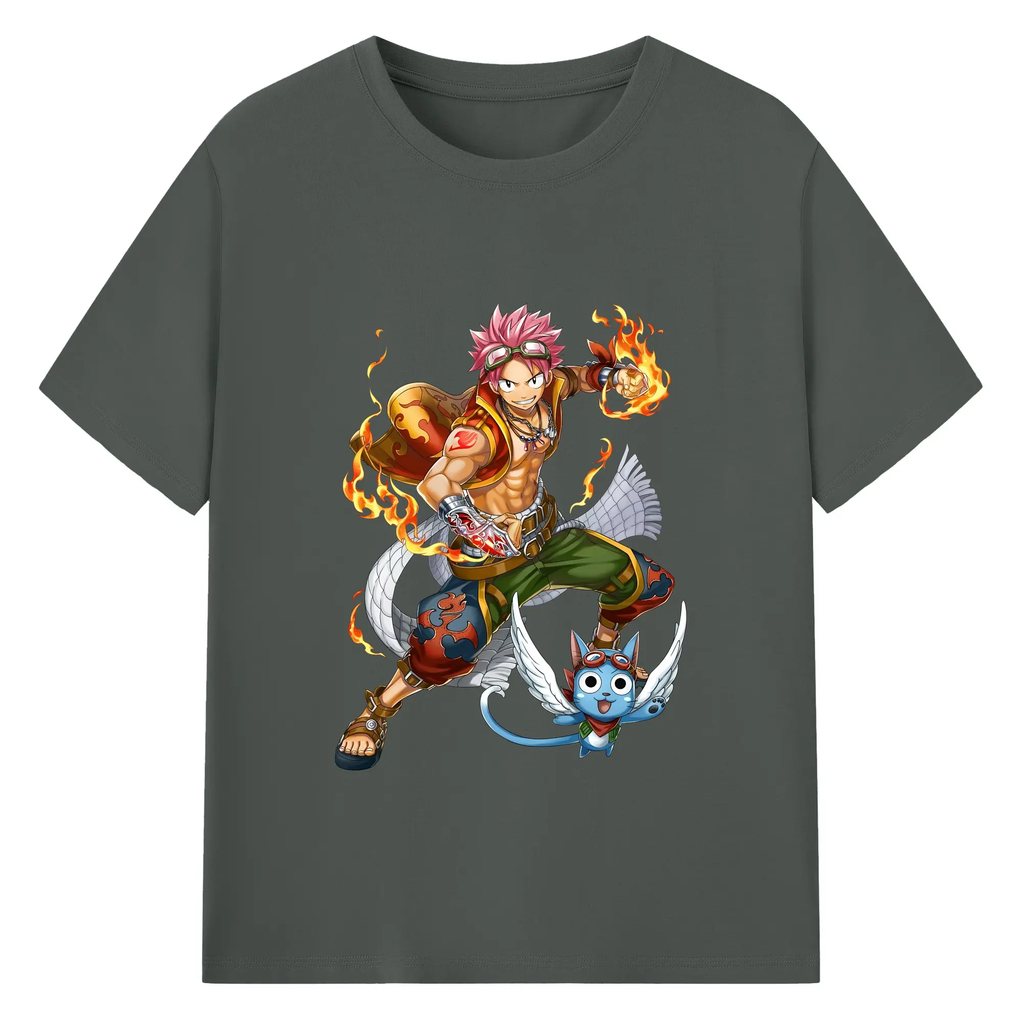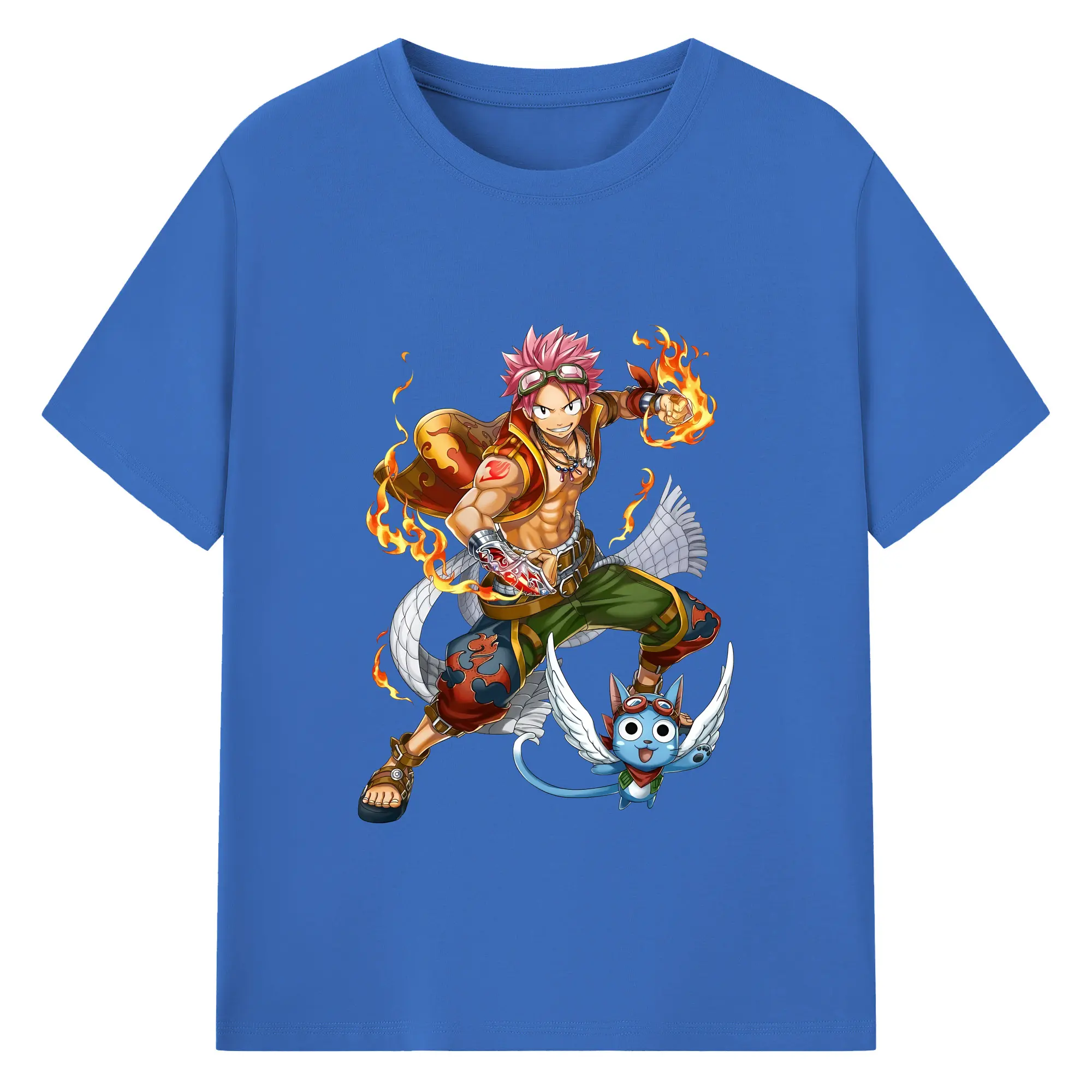 フェアリーテイル グッズ ナツ・ドラグニル - 綿100% 半袖Tシャツ ・ バックプリント ・ 快適 通気性 ・ 日常使い 散歩 スポーツ用