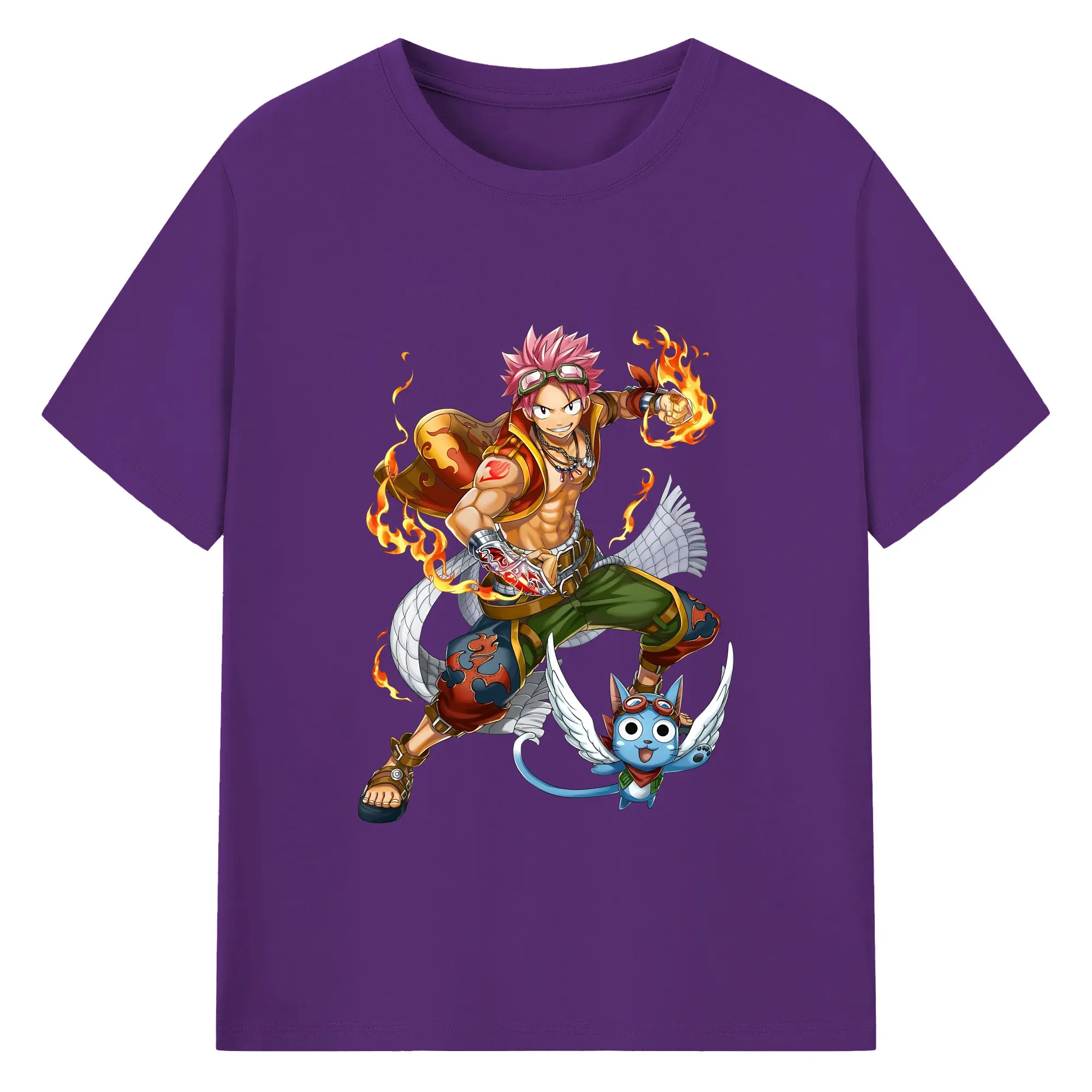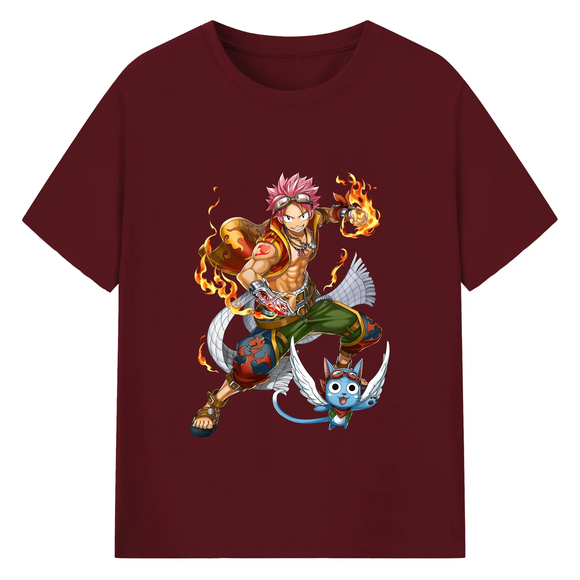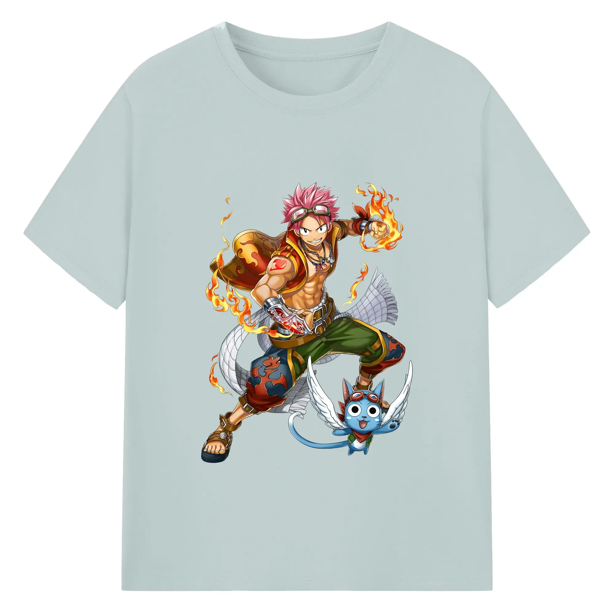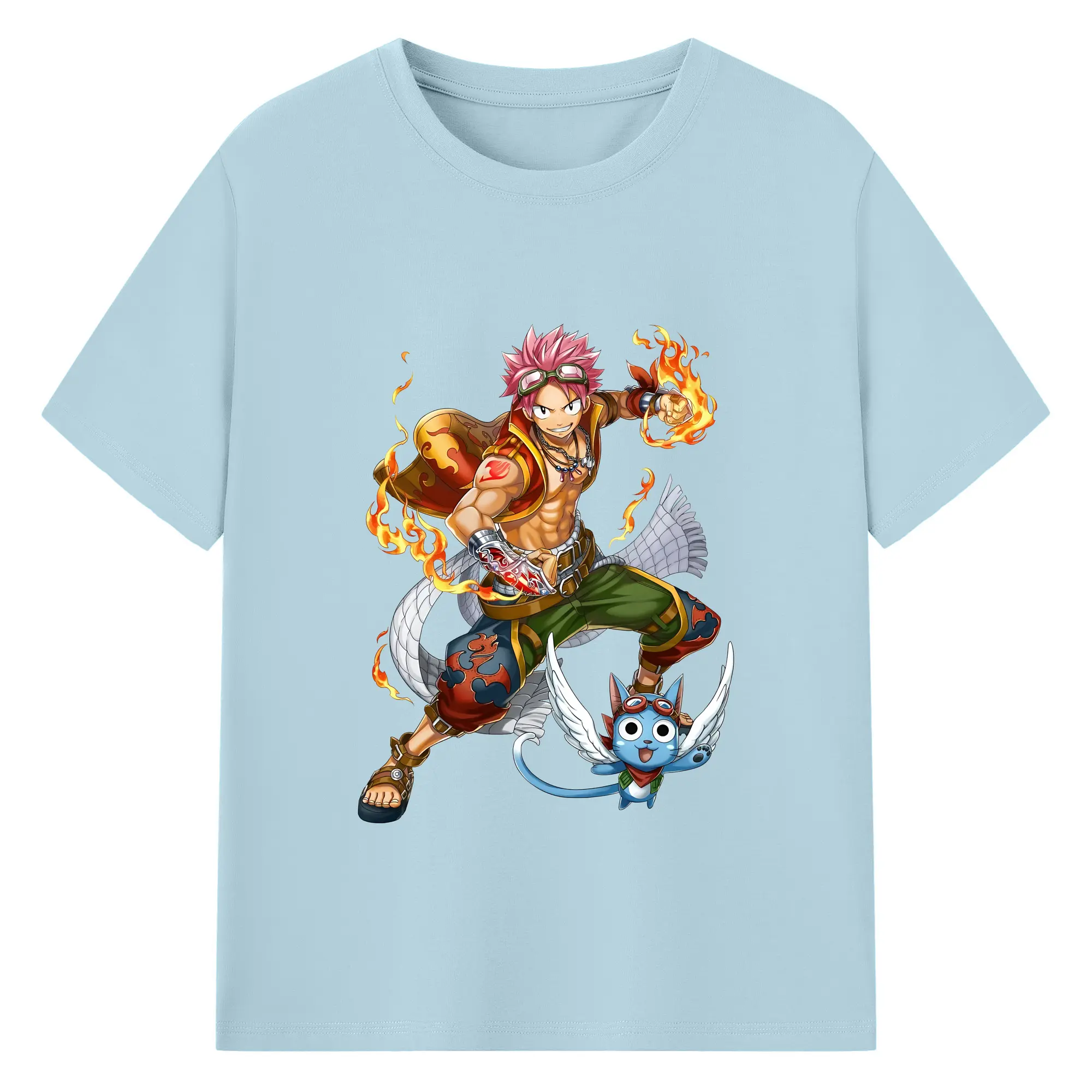 フェアリーテイル グッズ ナツ・ドラグニル - 綿100% 半袖Tシャツ ・ バックプリント ・ 快適 通気性 ・ 日常使い 散歩 スポーツ用