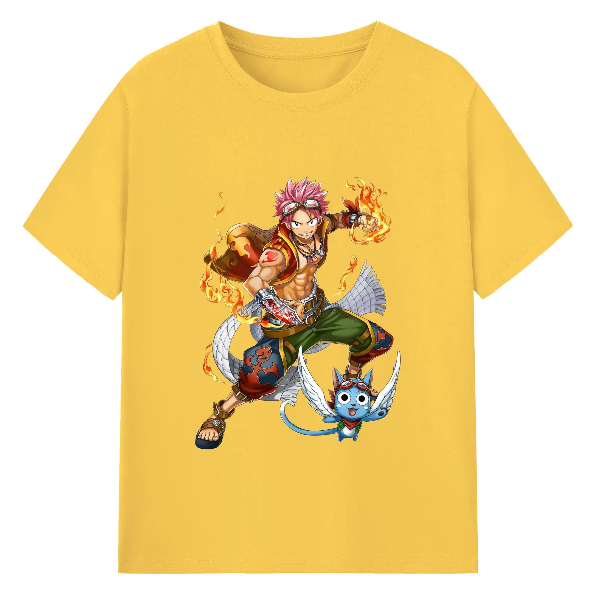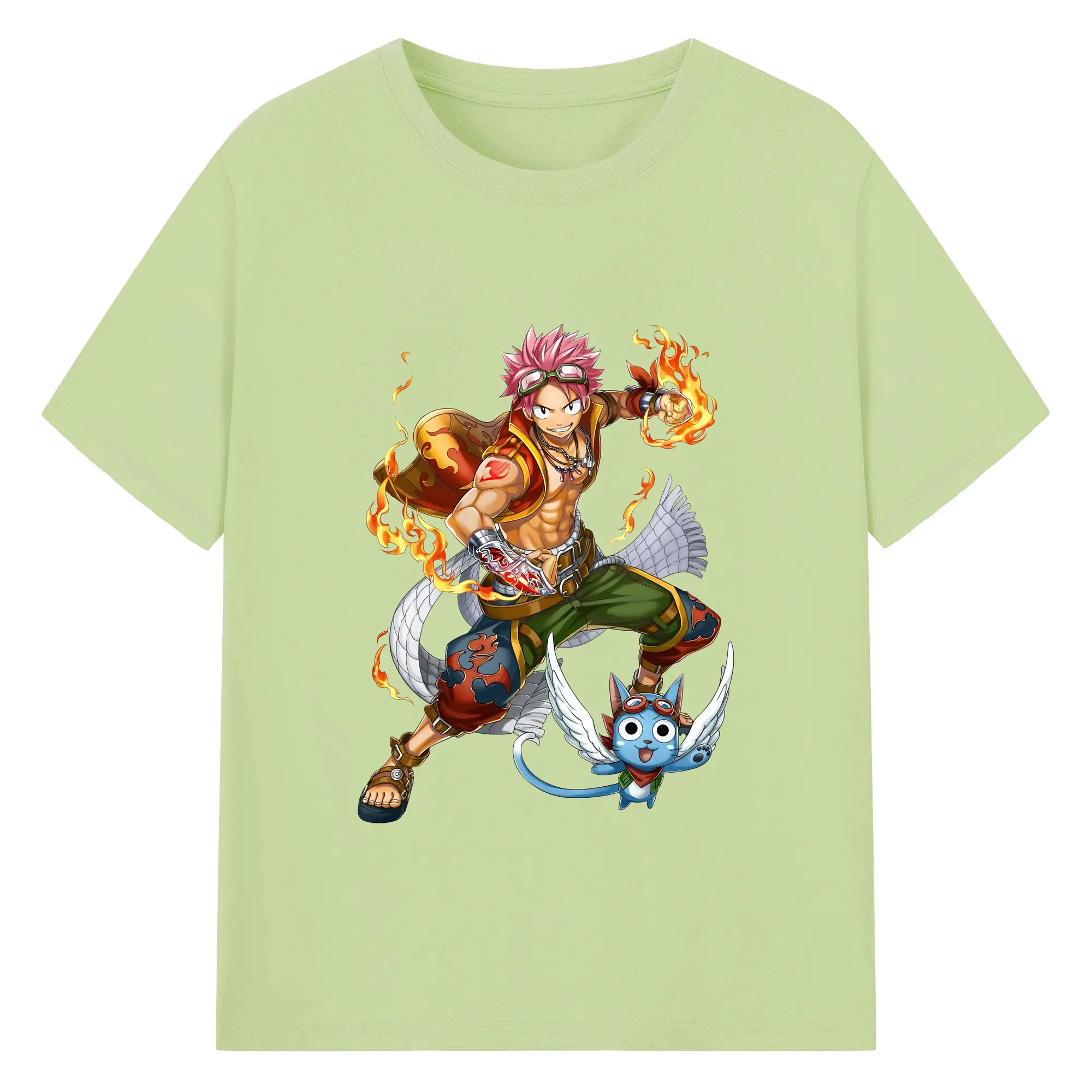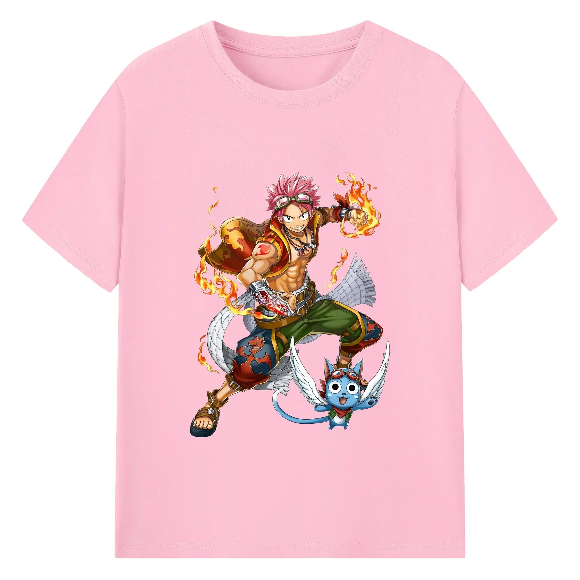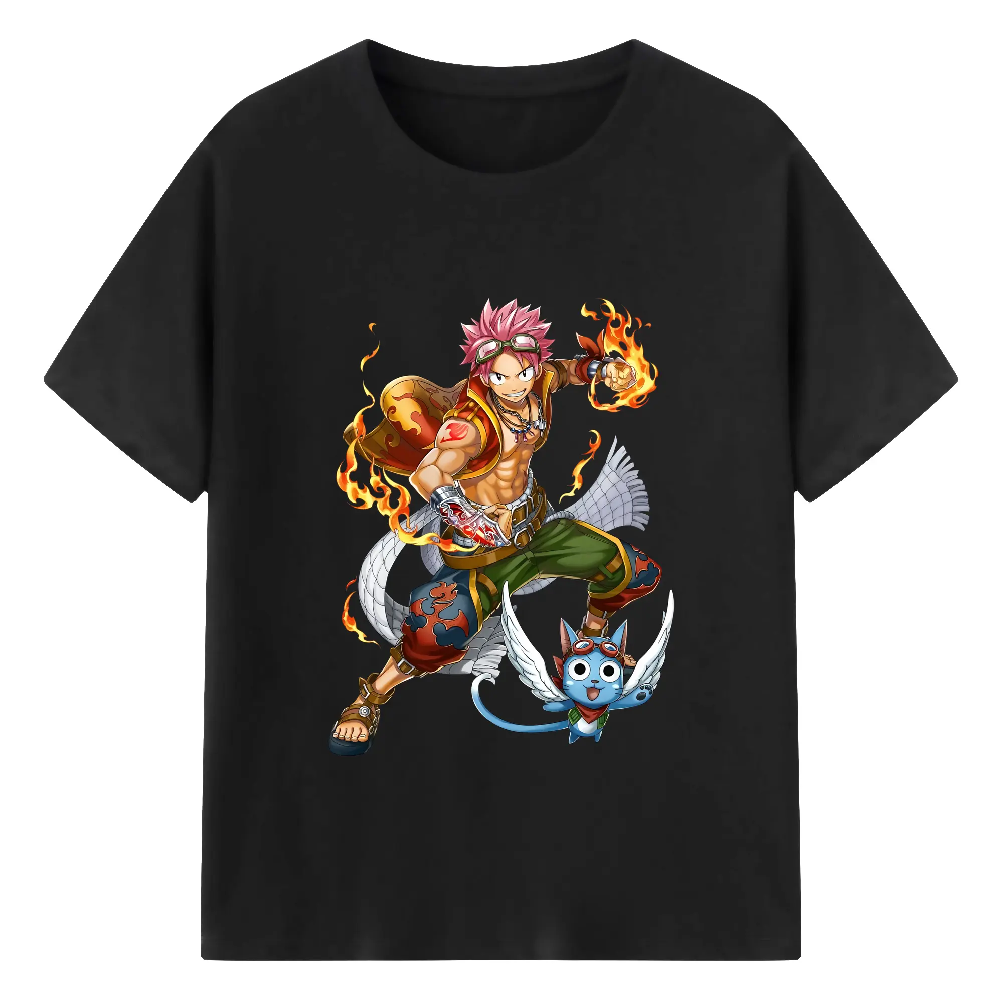 フェアリーテイル グッズ ナツ・ドラグニル - 綿100% 半袖Tシャツ ・ バックプリント ・ 快適 通気性 ・ 日常使い 散歩 スポーツ用
