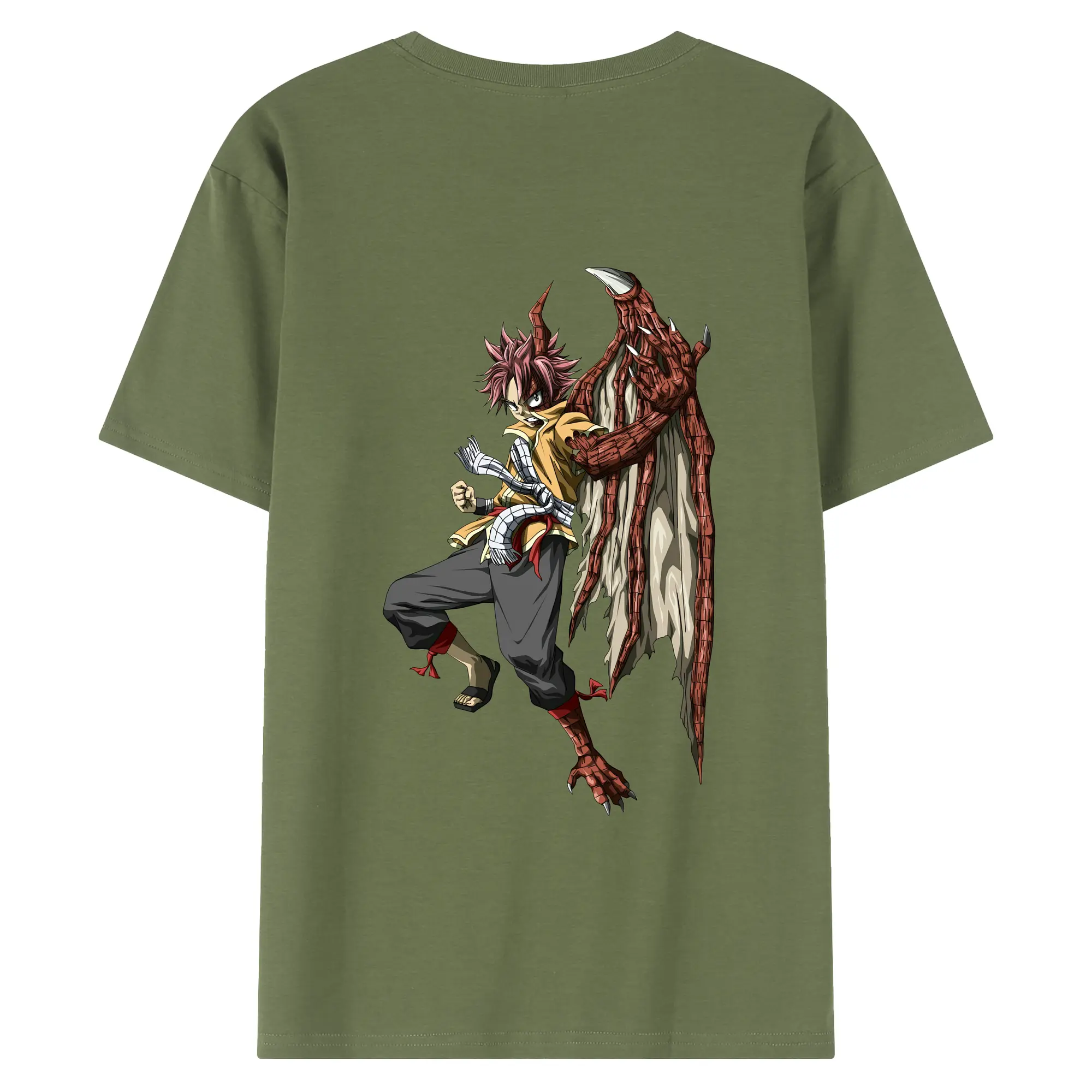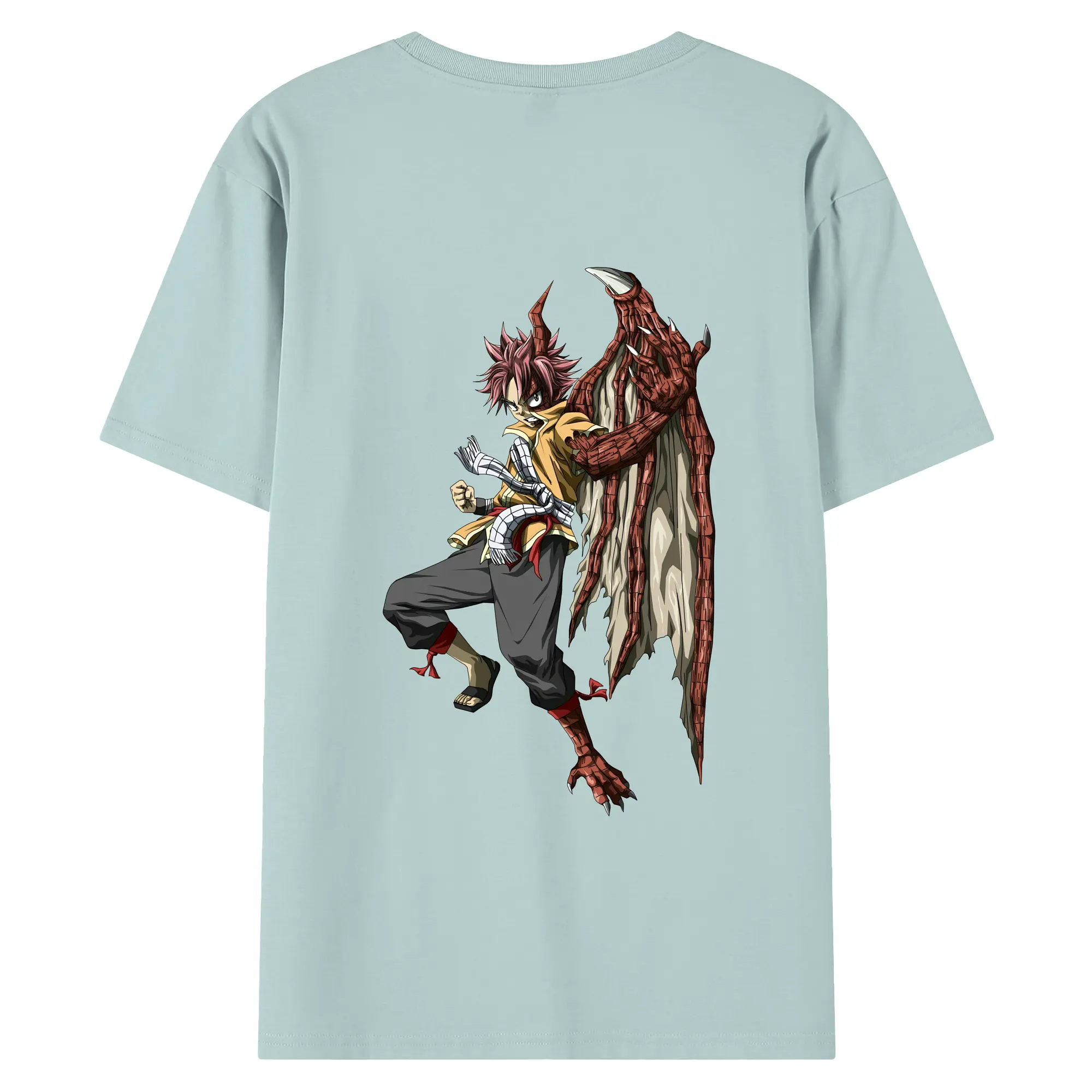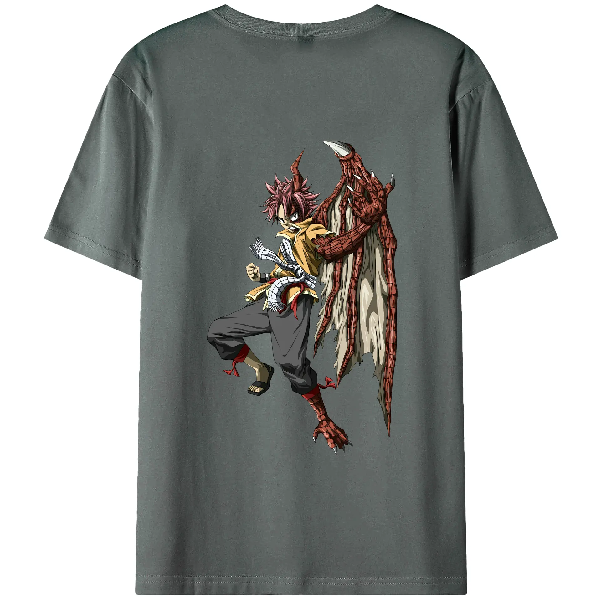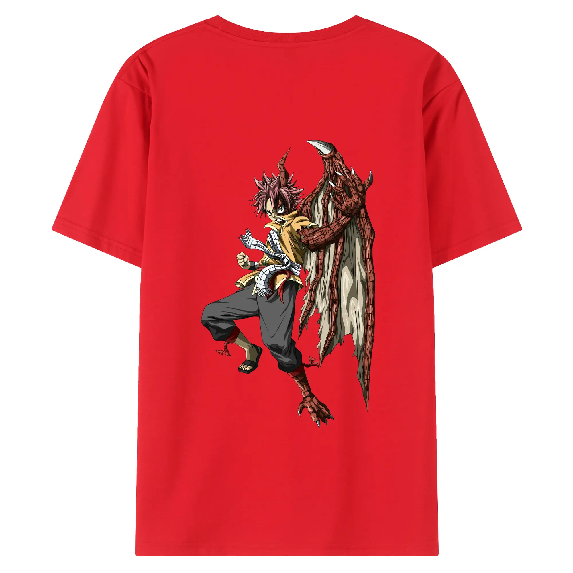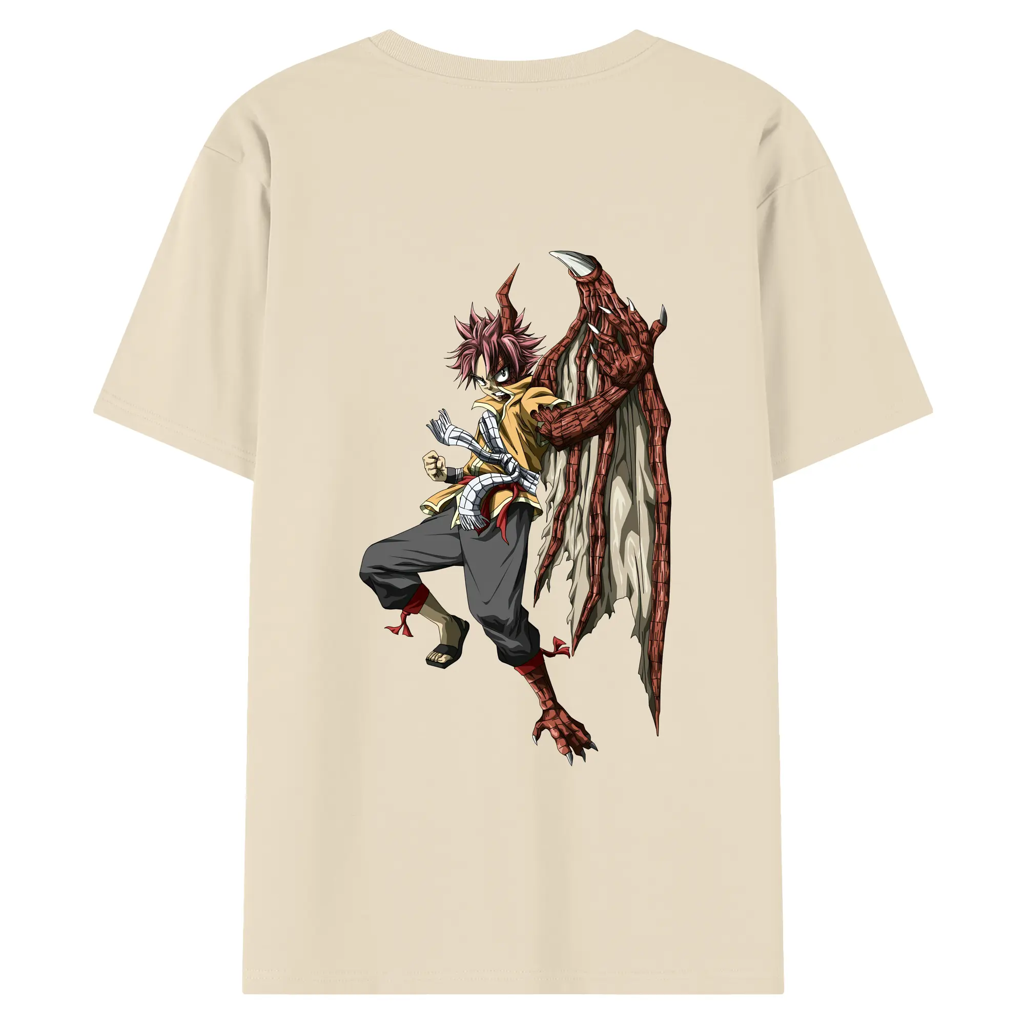 フェアリーテイル グッズ ナツ・ドラグニル - 綿100% ヴィンテージ風 半袖Tシャツ ・ 背面プリント ・ 柔らか肌触り ・ 通気性 快適 ・ スポーツ カジュアル 外出用