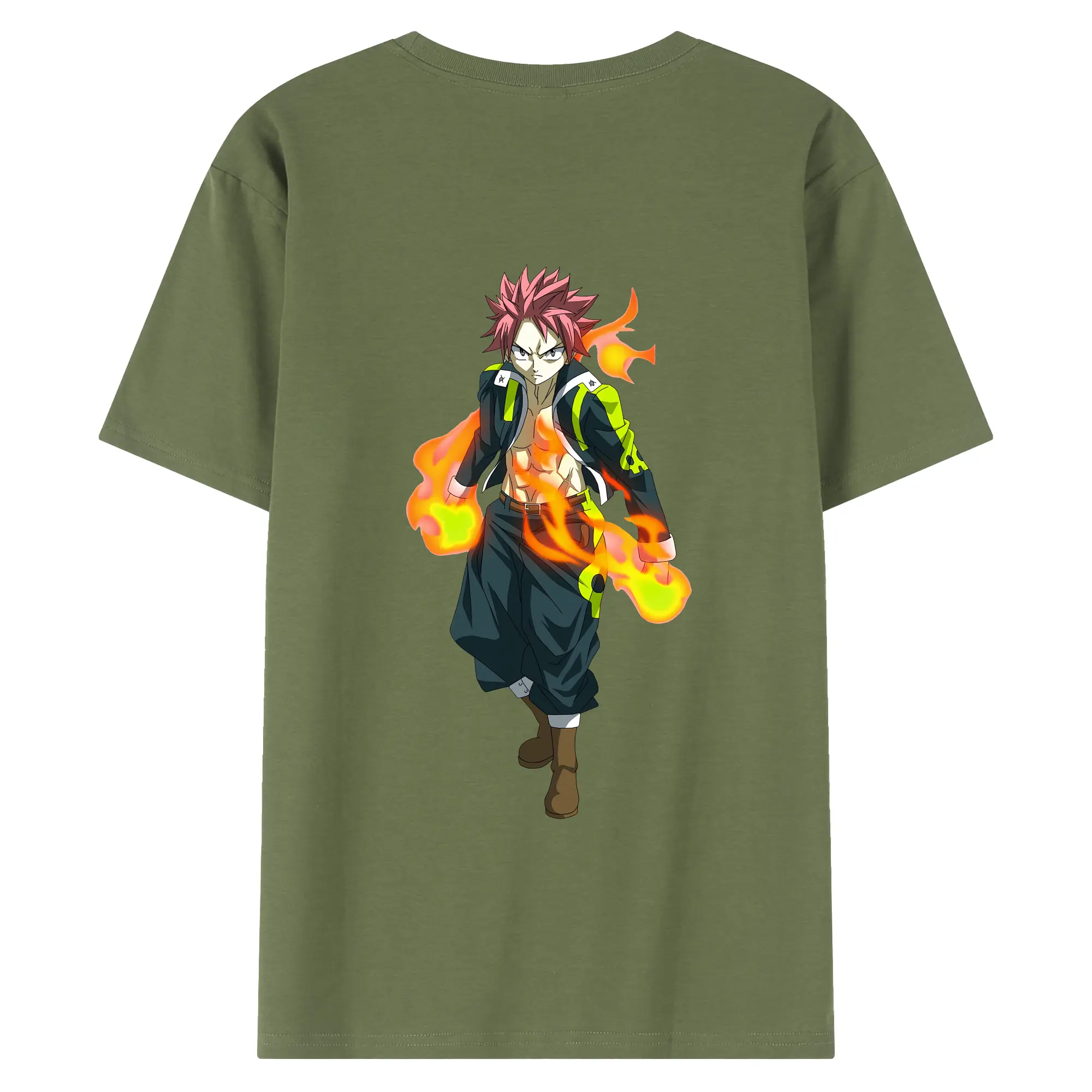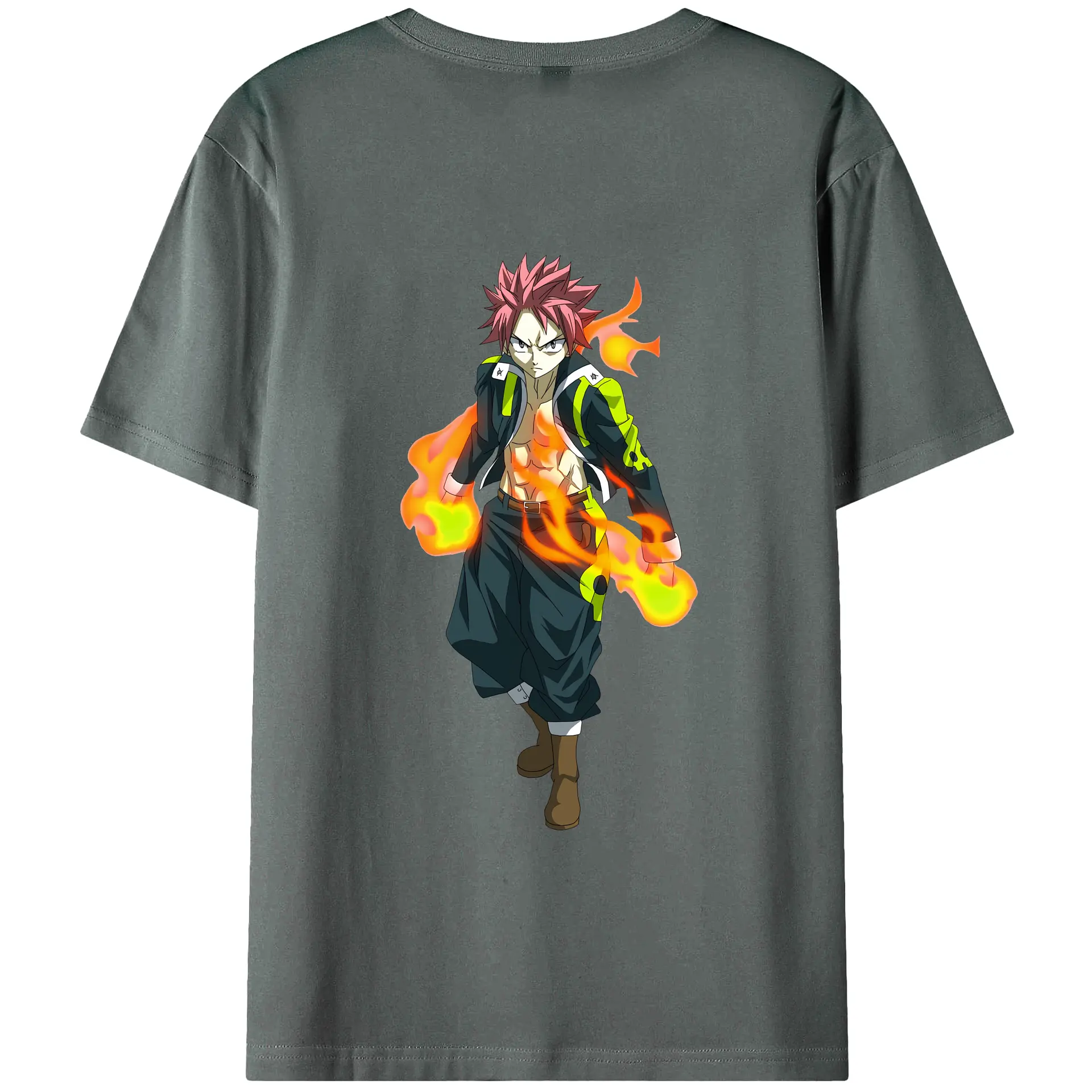 フェアリーテイル グッズ ナツ・ドラグニル - 綿100% ヴィンテージ風 半袖Tシャツ ・ 背面プリント ・ 柔らか肌触り ・ 通気性 快適 ・ スポーツ カジュアル 外出用
