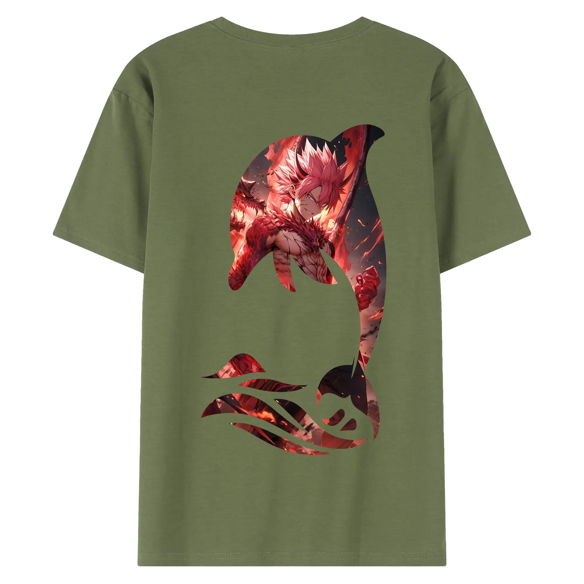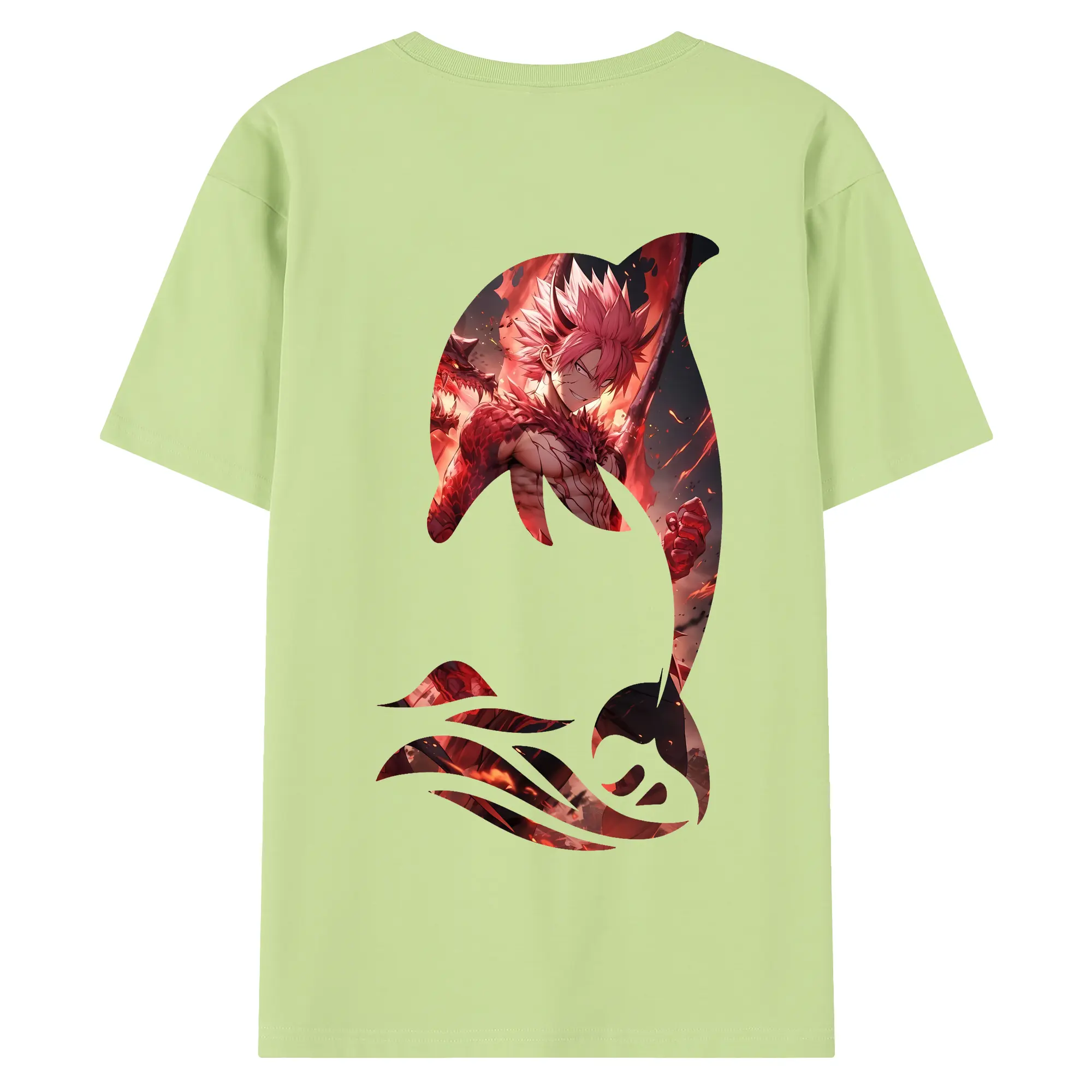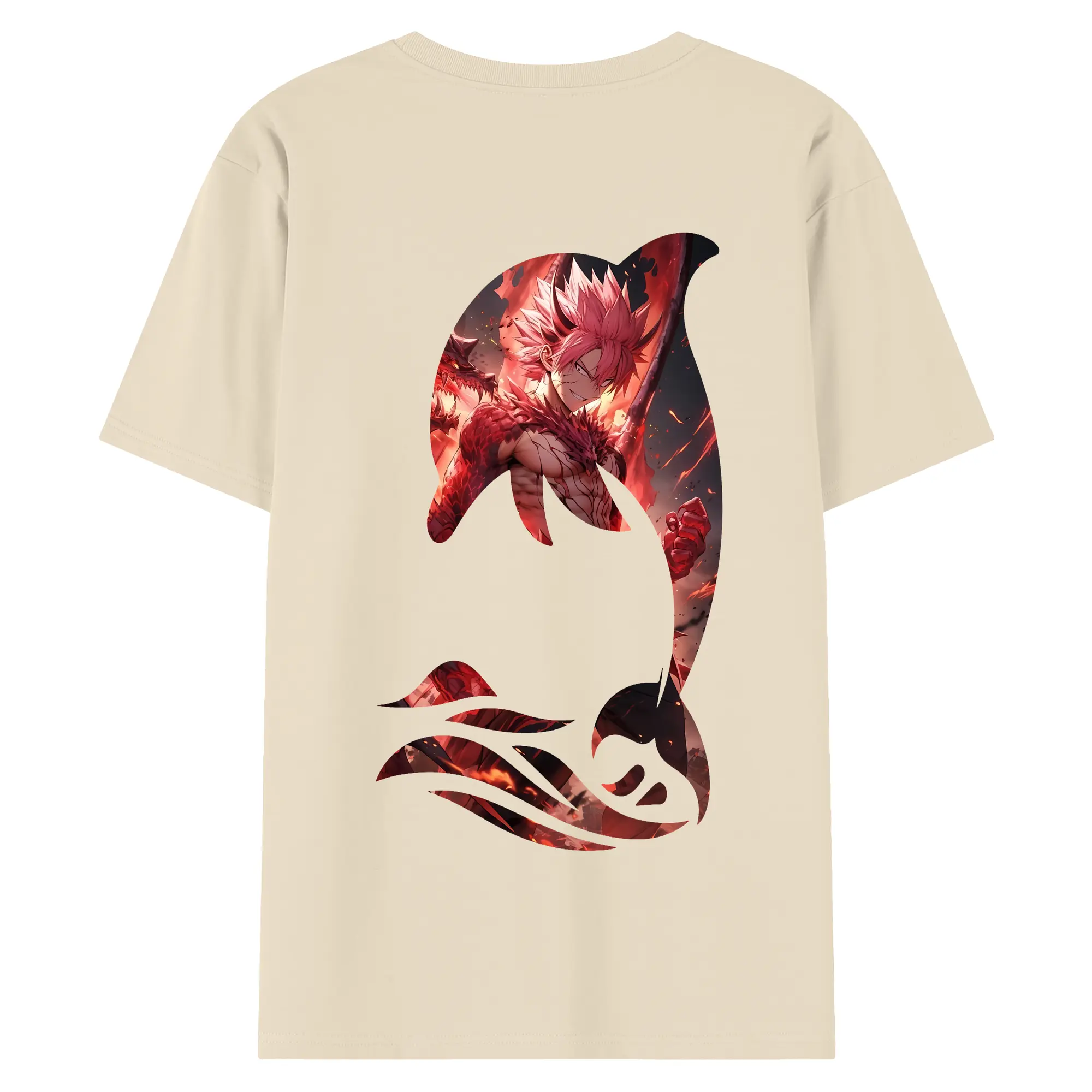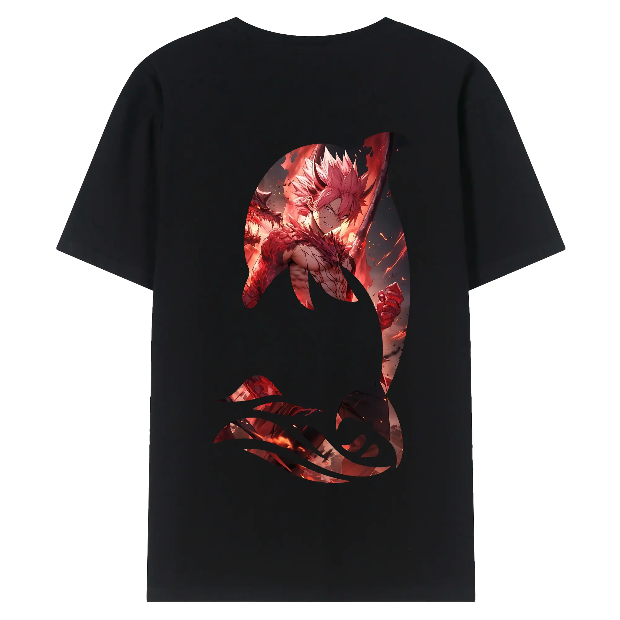 フェアリーテイル グッズ ナツ・ドラグニル - 綿100% ヴィンテージ風 半袖Tシャツ ・ 背面プリント ・ 柔らか肌触り ・ 通気性 快適 ・ スポーツ カジュアル 外出用