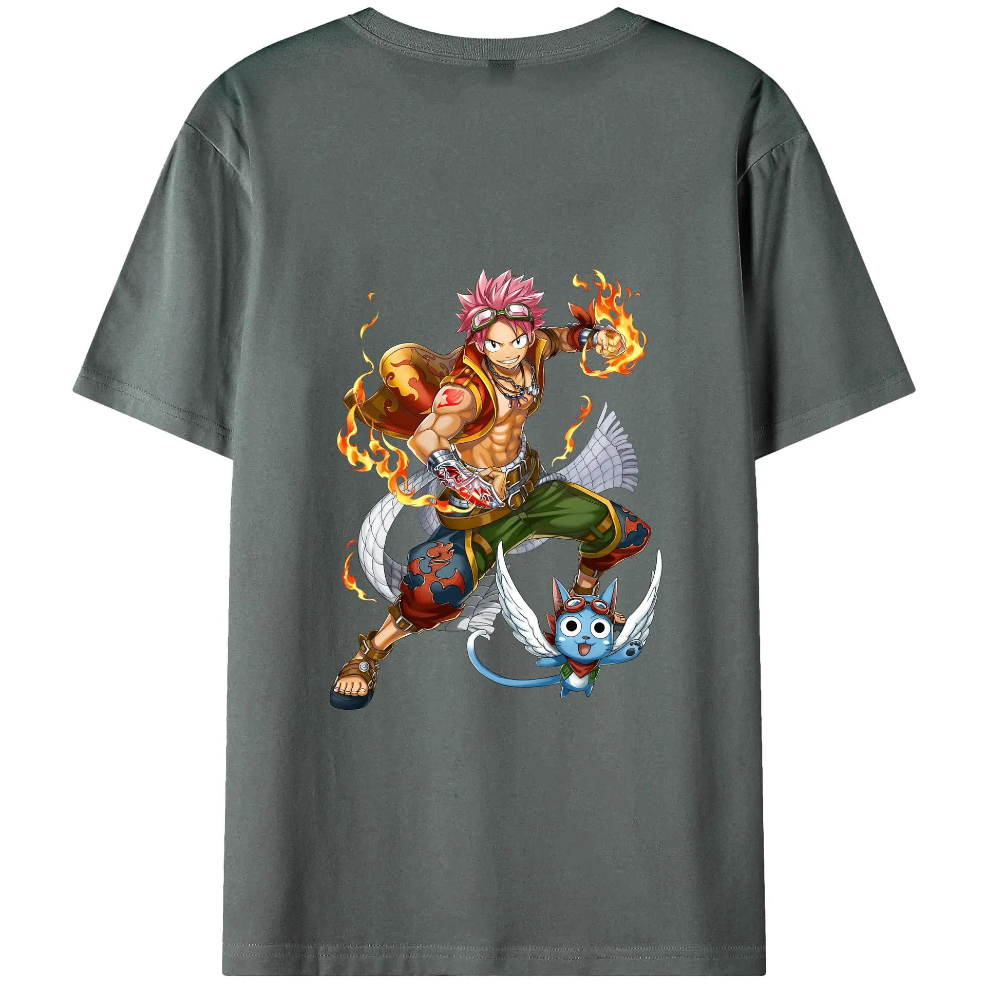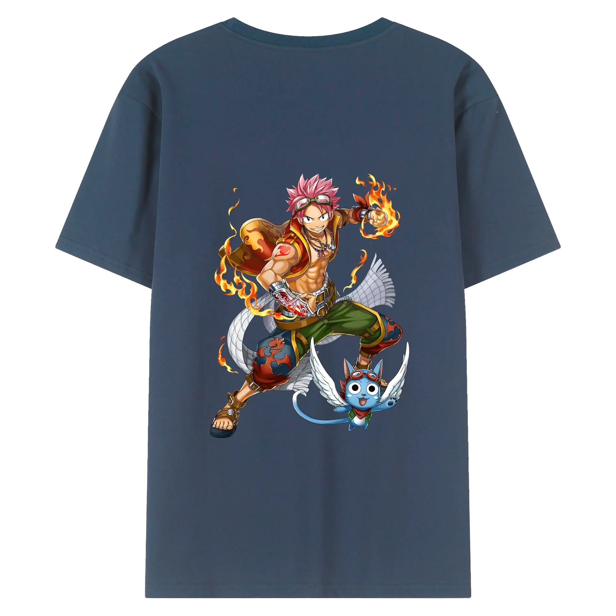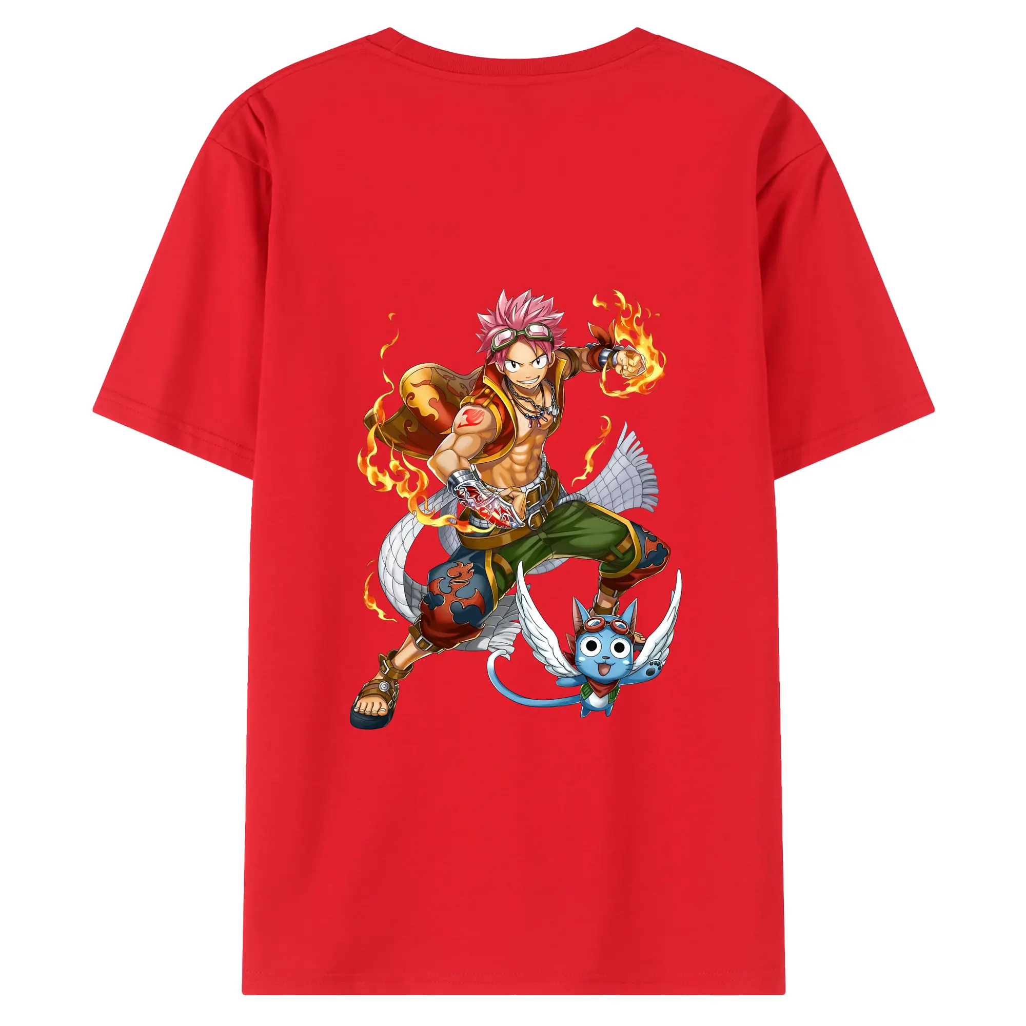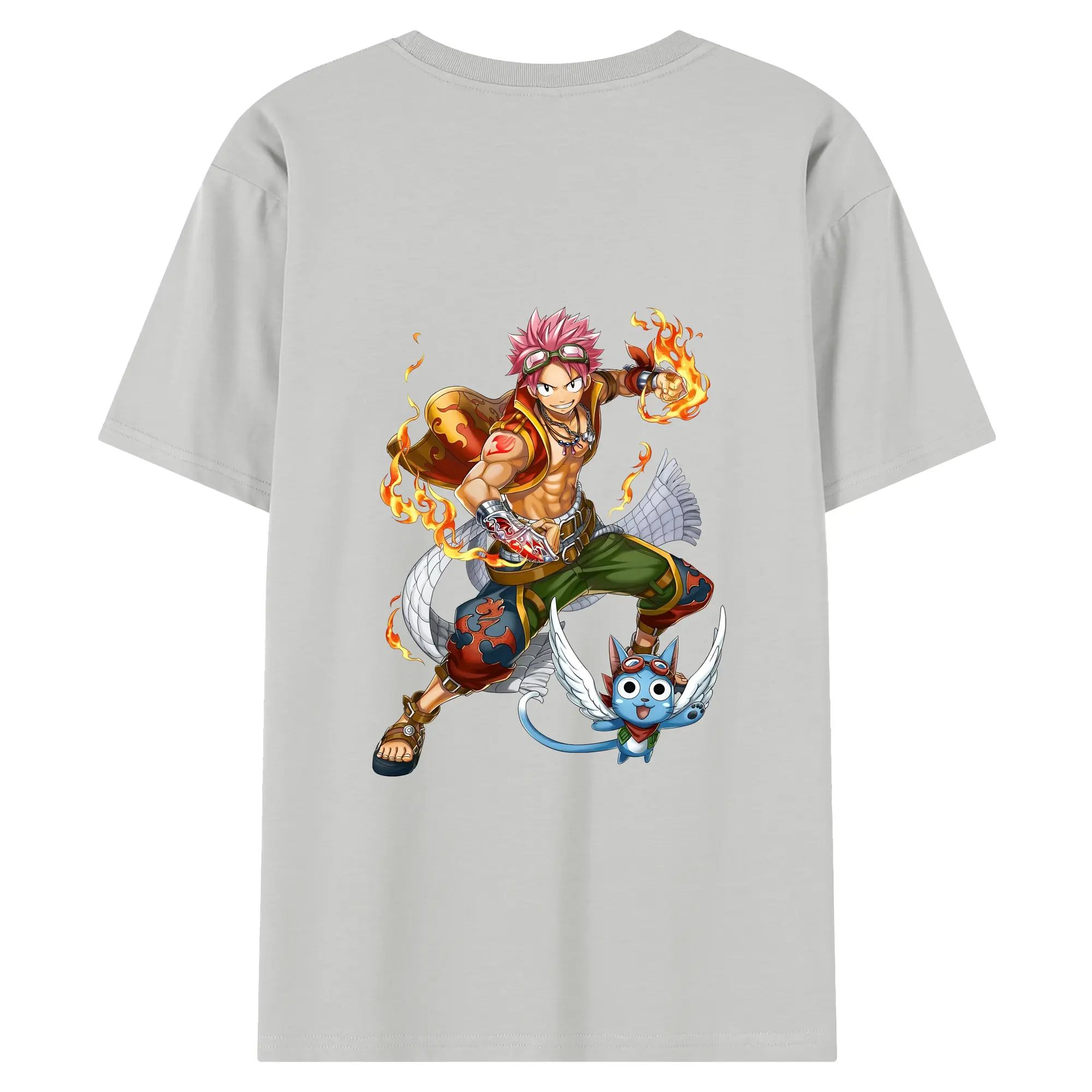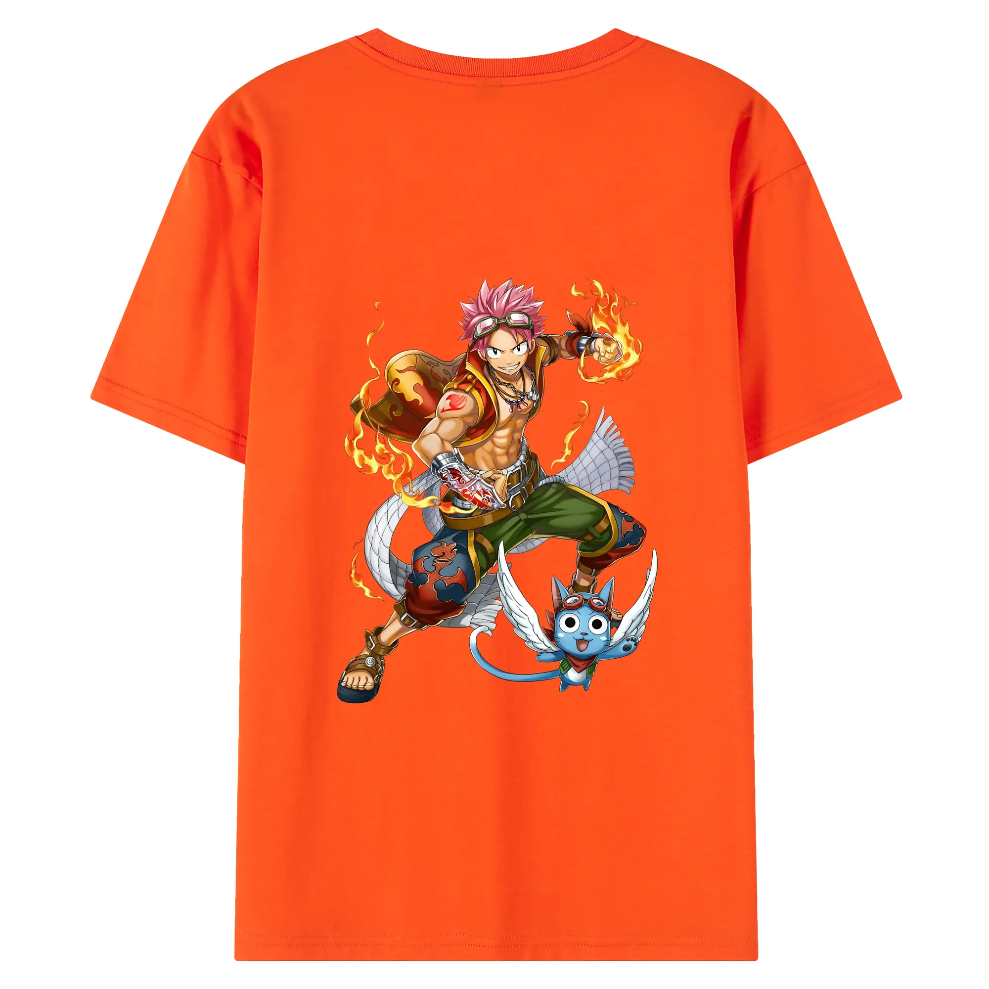 フェアリーテイル グッズ ナツ・ドラグニル - 綿100% ヴィンテージ風 半袖Tシャツ ・ 背面プリント ・ 柔らか肌触り ・ 通気性 快適 ・ スポーツ カジュアル 外出用