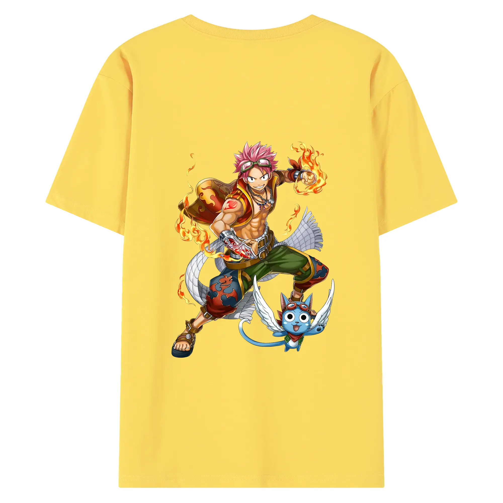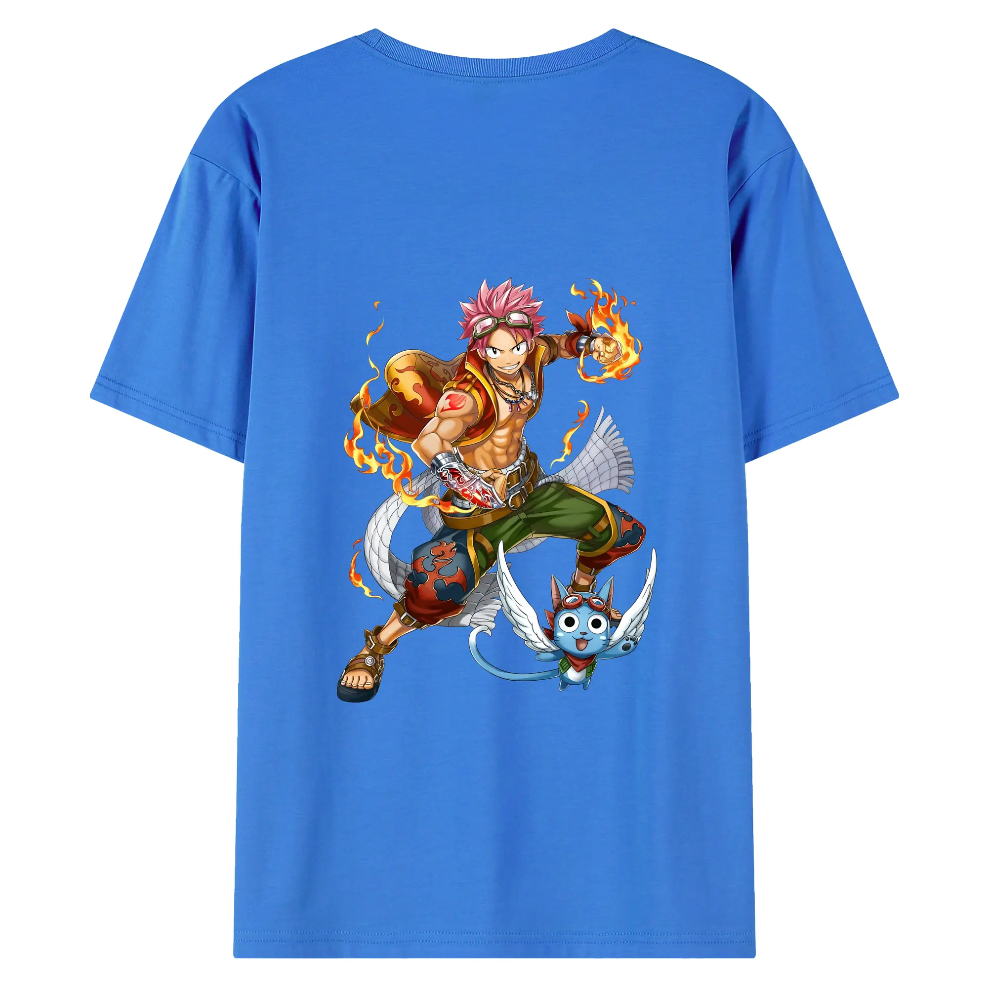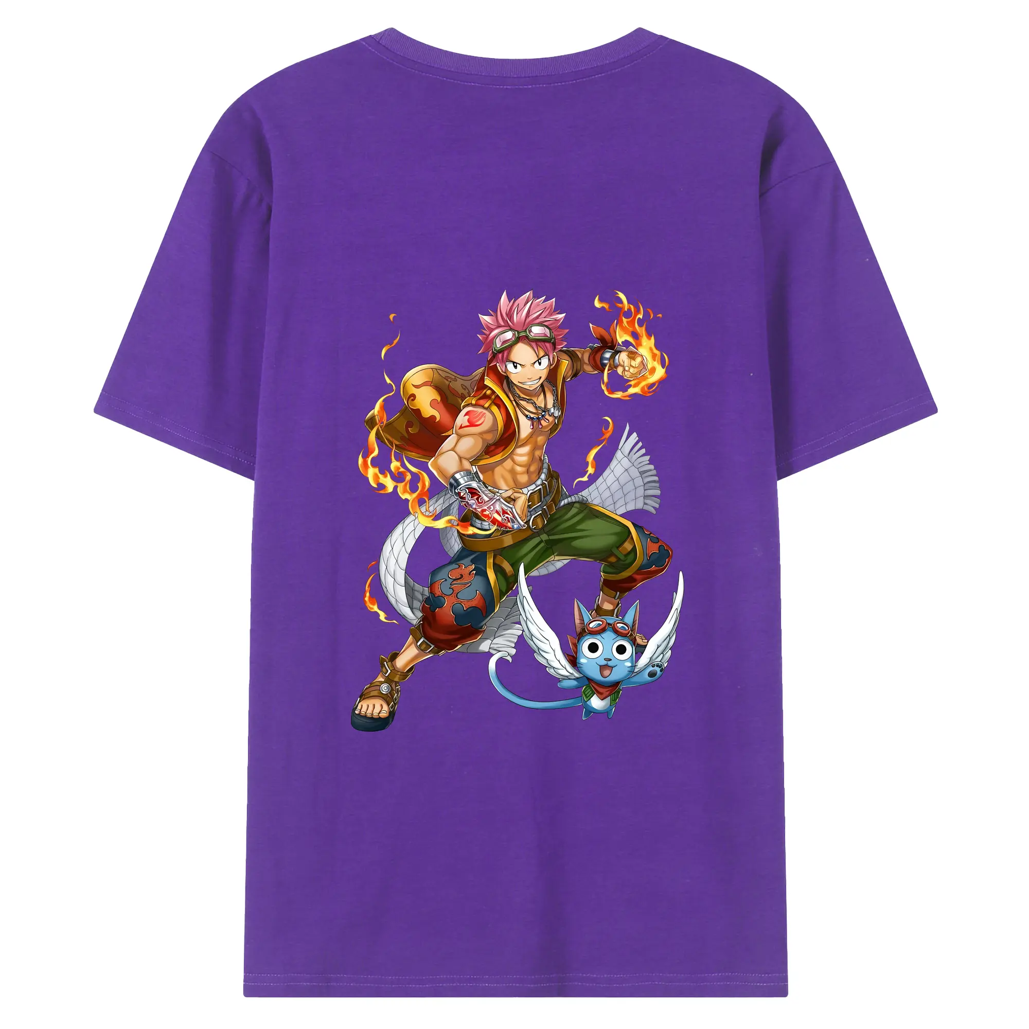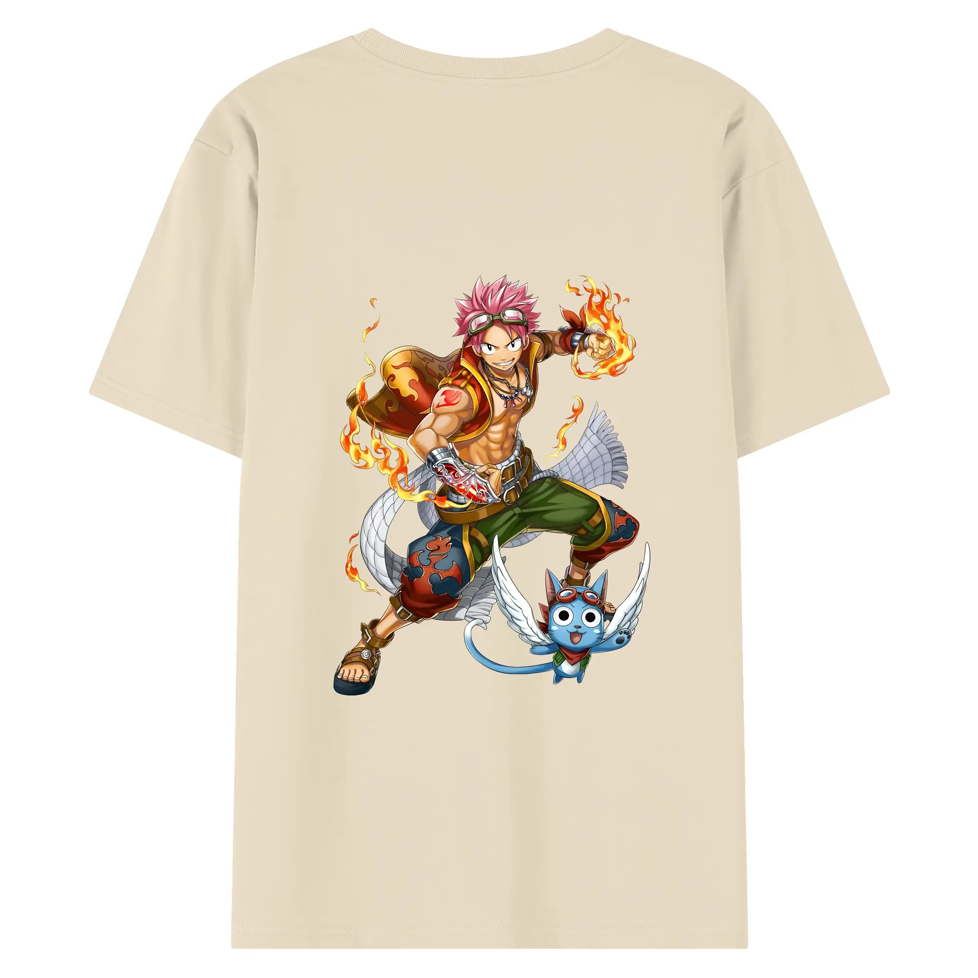 フェアリーテイル グッズ ナツ・ドラグニル - 綿100% ヴィンテージ風 半袖Tシャツ ・ 背面プリント ・ 柔らか肌触り ・ 通気性 快適 ・ スポーツ カジュアル 外出用