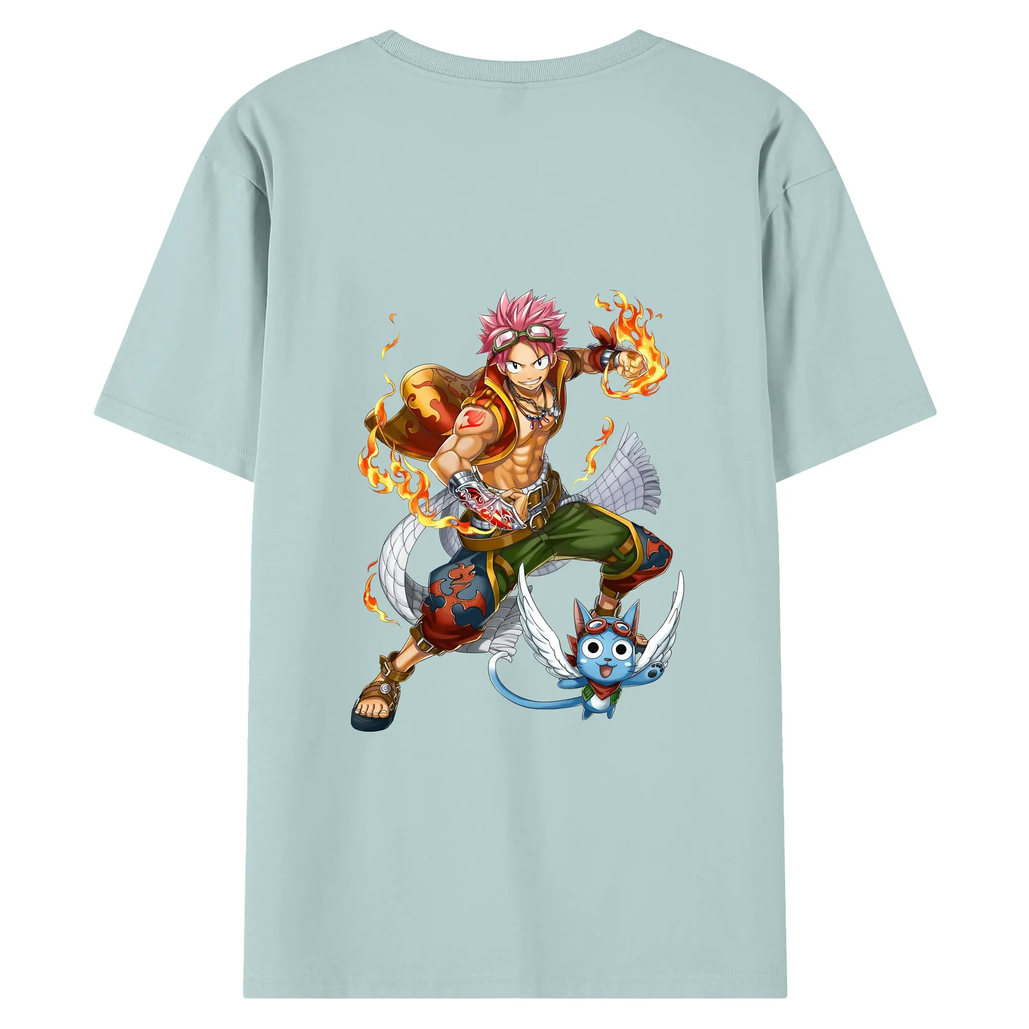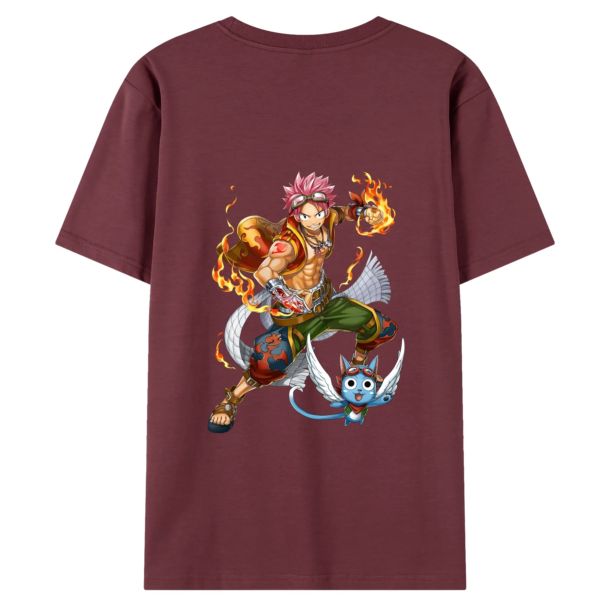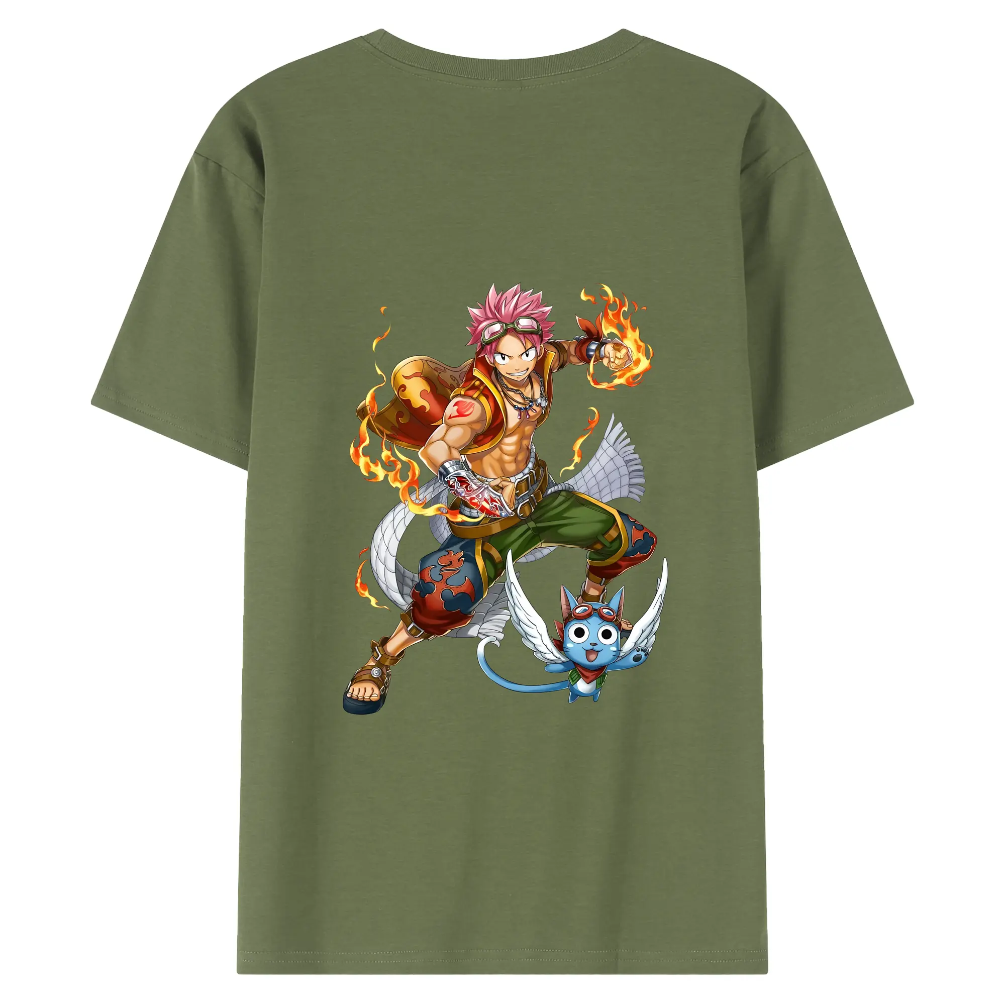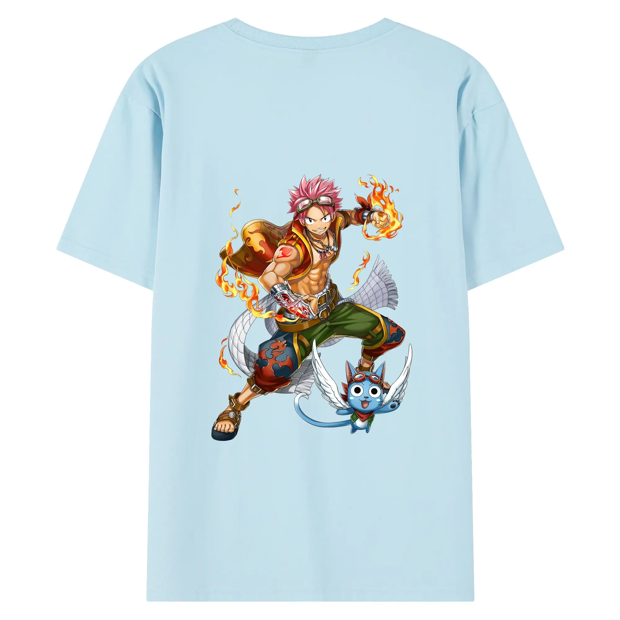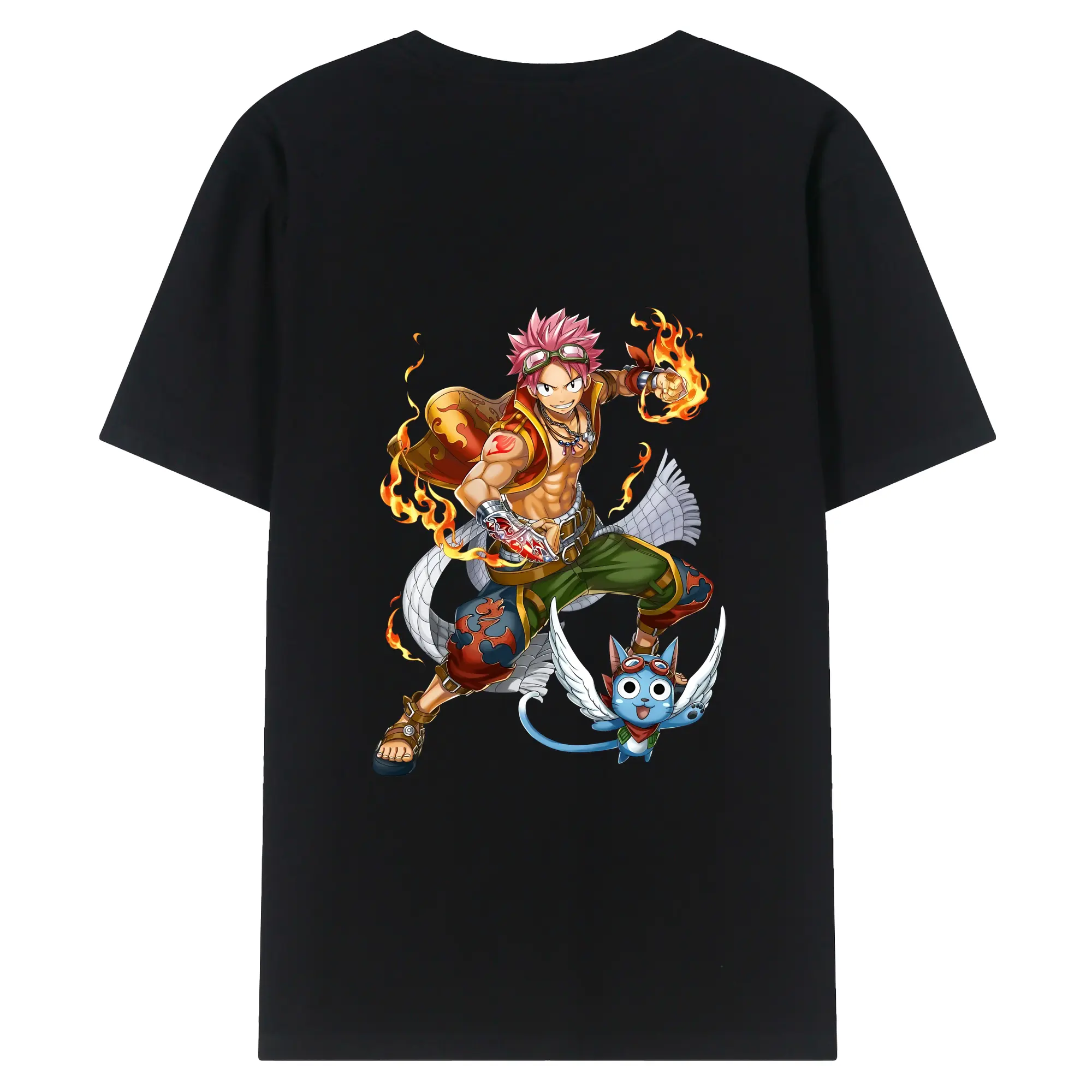 フェアリーテイル グッズ ナツ・ドラグニル - 綿100% ヴィンテージ風 半袖Tシャツ ・ 背面プリント ・ 柔らか肌触り ・ 通気性 快適 ・ スポーツ カジュアル 外出用
