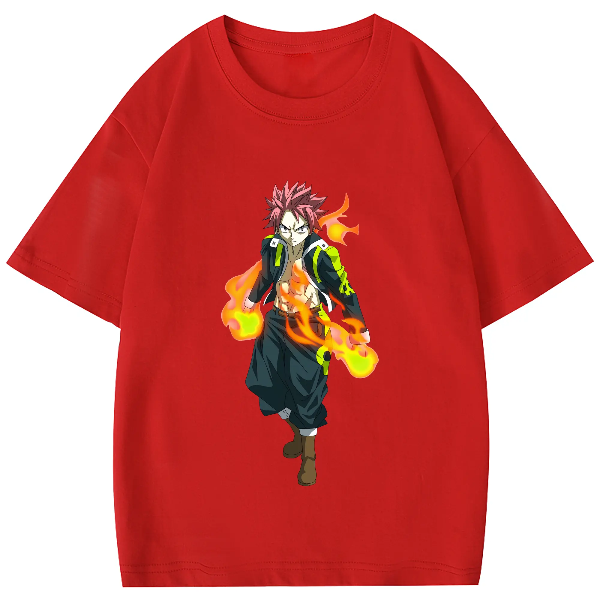 フェアリーテイル グッズ ナツ・ドラグニル - 綿100% 半袖Tシャツ ・ フロントプリント ・ 快適 通気性 ・ 日常使い 散歩 スポーツ用