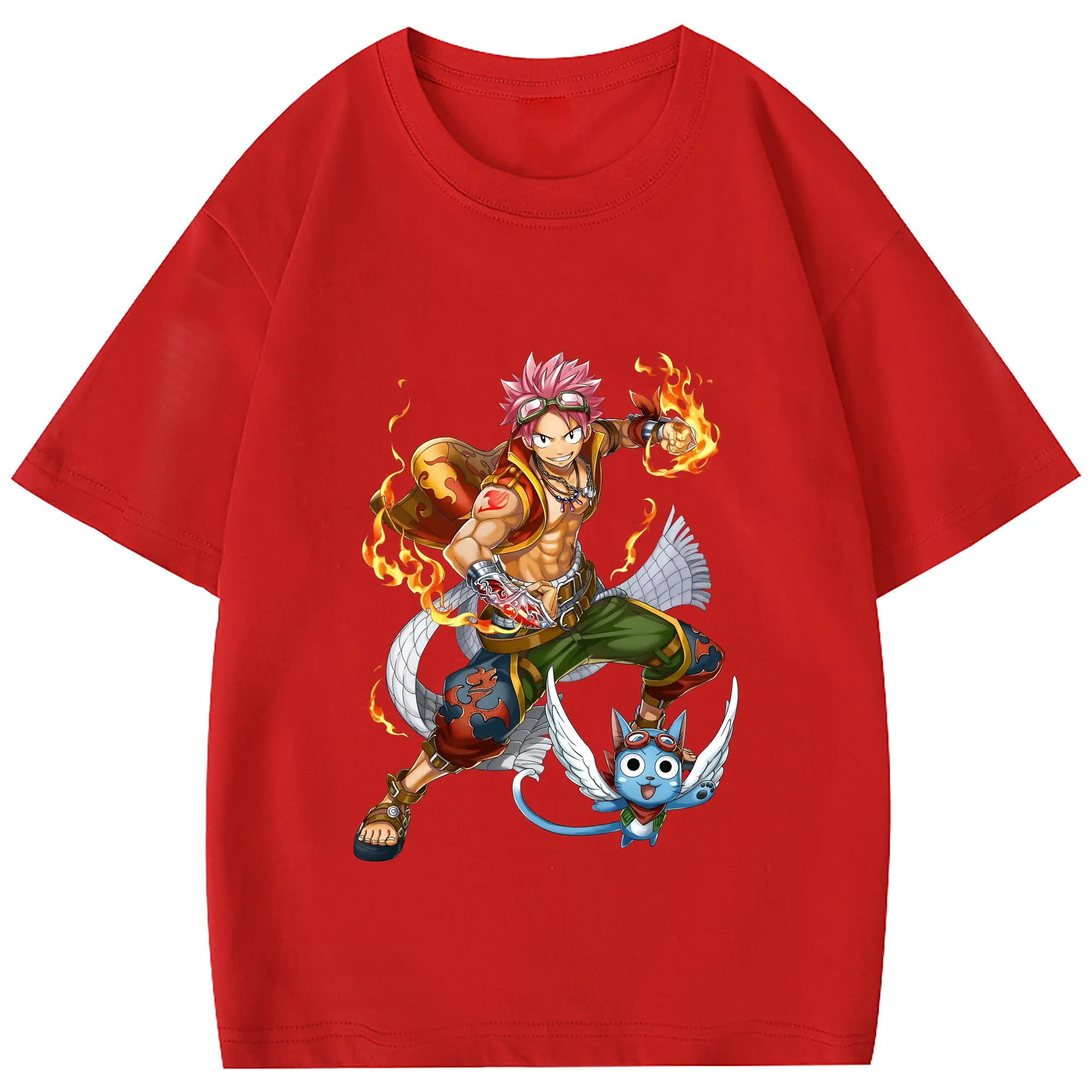 フェアリーテイル グッズ ナツ・ドラグニル - 綿100% 半袖Tシャツ ・ フロントプリント ・ 快適 通気性 ・ 日常使い 散歩 スポーツ用