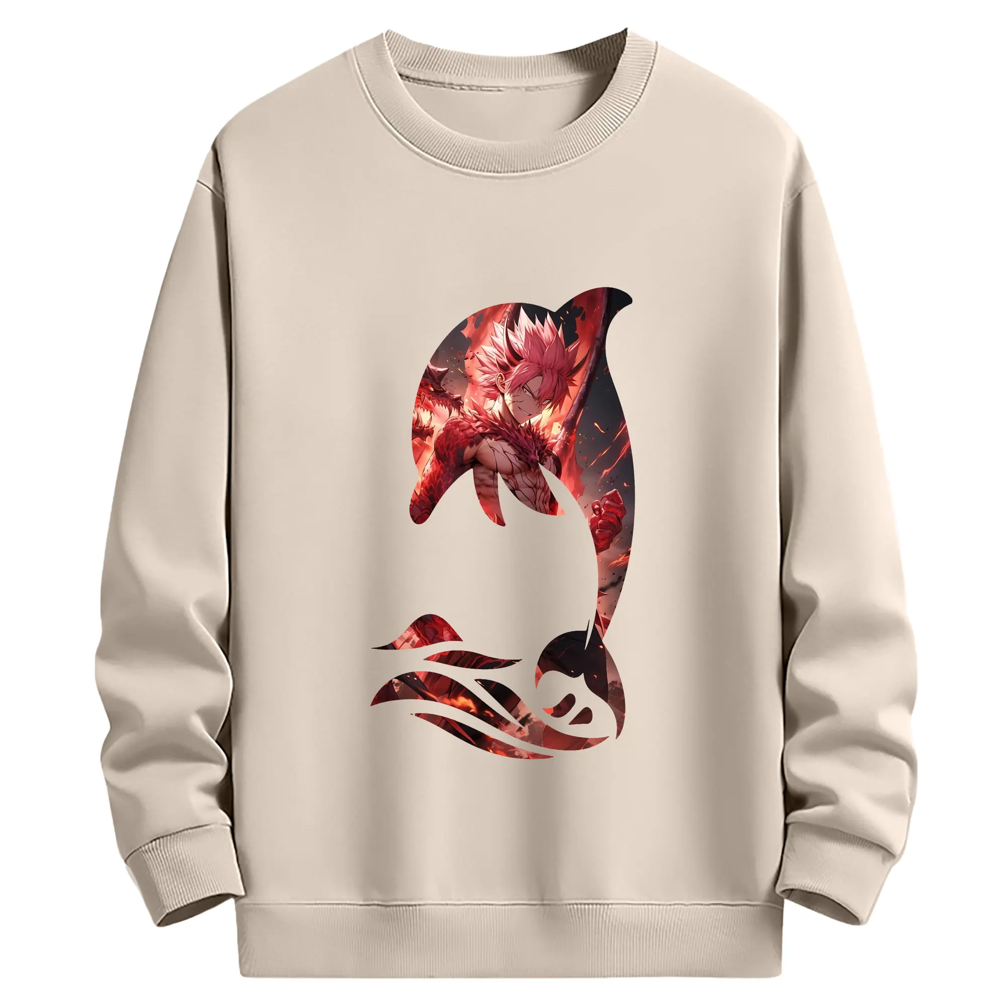 フェアリーテイル グッズ ナツ・ドラグニル - 薄手 クルーネック スウェット 裏毛260g · ポリエステル 春秋向け カジュアル 男女兼用 · トレーナー デイリー スポーツ 散歩に最適