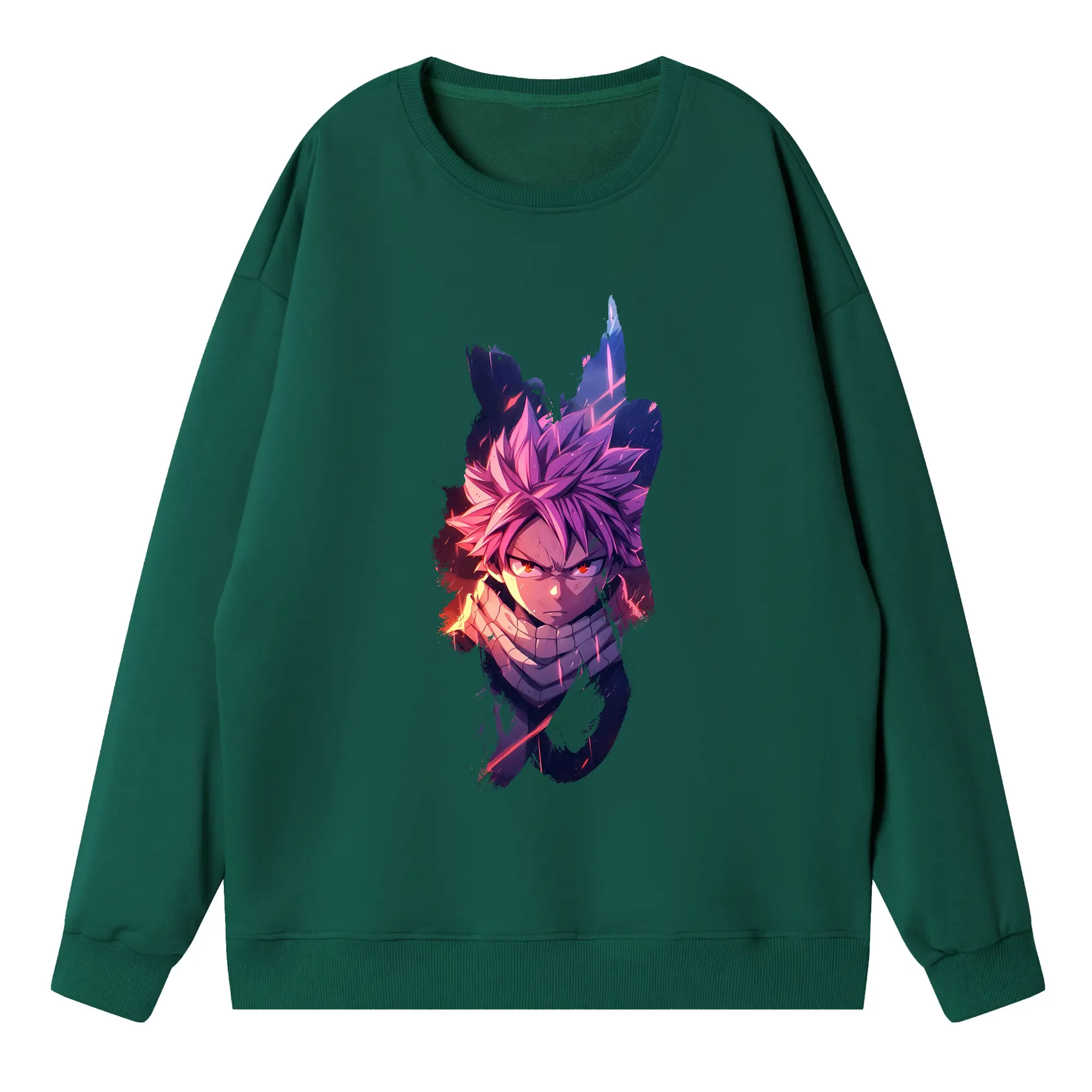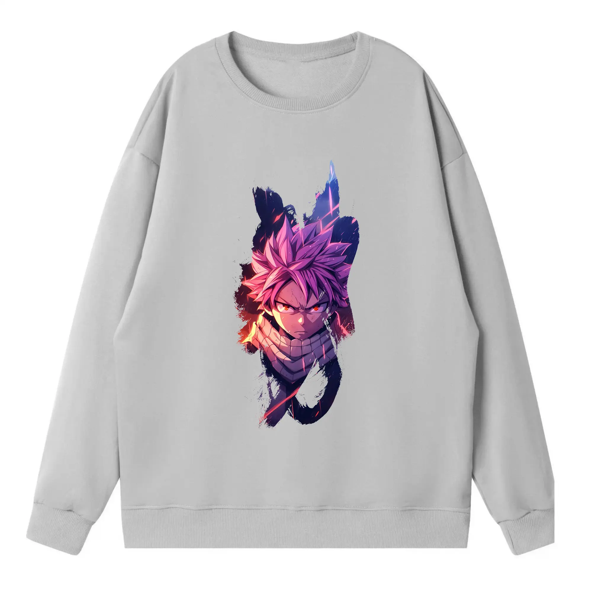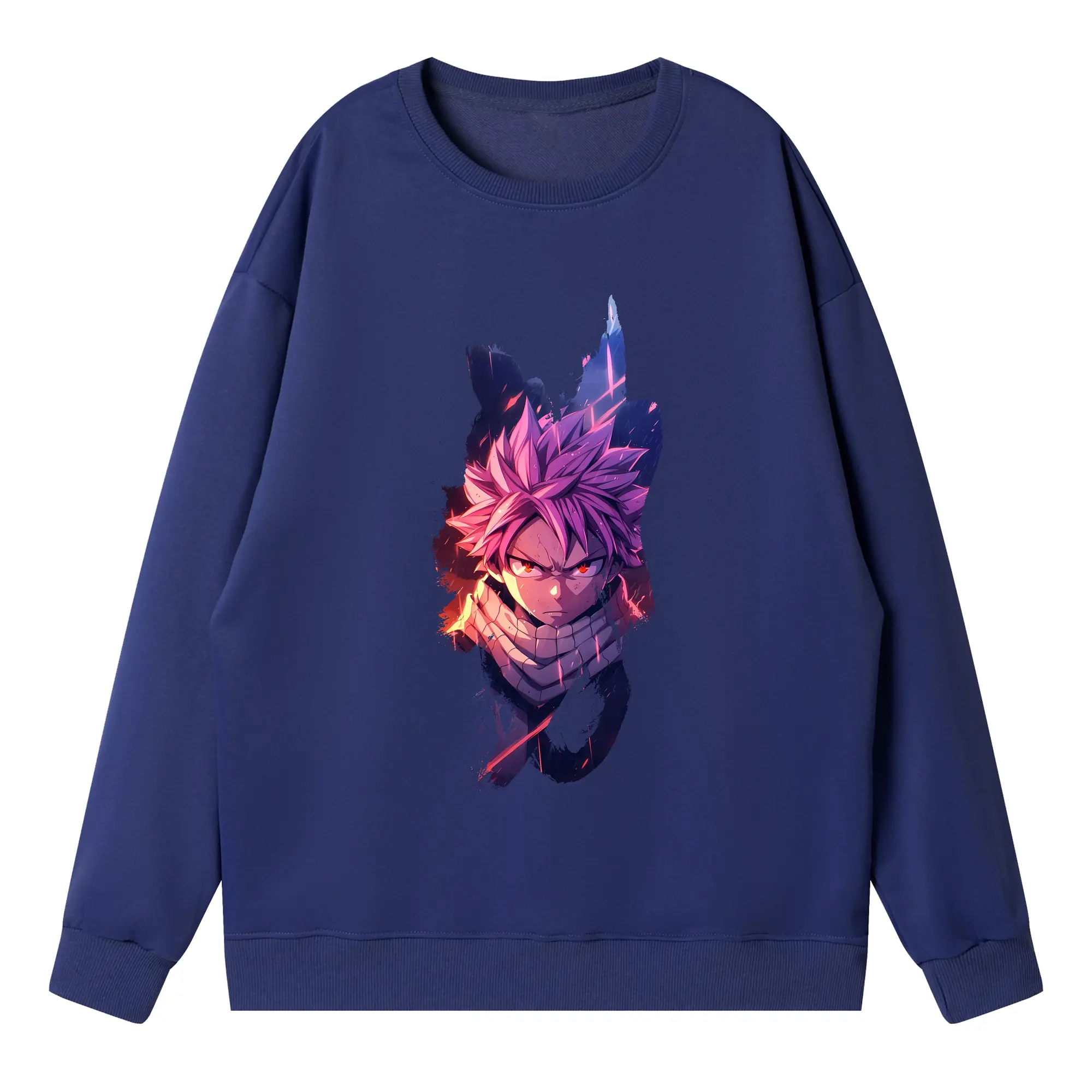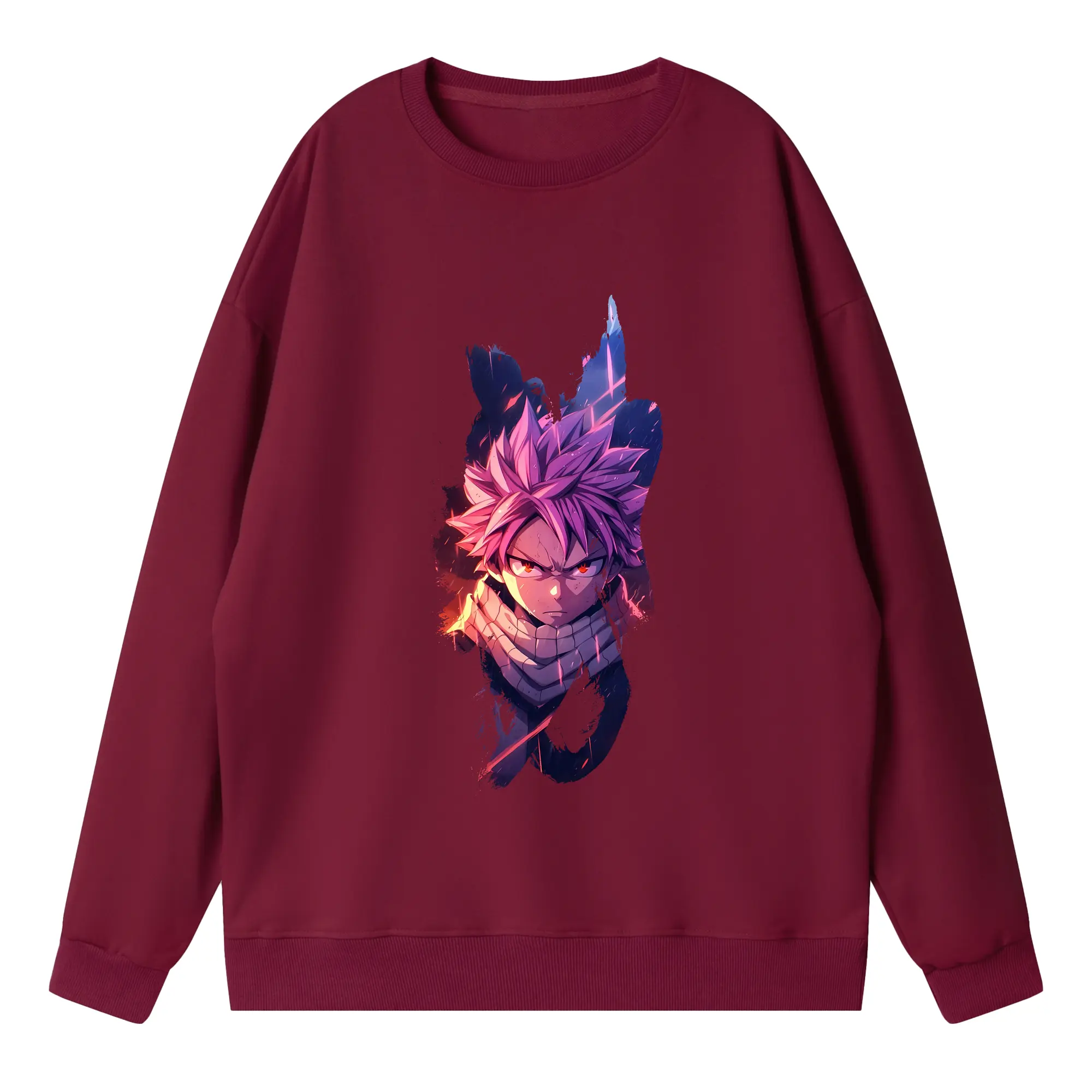 フェアリーテイル グッズ ナツ・ドラグニル - 高品質 クルーネック スウェット ・ コットン59% ポリエステル41% ・ ユニセックス 長袖 トレーナー ・ カジュアル デイリー スポーツ 散歩用