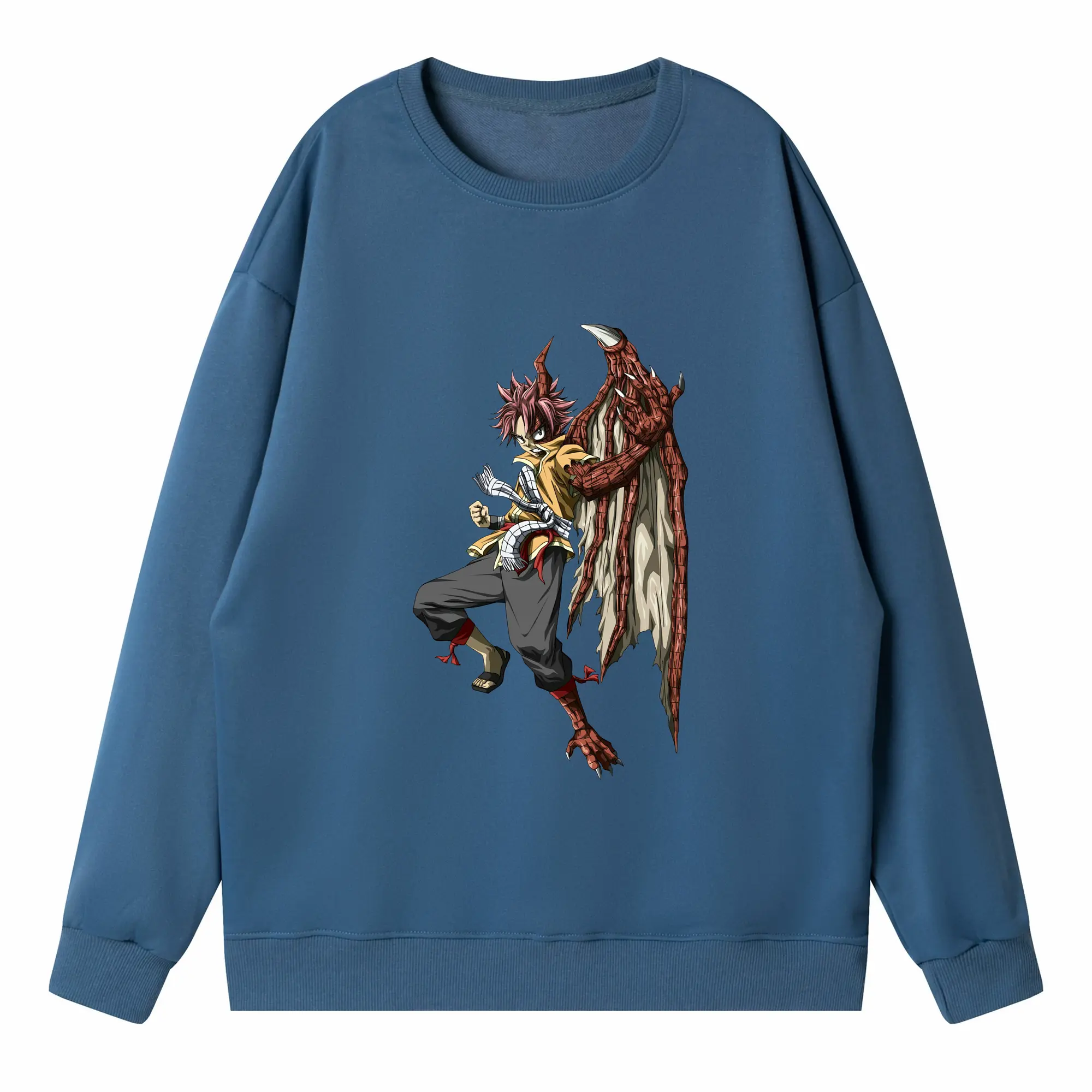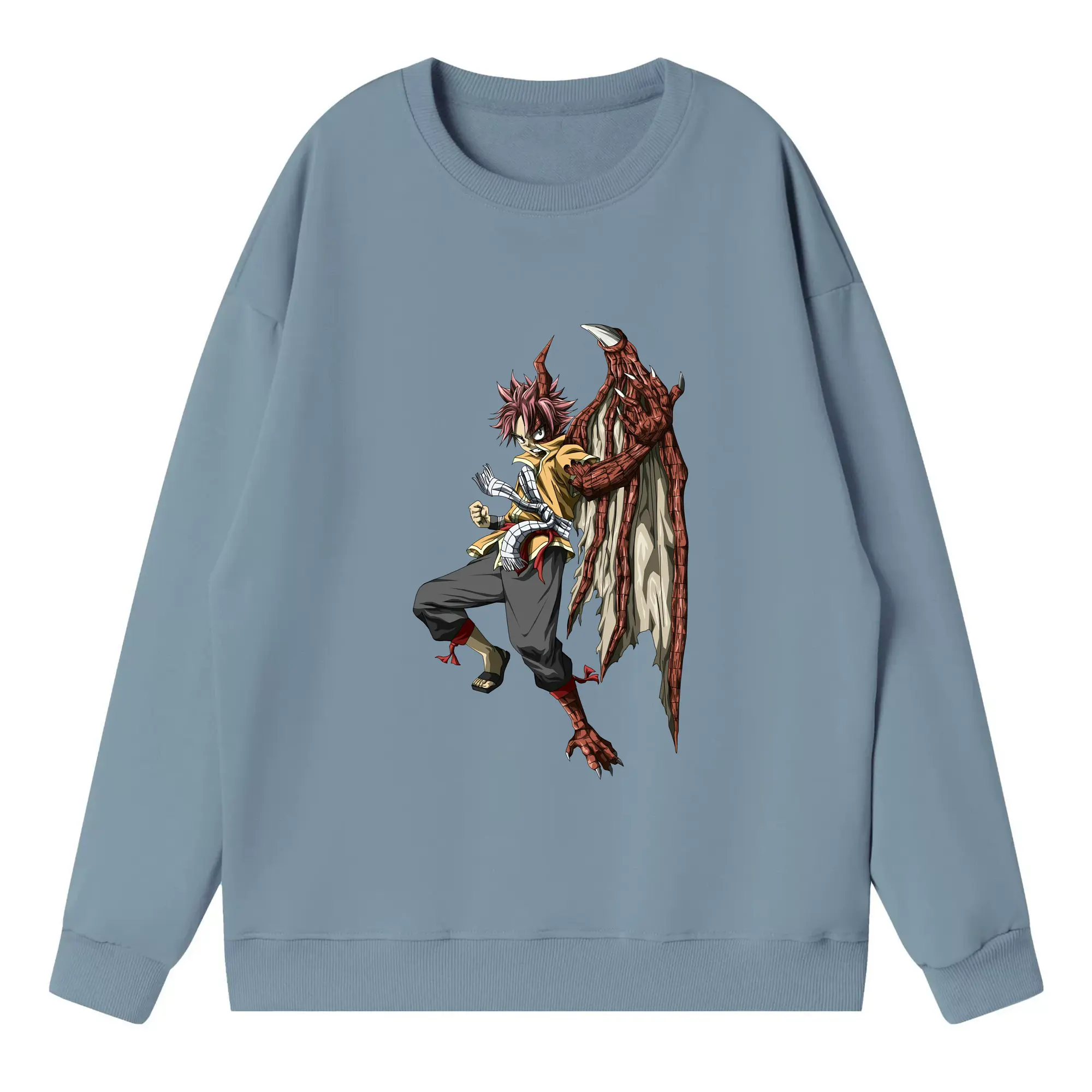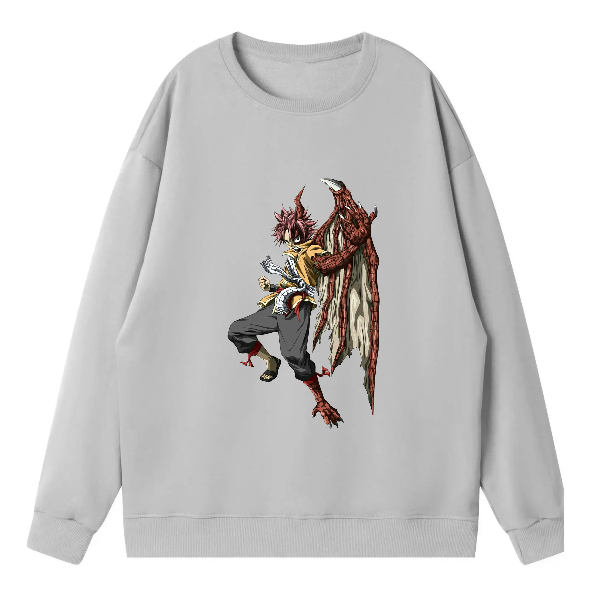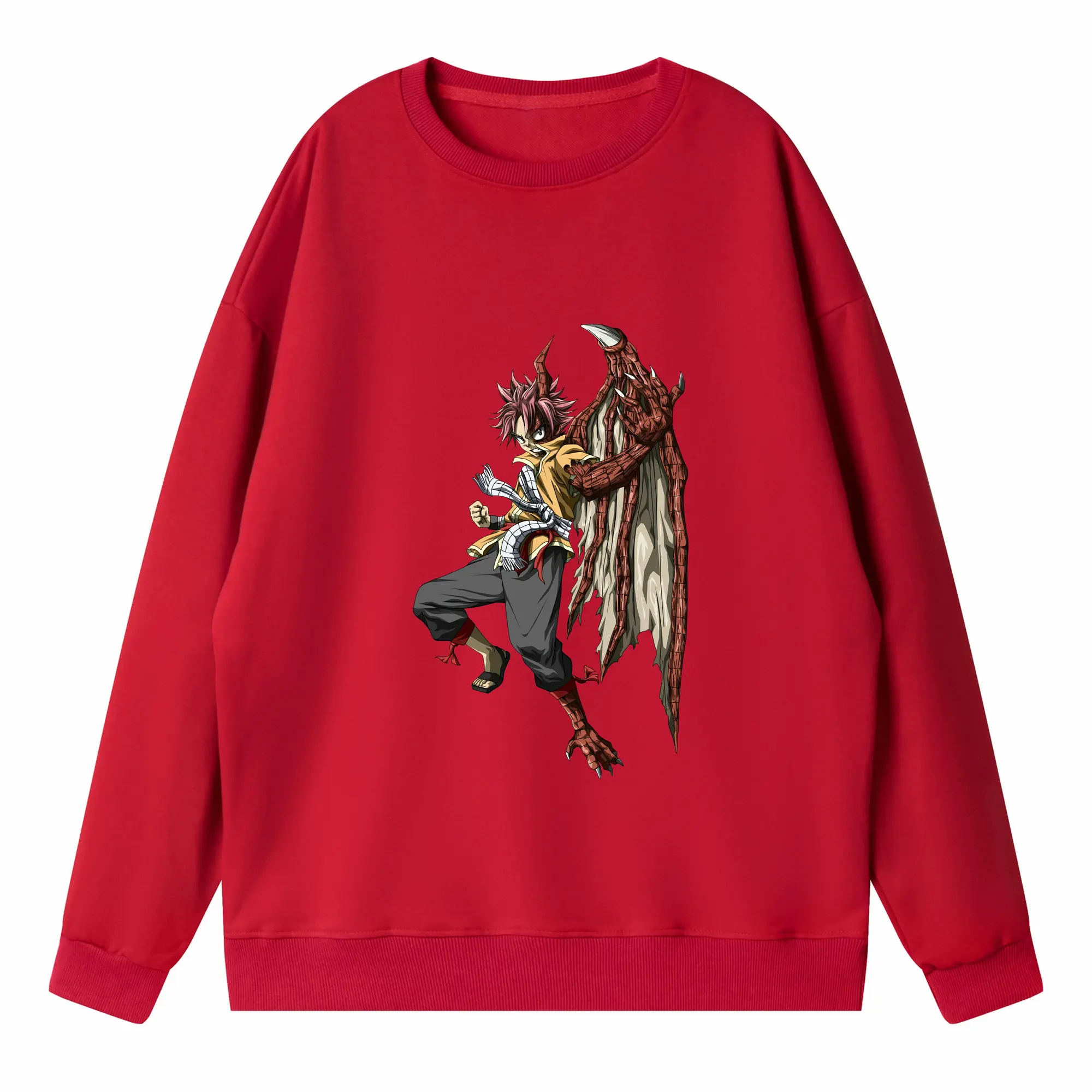 フェアリーテイル グッズ ナツ・ドラグニル - 高品質 クルーネック スウェット ・ コットン59% ポリエステル41% ・ ユニセックス 長袖 トレーナー ・ カジュアル デイリー スポーツ 散歩用
