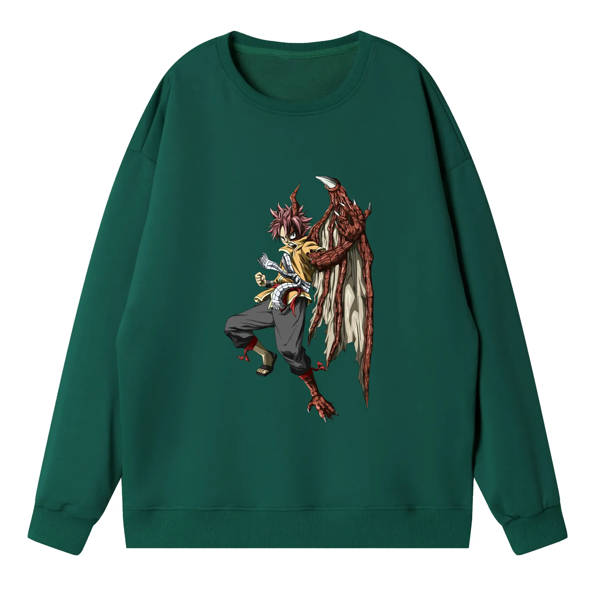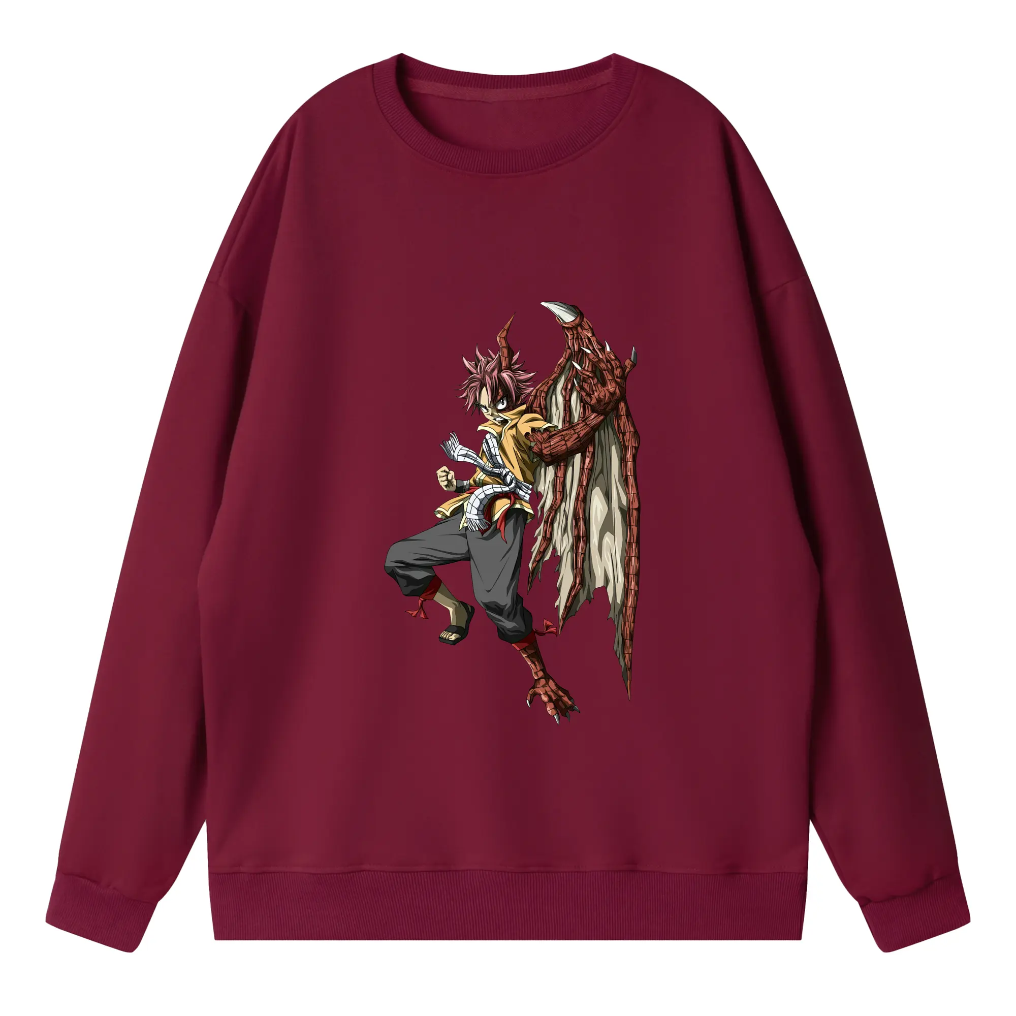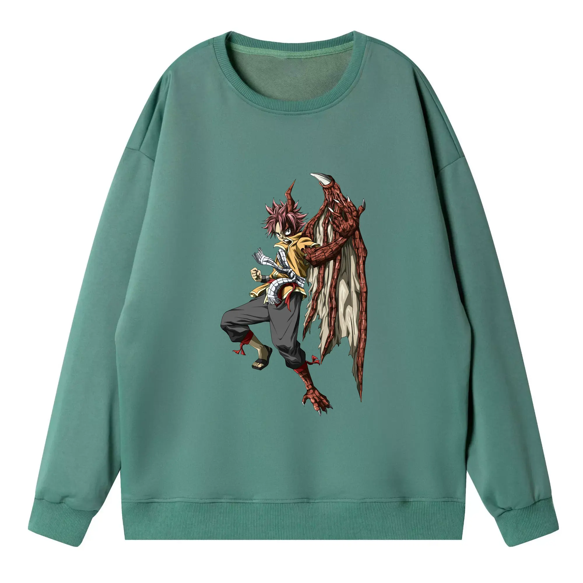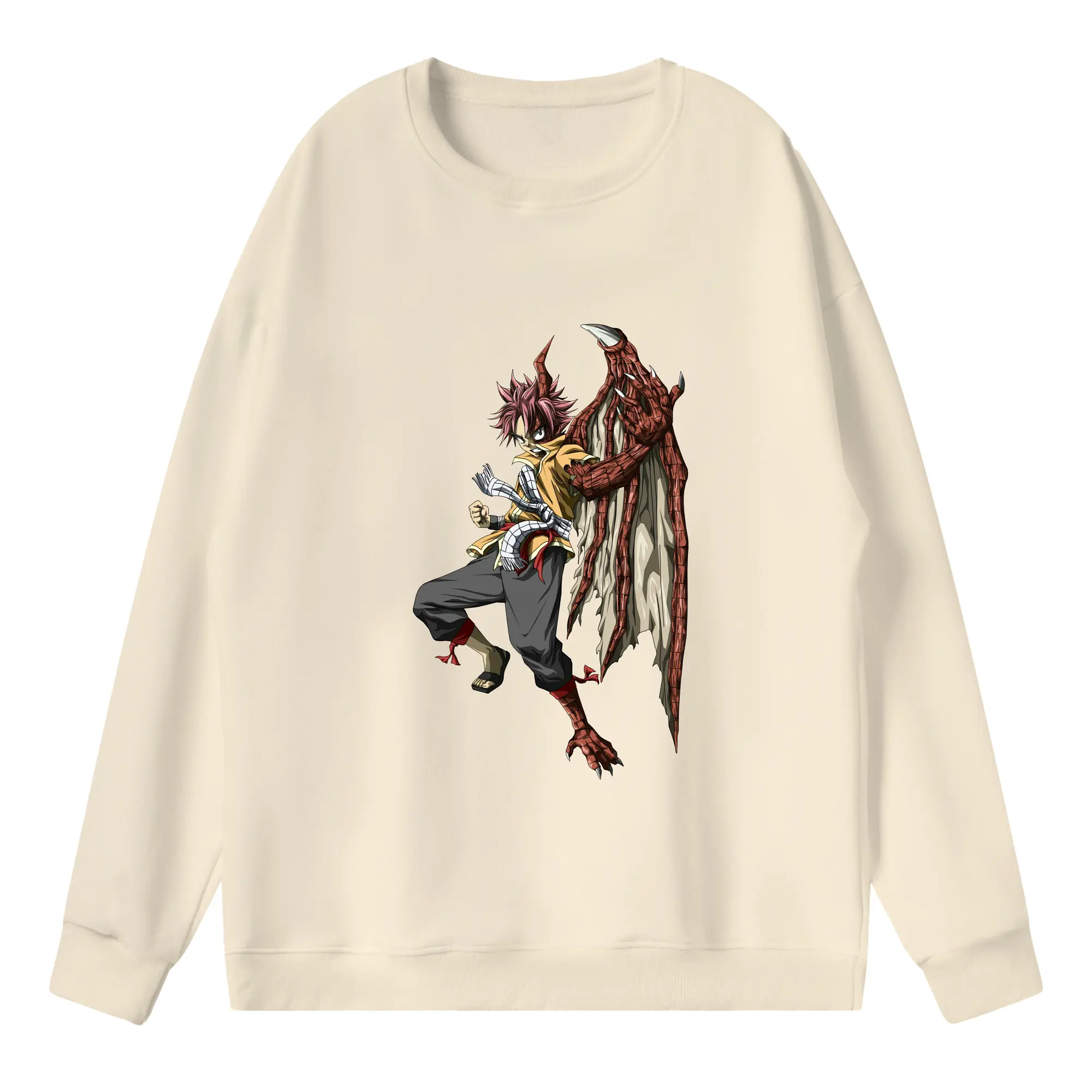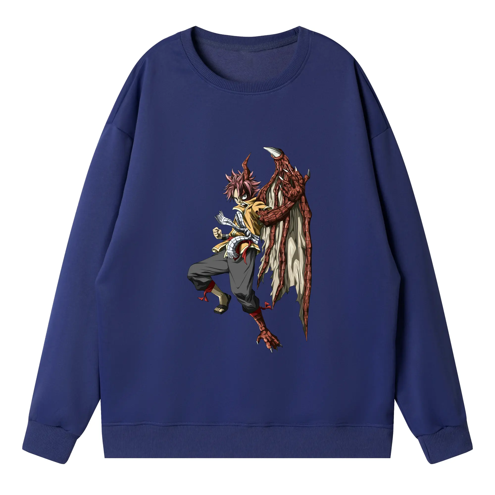 フェアリーテイル グッズ ナツ・ドラグニル - 高品質 クルーネック スウェット ・ コットン59% ポリエステル41% ・ ユニセックス 長袖 トレーナー ・ カジュアル デイリー スポーツ 散歩用