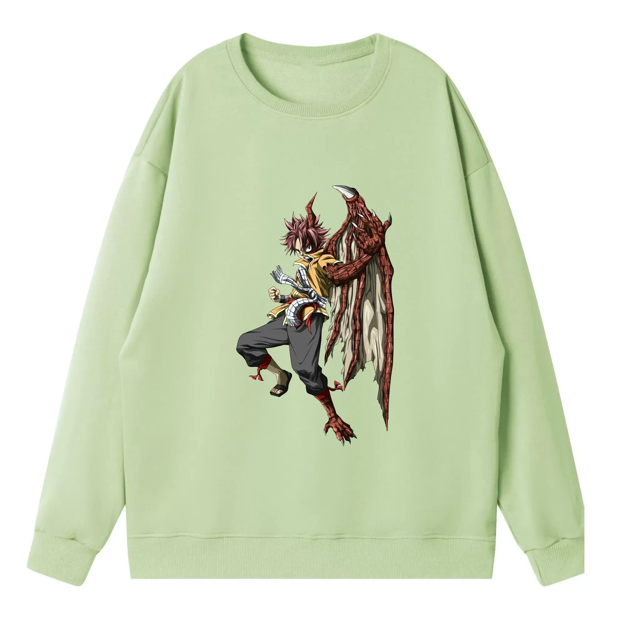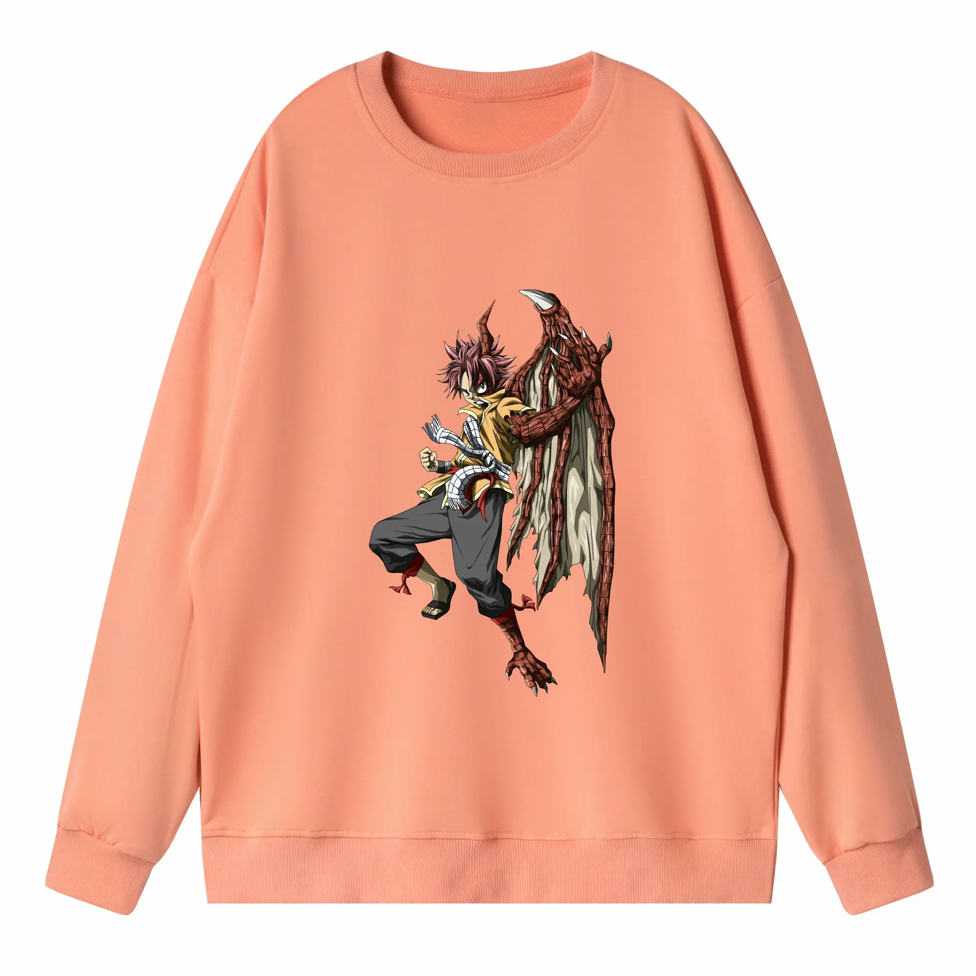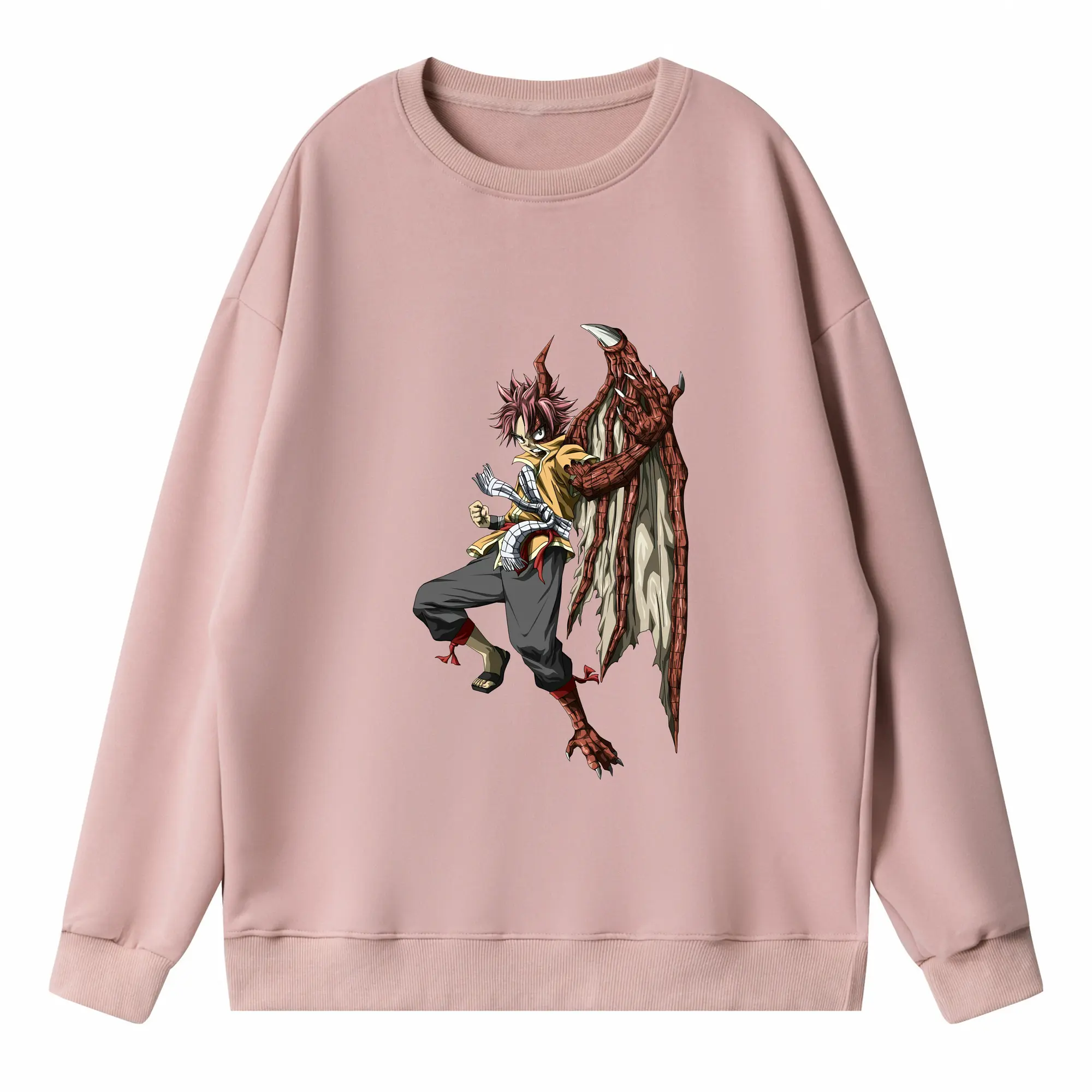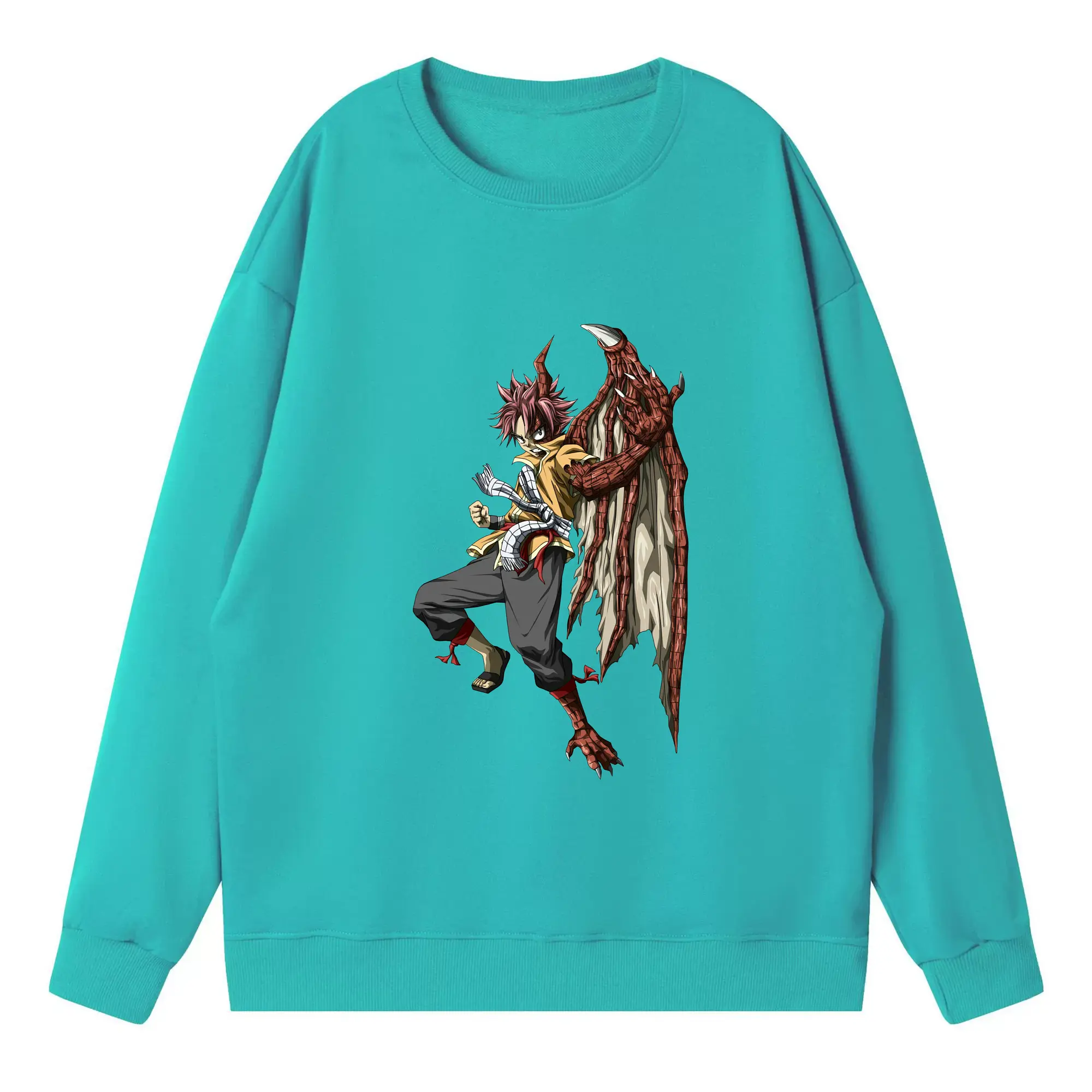 フェアリーテイル グッズ ナツ・ドラグニル - 高品質 クルーネック スウェット ・ コットン59% ポリエステル41% ・ ユニセックス 長袖 トレーナー ・ カジュアル デイリー スポーツ 散歩用