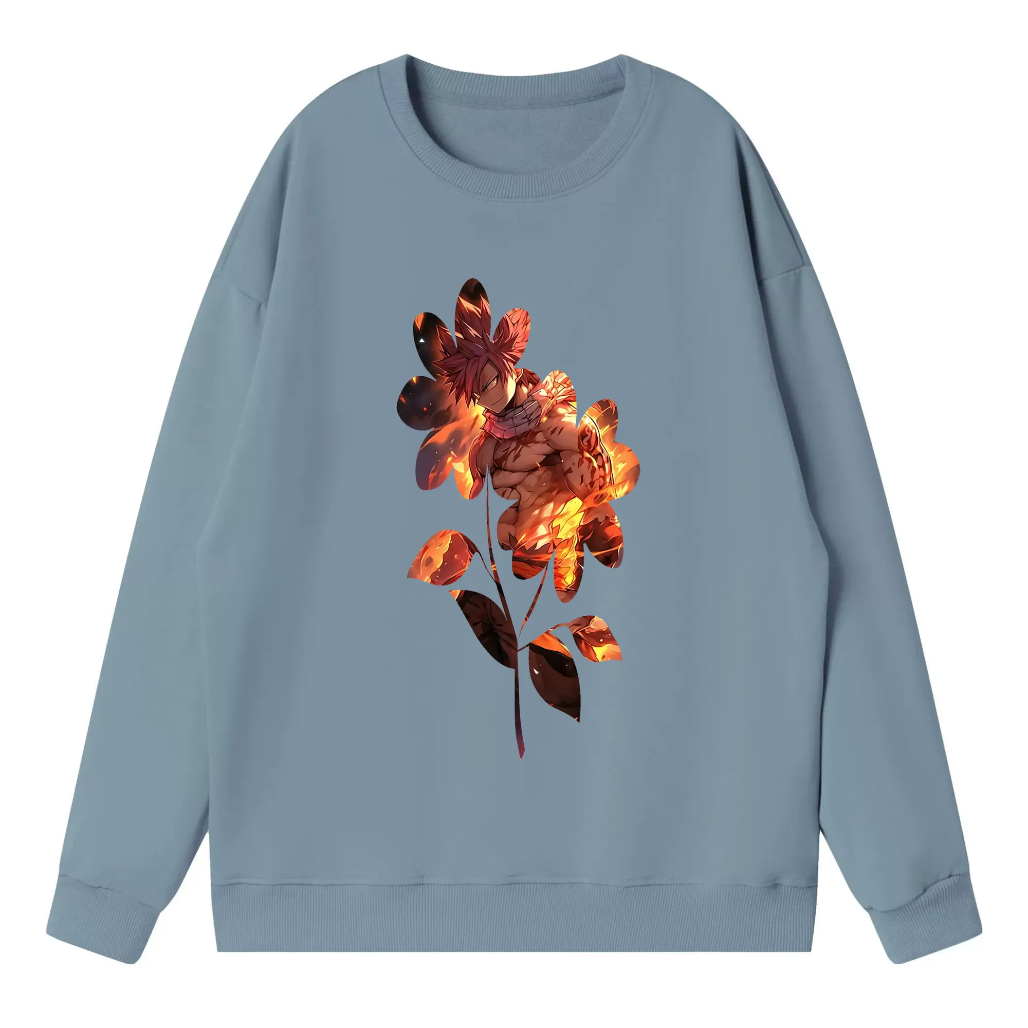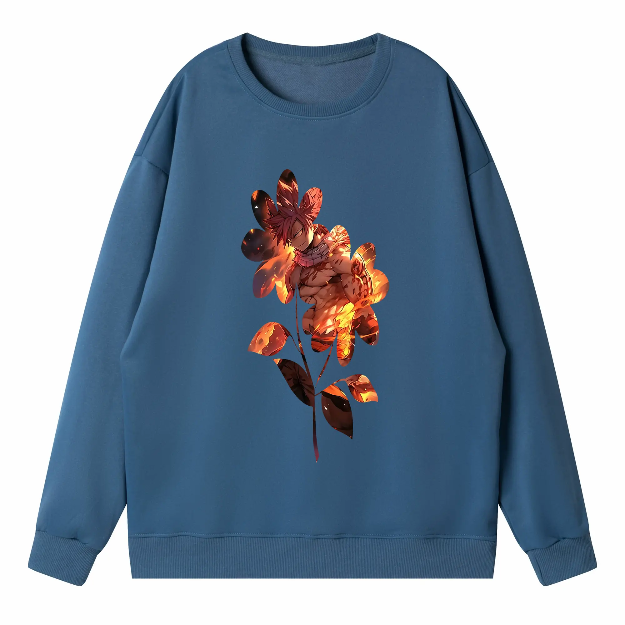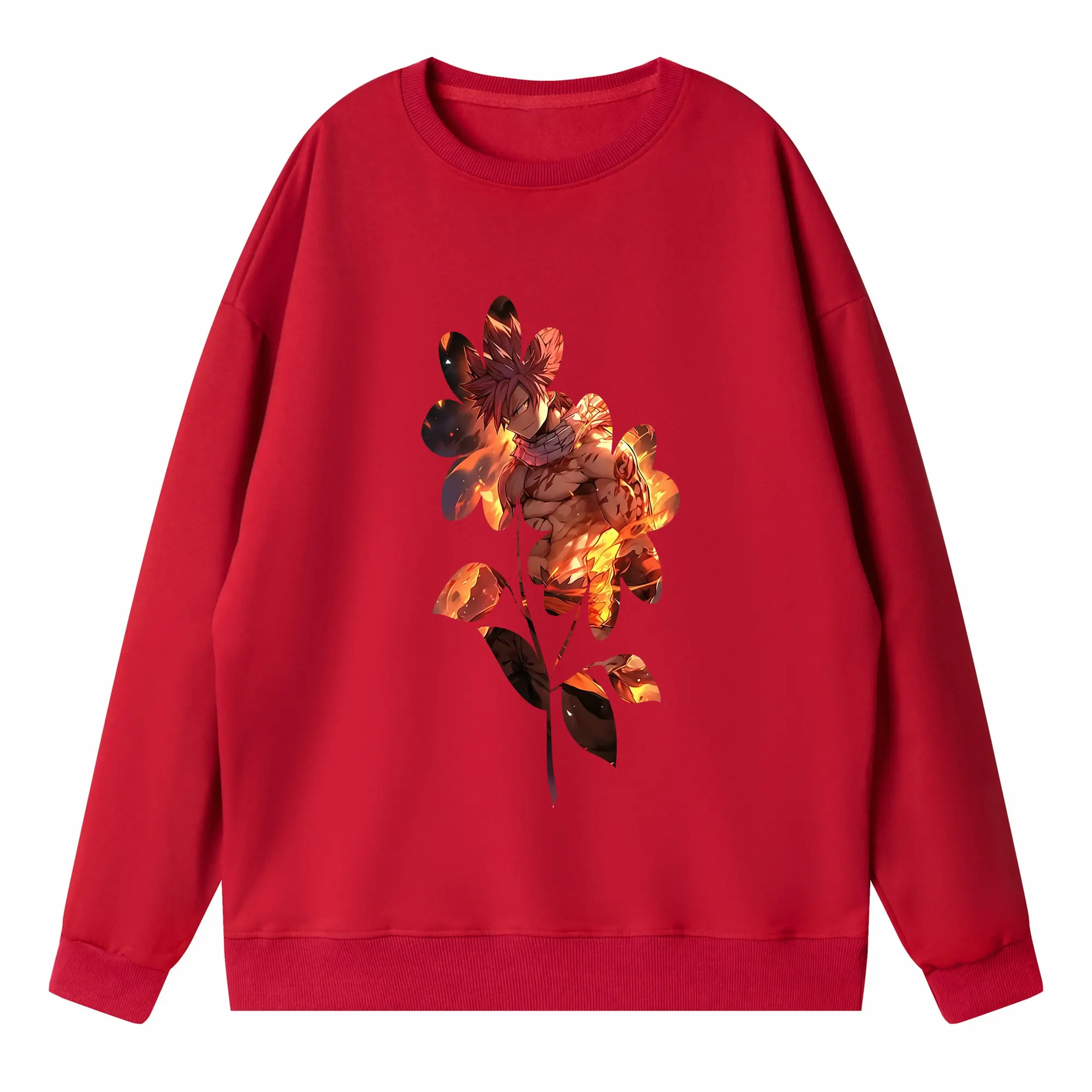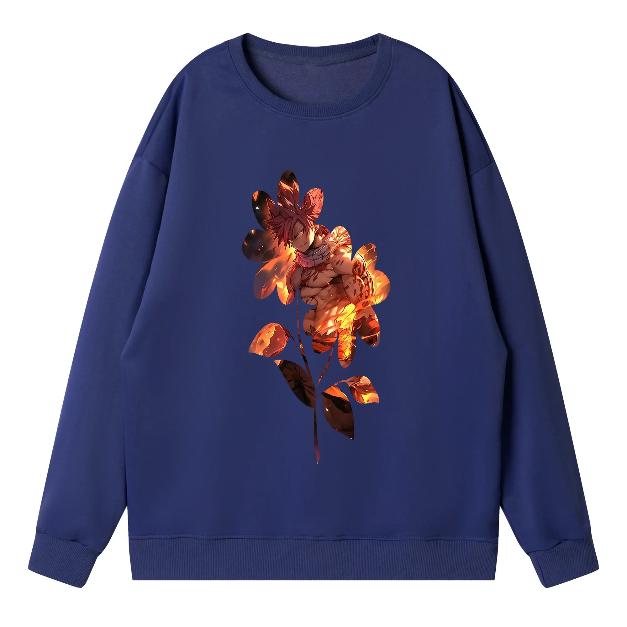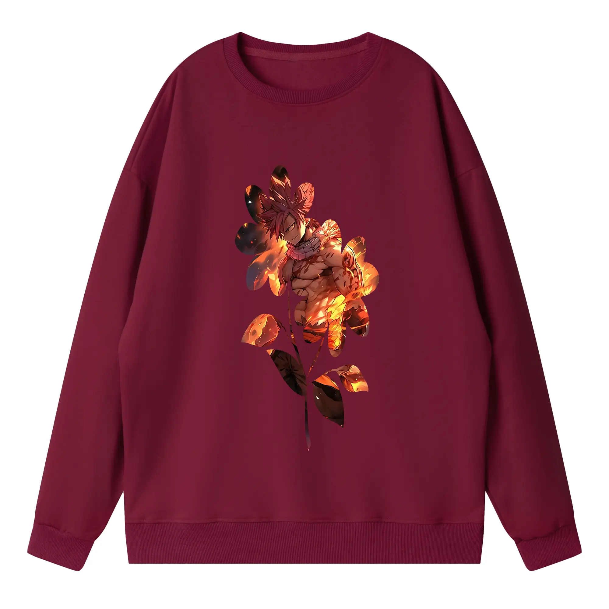 フェアリーテイル グッズ ナツ・ドラグニル - 高品質 クルーネック スウェット ・ コットン59% ポリエステル41% ・ ユニセックス 長袖 トレーナー ・ カジュアル デイリー スポーツ 散歩用