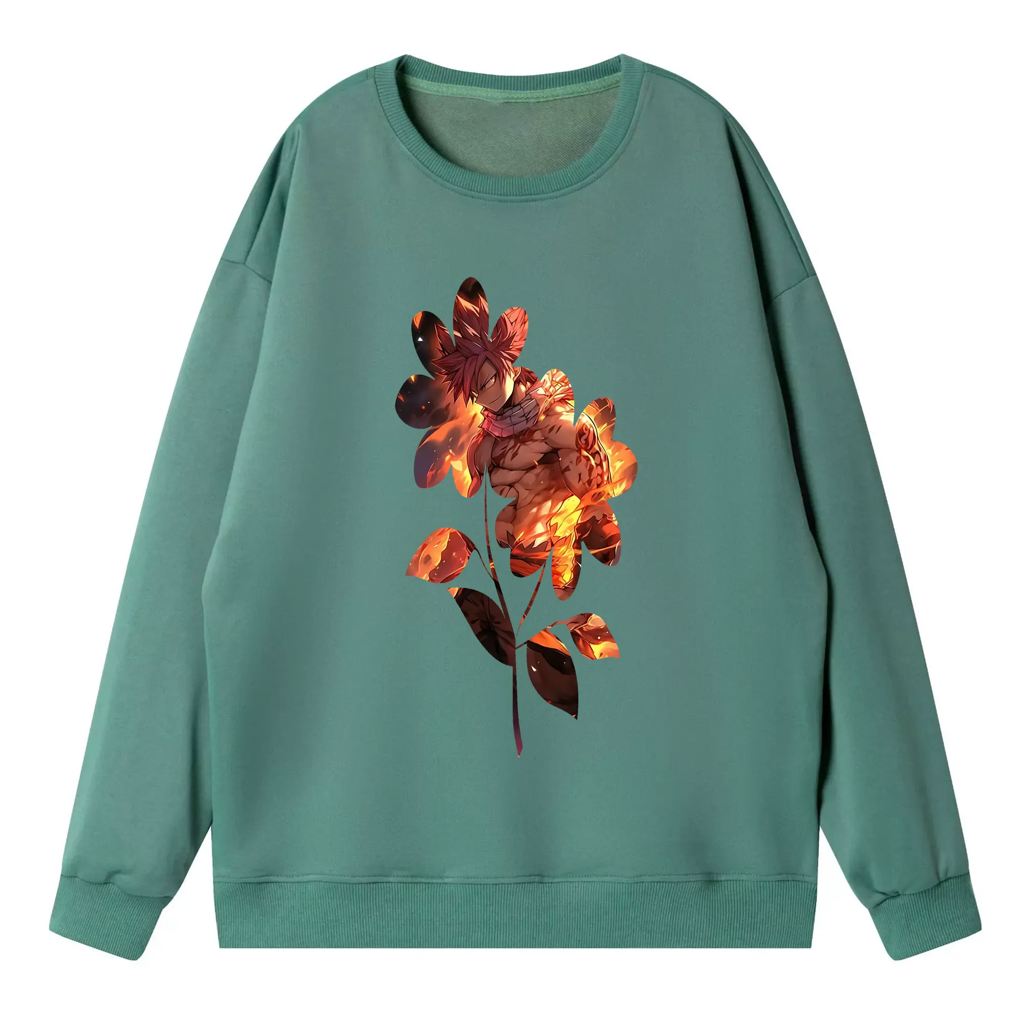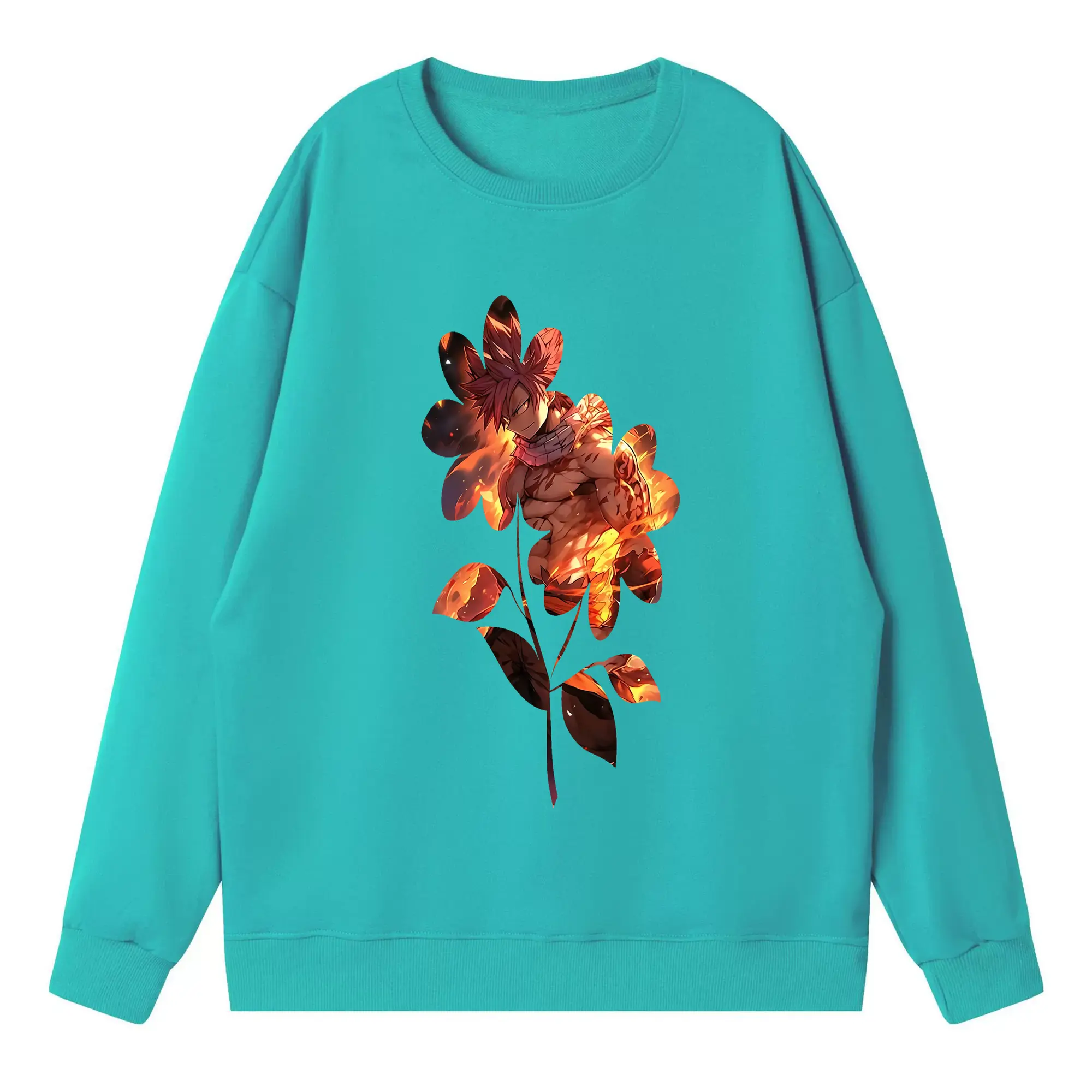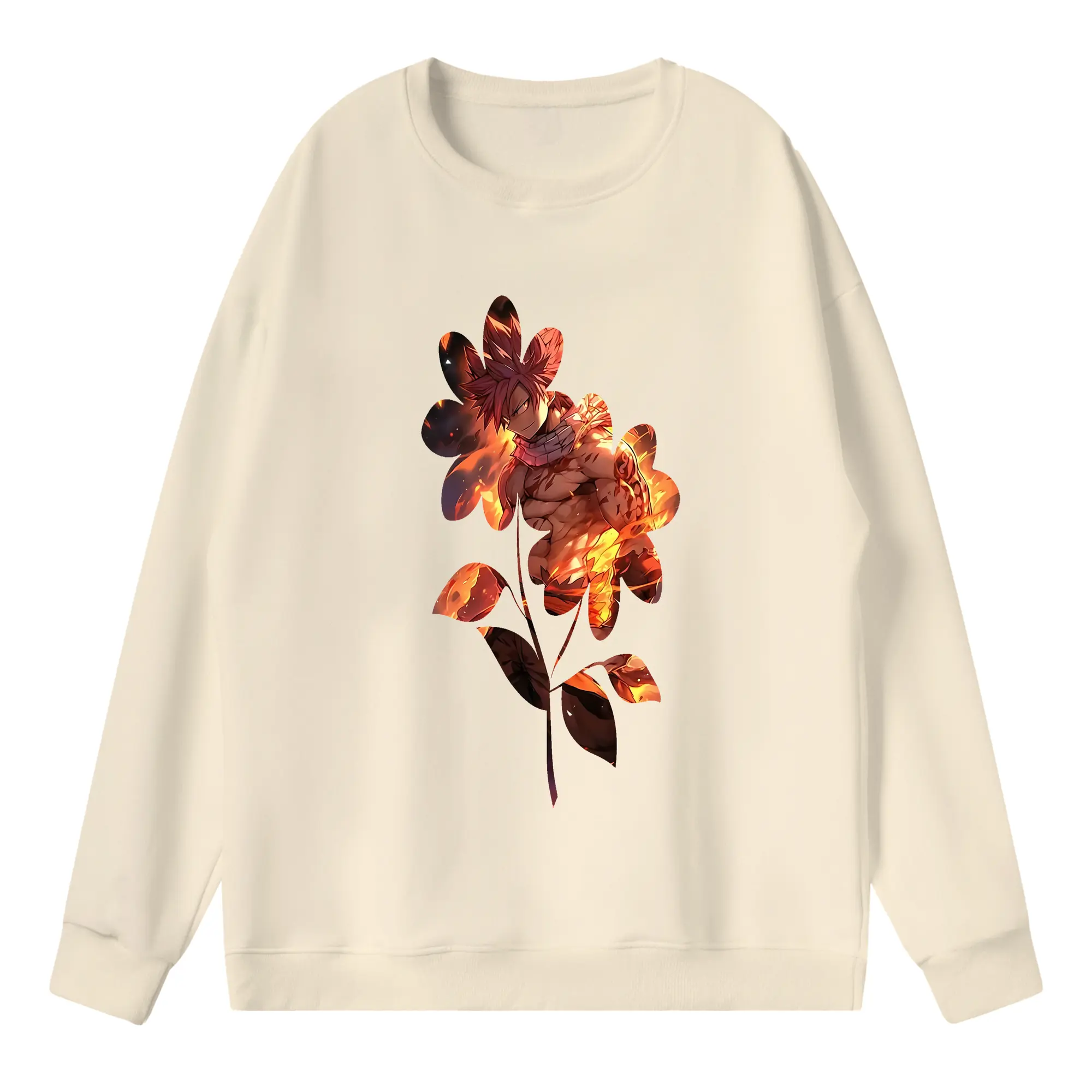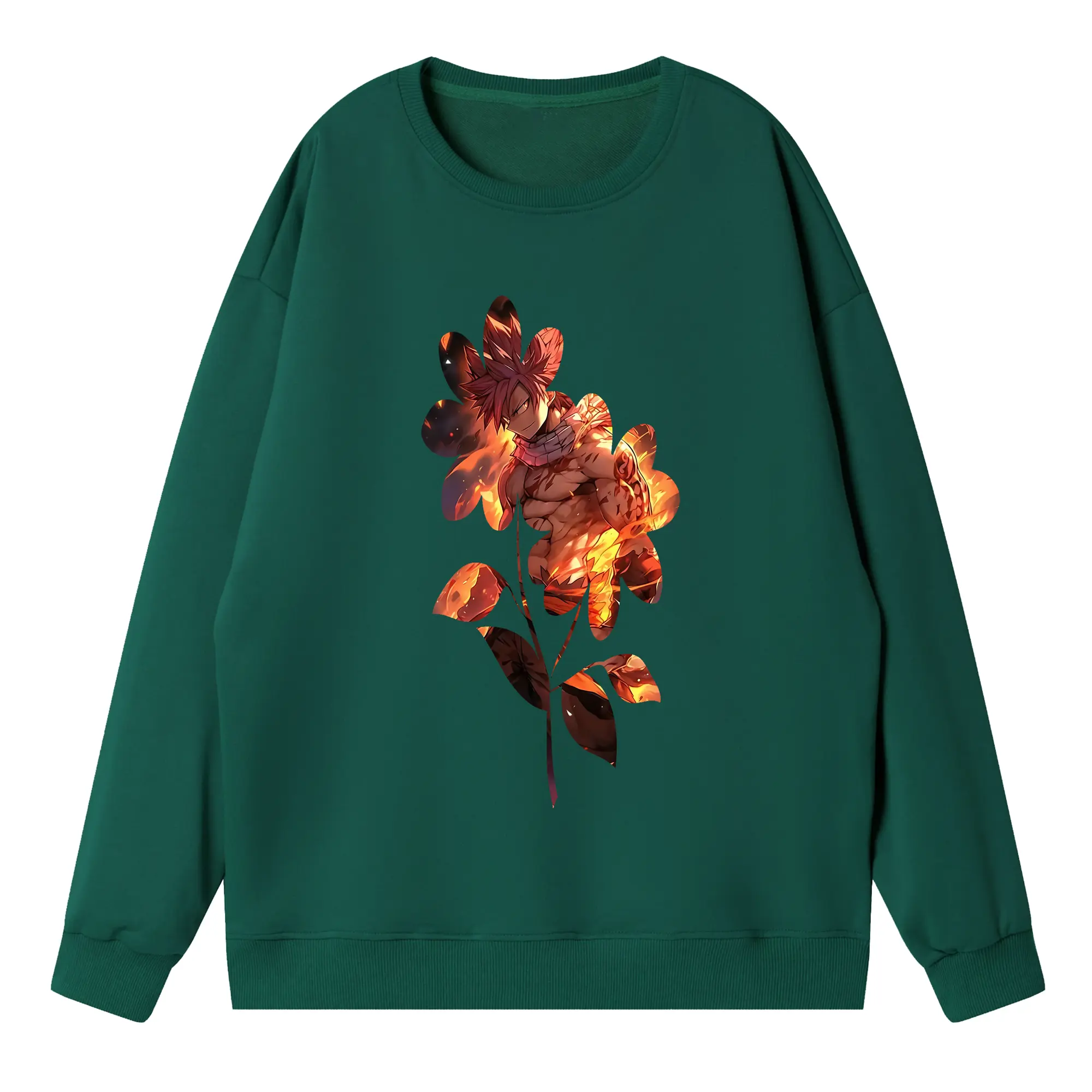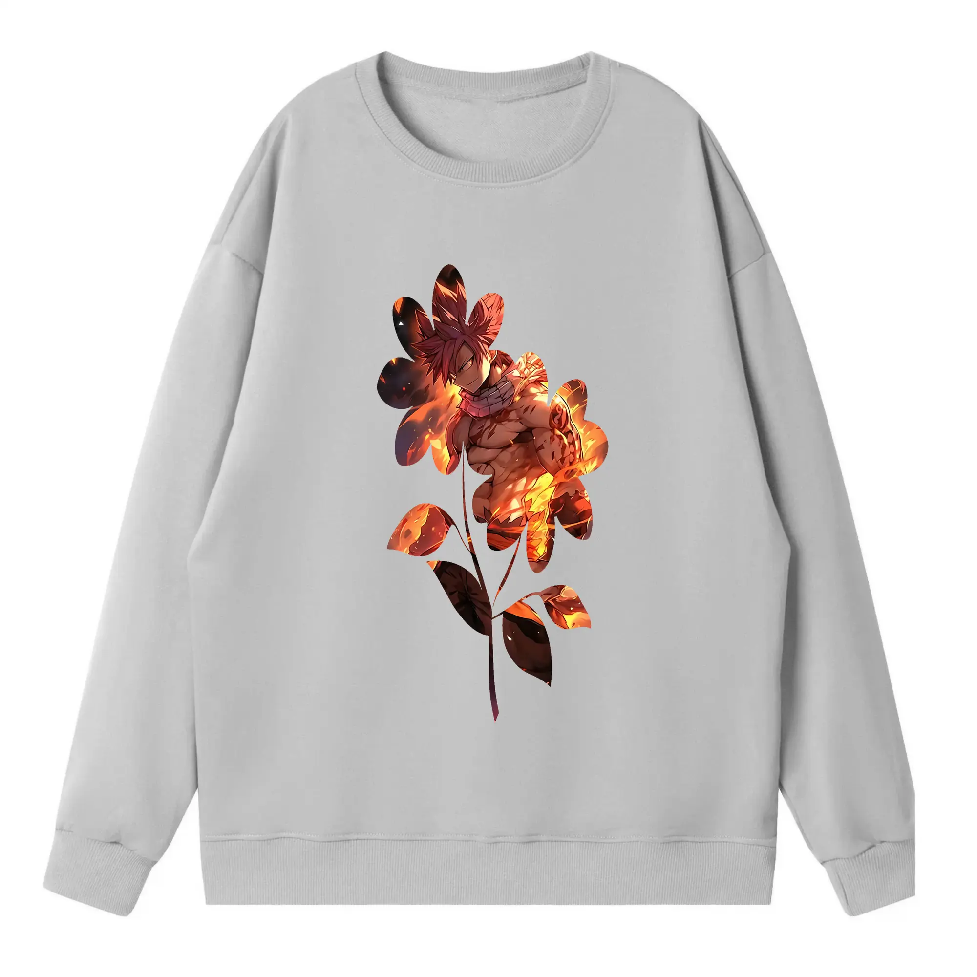 フェアリーテイル グッズ ナツ・ドラグニル - 高品質 クルーネック スウェット ・ コットン59% ポリエステル41% ・ ユニセックス 長袖 トレーナー ・ カジュアル デイリー スポーツ 散歩用