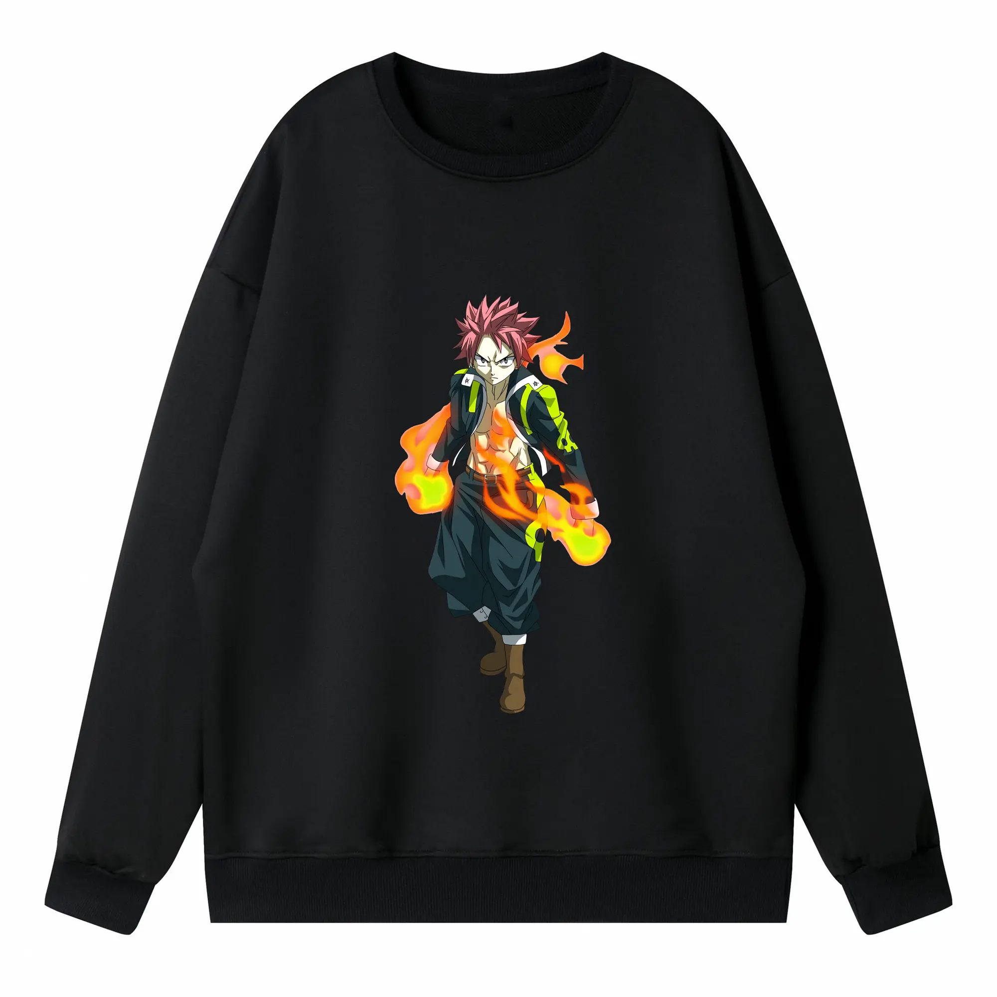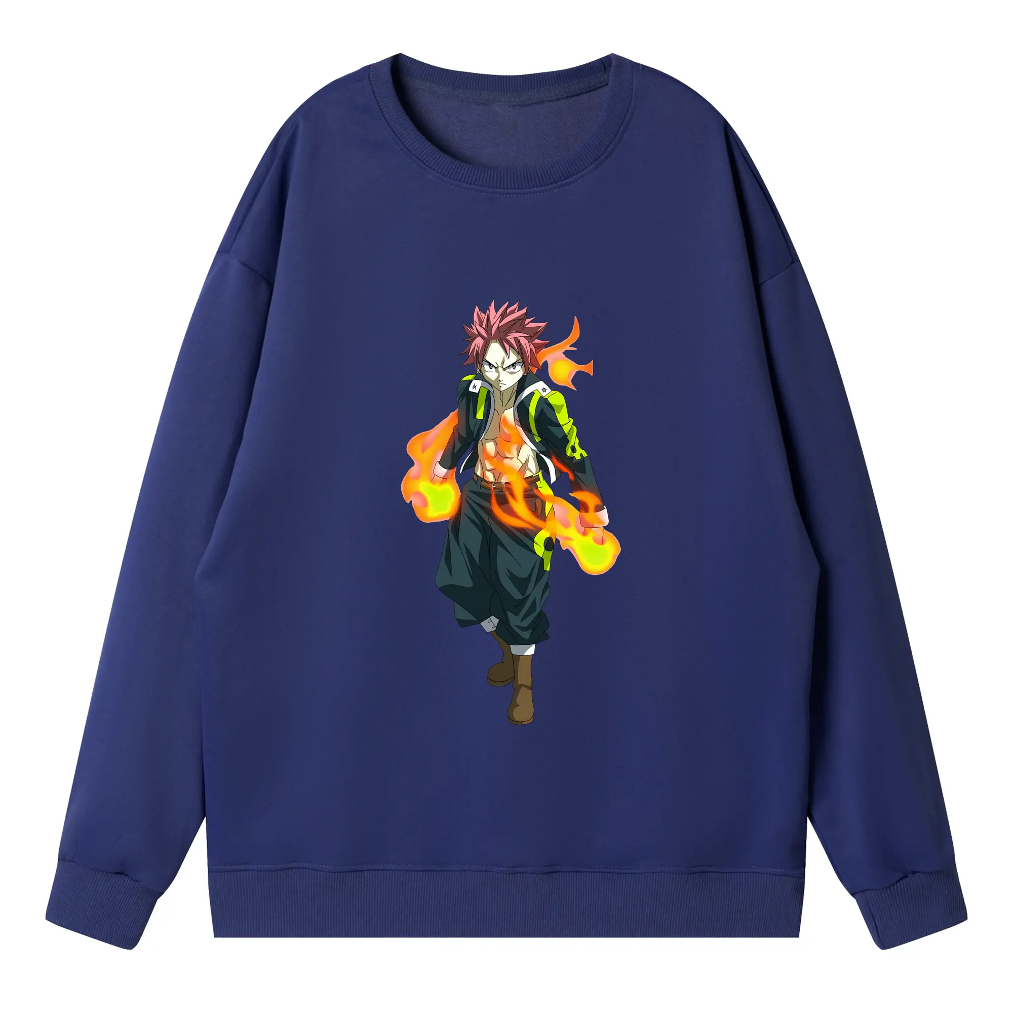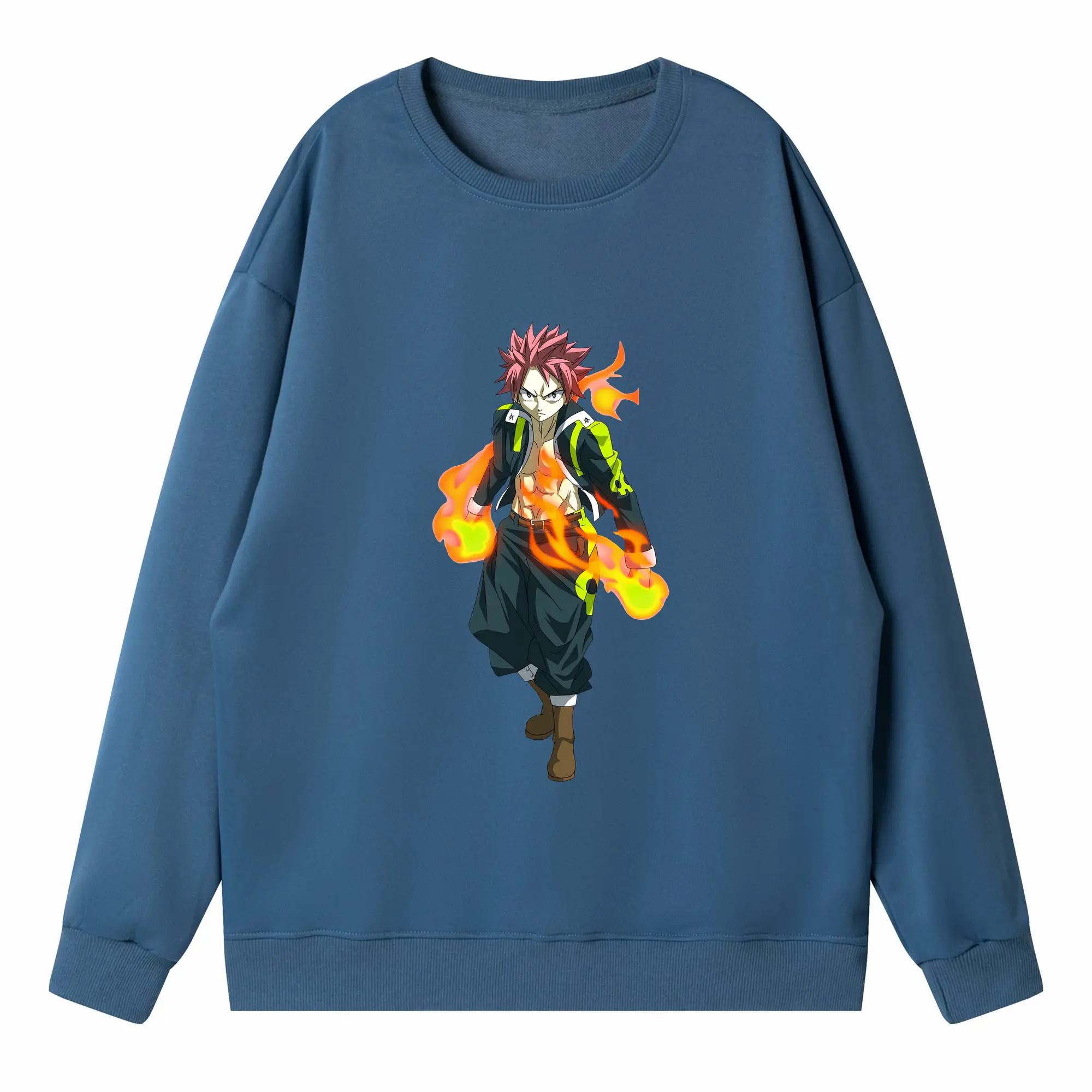 フェアリーテイル グッズ ナツ・ドラグニル - 高品質 クルーネック スウェット ・ コットン59% ポリエステル41% ・ ユニセックス 長袖 トレーナー ・ カジュアル デイリー スポーツ 散歩用