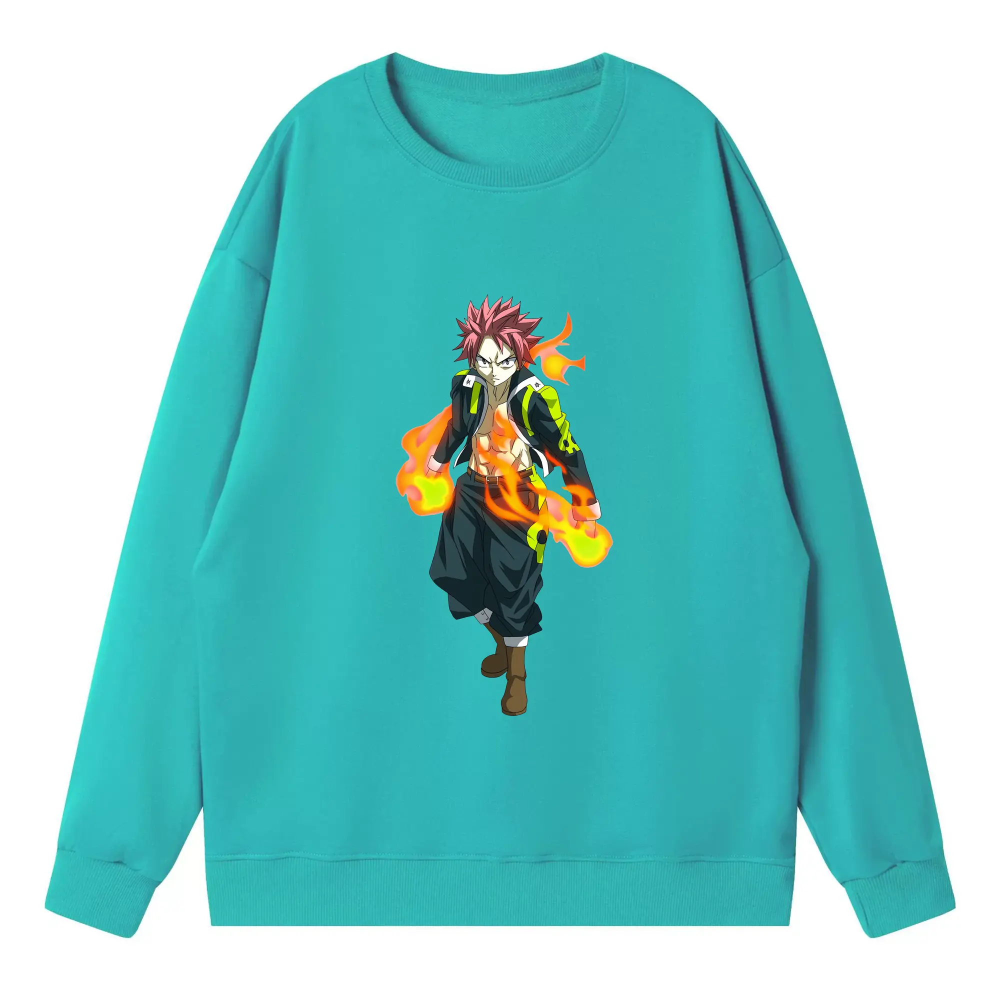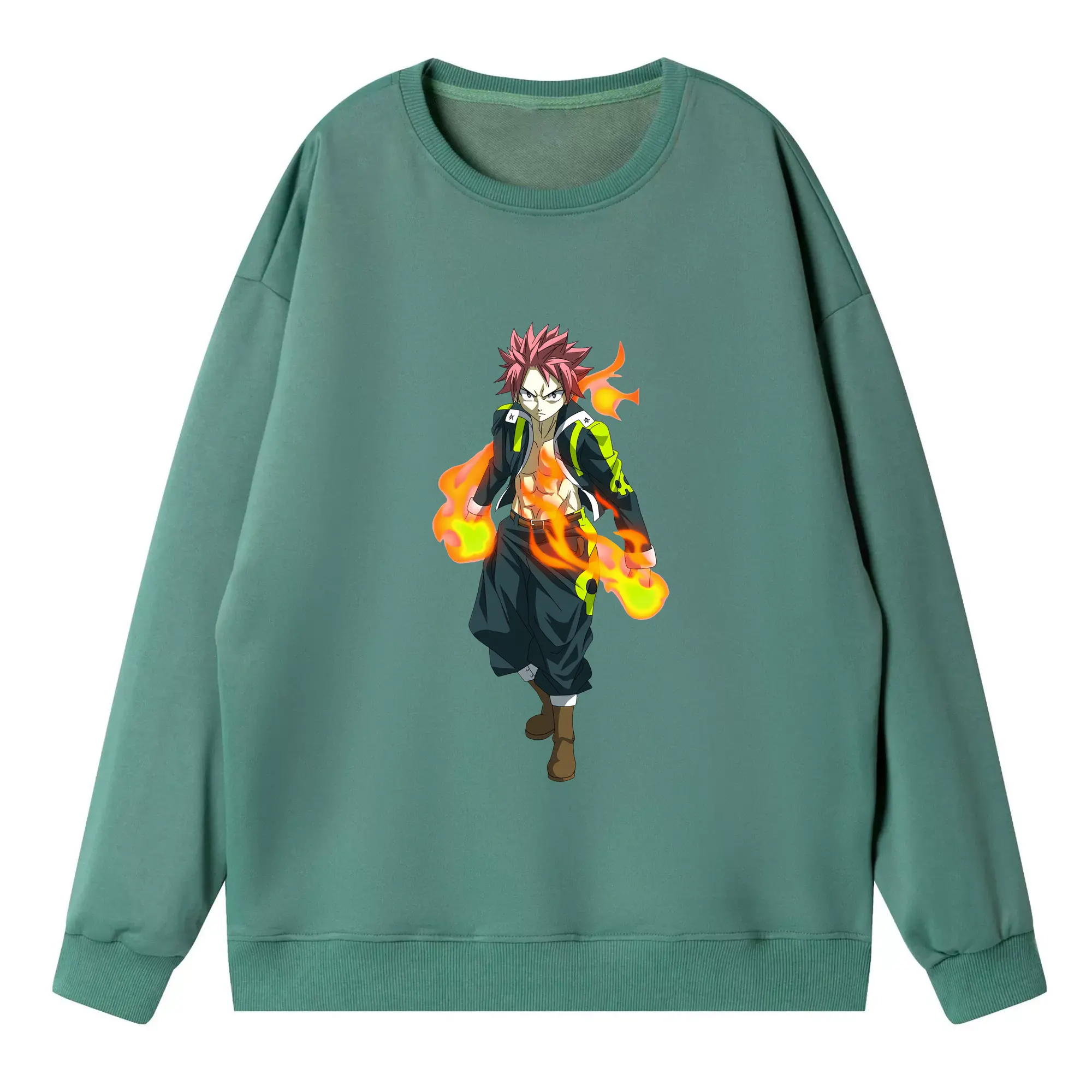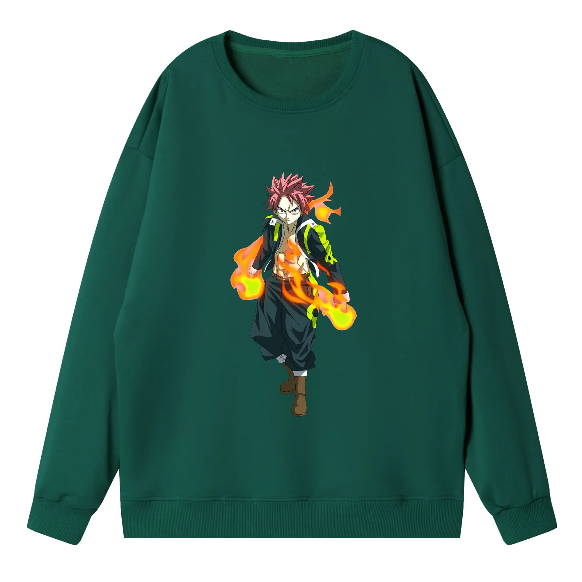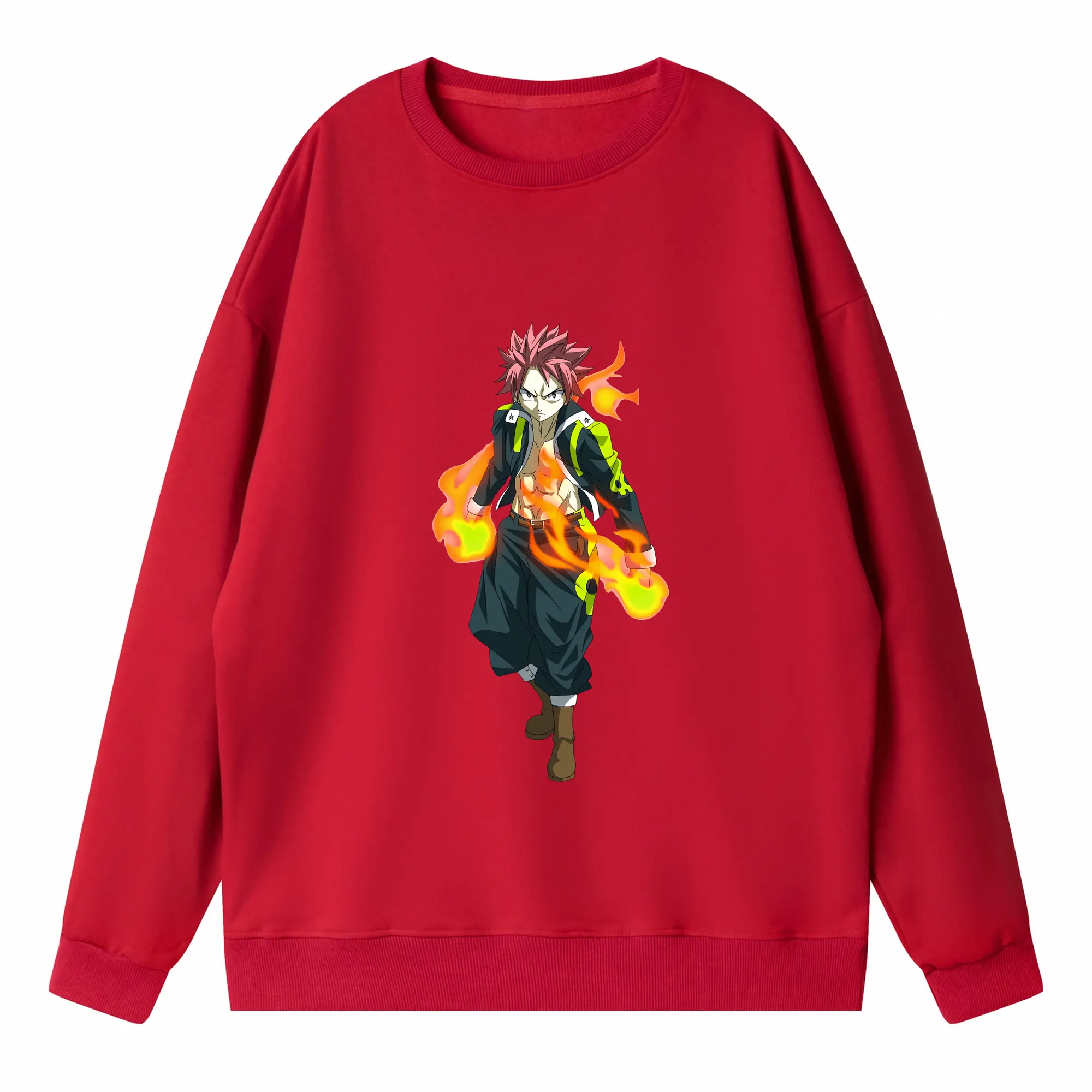 フェアリーテイル グッズ ナツ・ドラグニル - 高品質 クルーネック スウェット ・ コットン59% ポリエステル41% ・ ユニセックス 長袖 トレーナー ・ カジュアル デイリー スポーツ 散歩用