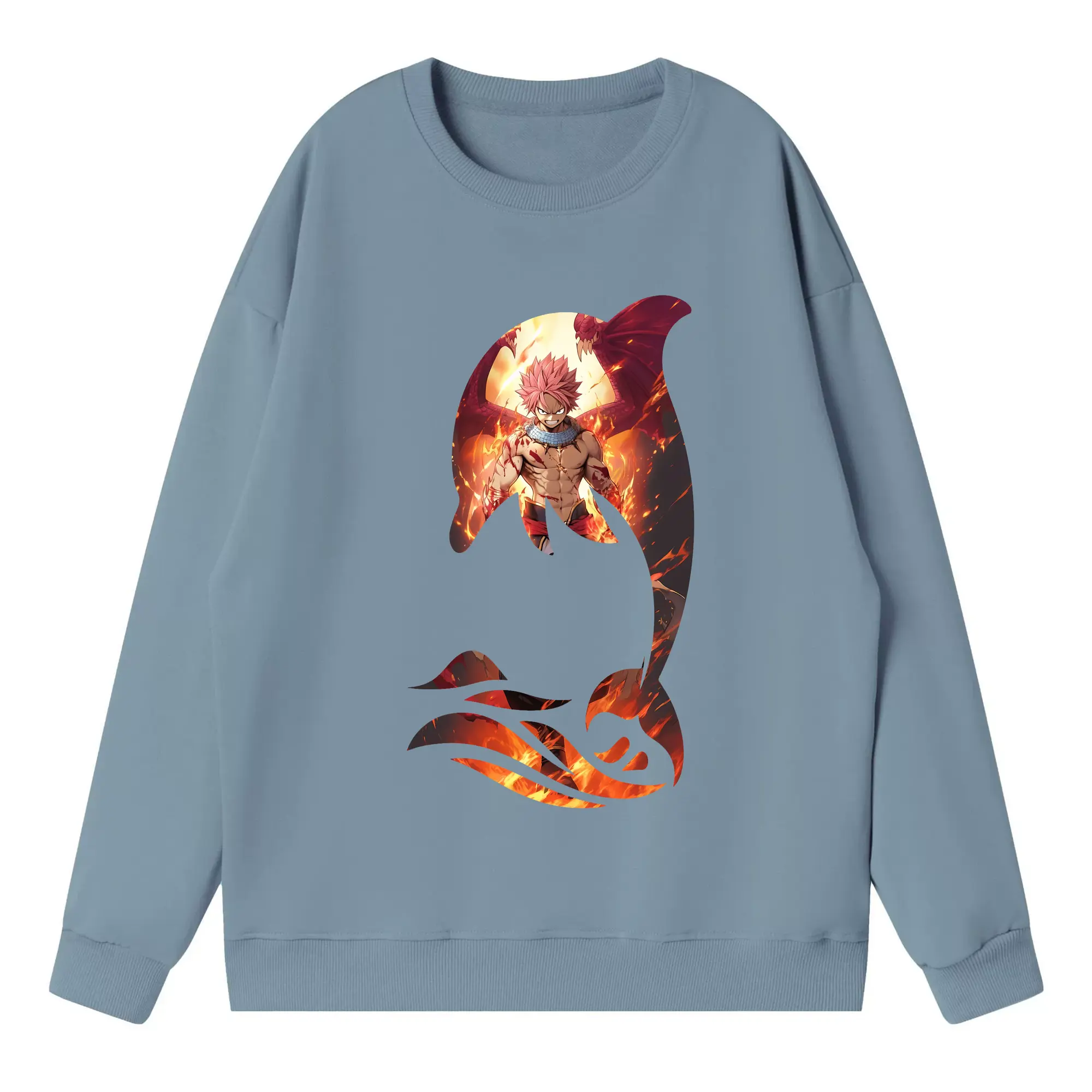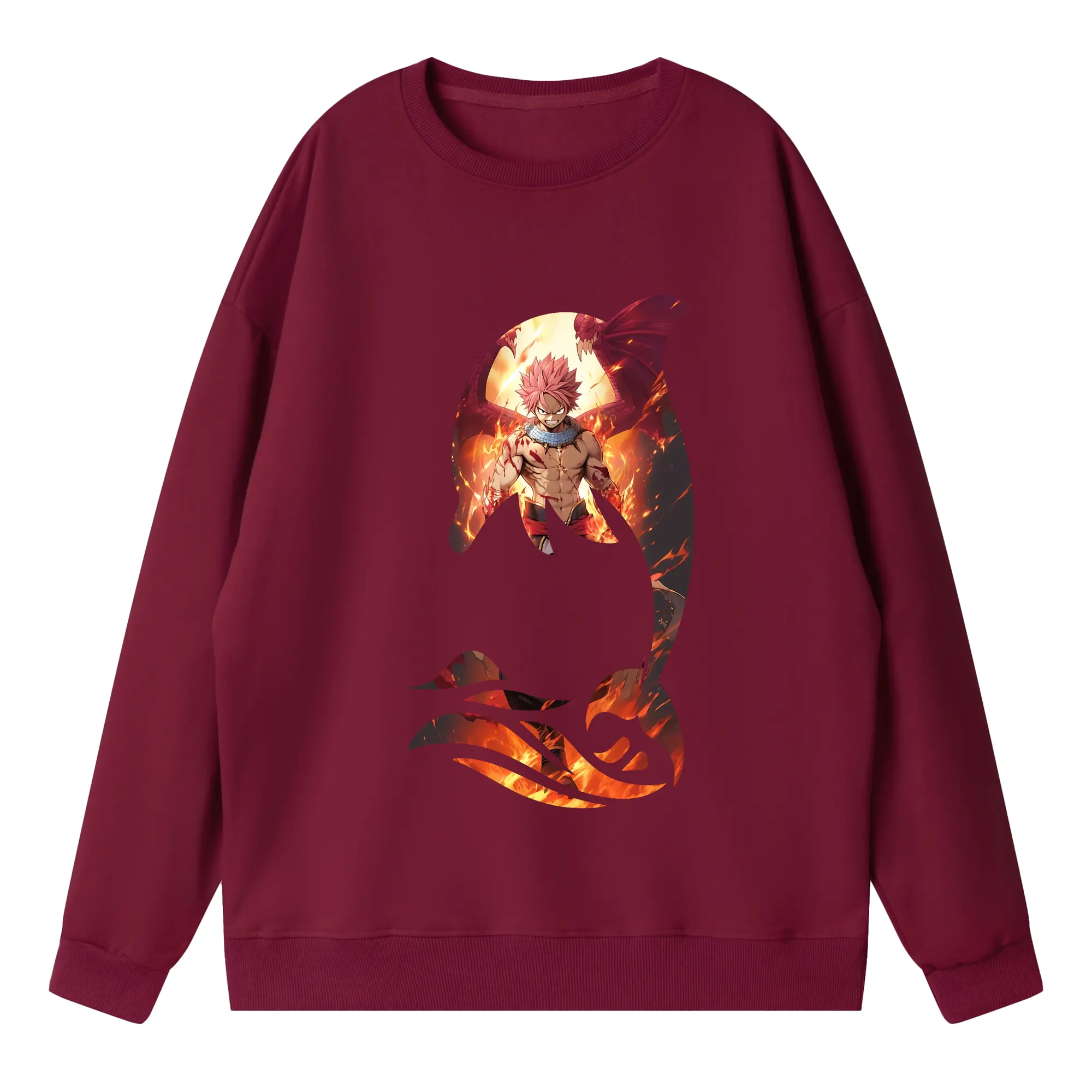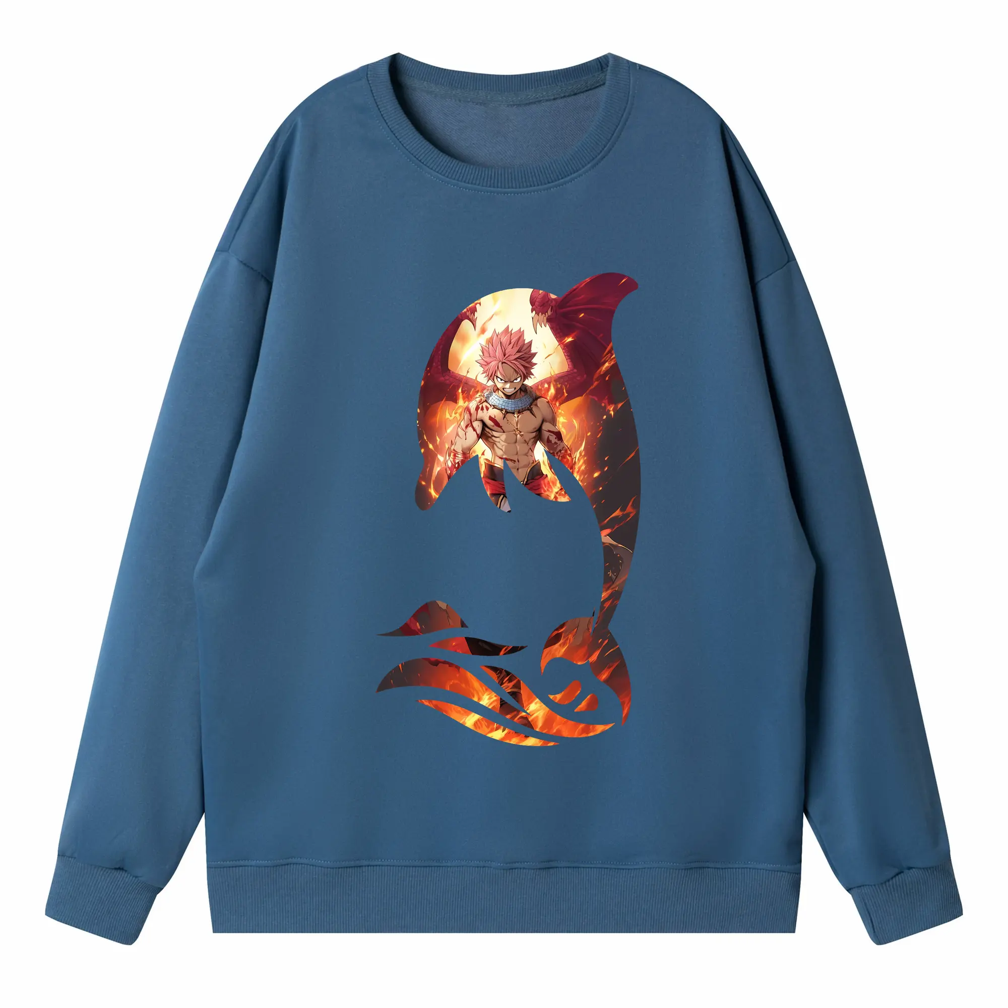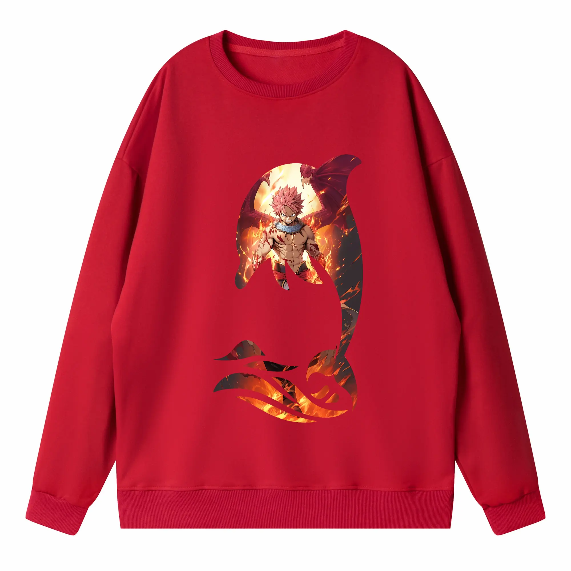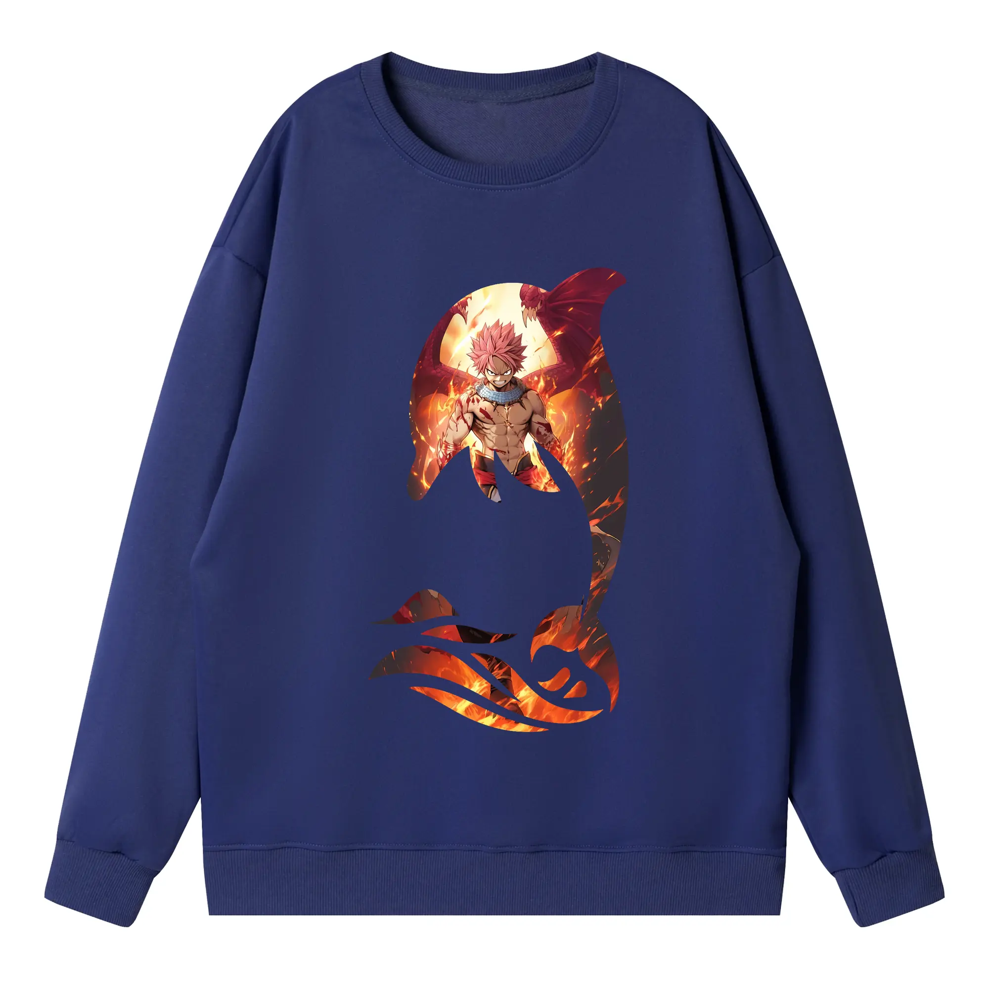 フェアリーテイル グッズ ナツ・ドラグニル - 高品質 クルーネック スウェット ・ コットン59% ポリエステル41% ・ ユニセックス 長袖 トレーナー ・ カジュアル デイリー スポーツ 散歩用