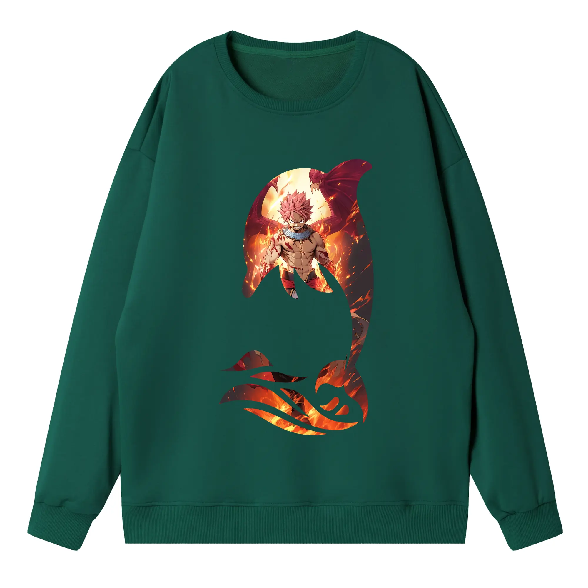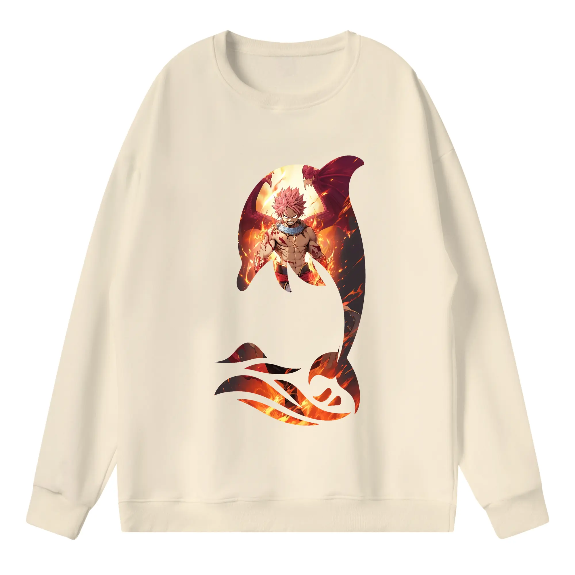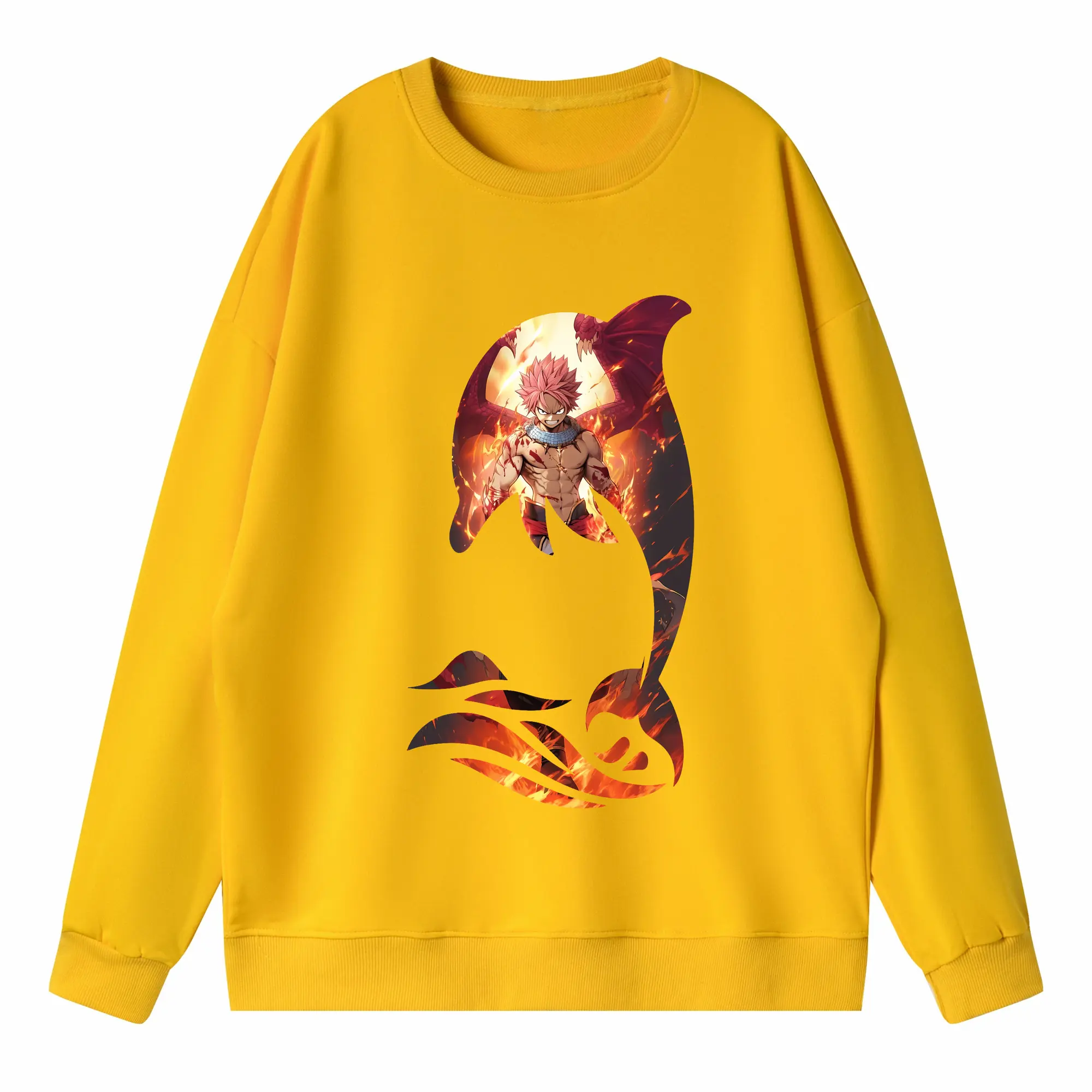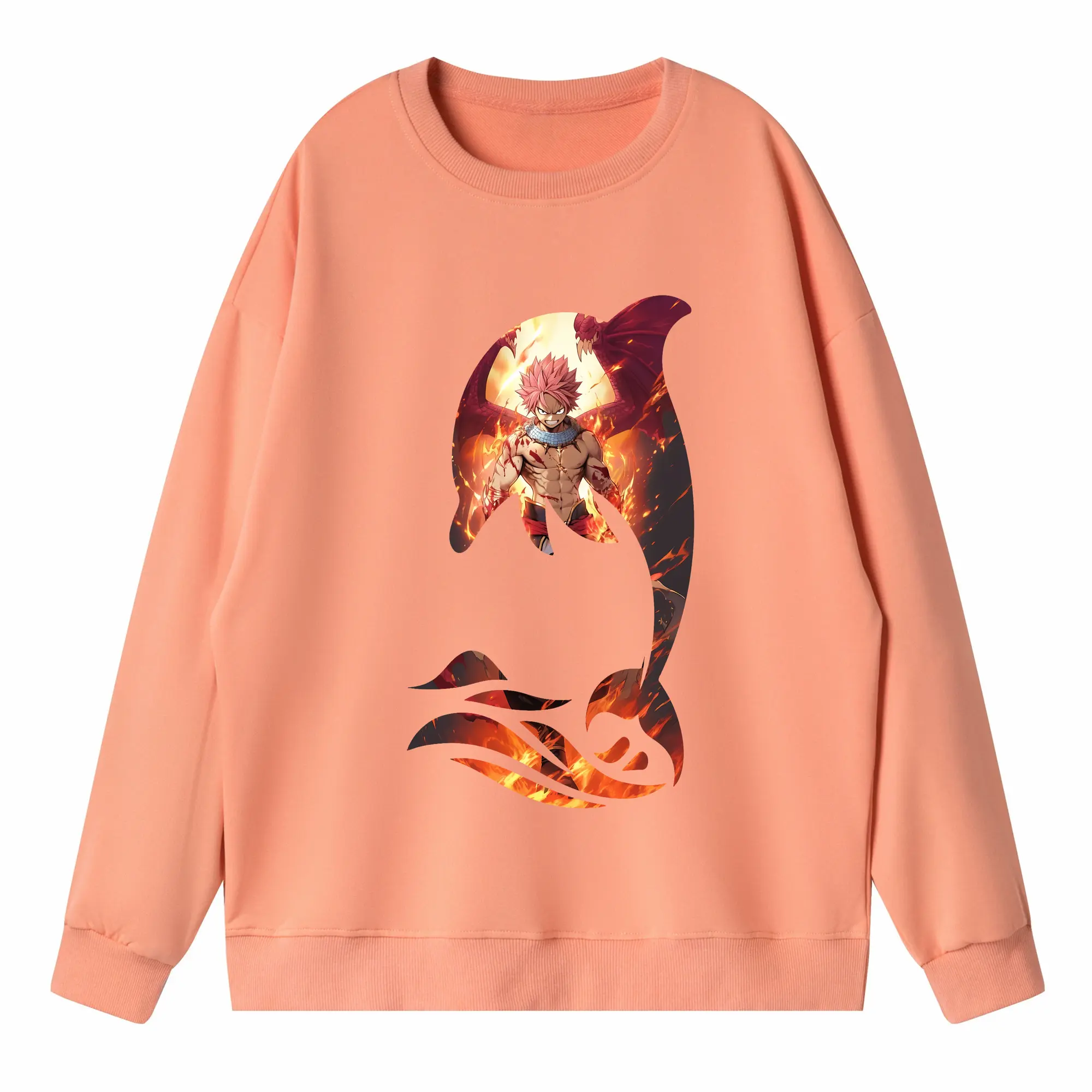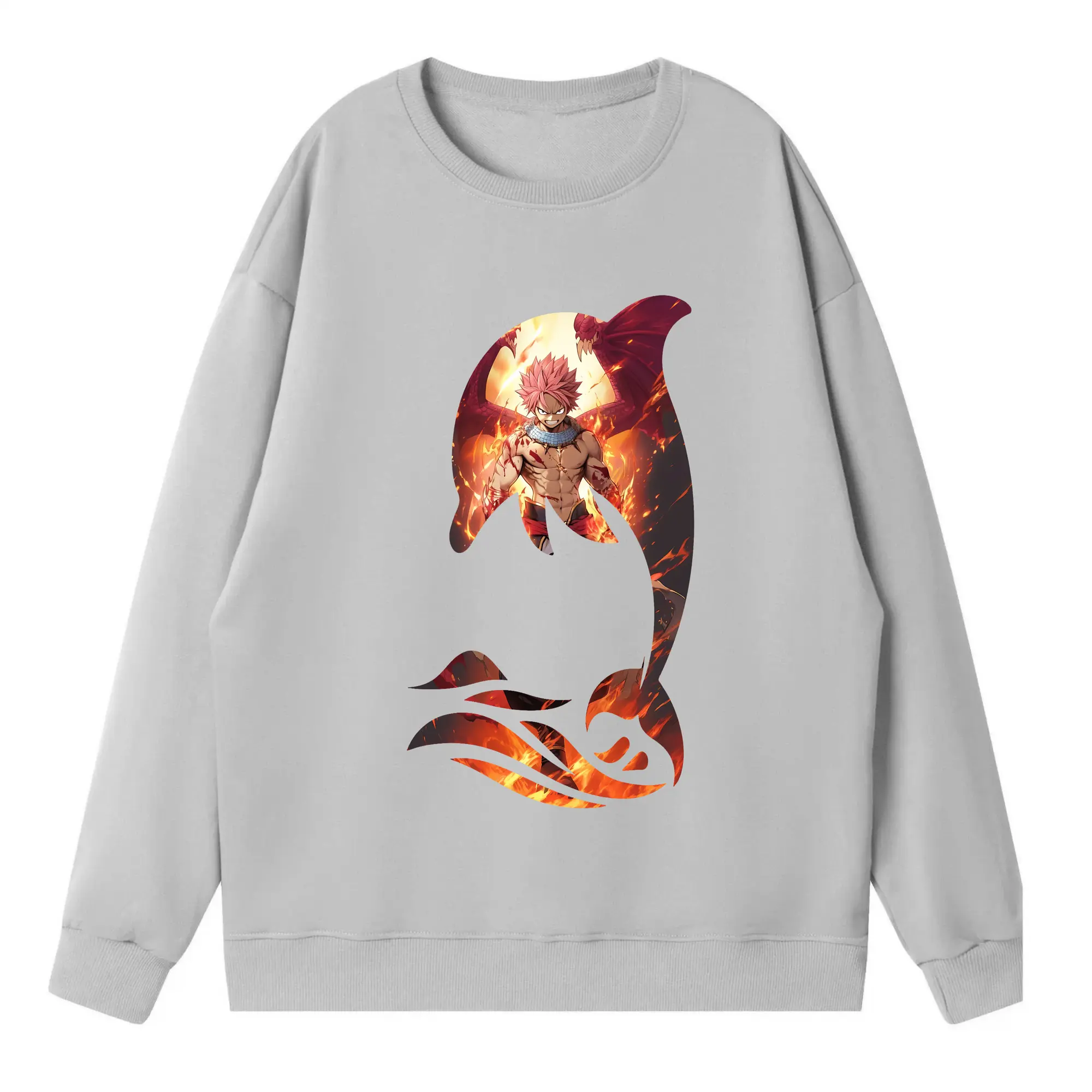 フェアリーテイル グッズ ナツ・ドラグニル - 高品質 クルーネック スウェット ・ コットン59% ポリエステル41% ・ ユニセックス 長袖 トレーナー ・ カジュアル デイリー スポーツ 散歩用