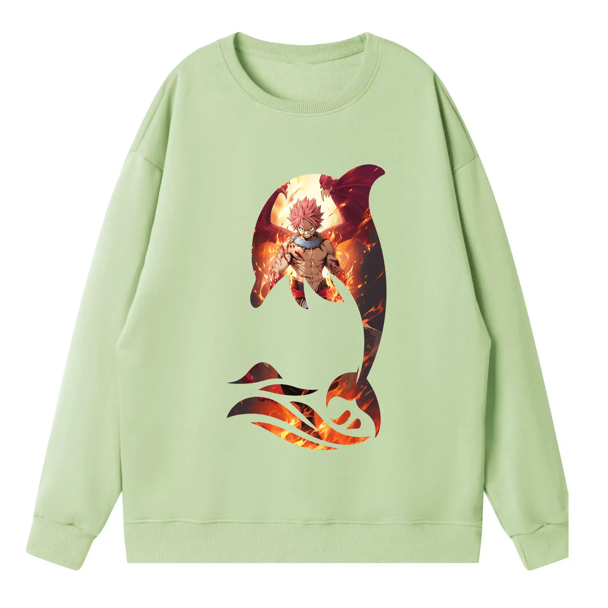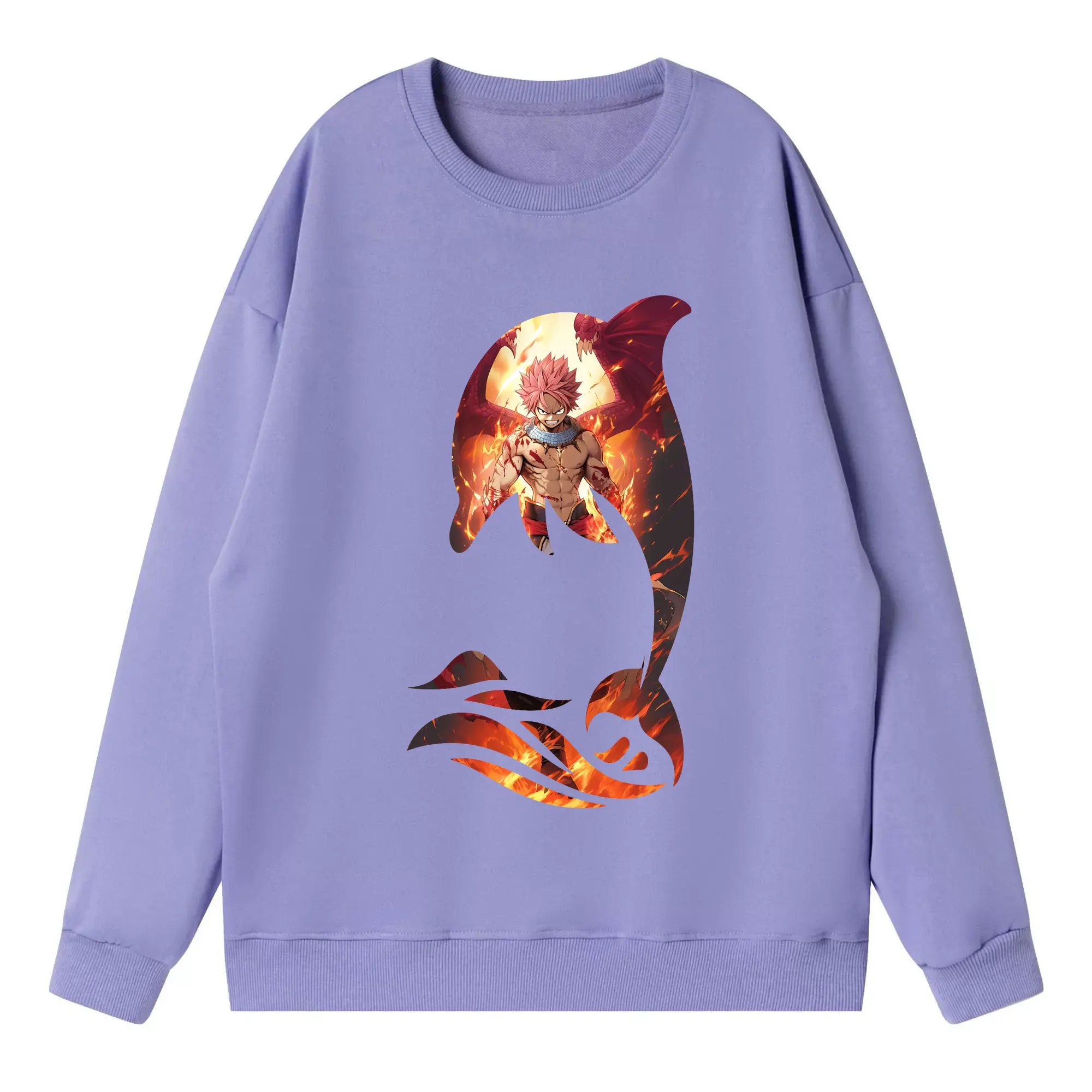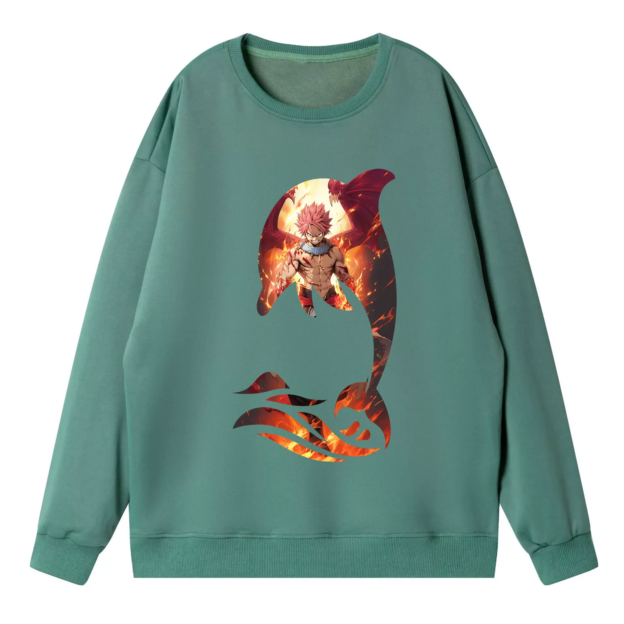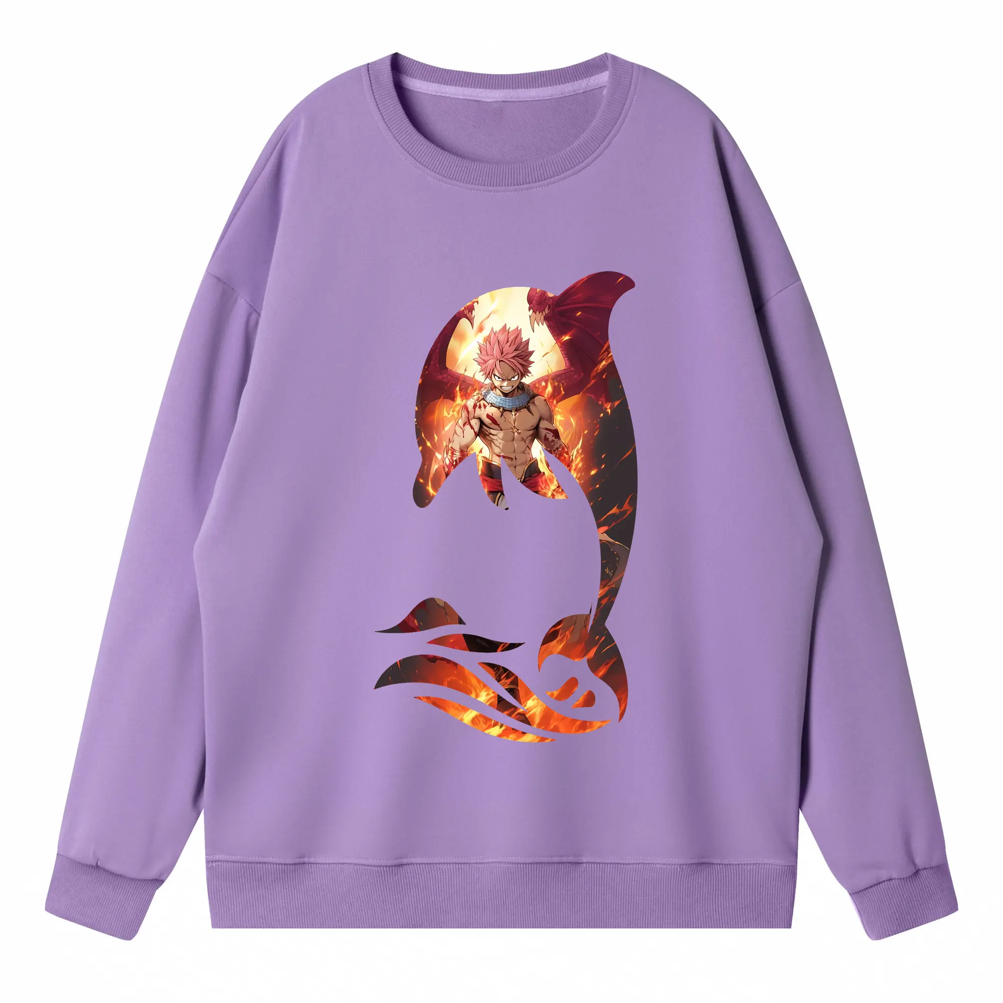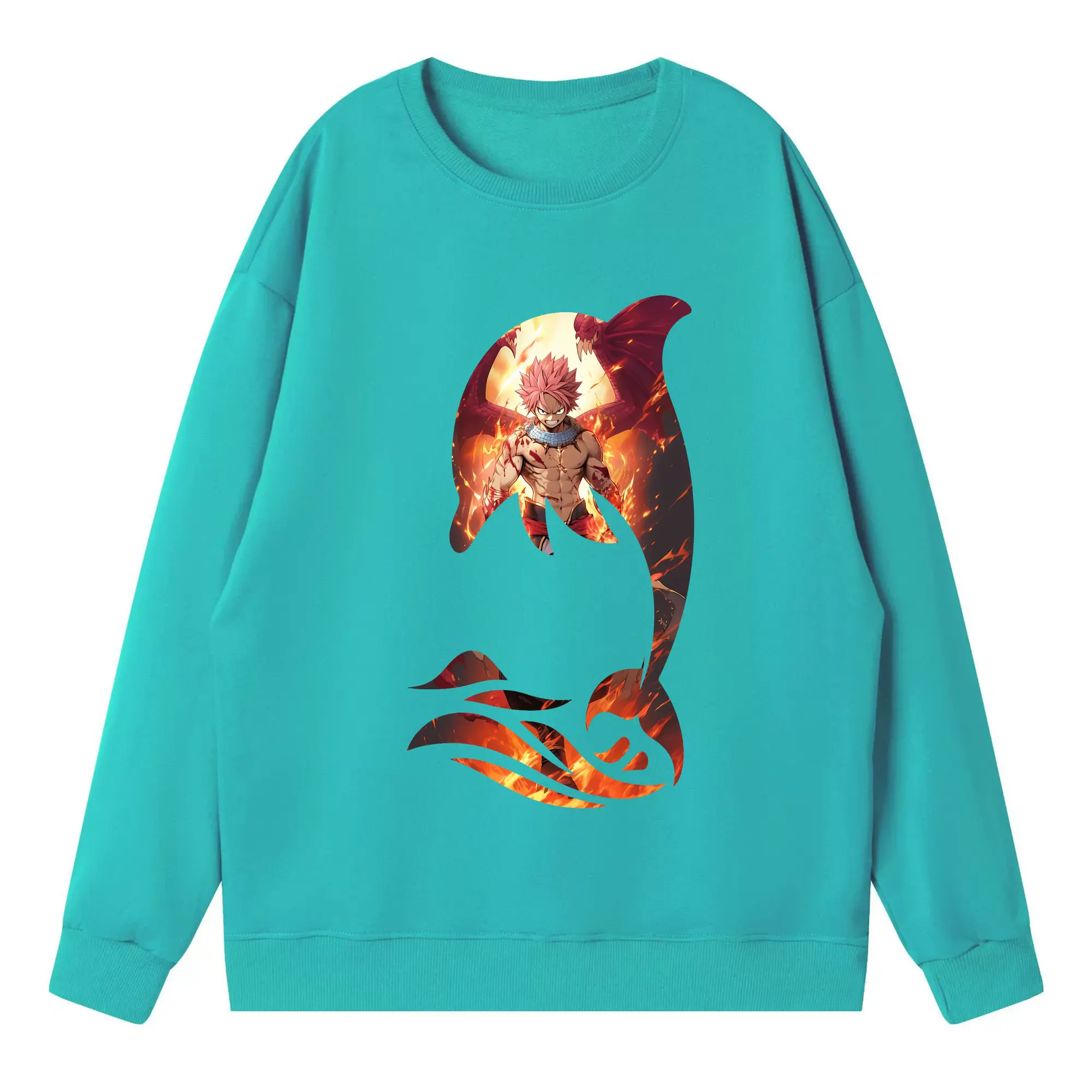 フェアリーテイル グッズ ナツ・ドラグニル - 高品質 クルーネック スウェット ・ コットン59% ポリエステル41% ・ ユニセックス 長袖 トレーナー ・ カジュアル デイリー スポーツ 散歩用