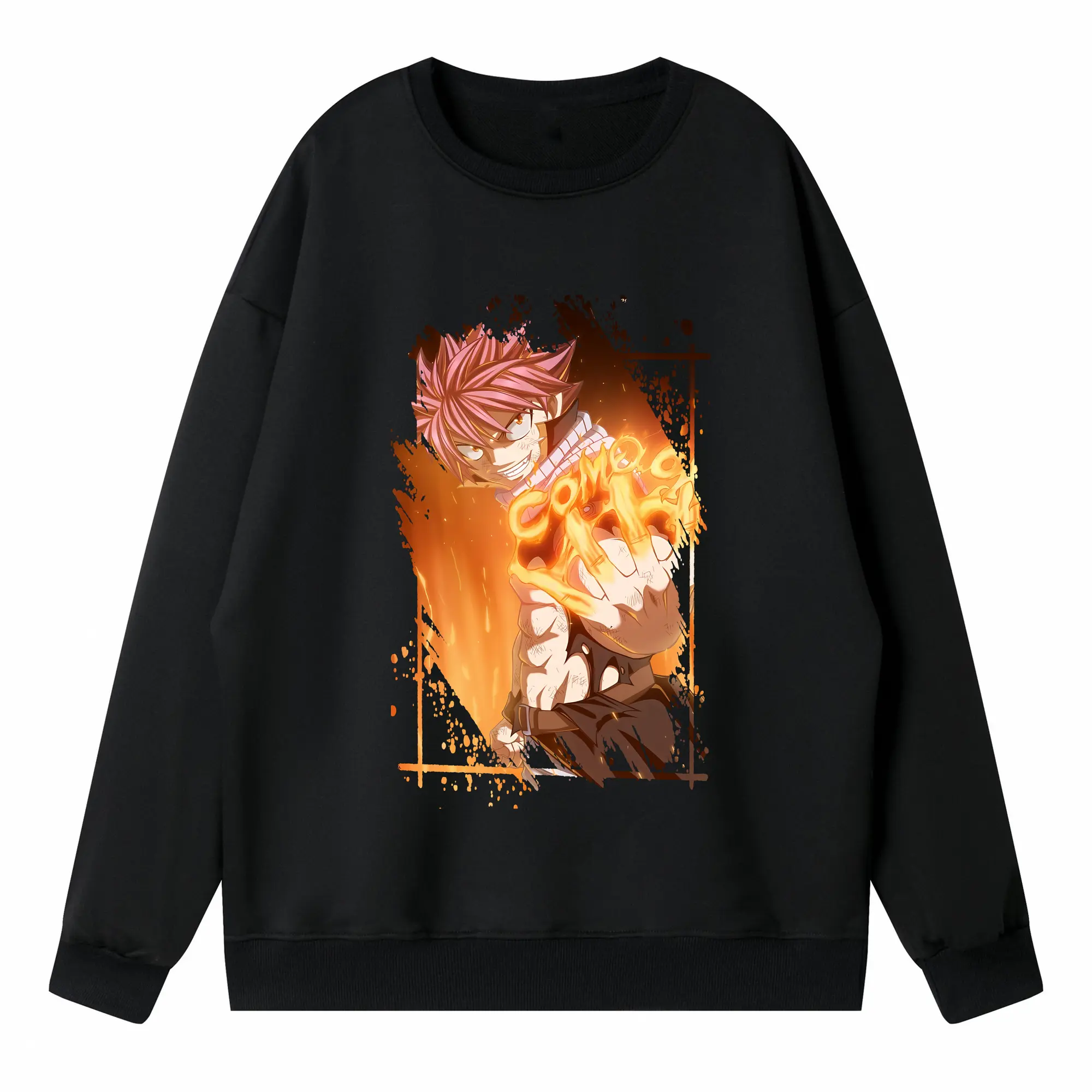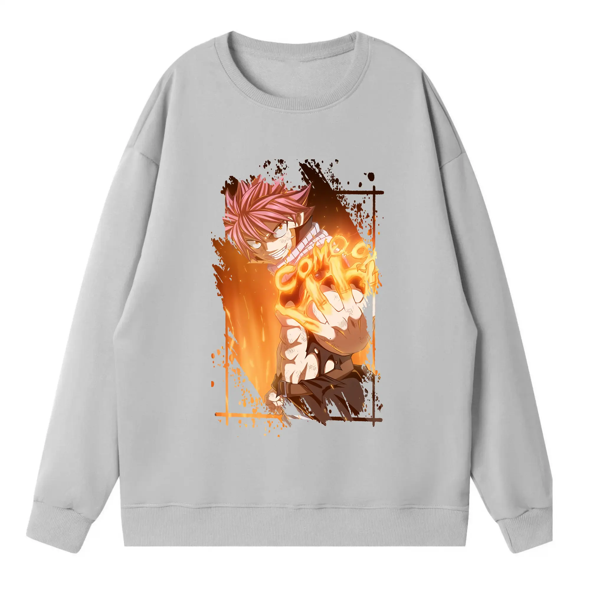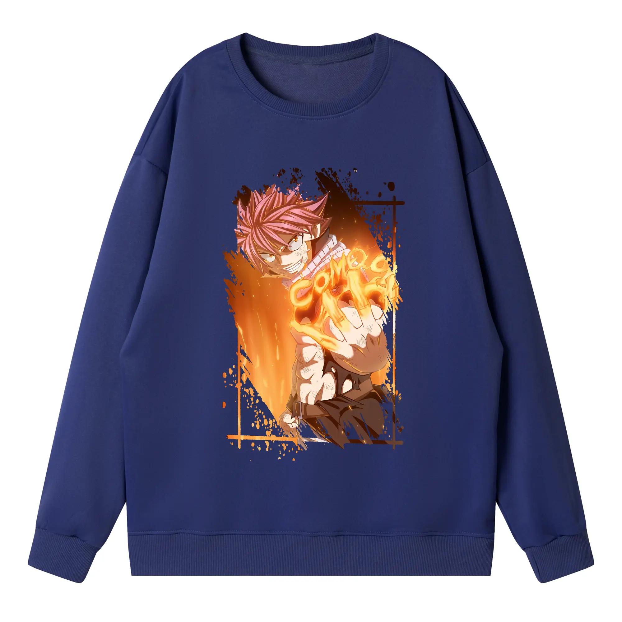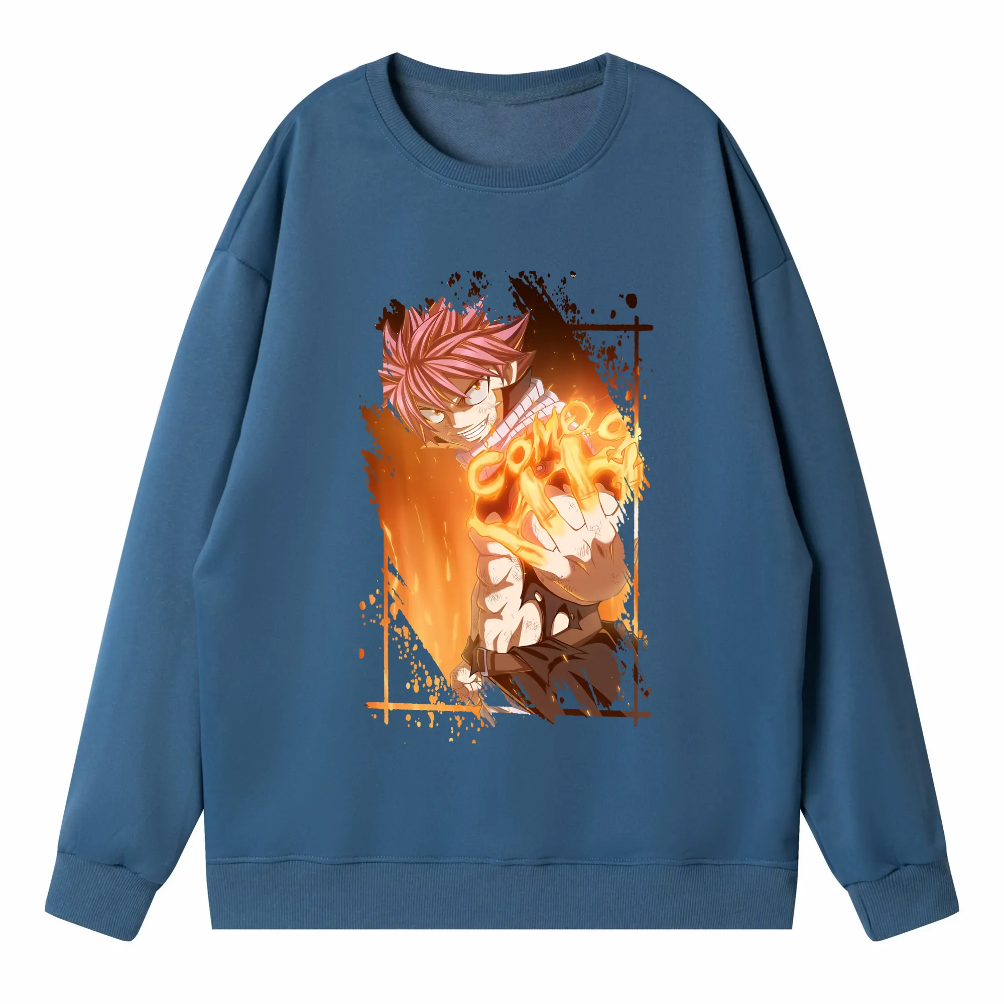 フェアリーテイル グッズ ナツ・ドラグニル - 高品質 クルーネック スウェット ・ コットン59% ポリエステル41% ・ ユニセックス 長袖 トレーナー ・ カジュアル デイリー スポーツ 散歩用