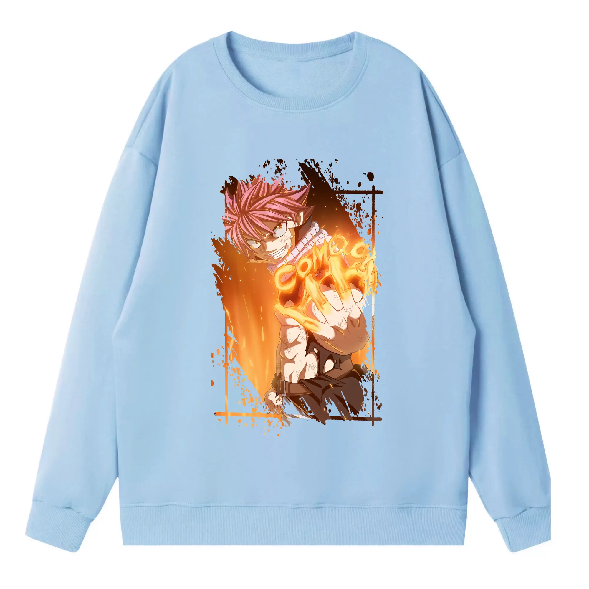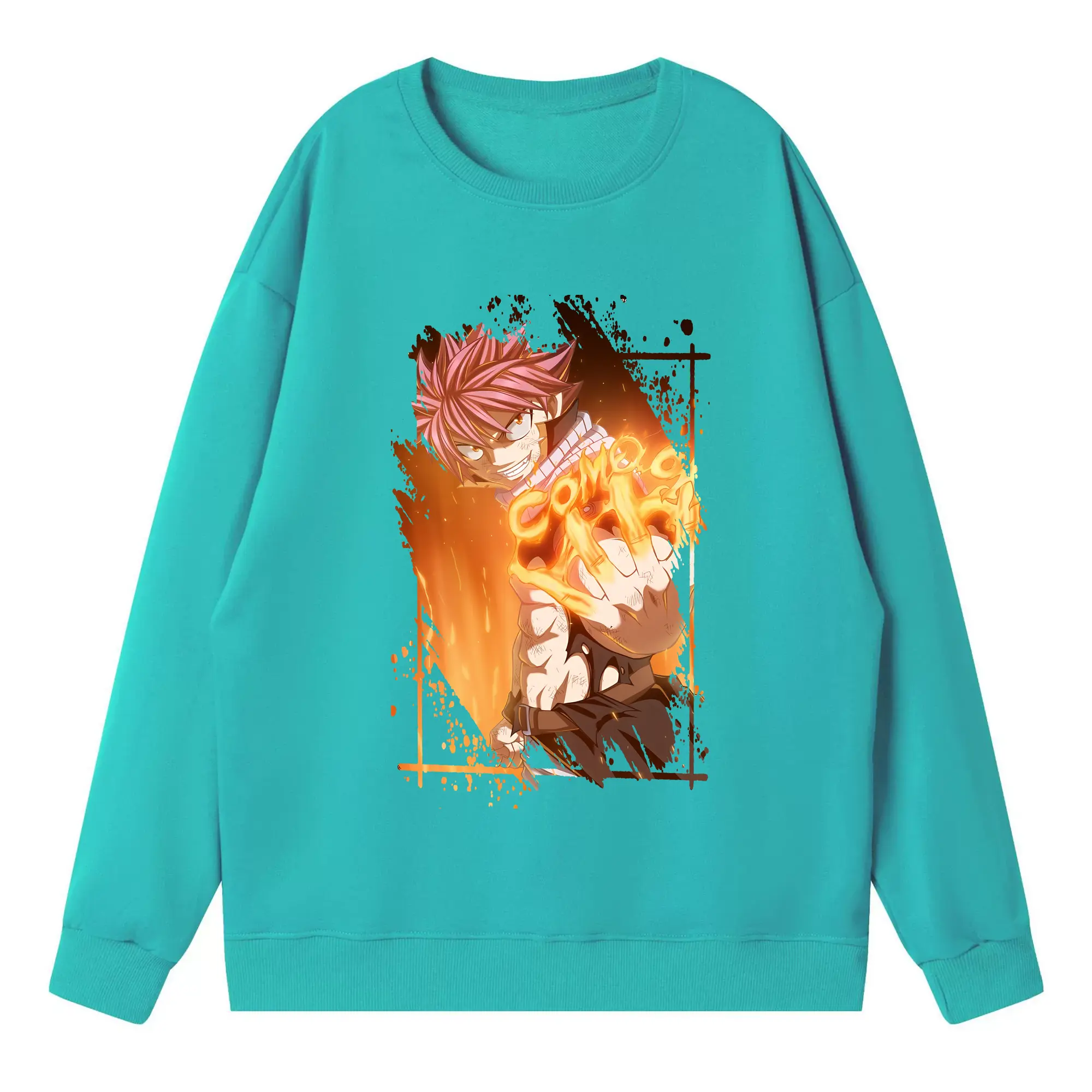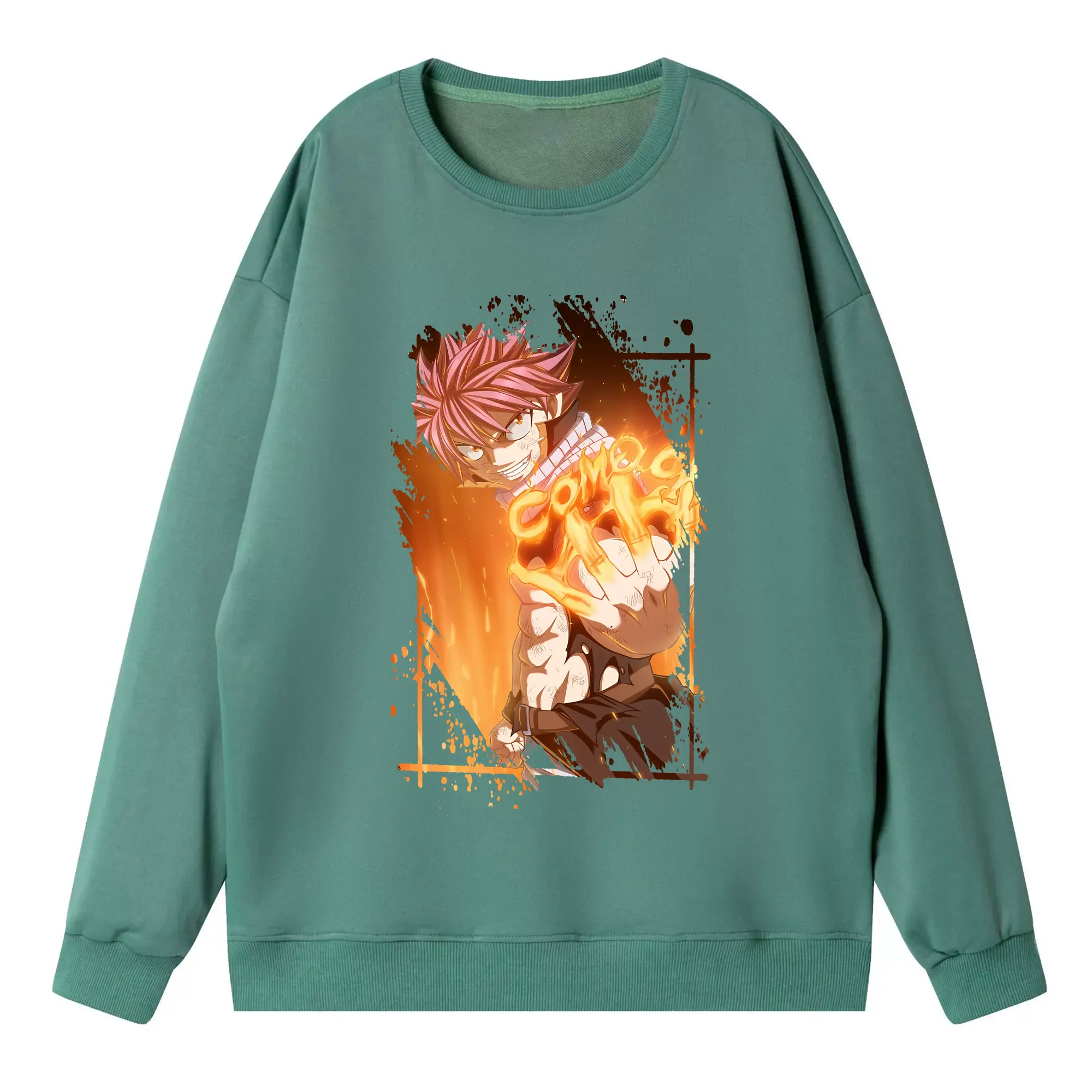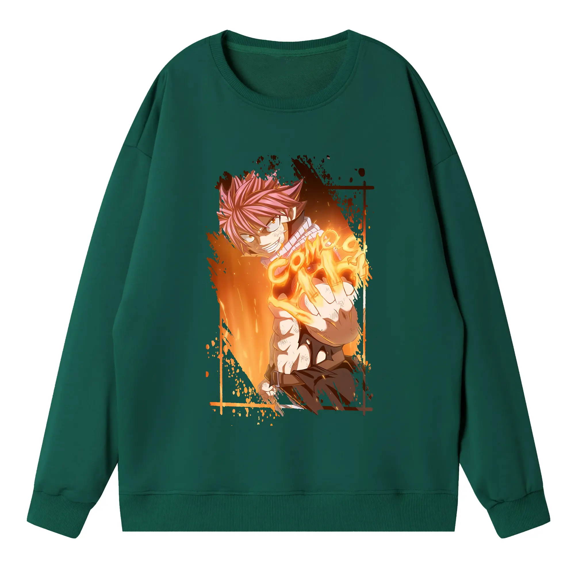 フェアリーテイル グッズ ナツ・ドラグニル - 高品質 クルーネック スウェット ・ コットン59% ポリエステル41% ・ ユニセックス 長袖 トレーナー ・ カジュアル デイリー スポーツ 散歩用