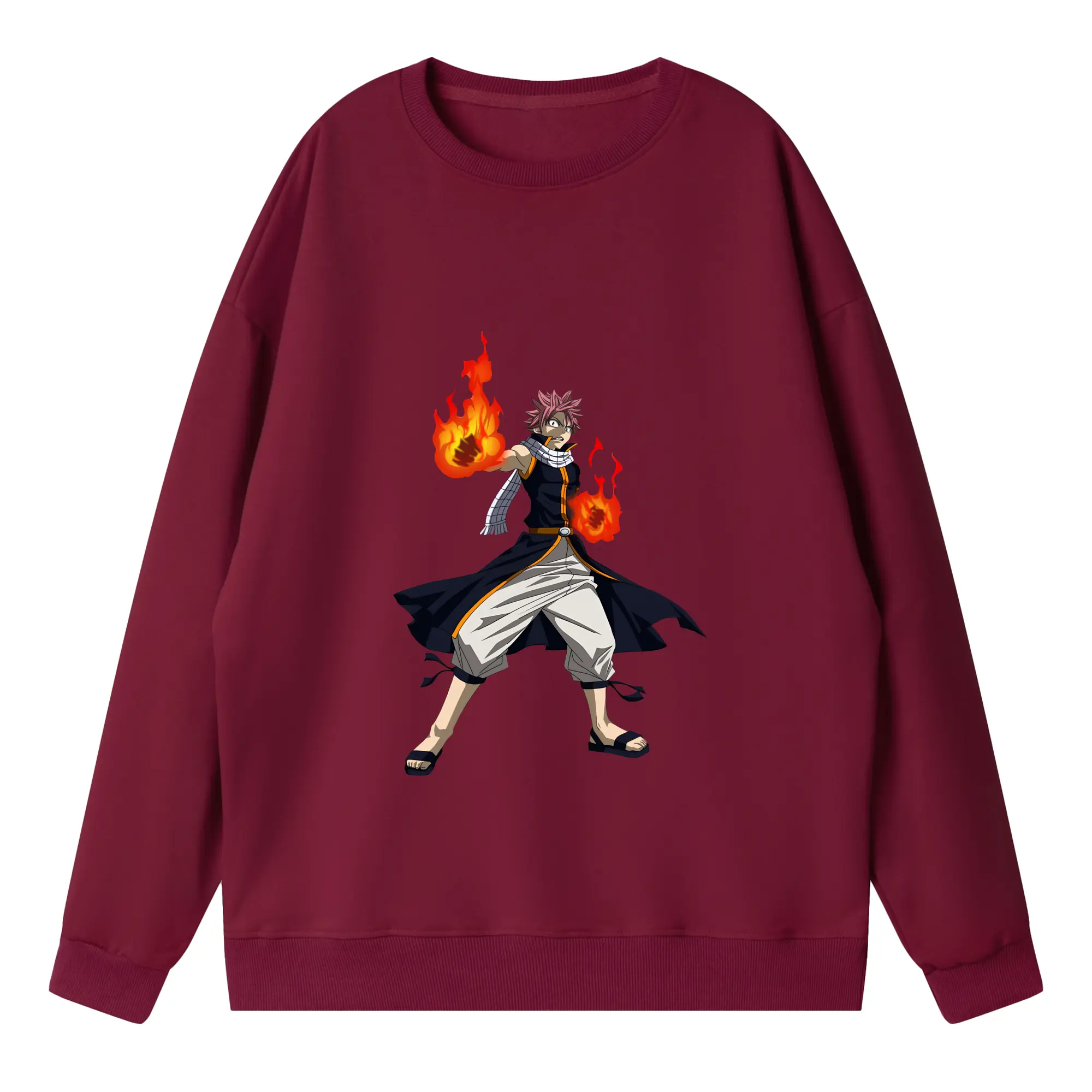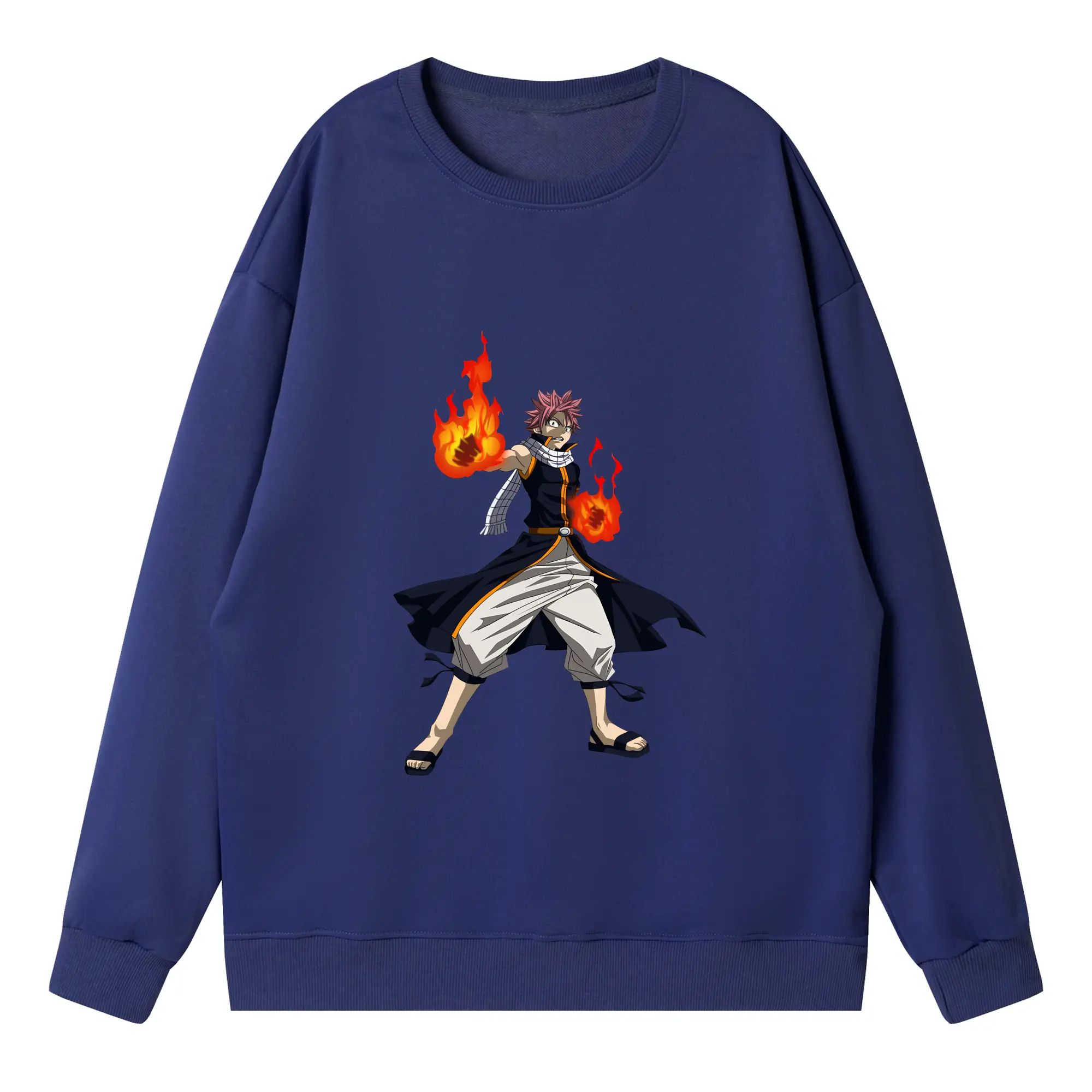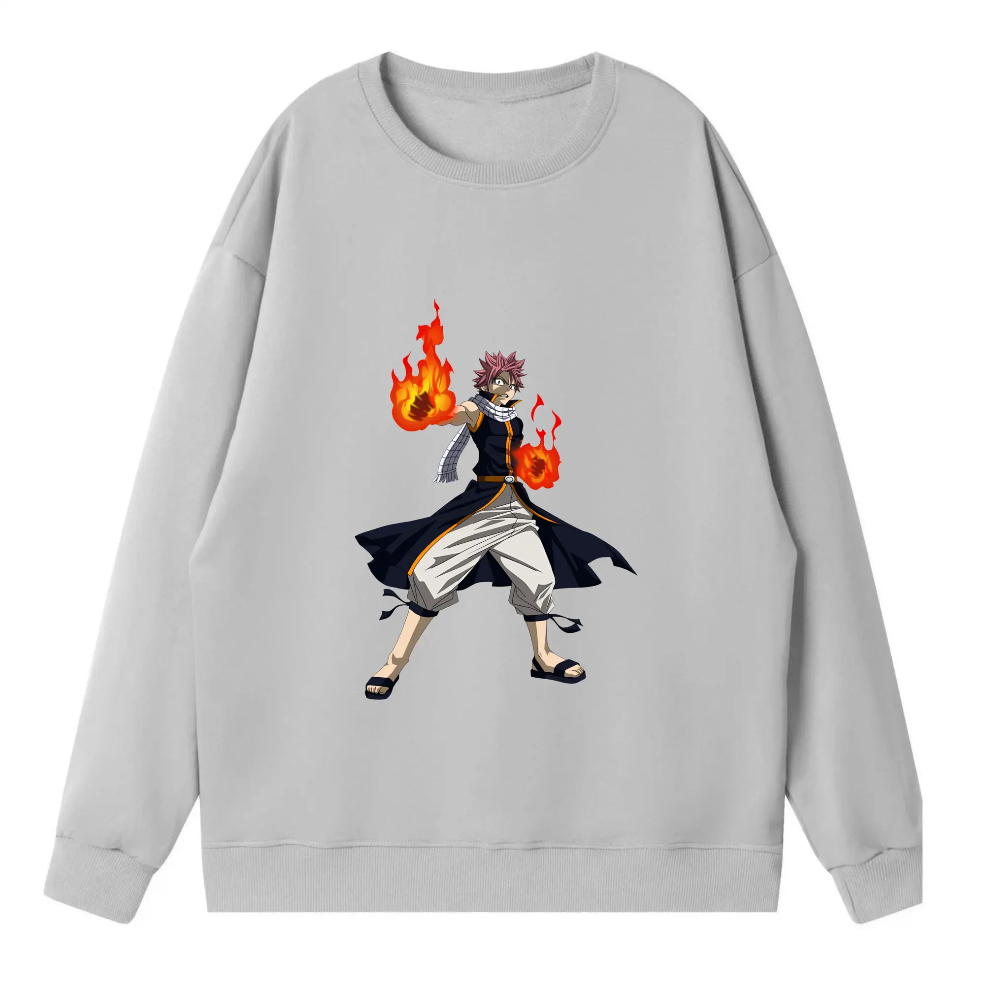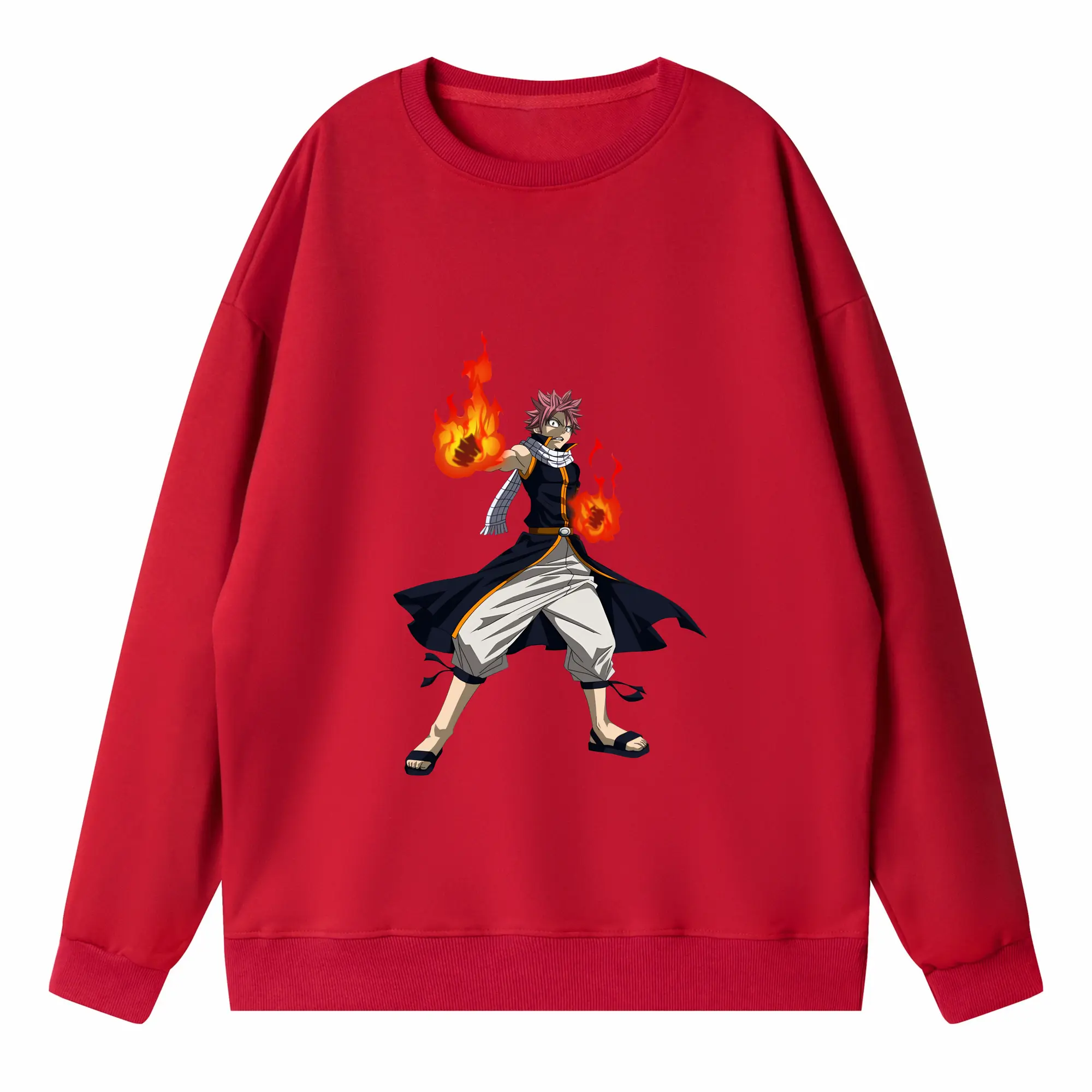 フェアリーテイル グッズ ナツ・ドラグニル - 高品質 クルーネック スウェット ・ コットン59% ポリエステル41% ・ ユニセックス 長袖 トレーナー ・ カジュアル デイリー スポーツ 散歩用