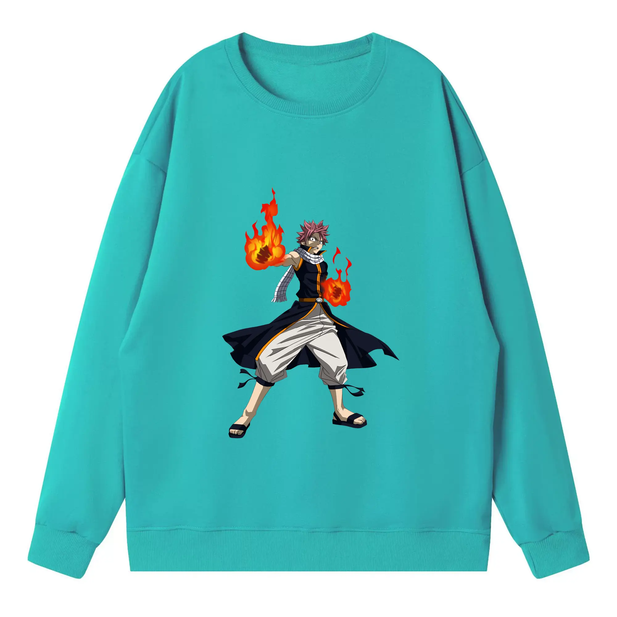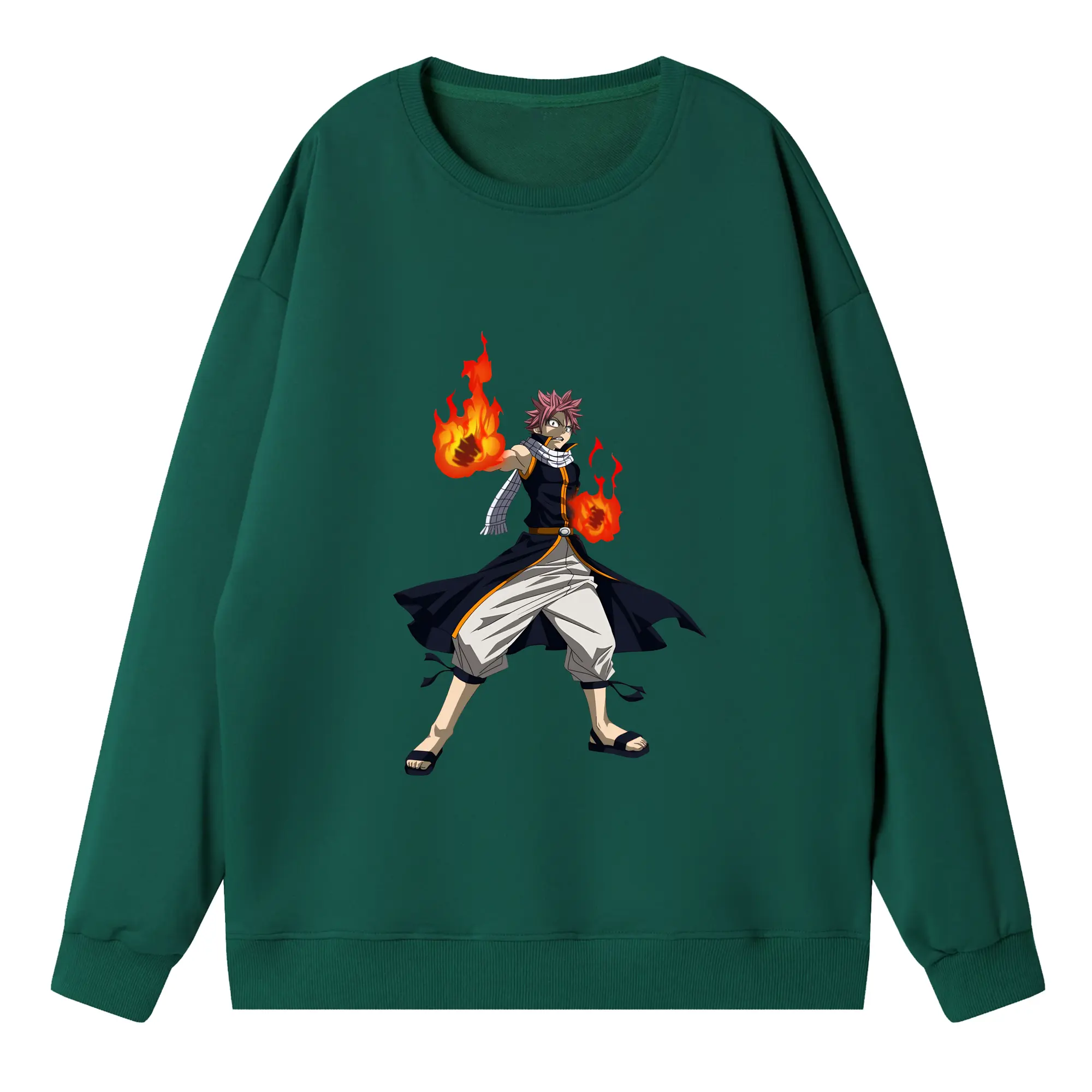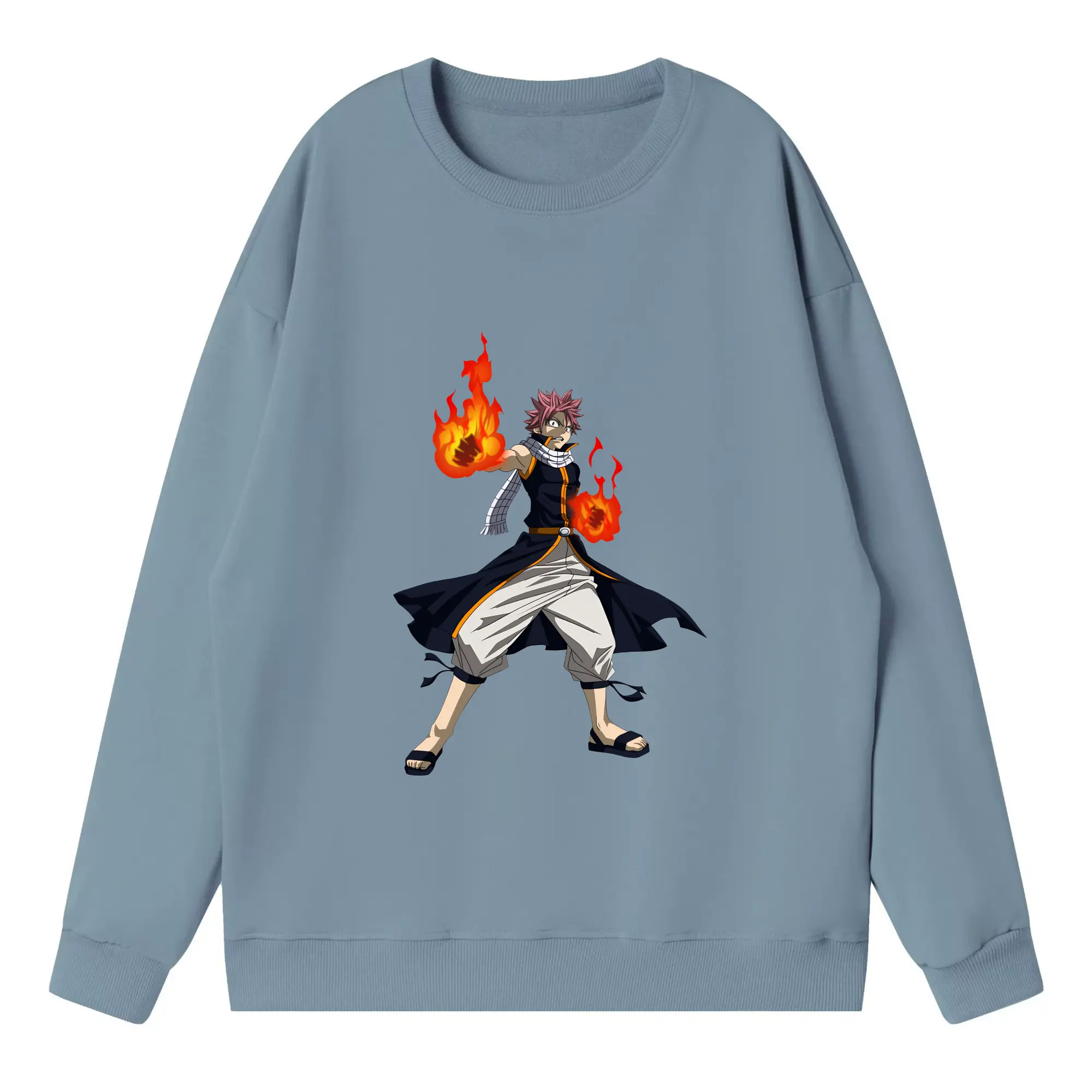 フェアリーテイル グッズ ナツ・ドラグニル - 高品質 クルーネック スウェット ・ コットン59% ポリエステル41% ・ ユニセックス 長袖 トレーナー ・ カジュアル デイリー スポーツ 散歩用