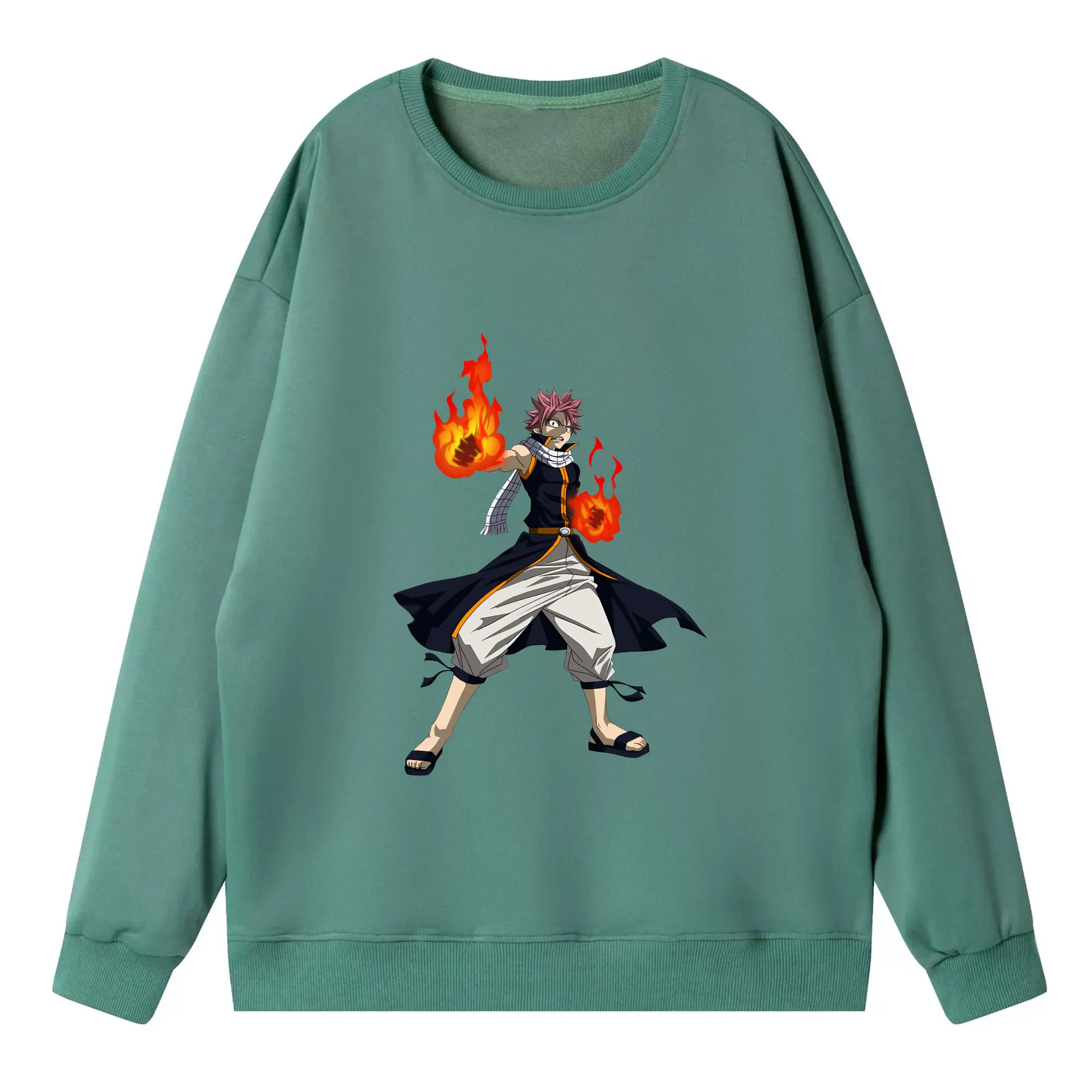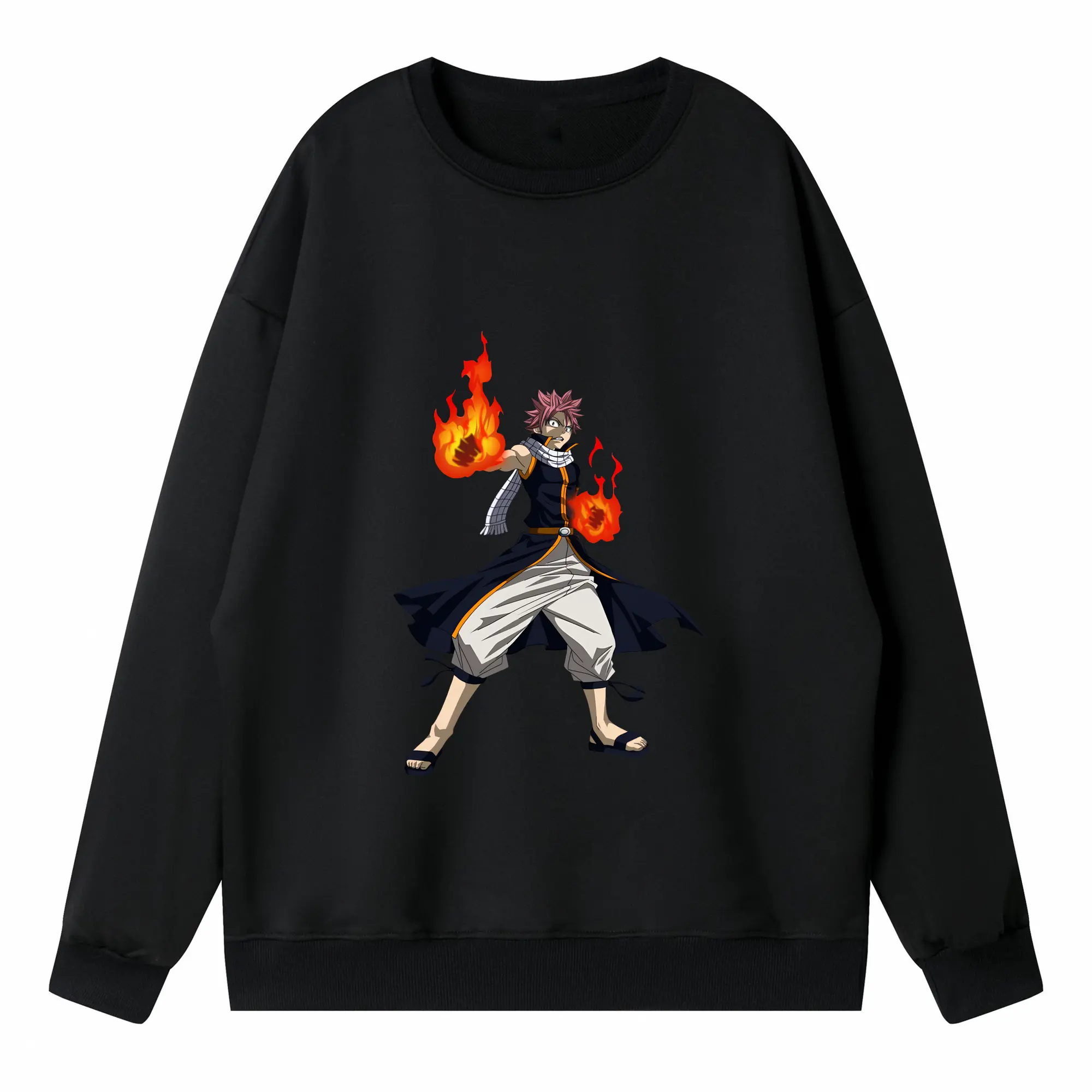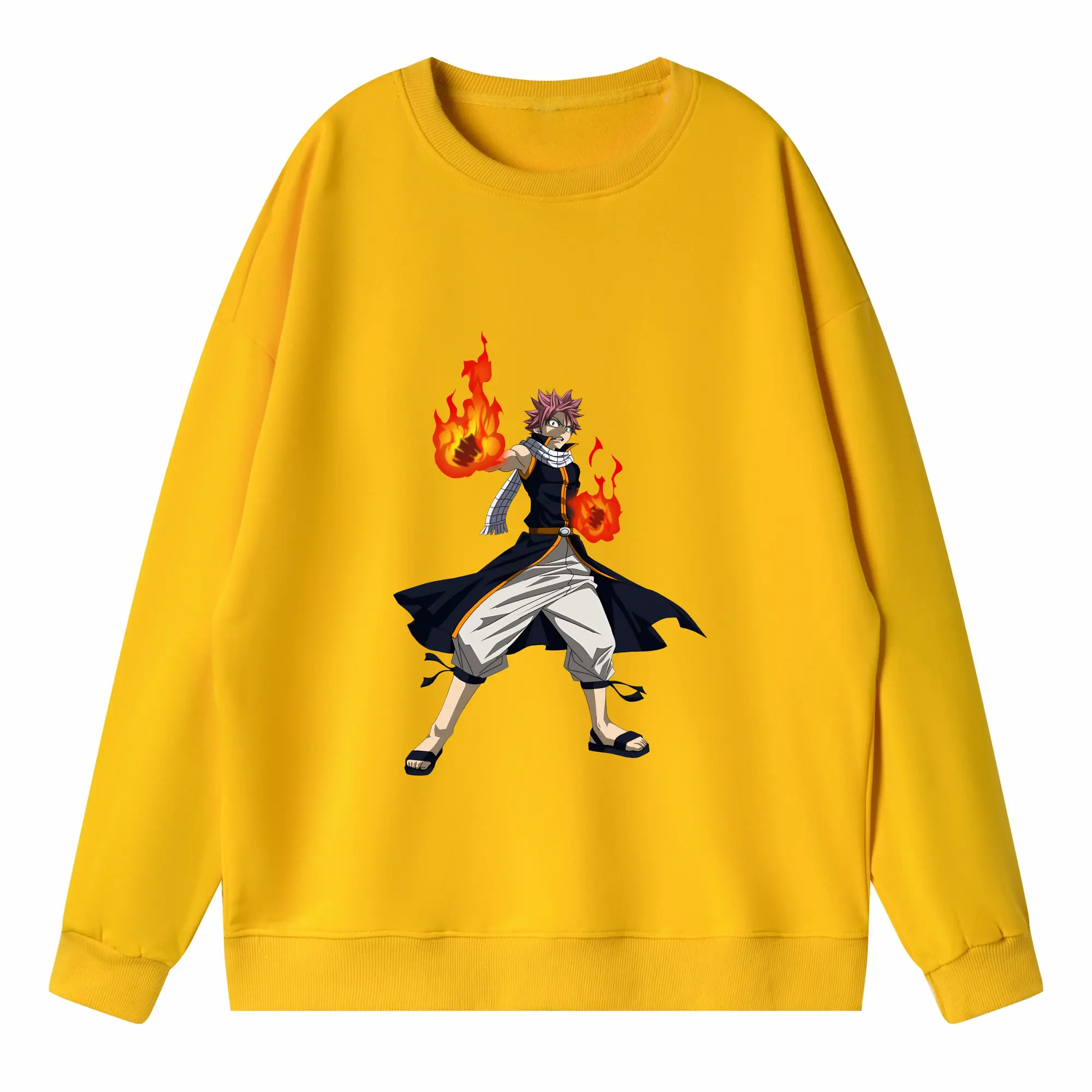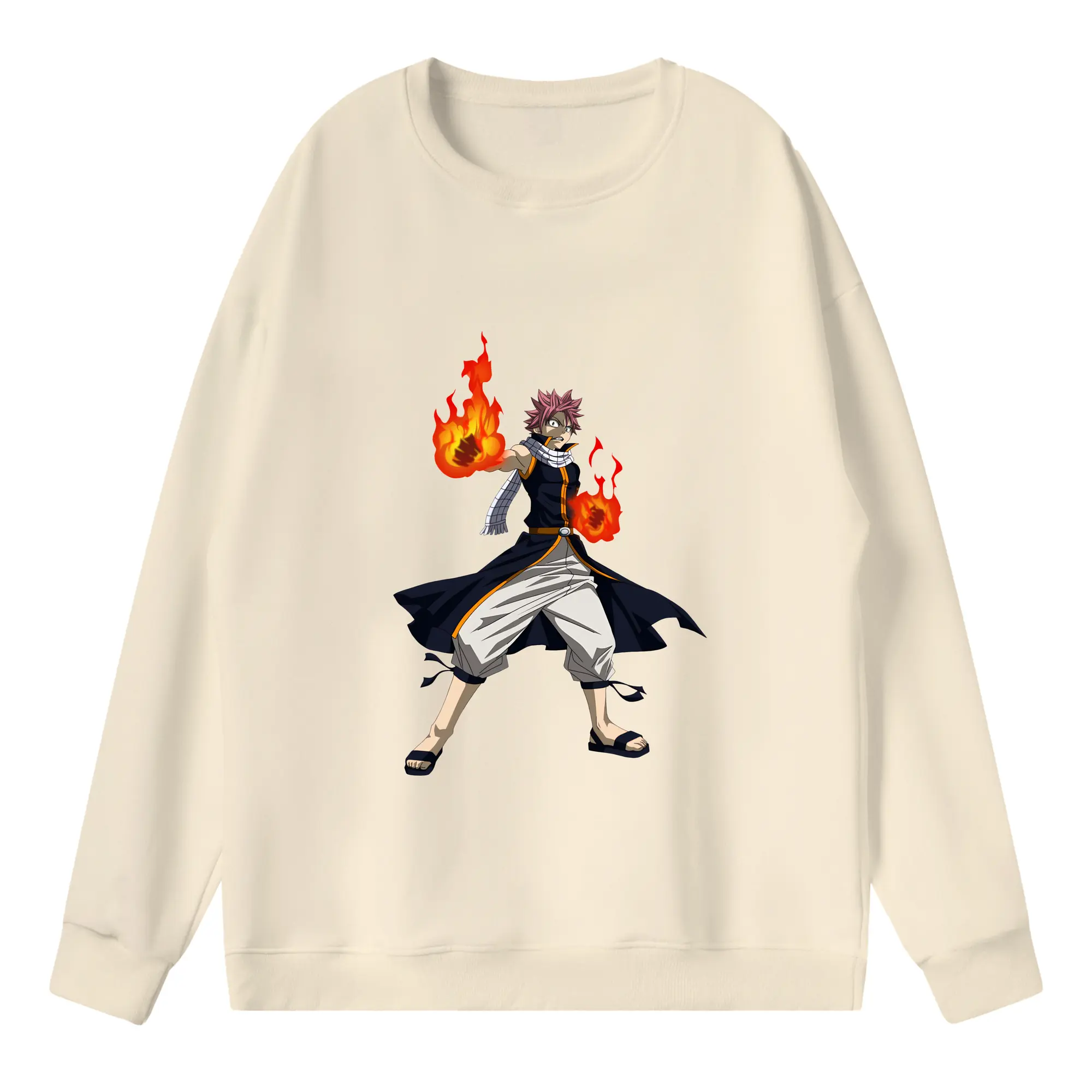 フェアリーテイル グッズ ナツ・ドラグニル - 高品質 クルーネック スウェット ・ コットン59% ポリエステル41% ・ ユニセックス 長袖 トレーナー ・ カジュアル デイリー スポーツ 散歩用