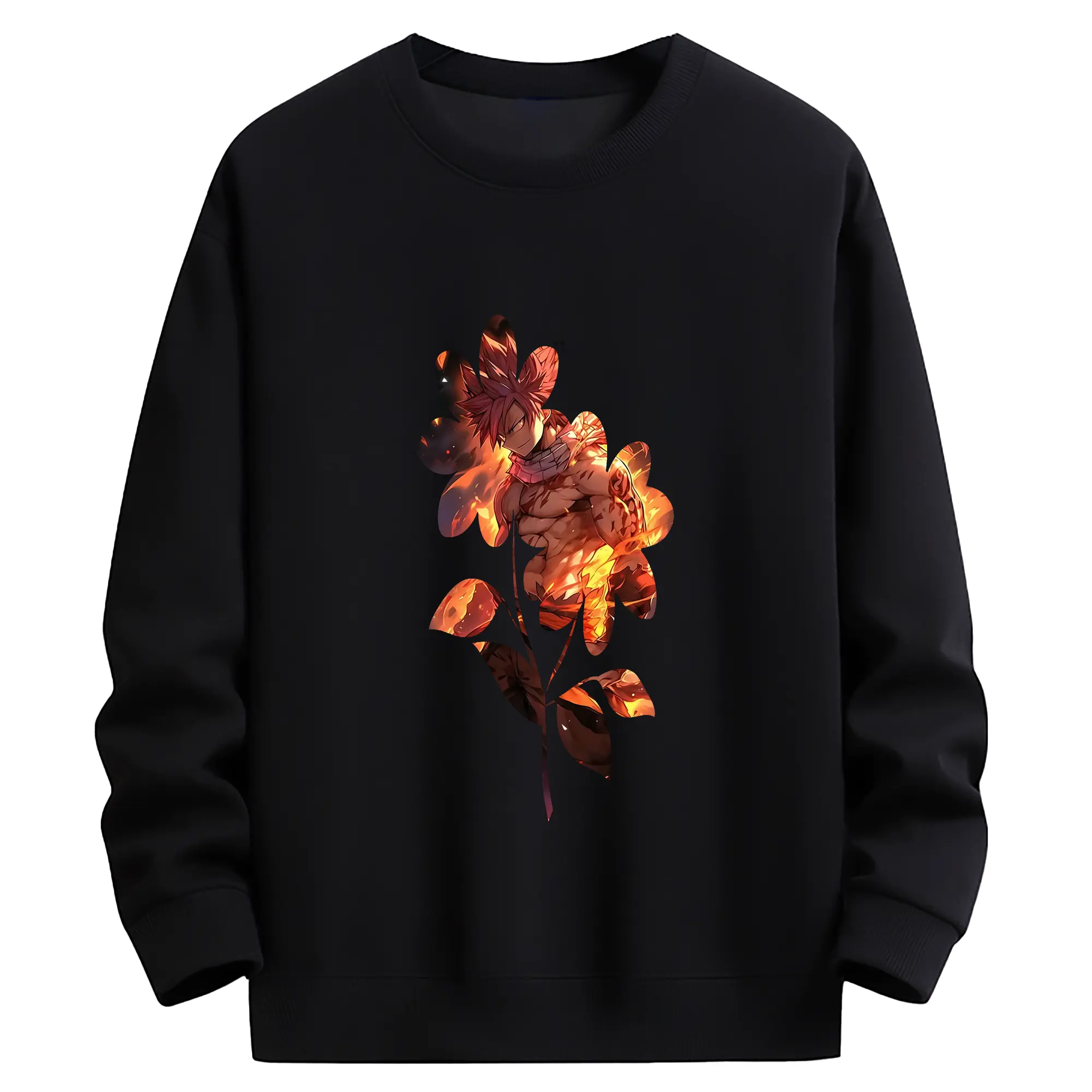 フェアリーテイル グッズ ナツ・ドラグニル - 高品質 クルーネック スウェット ・ コットン59% ポリエステル41% ・ ユニセックス 長袖 トレーナー ・ カジュアル デイリー スポーツ 散歩用