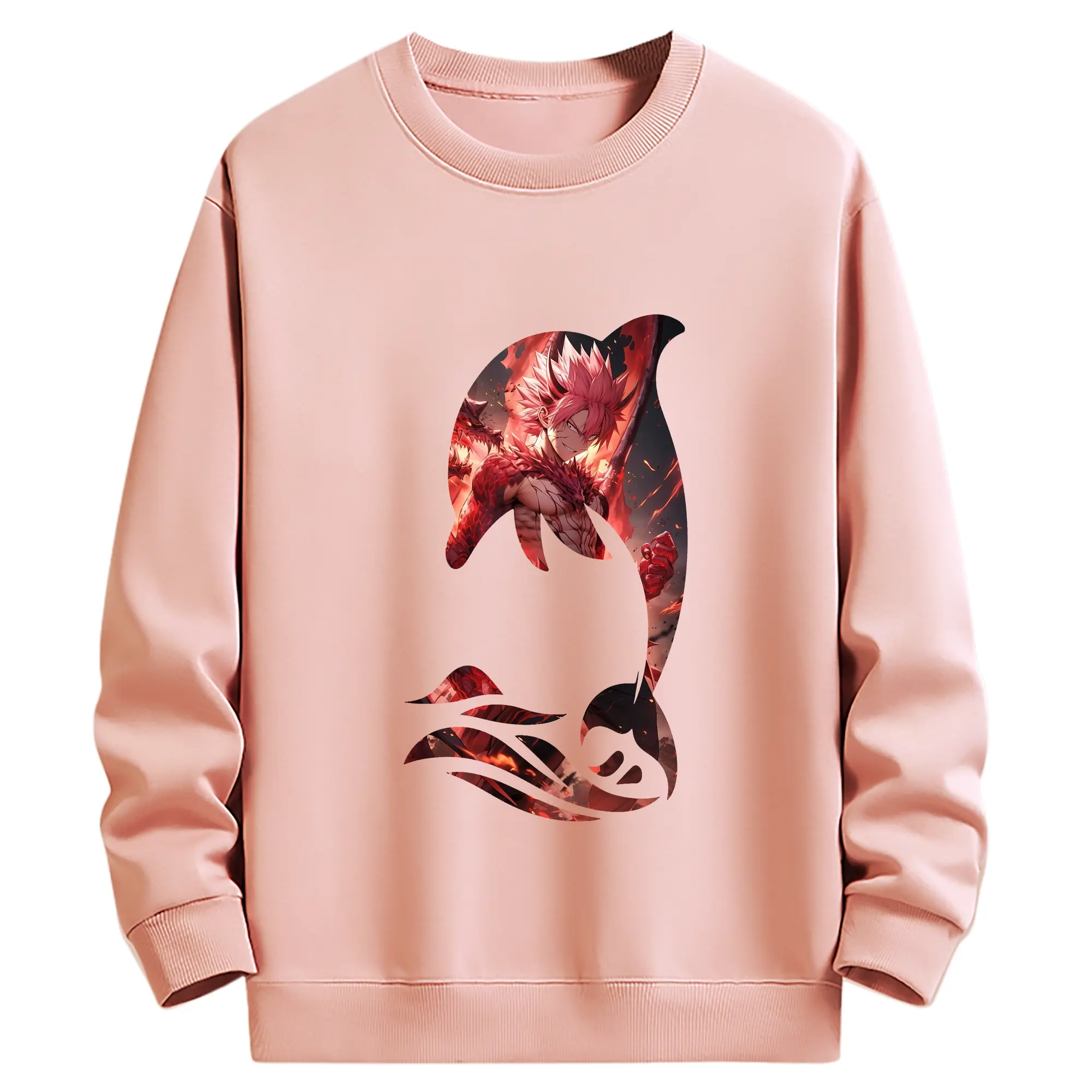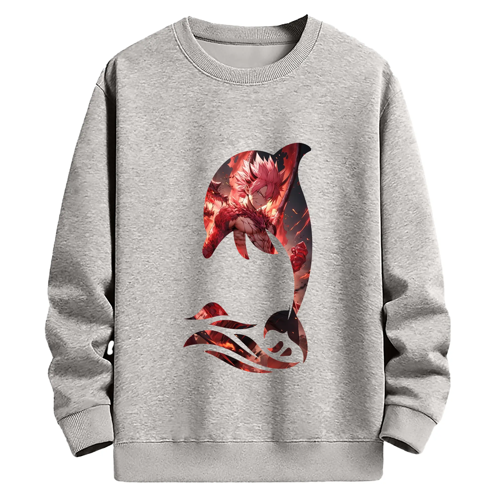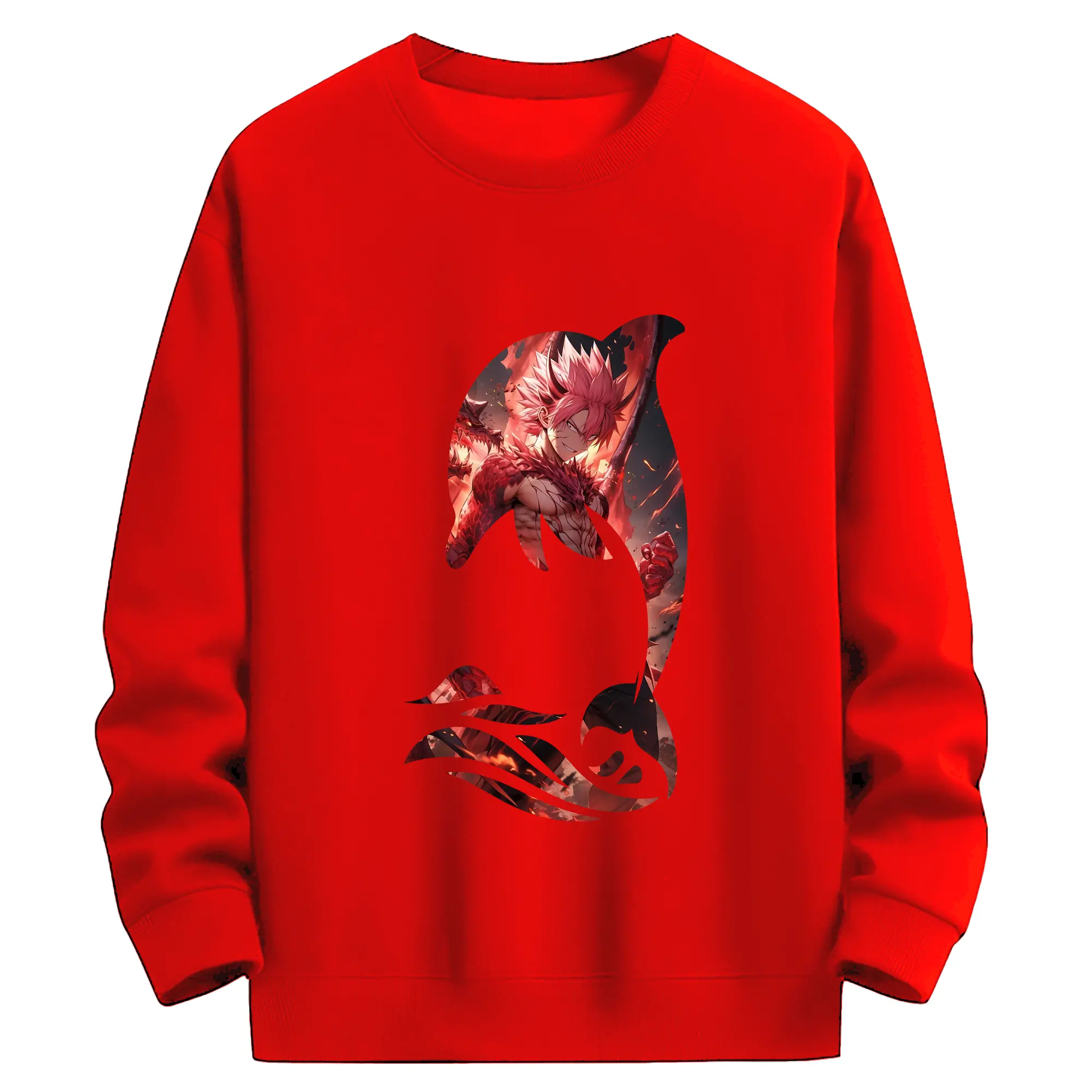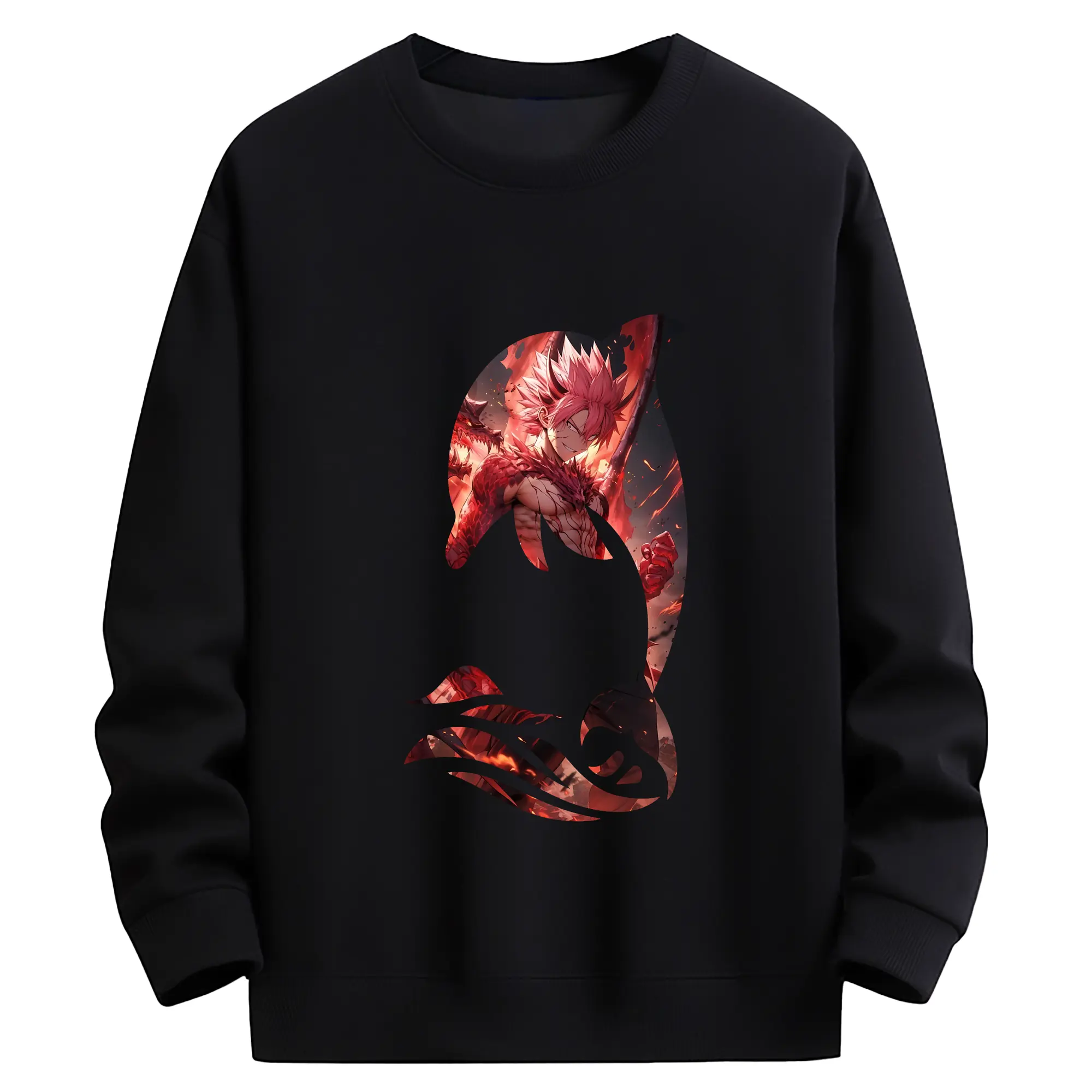 フェアリーテイル グッズ ナツ・ドラグニル - 高品質 クルーネック スウェット ・ コットン59% ポリエステル41% ・ ユニセックス 長袖 トレーナー ・ カジュアル デイリー スポーツ 散歩用