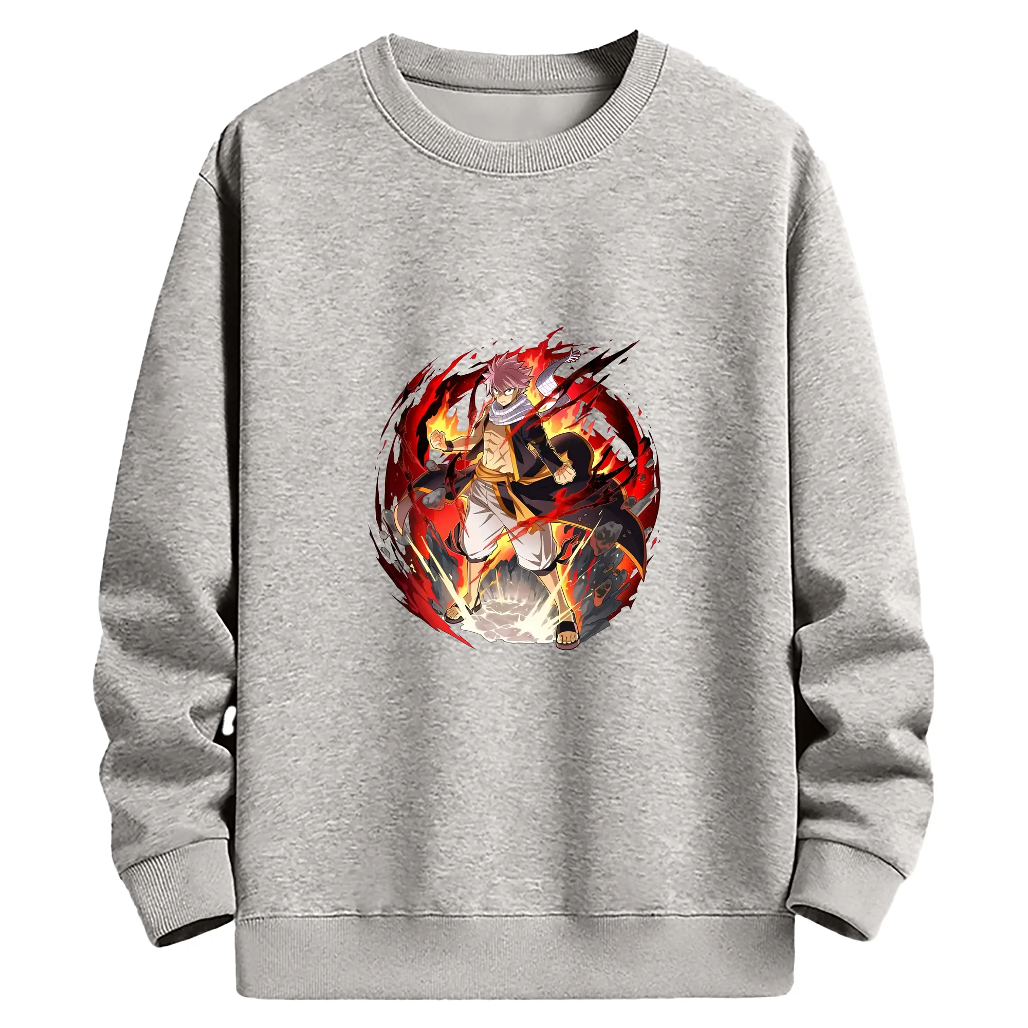 フェアリーテイル グッズ ナツ・ドラグニル - 高品質 クルーネック スウェット ・ コットン59% ポリエステル41% ・ ユニセックス 長袖 トレーナー ・ カジュアル デイリー スポーツ 散歩用