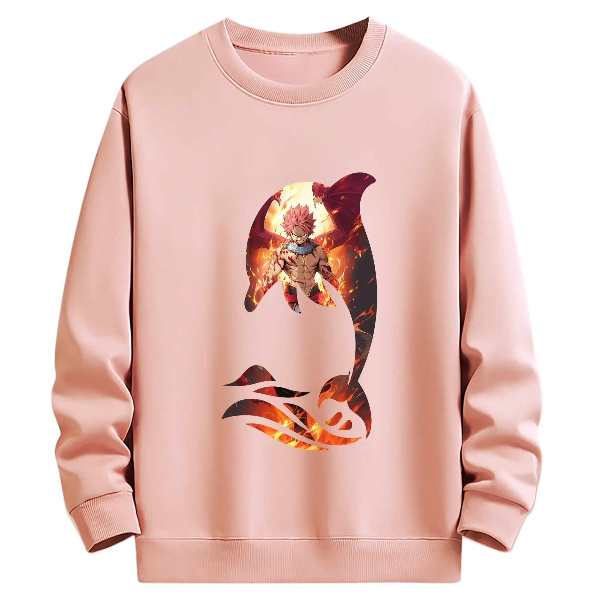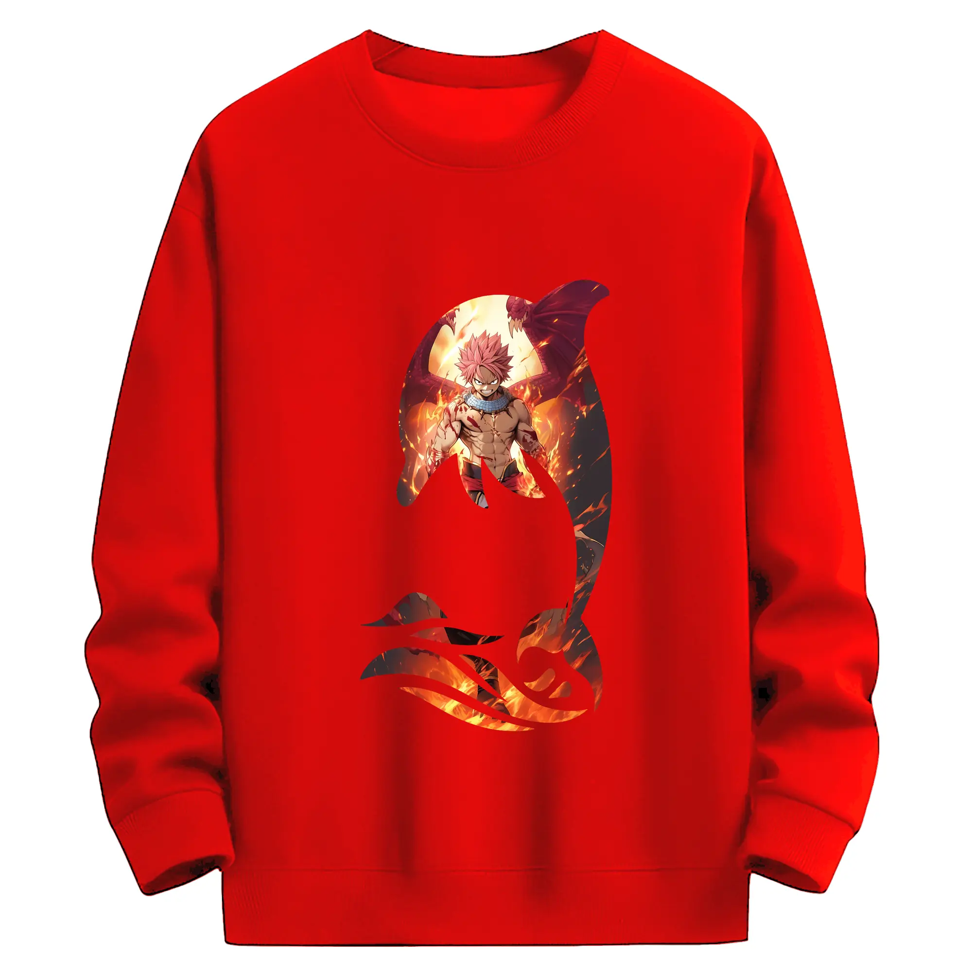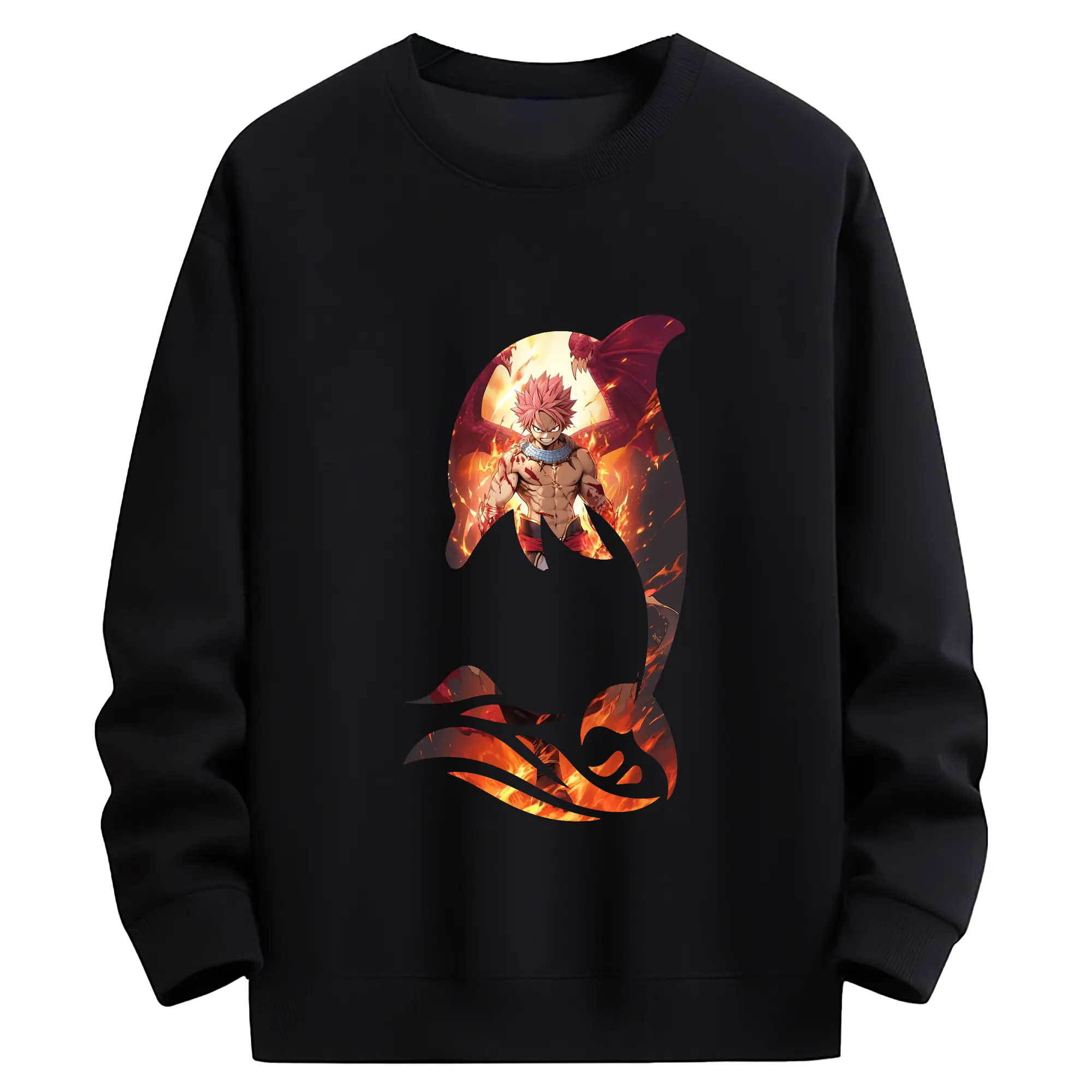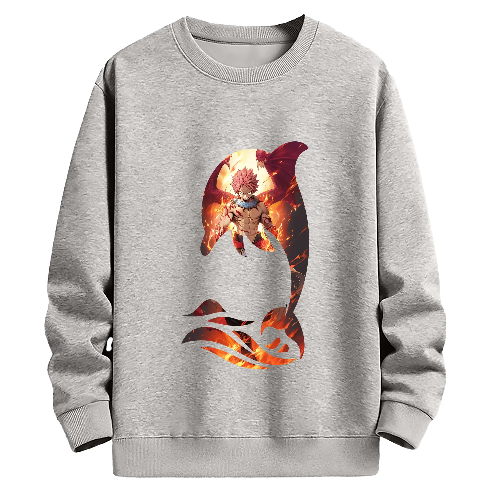 フェアリーテイル グッズ ナツ・ドラグニル - 高品質 クルーネック スウェット ・ コットン59% ポリエステル41% ・ ユニセックス 長袖 トレーナー ・ カジュアル デイリー スポーツ 散歩用