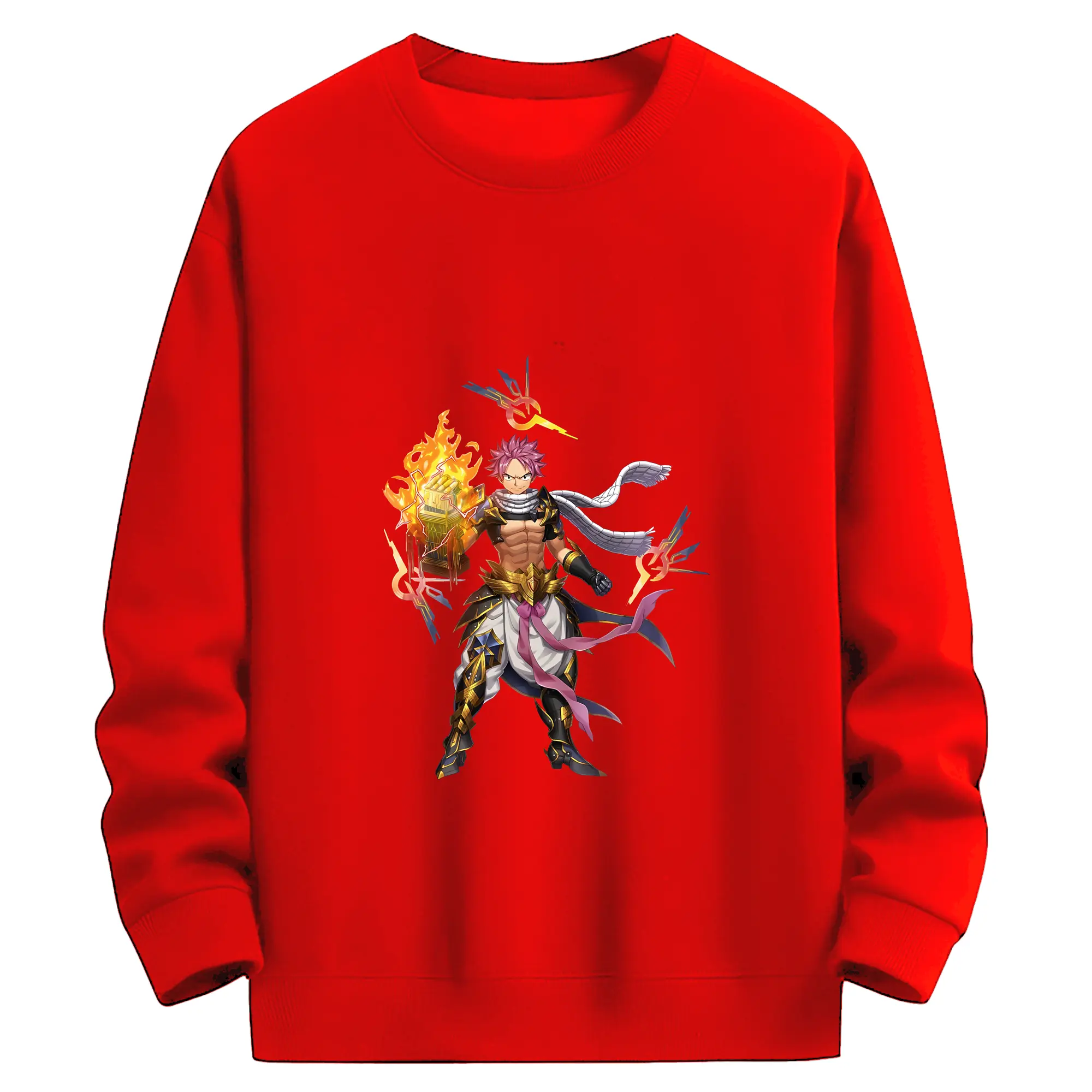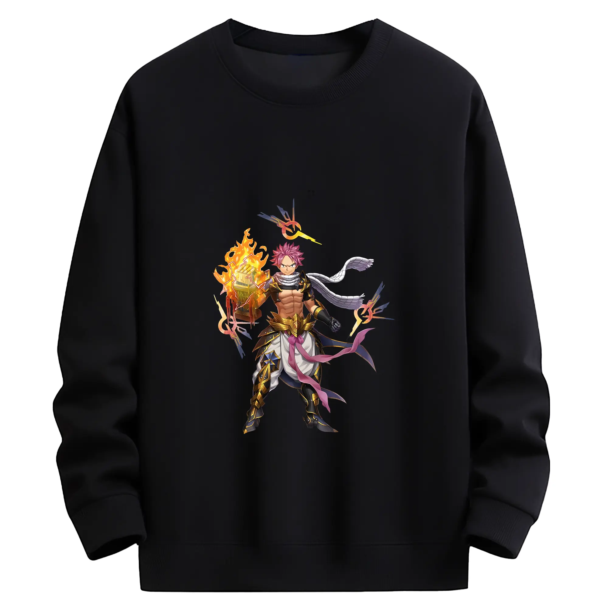 フェアリーテイル グッズ ナツ・ドラグニル - 高品質 クルーネック スウェット ・ コットン59% ポリエステル41% ・ ユニセックス 長袖 トレーナー ・ カジュアル デイリー スポーツ 散歩用