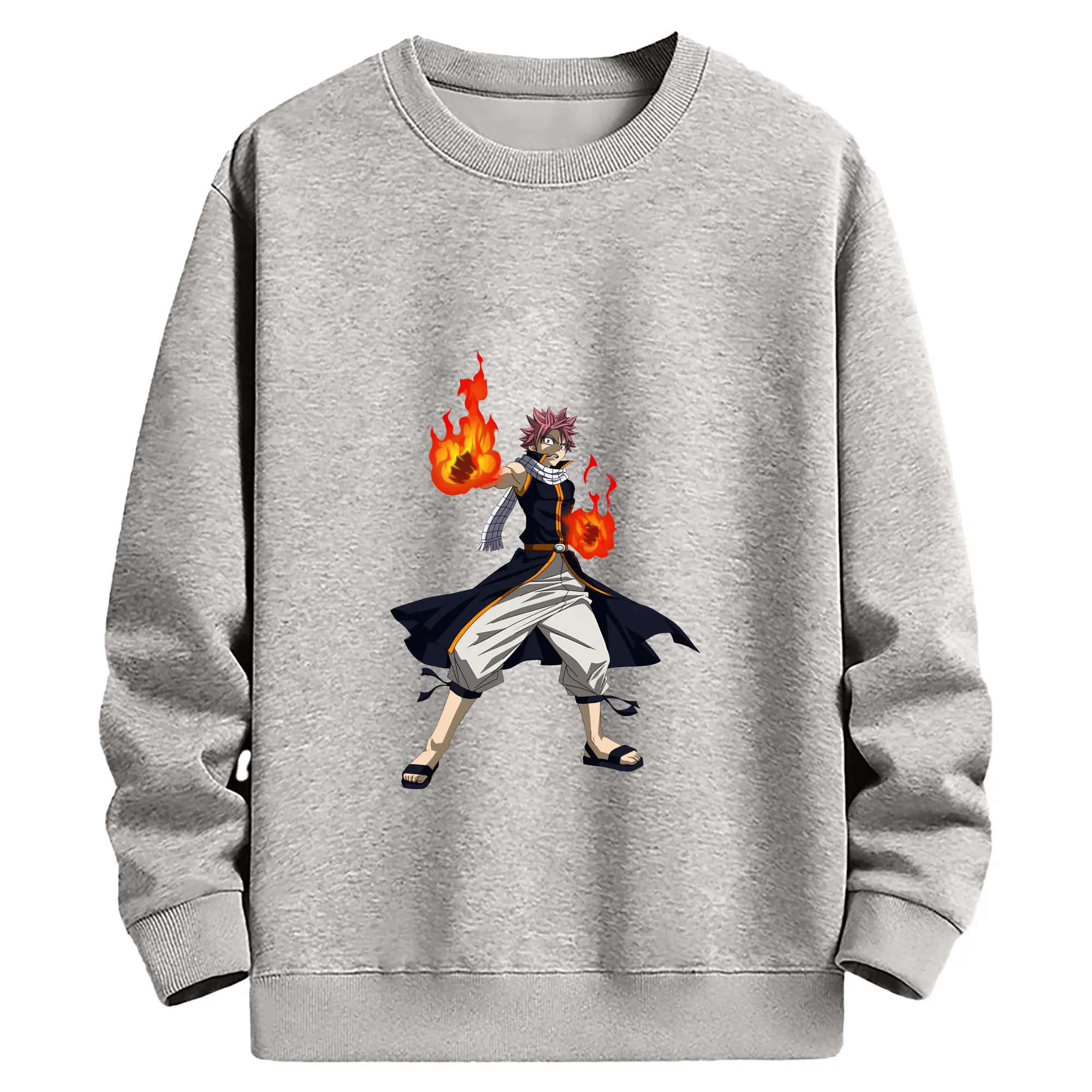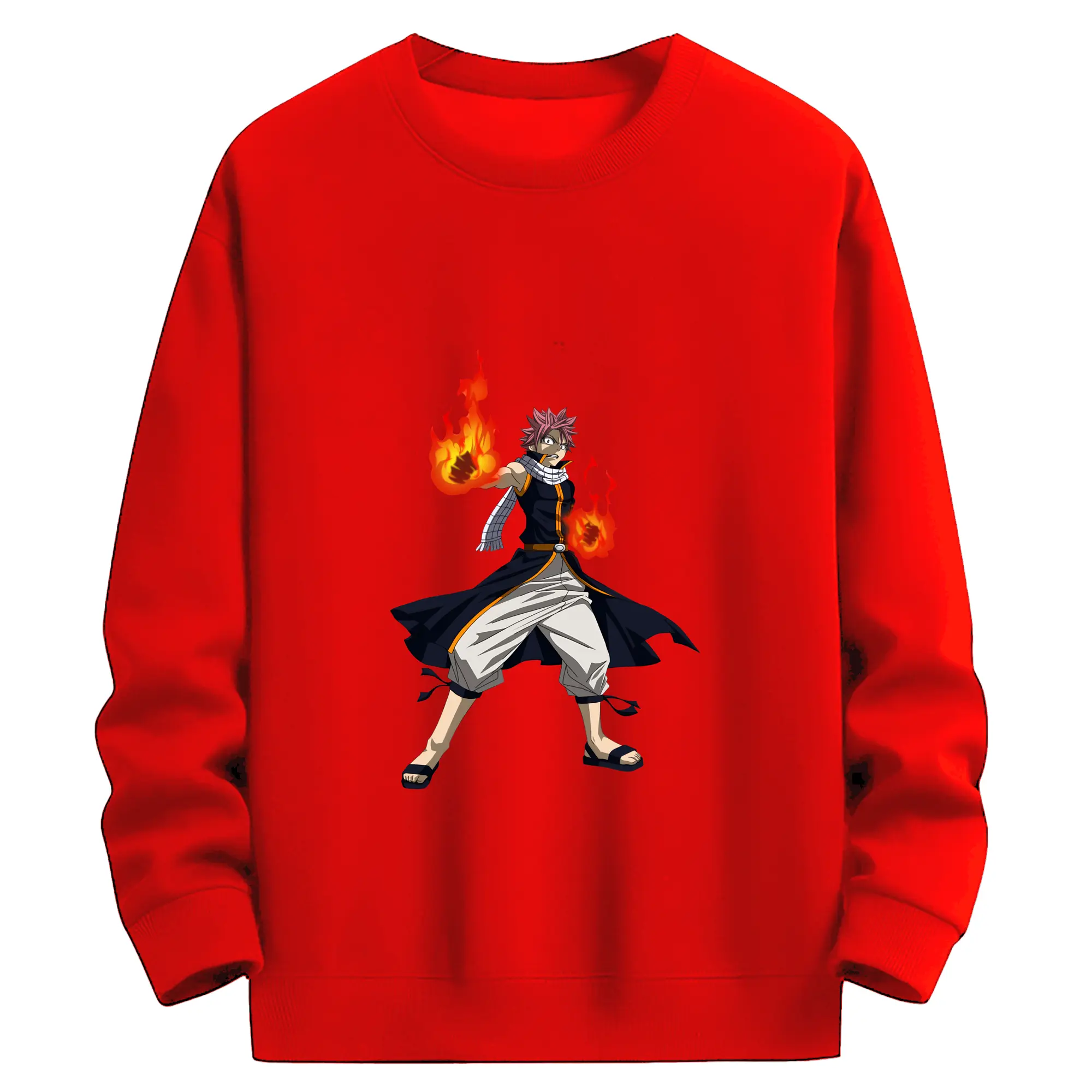 フェアリーテイル グッズ ナツ・ドラグニル - 高品質 クルーネック スウェット ・ コットン59% ポリエステル41% ・ ユニセックス 長袖 トレーナー ・ カジュアル デイリー スポーツ 散歩用