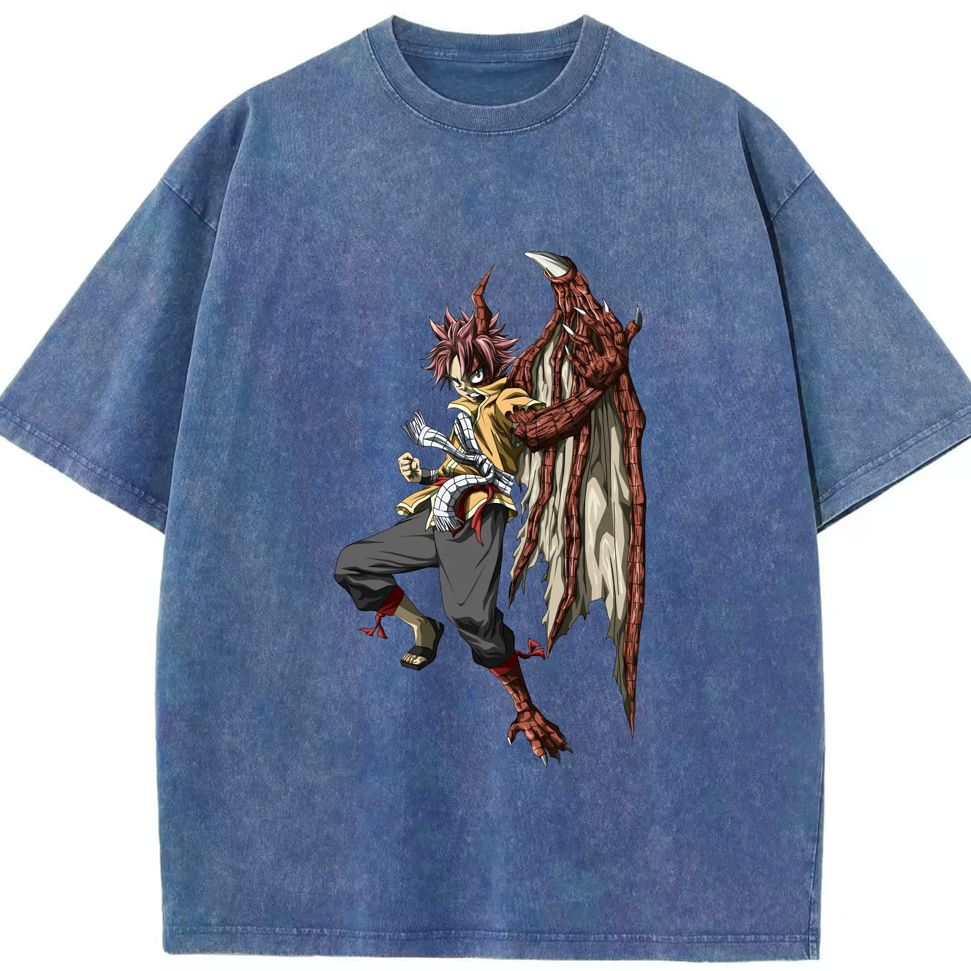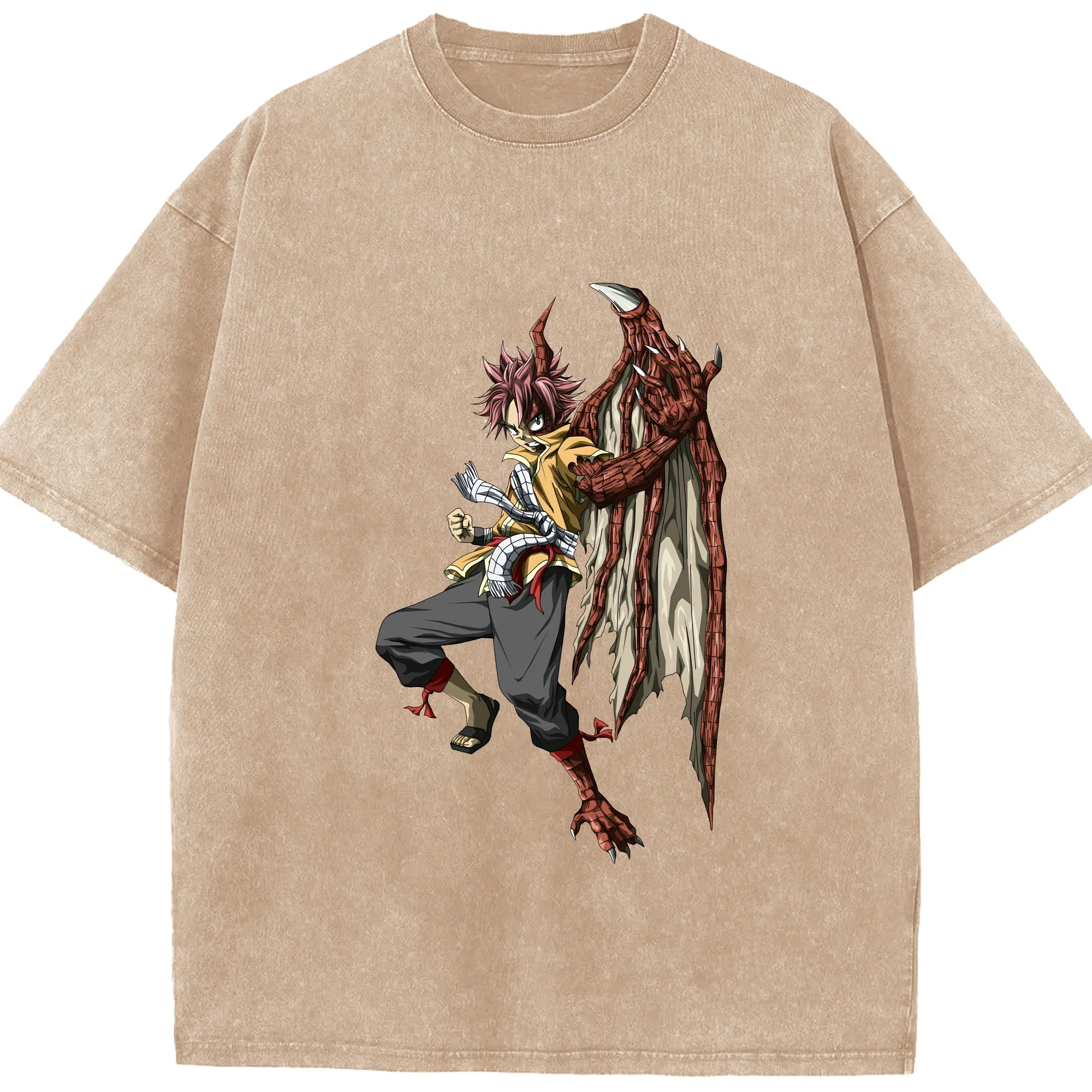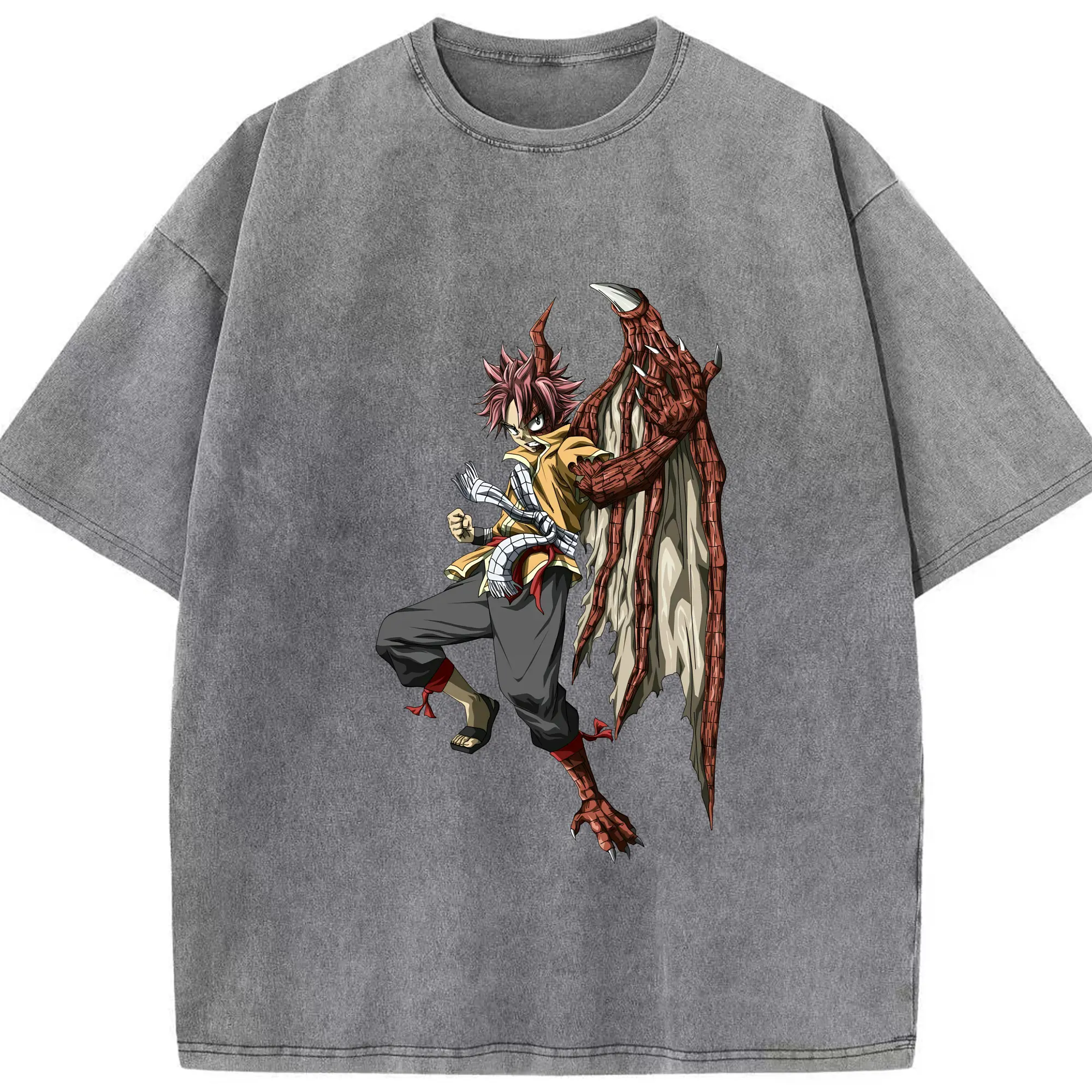 フェアリーテイル グッズ ナツ・ドラグニル - 綿100% ヴィンテージ風 半袖Tシャツ ・ 背面プリント ・ 柔らか肌触り ・ 通気性 快適 ・ スポーツ カジュアル 外出用