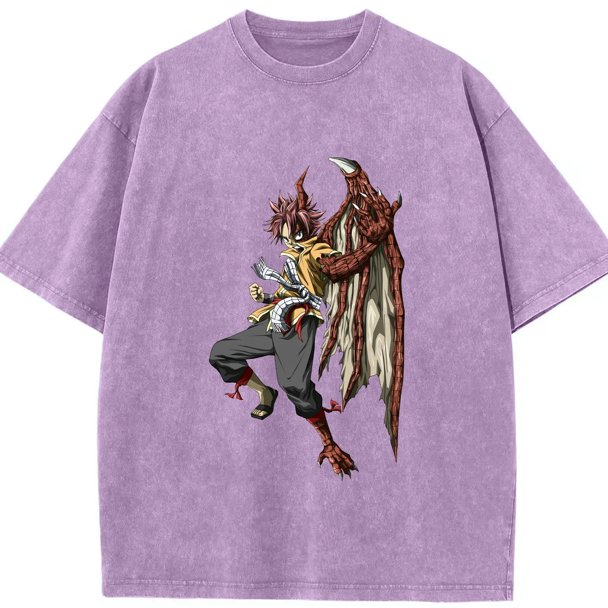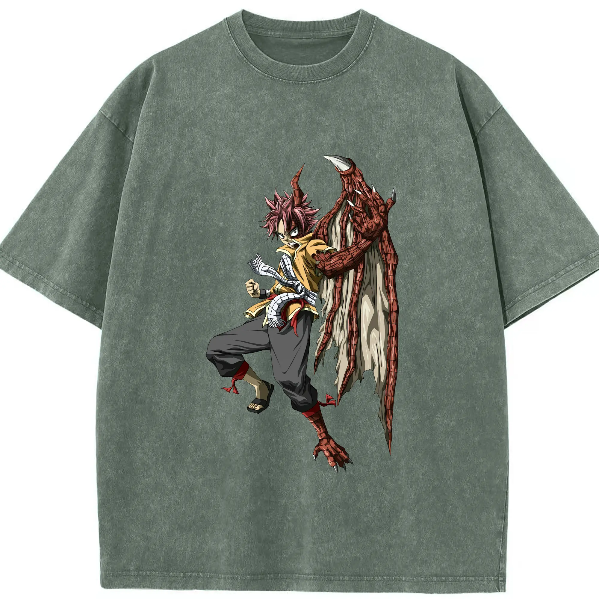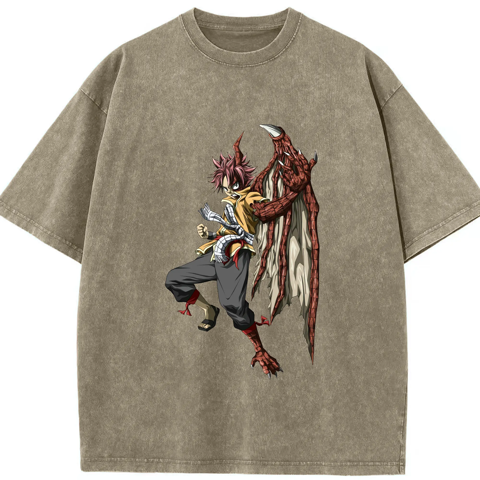 フェアリーテイル グッズ ナツ・ドラグニル - 綿100% ヴィンテージ風 半袖Tシャツ ・ 背面プリント ・ 柔らか肌触り ・ 通気性 快適 ・ スポーツ カジュアル 外出用