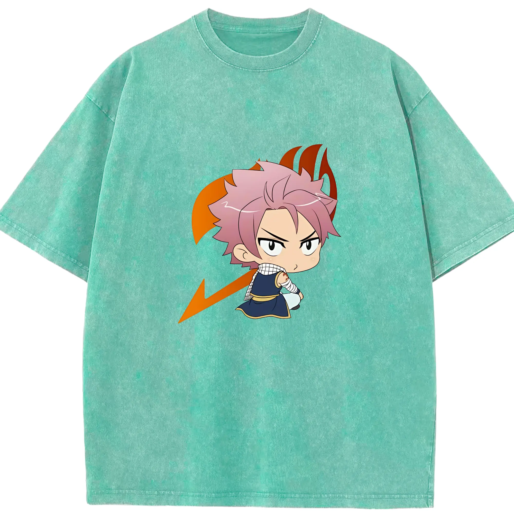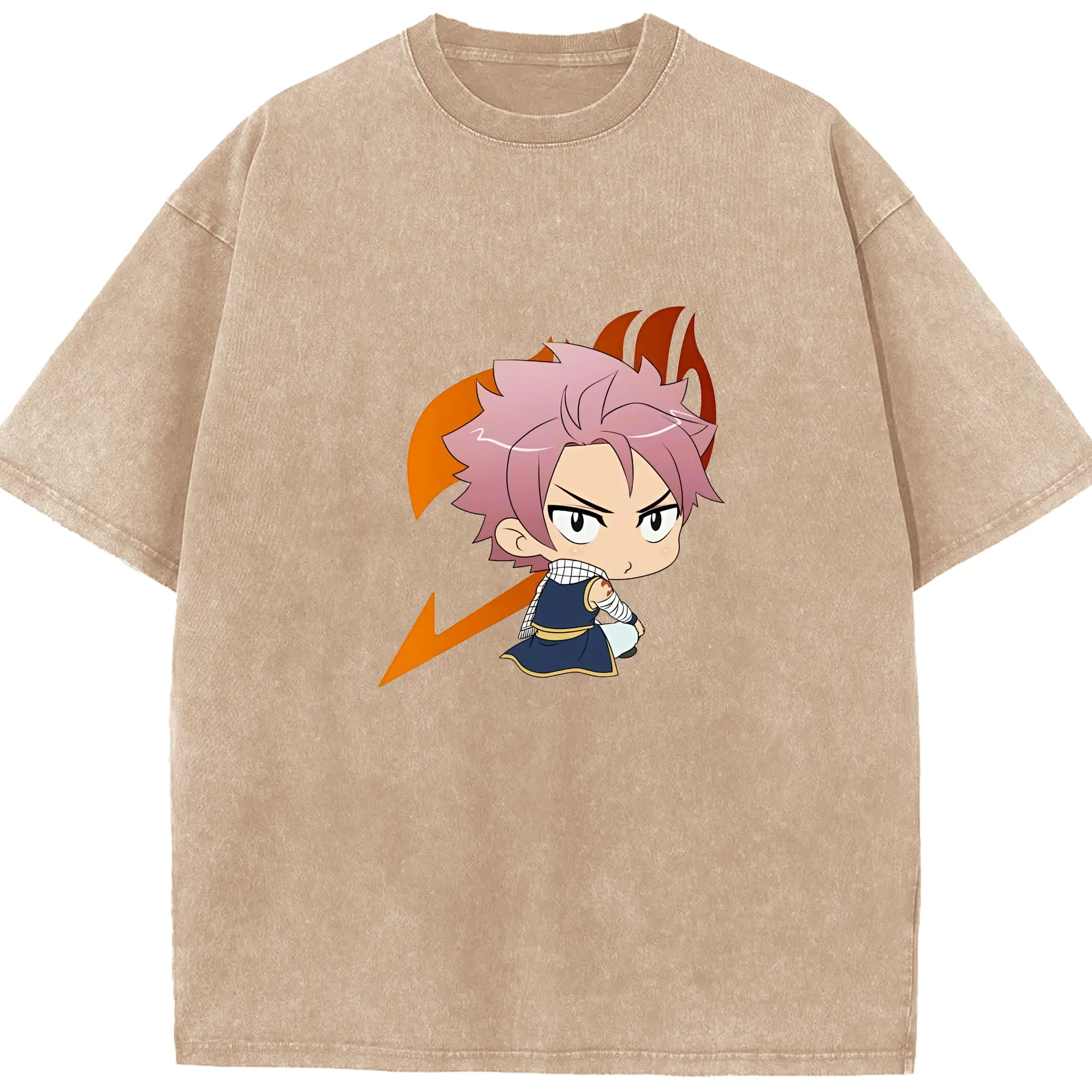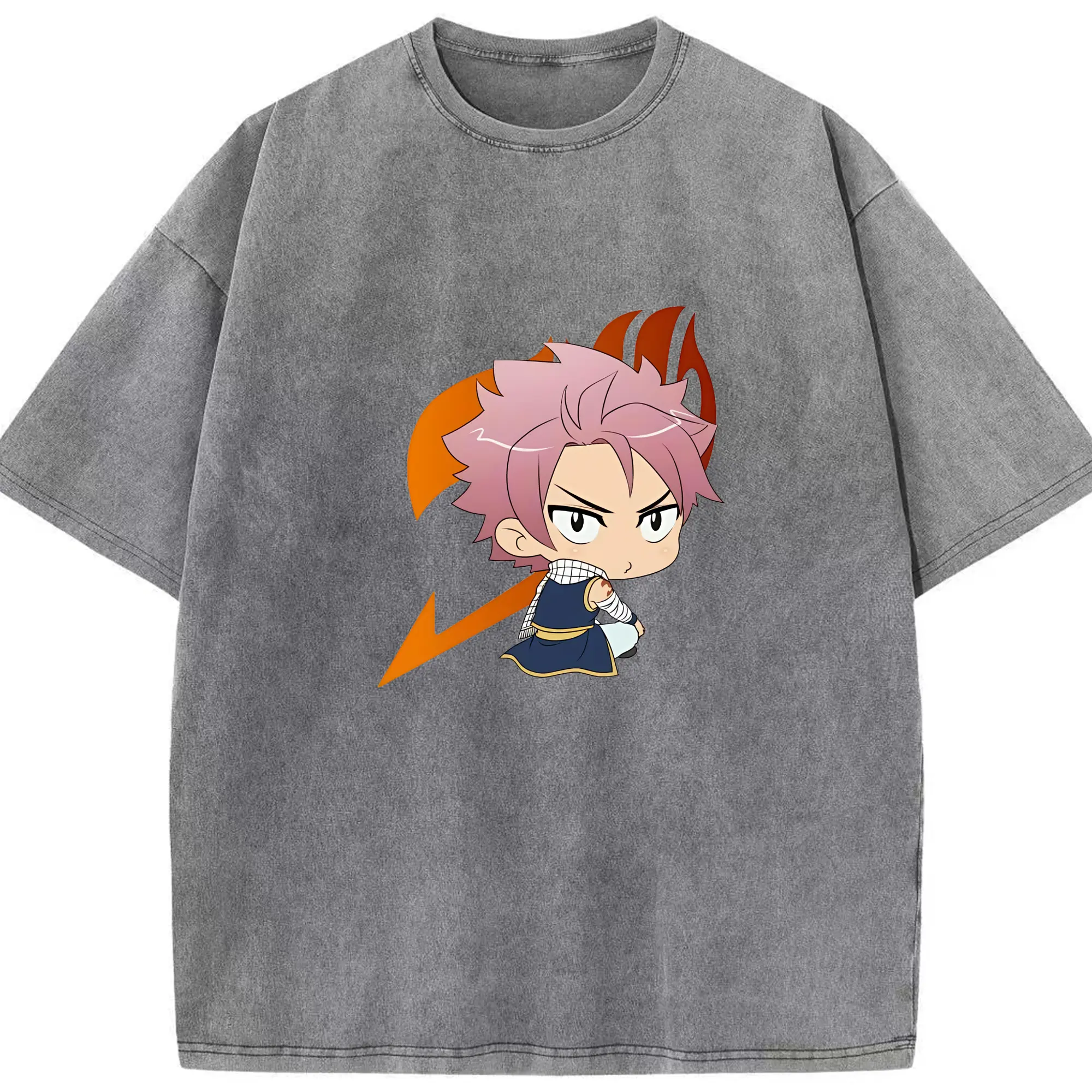 フェアリーテイル グッズ ナツ・ドラグニル - 綿100% ヴィンテージ風 半袖Tシャツ ・ 背面プリント ・ 柔らか肌触り ・ 通気性 快適 ・ スポーツ カジュアル 外出用