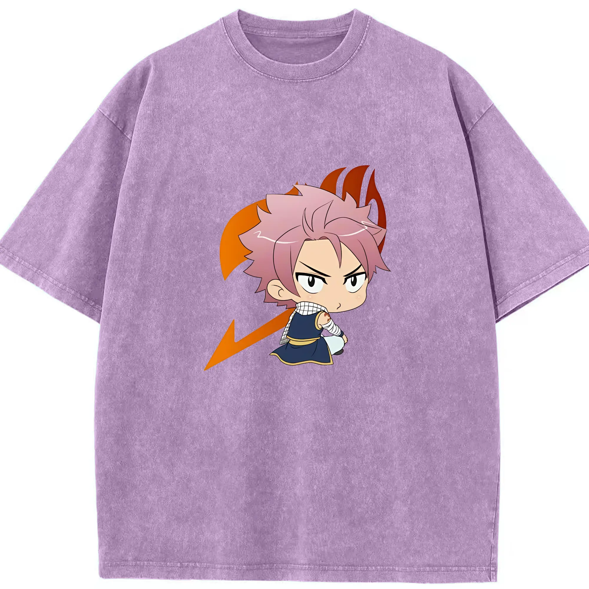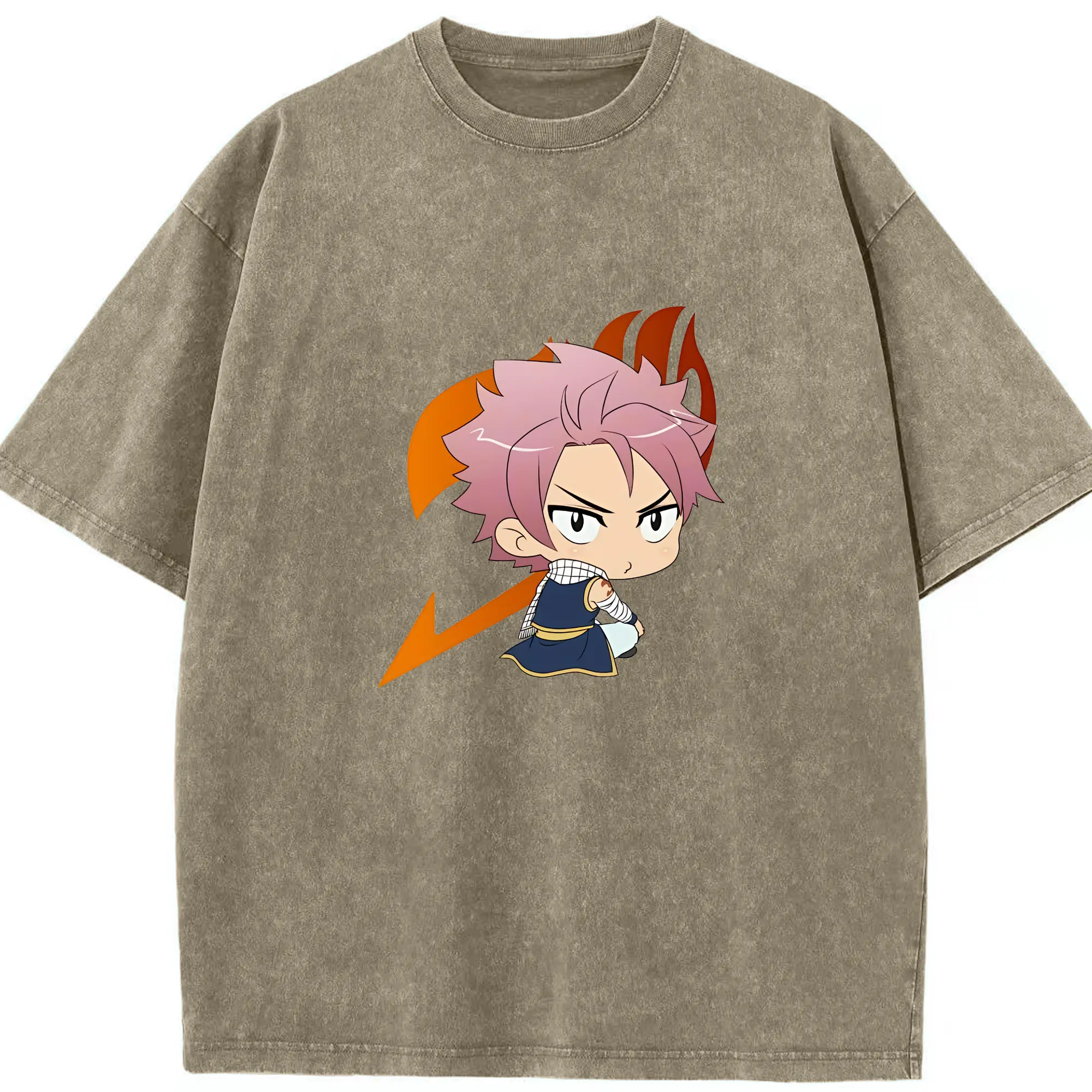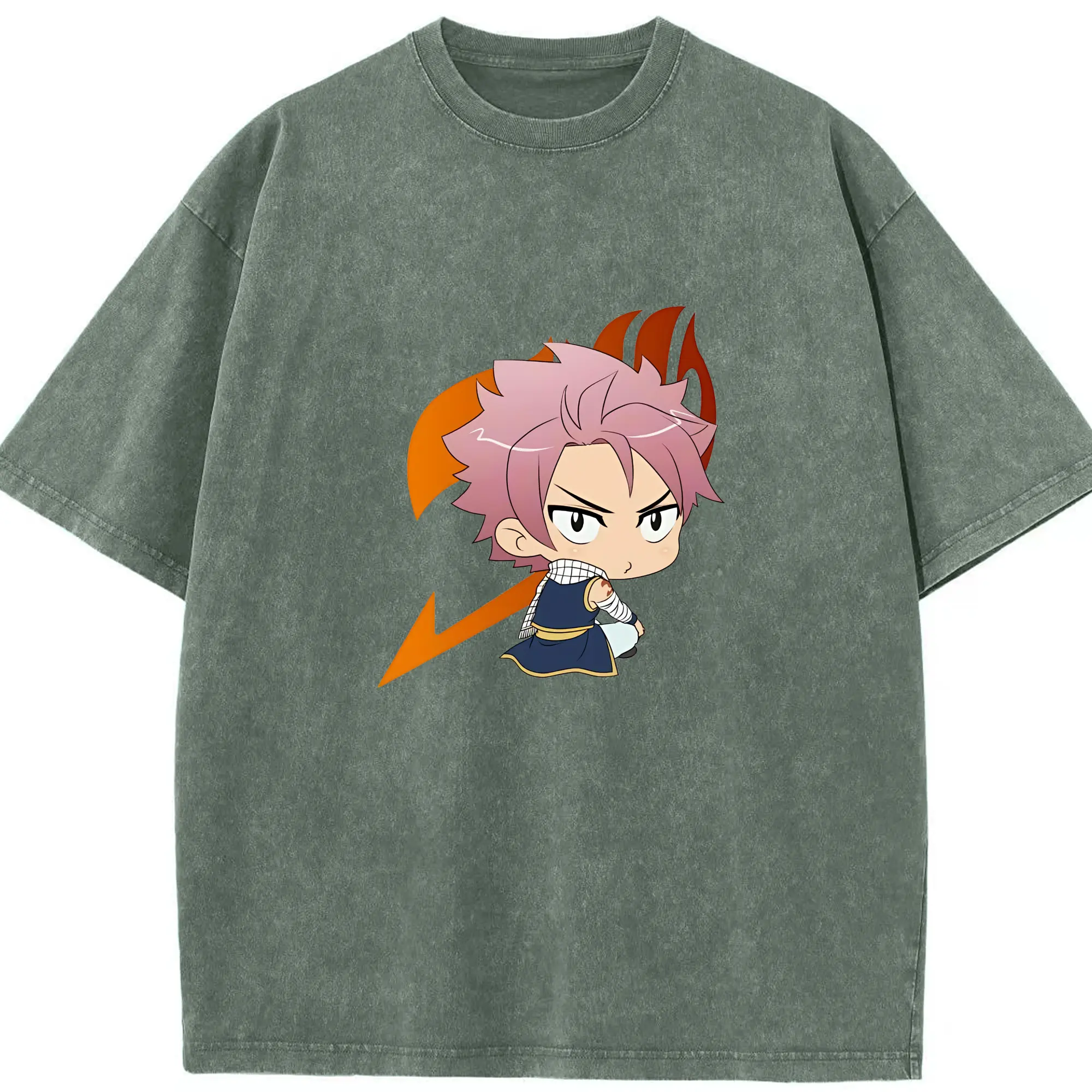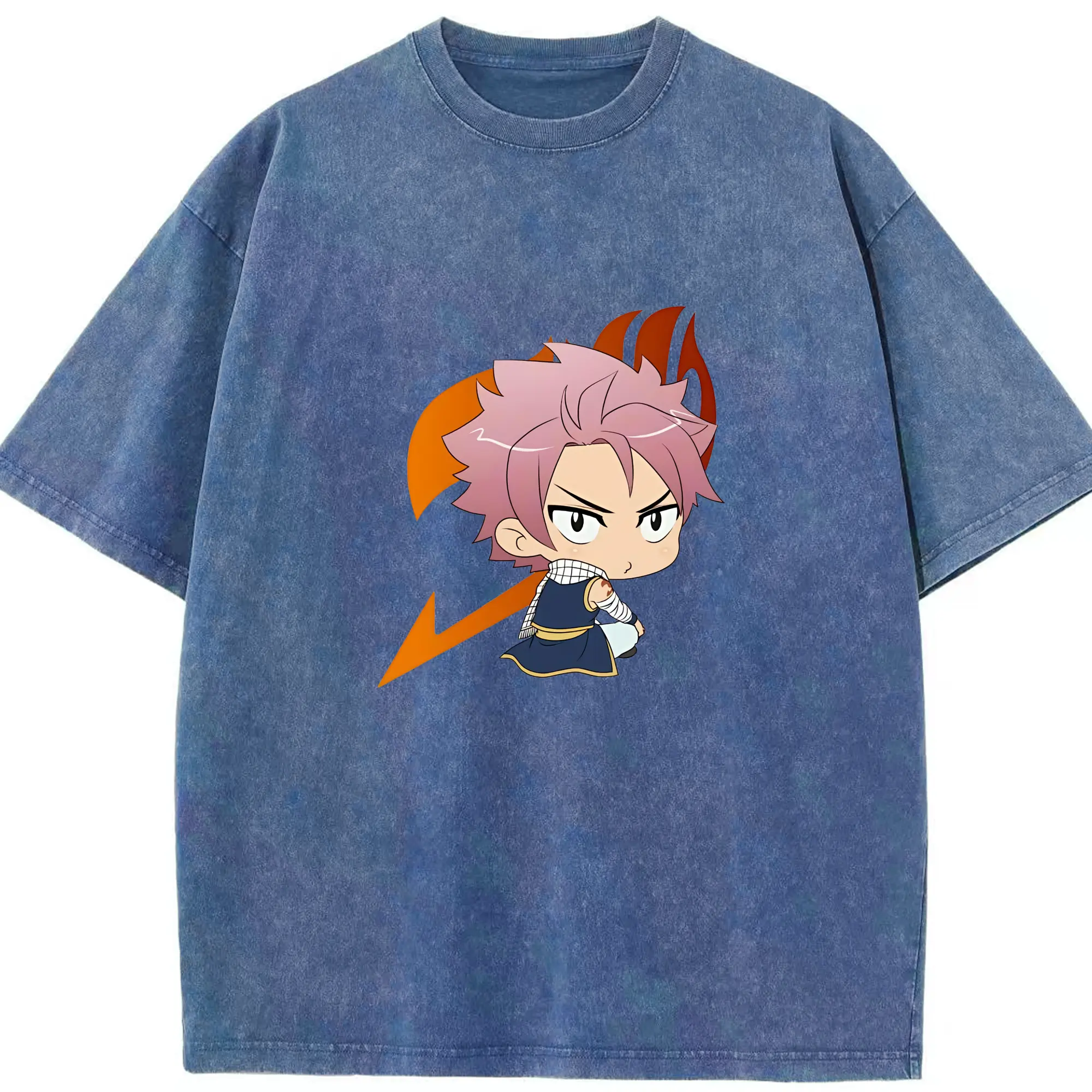 フェアリーテイル グッズ ナツ・ドラグニル - 綿100% ヴィンテージ風 半袖Tシャツ ・ 背面プリント ・ 柔らか肌触り ・ 通気性 快適 ・ スポーツ カジュアル 外出用