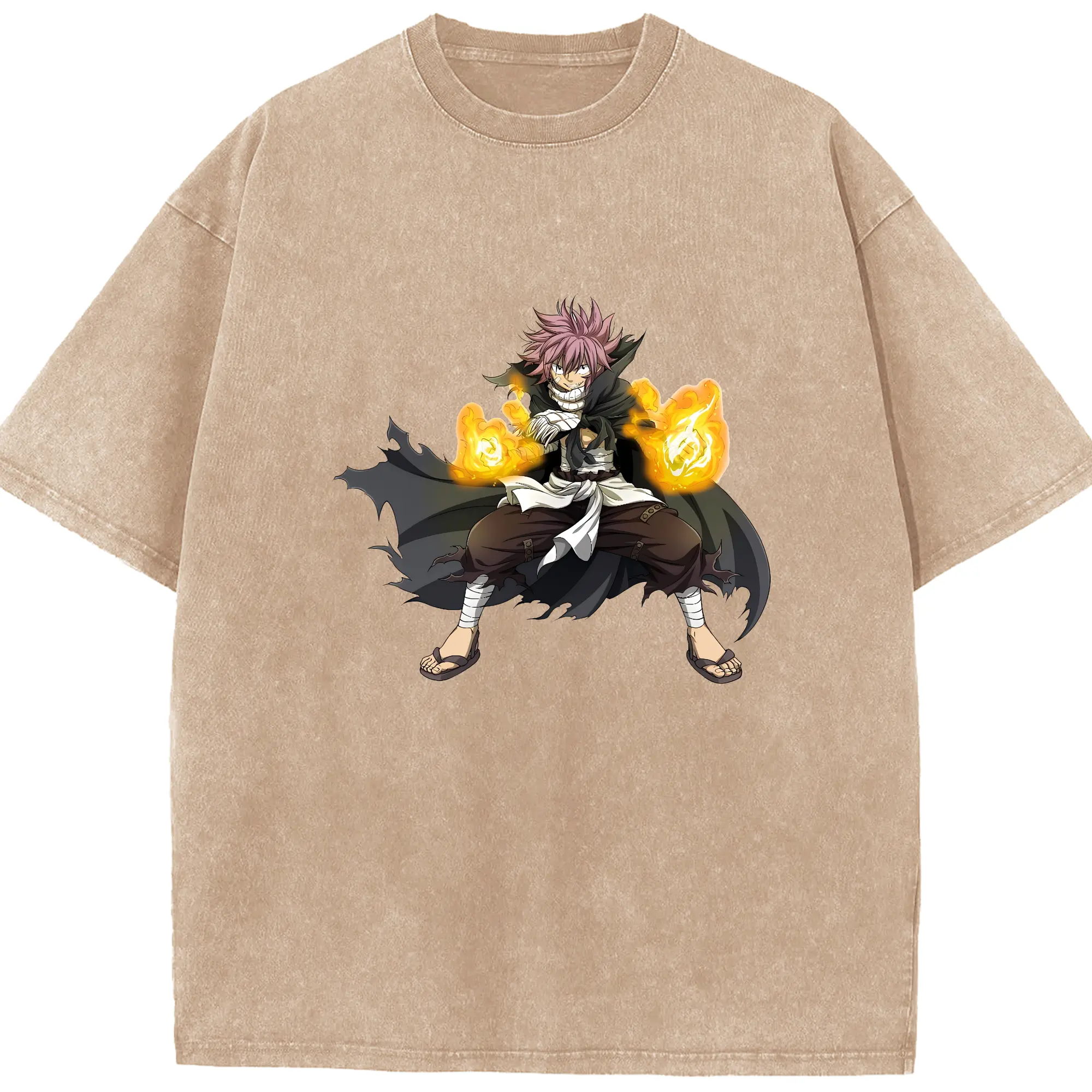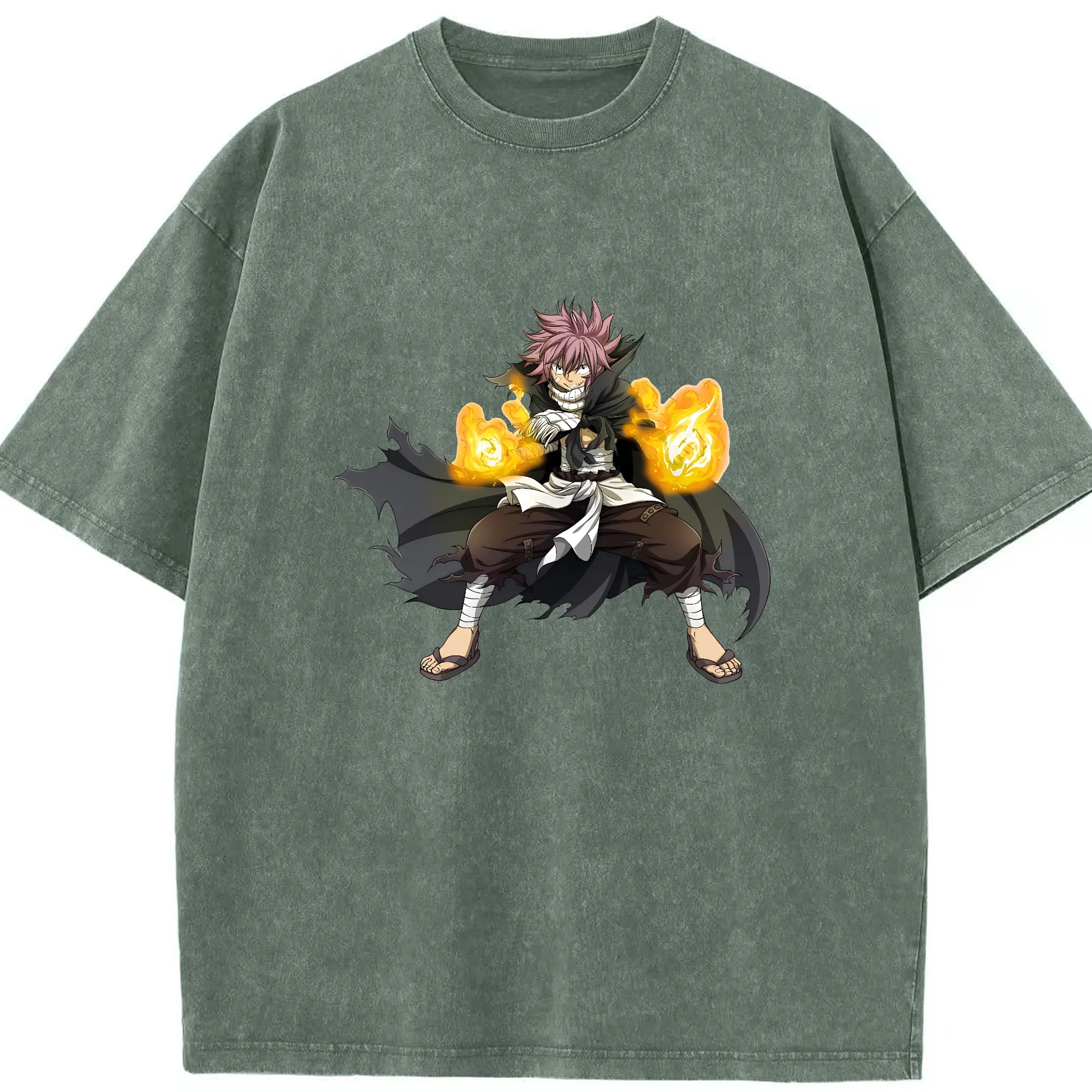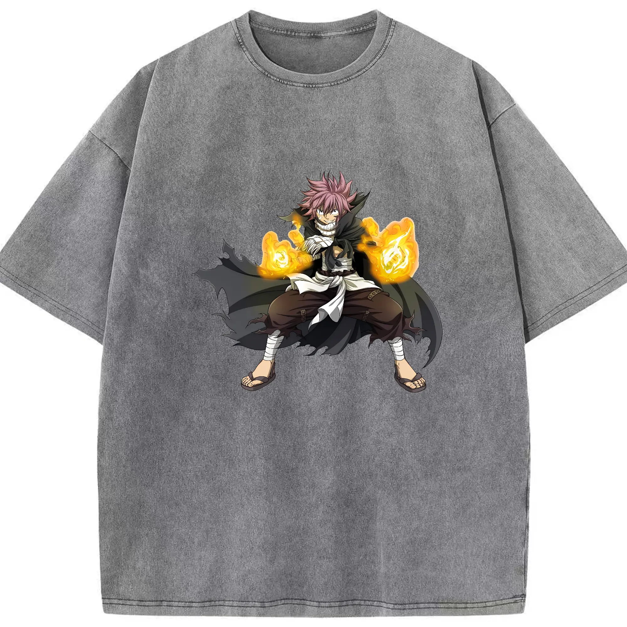 フェアリーテイル グッズ ナツ・ドラグニル - 綿100% ヴィンテージ風 半袖Tシャツ ・ 背面プリント ・ 柔らか肌触り ・ 通気性 快適 ・ スポーツ カジュアル 外出用