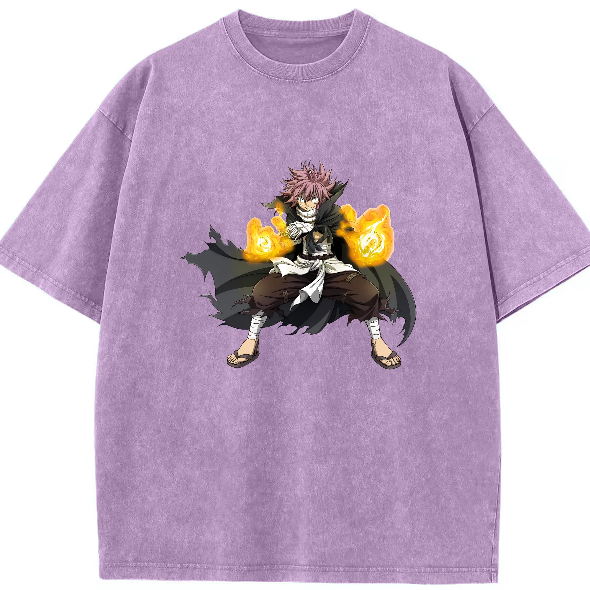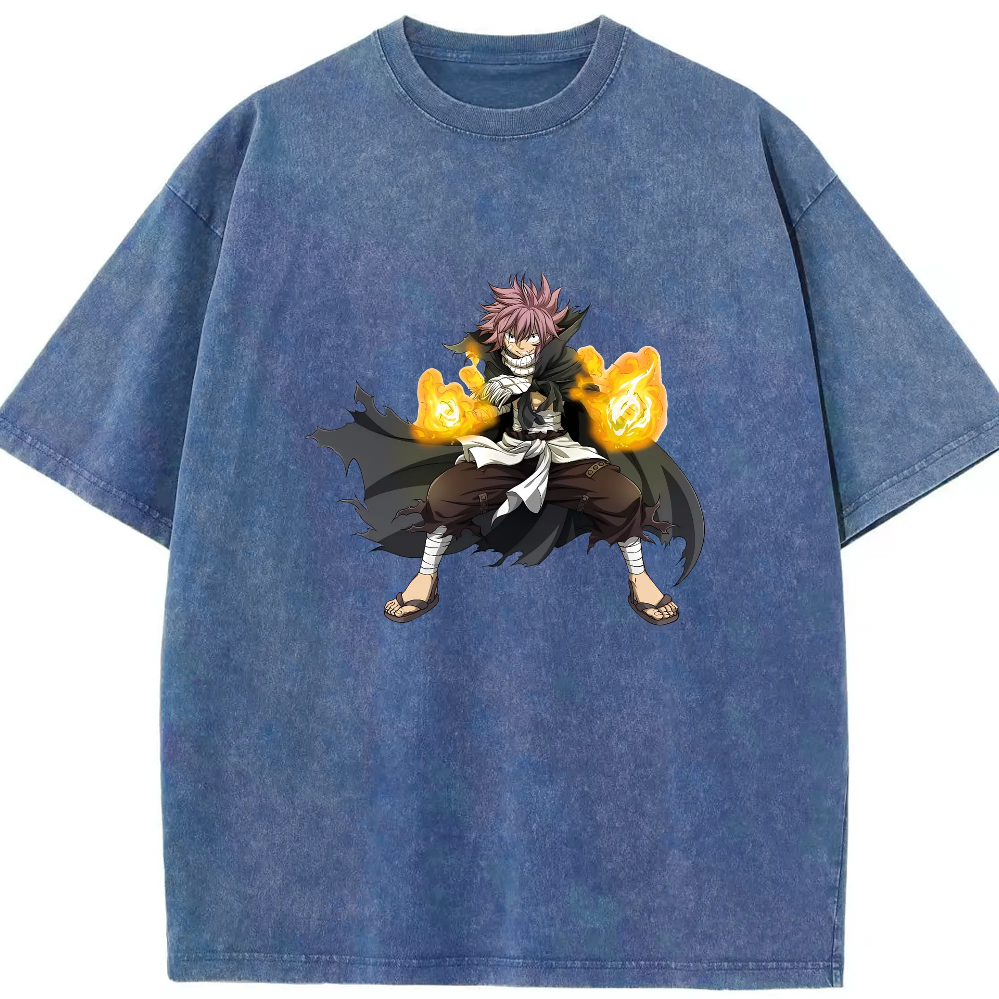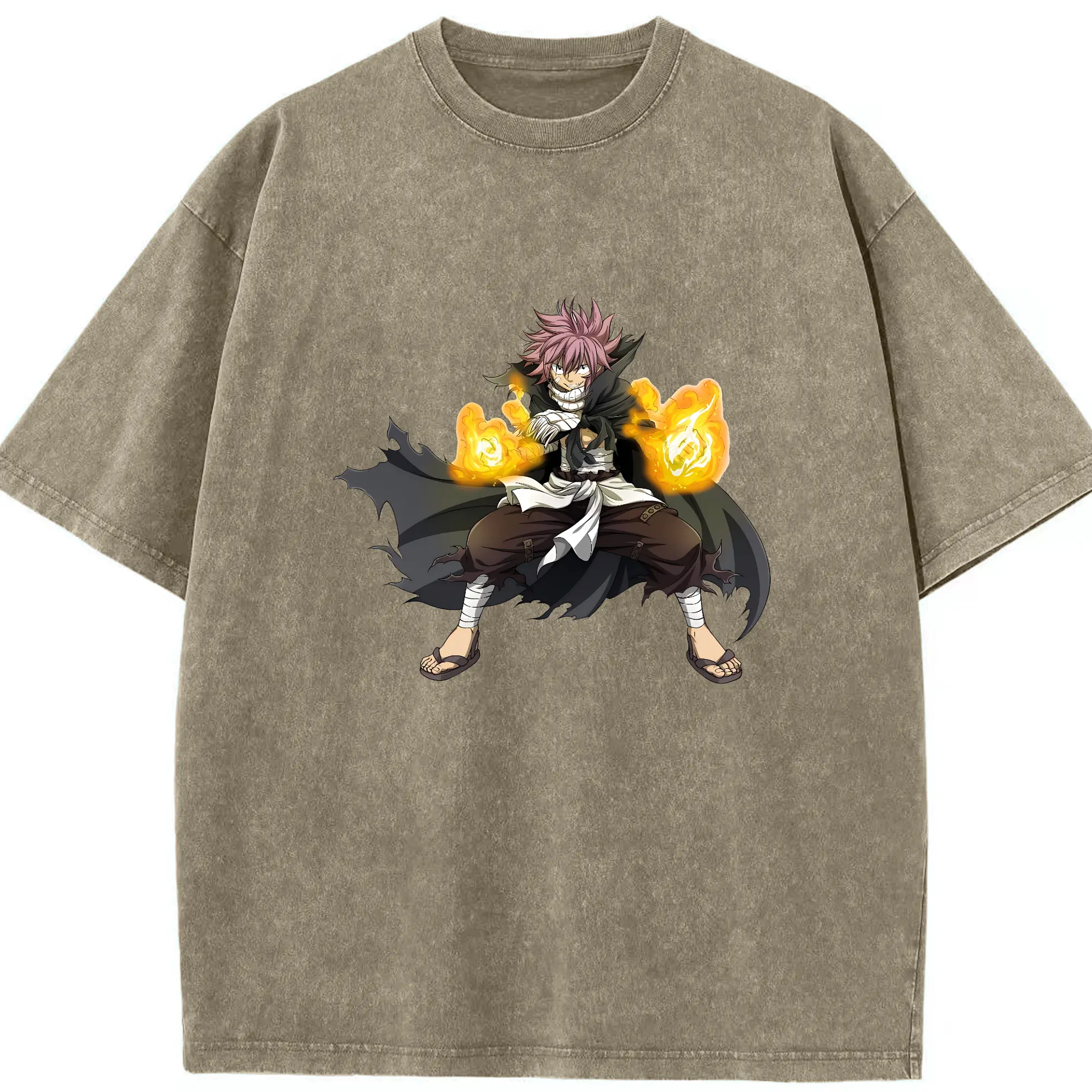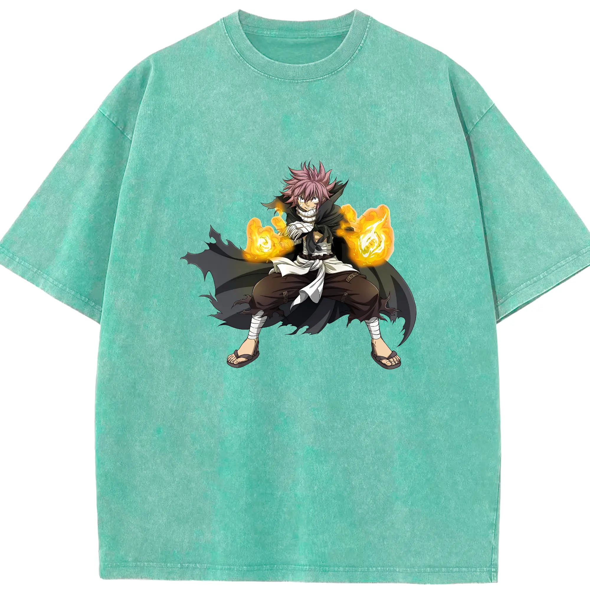 フェアリーテイル グッズ ナツ・ドラグニル - 綿100% ヴィンテージ風 半袖Tシャツ ・ 背面プリント ・ 柔らか肌触り ・ 通気性 快適 ・ スポーツ カジュアル 外出用