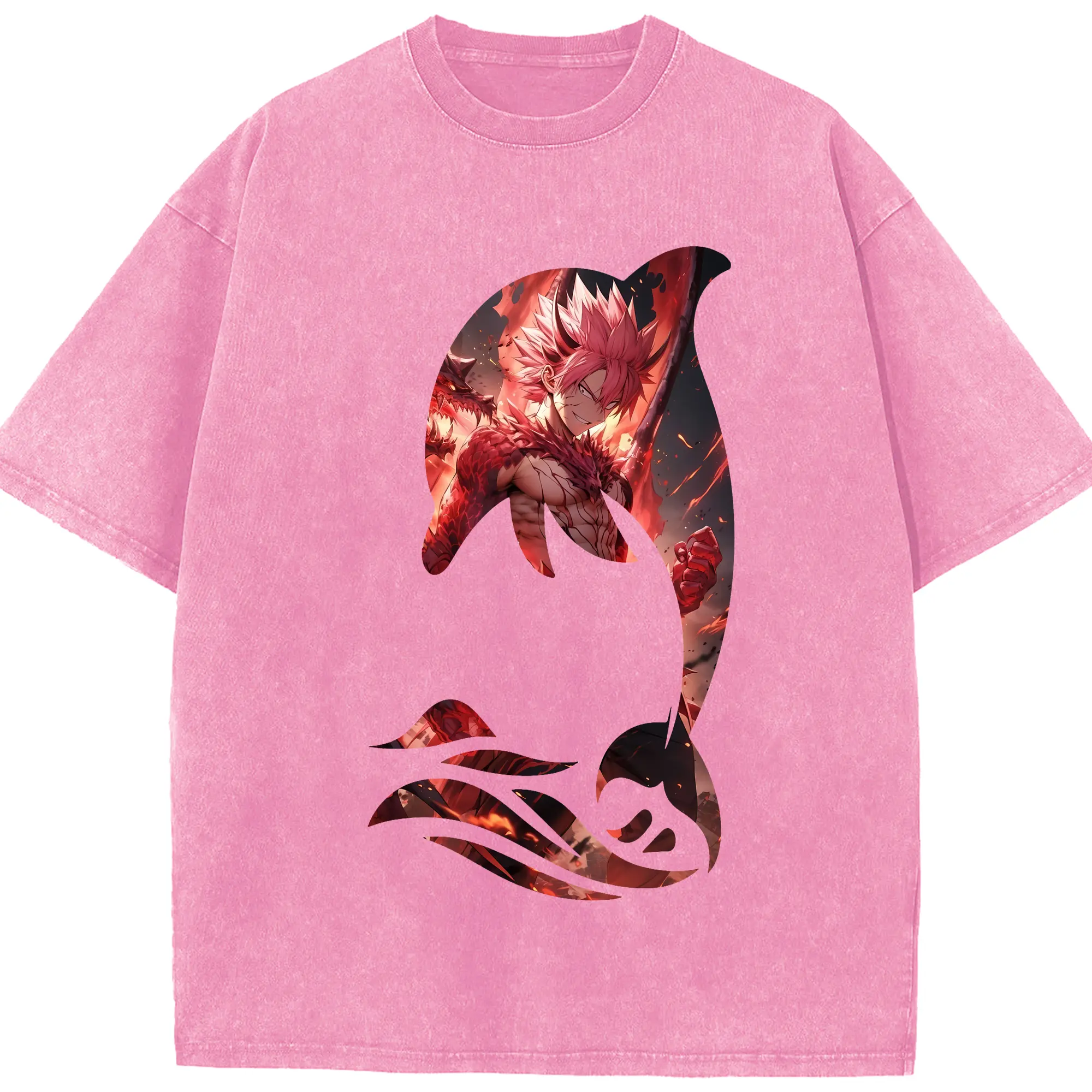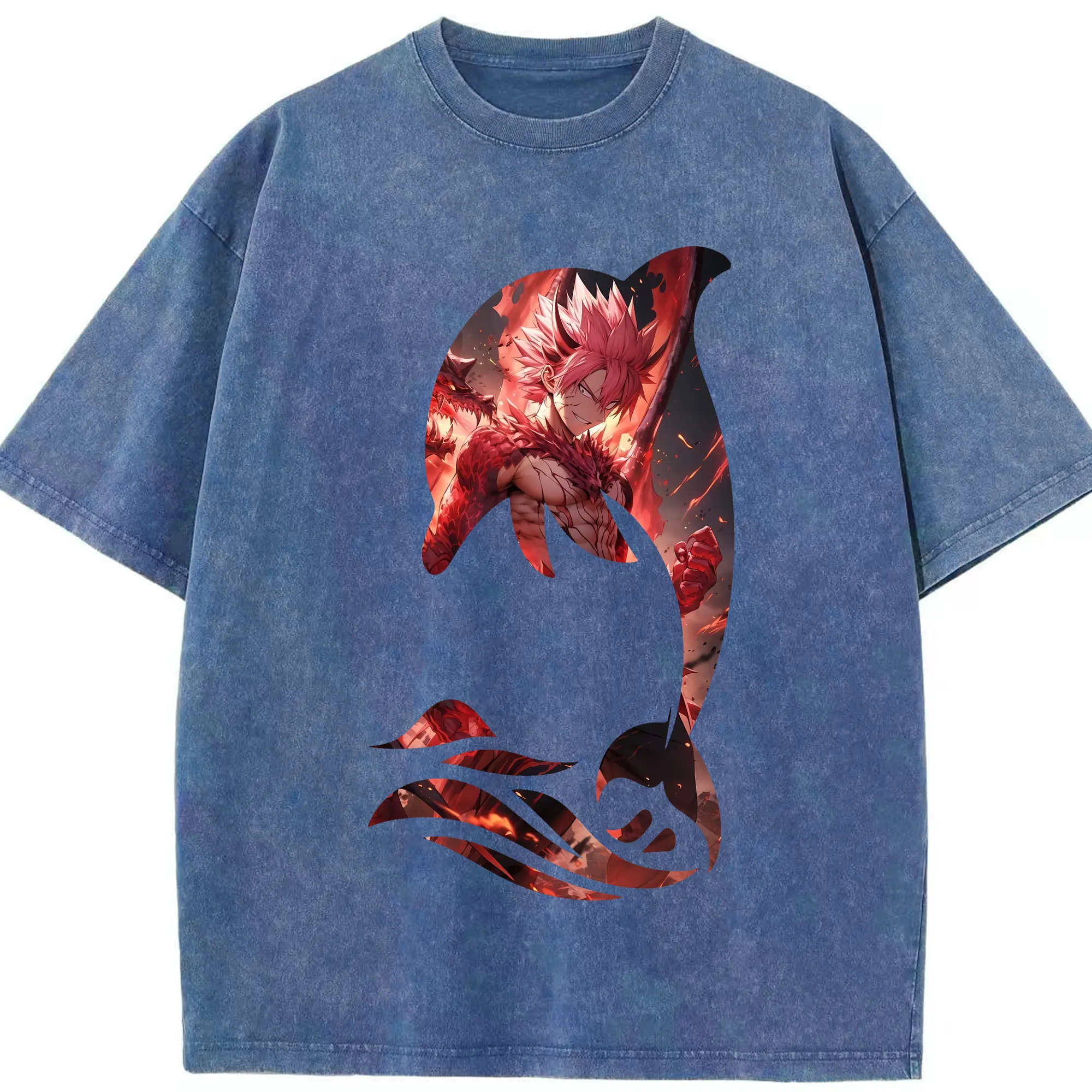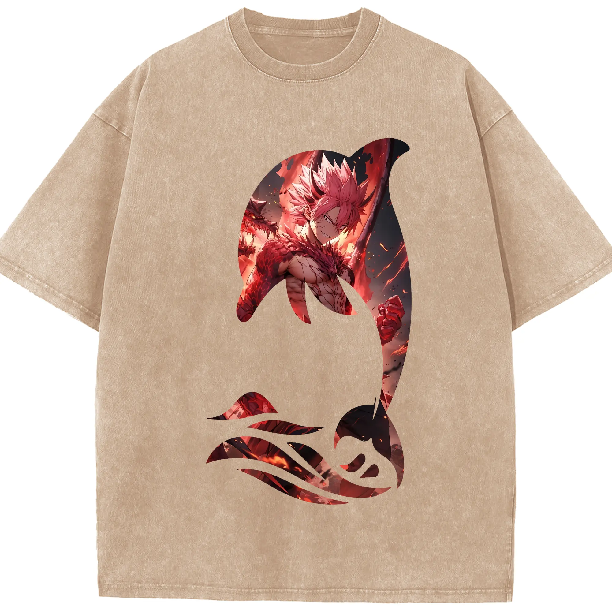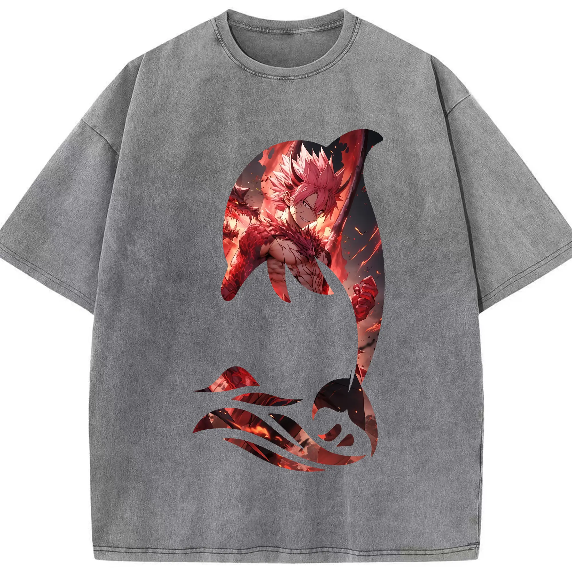 フェアリーテイル グッズ ナツ・ドラグニル - 綿100% ヴィンテージ風 半袖Tシャツ ・ 背面プリント ・ 柔らか肌触り ・ 通気性 快適 ・ スポーツ カジュアル 外出用