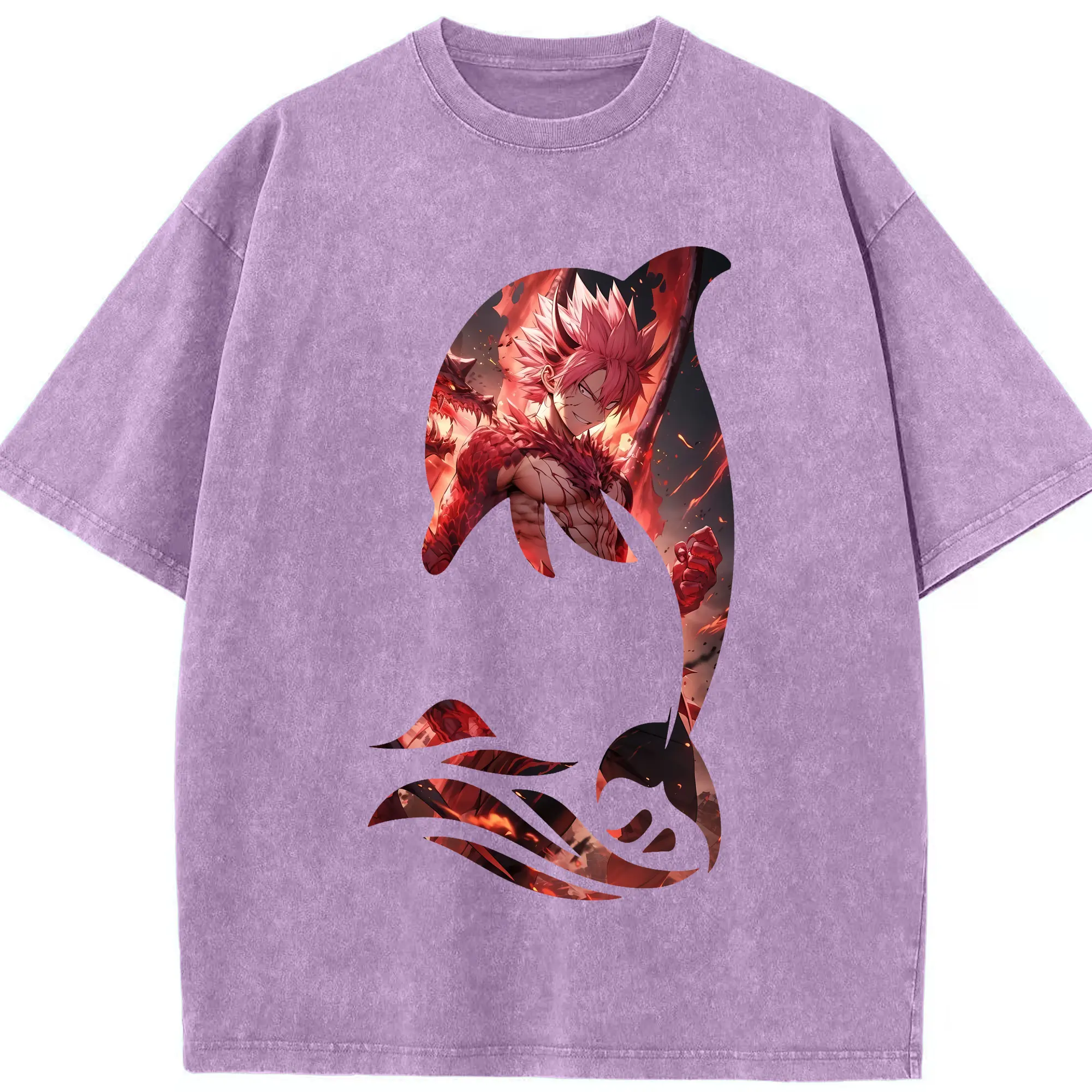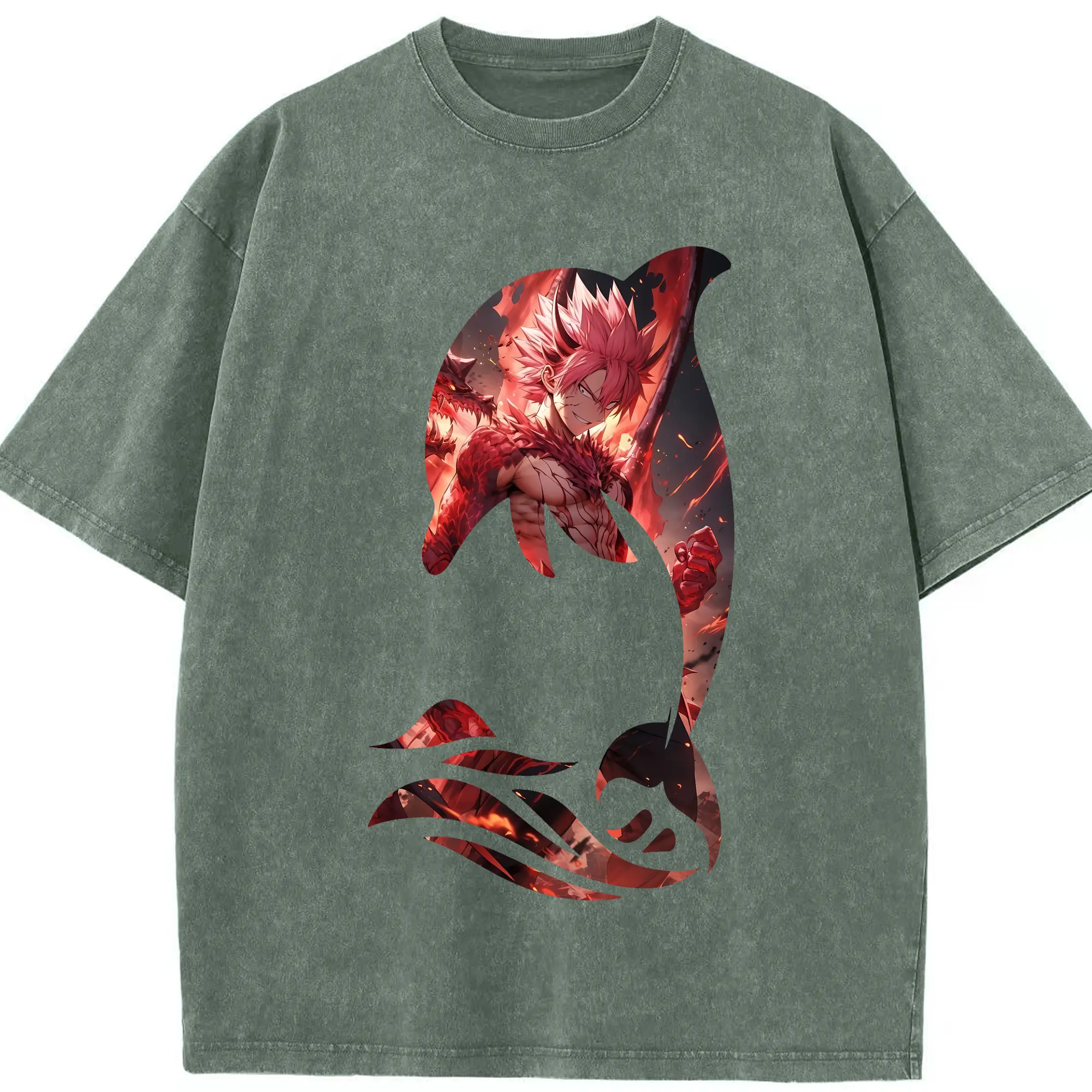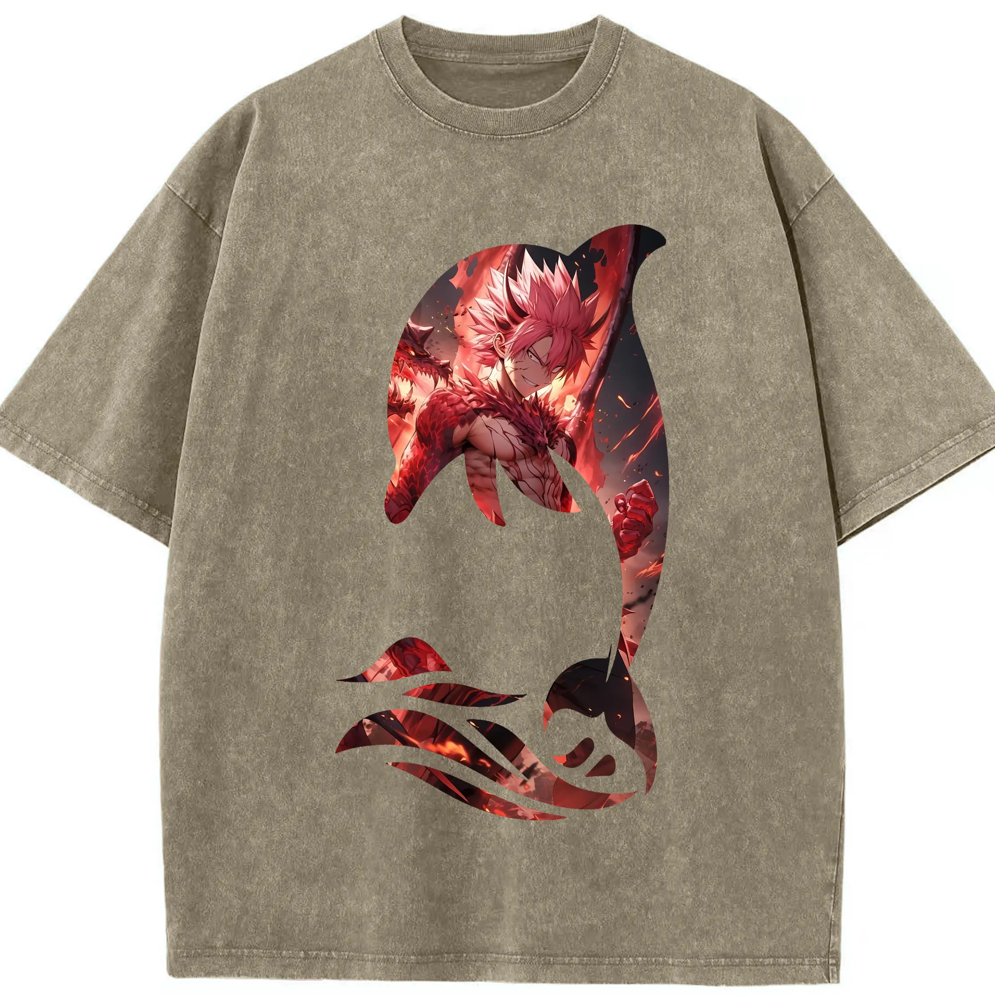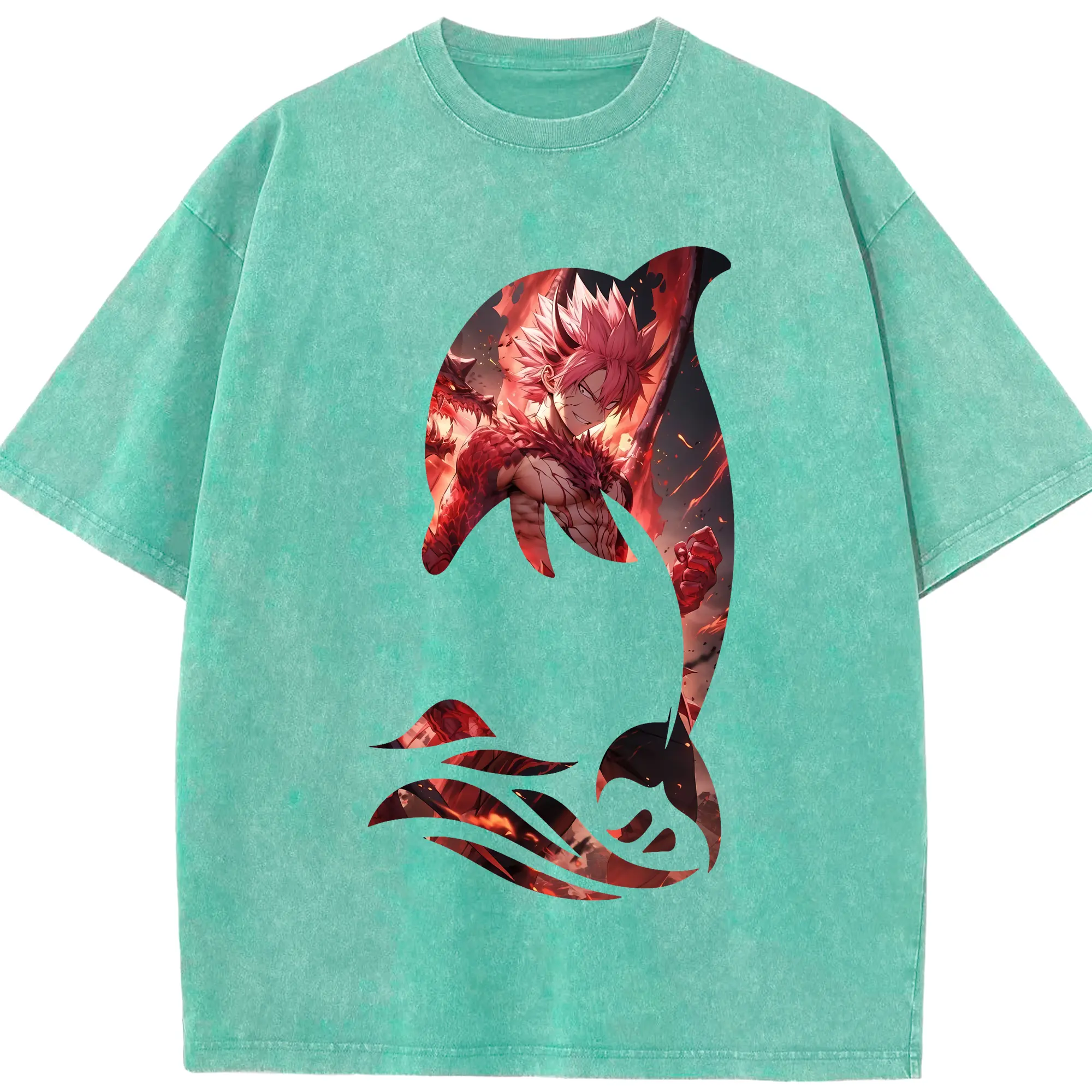 フェアリーテイル グッズ ナツ・ドラグニル - 綿100% ヴィンテージ風 半袖Tシャツ ・ 背面プリント ・ 柔らか肌触り ・ 通気性 快適 ・ スポーツ カジュアル 外出用