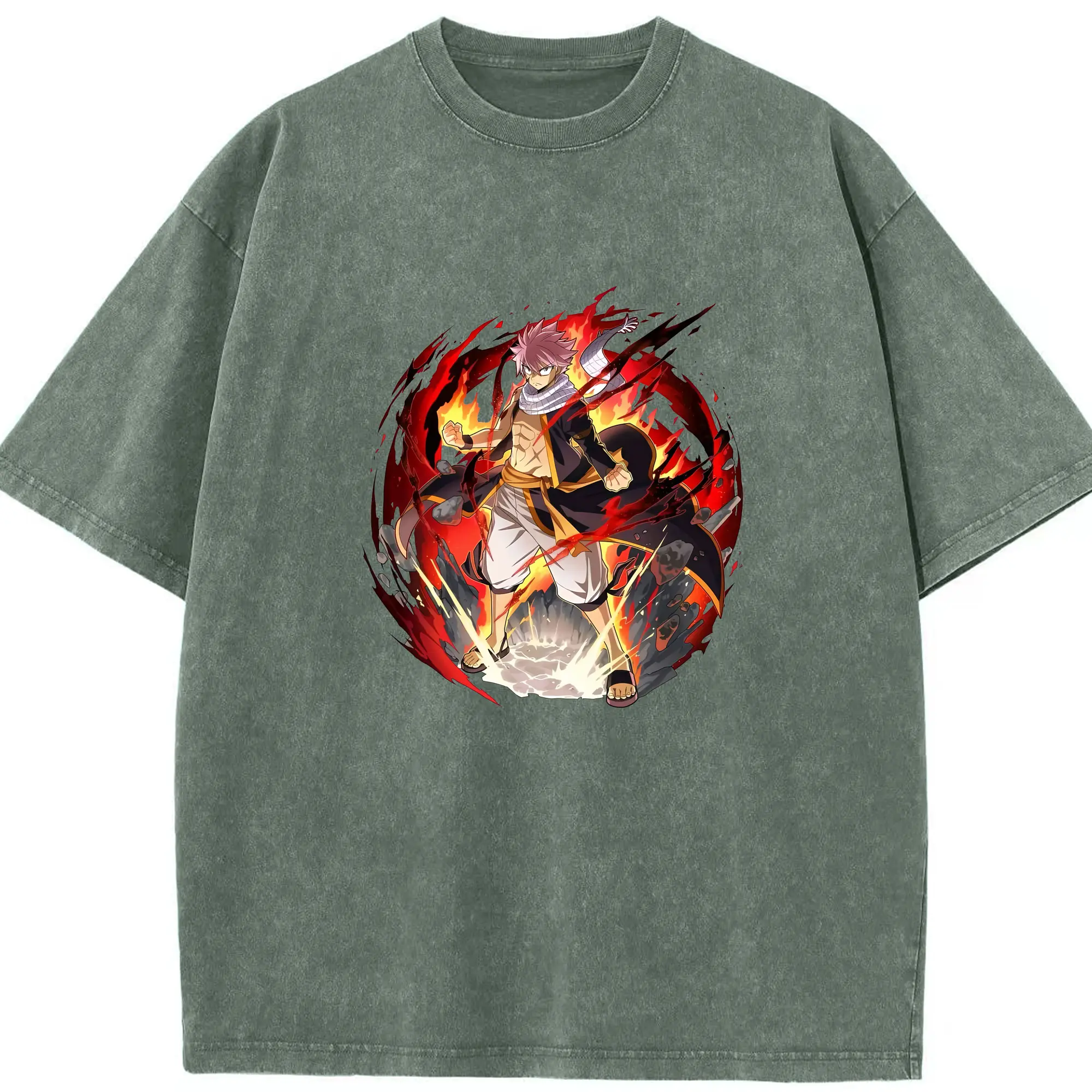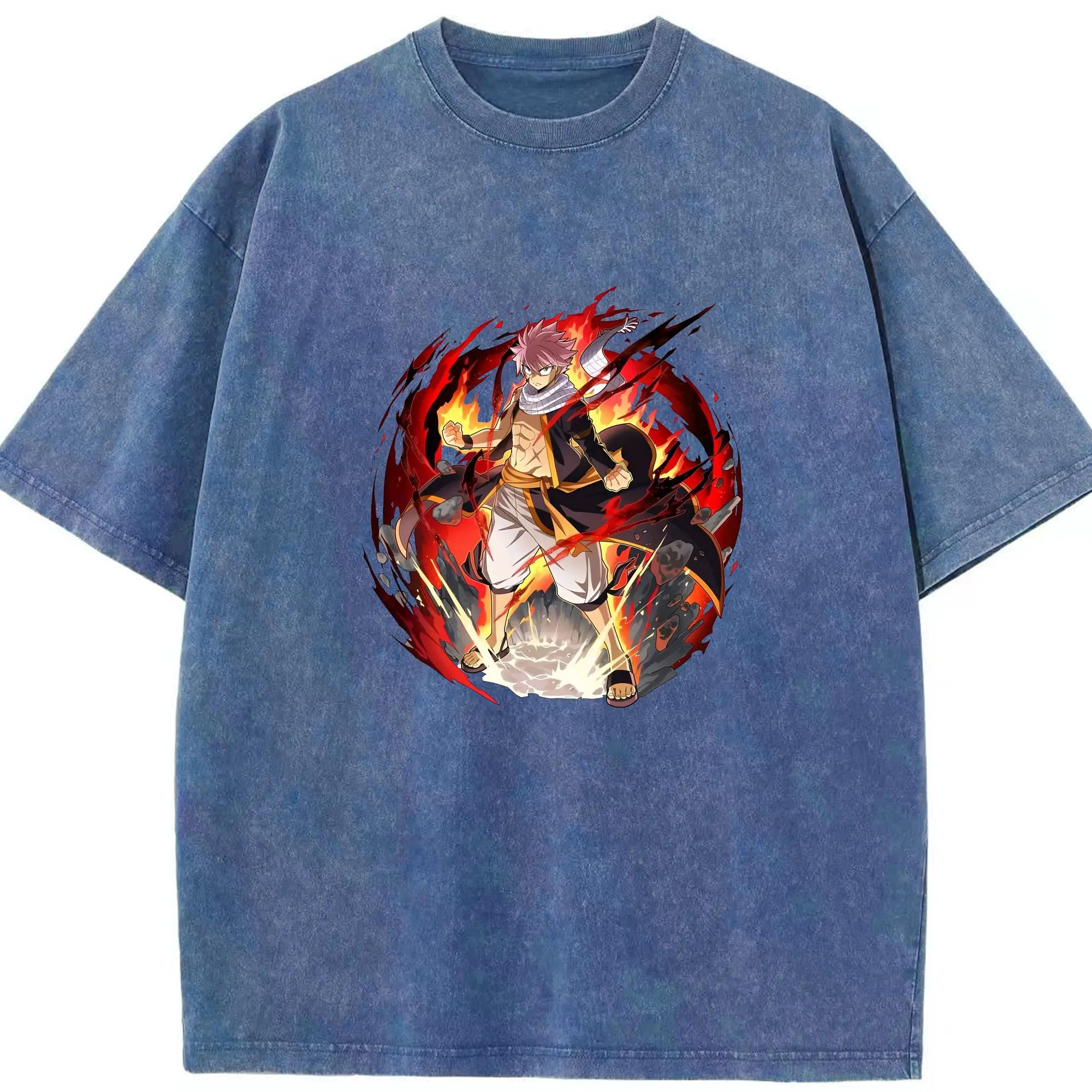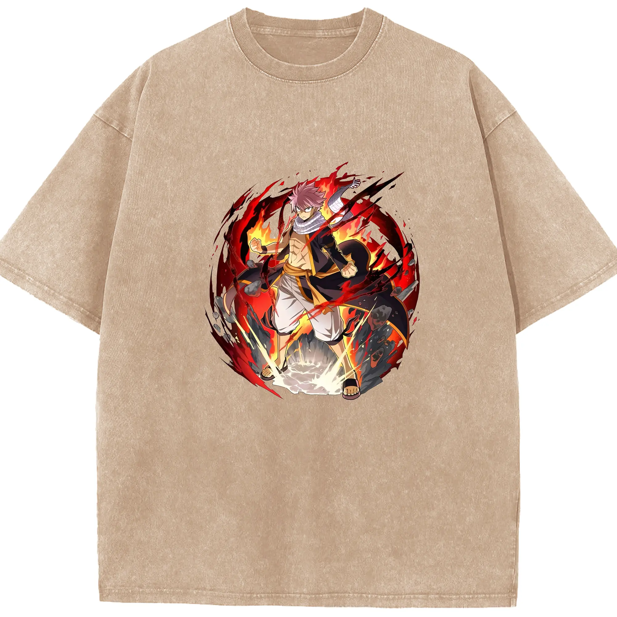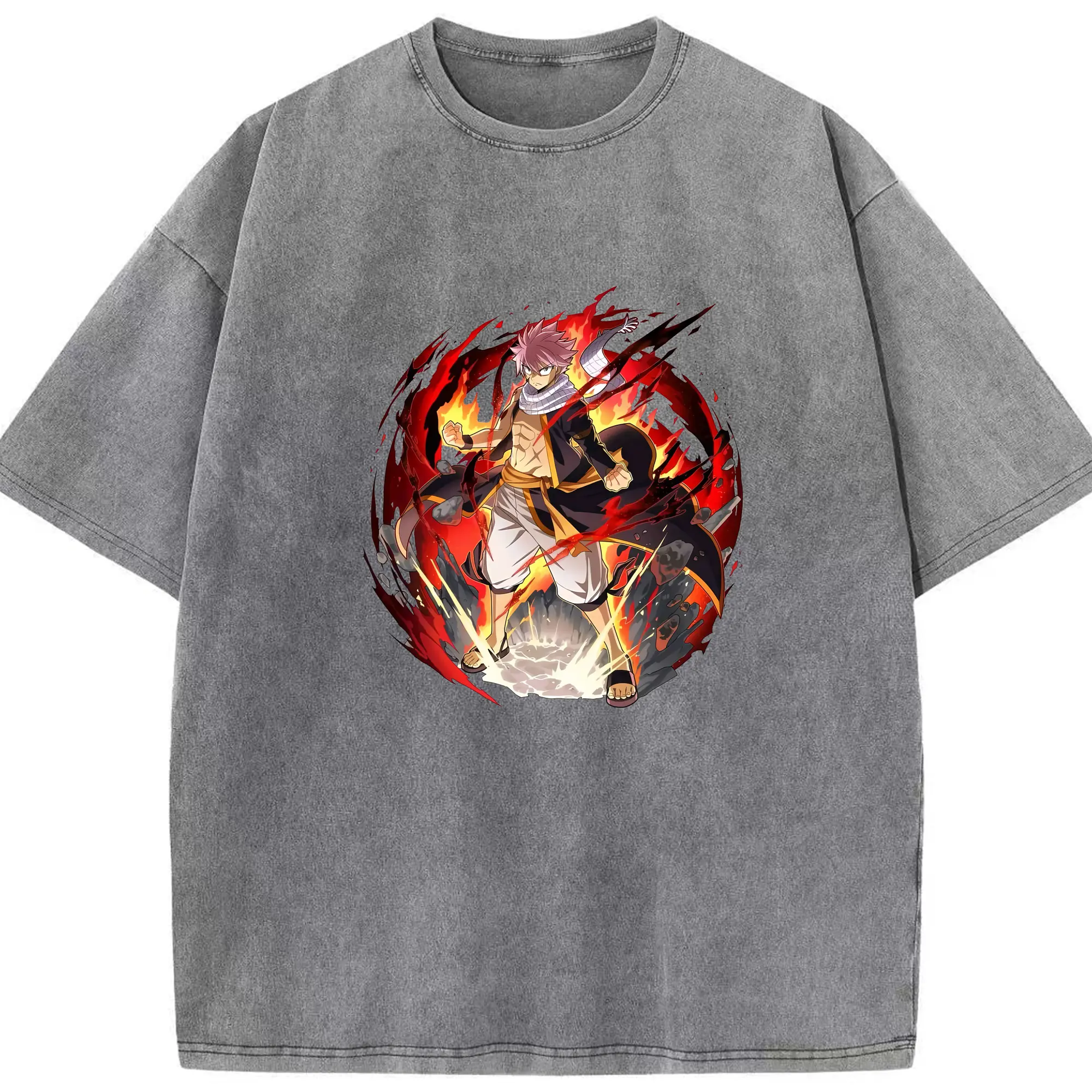 フェアリーテイル グッズ ナツ・ドラグニル - 綿100% ヴィンテージ風 半袖Tシャツ ・ 背面プリント ・ 柔らか肌触り ・ 通気性 快適 ・ スポーツ カジュアル 外出用